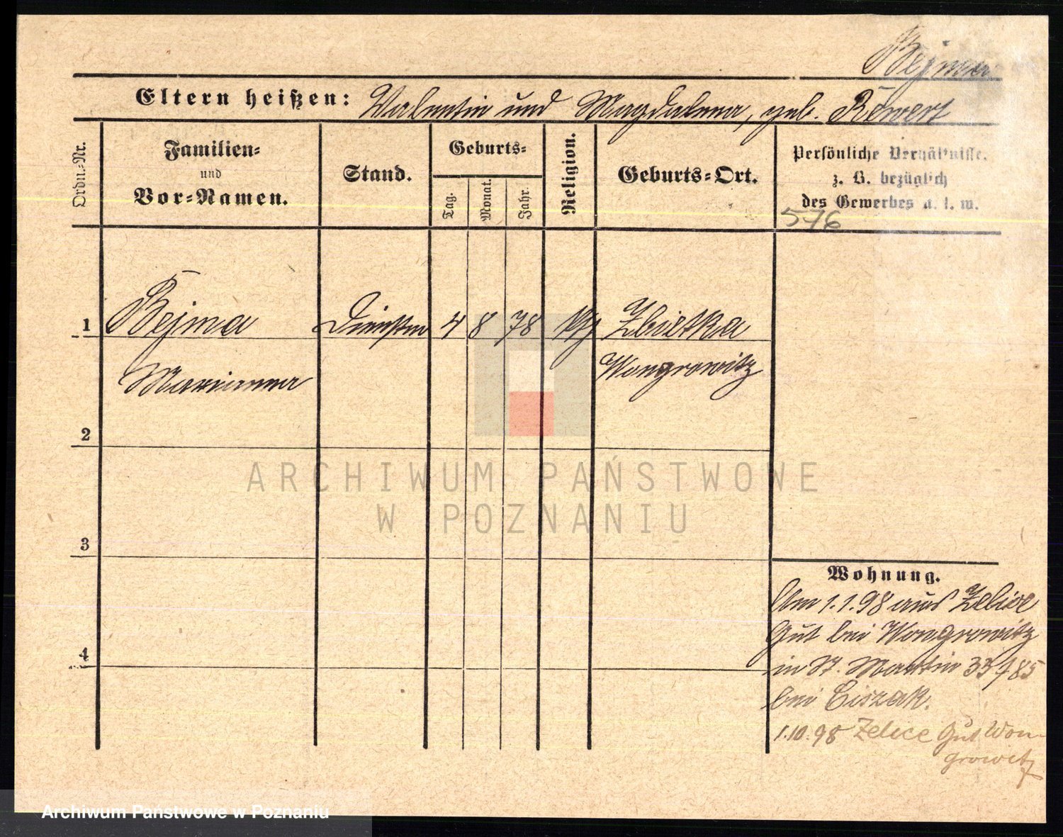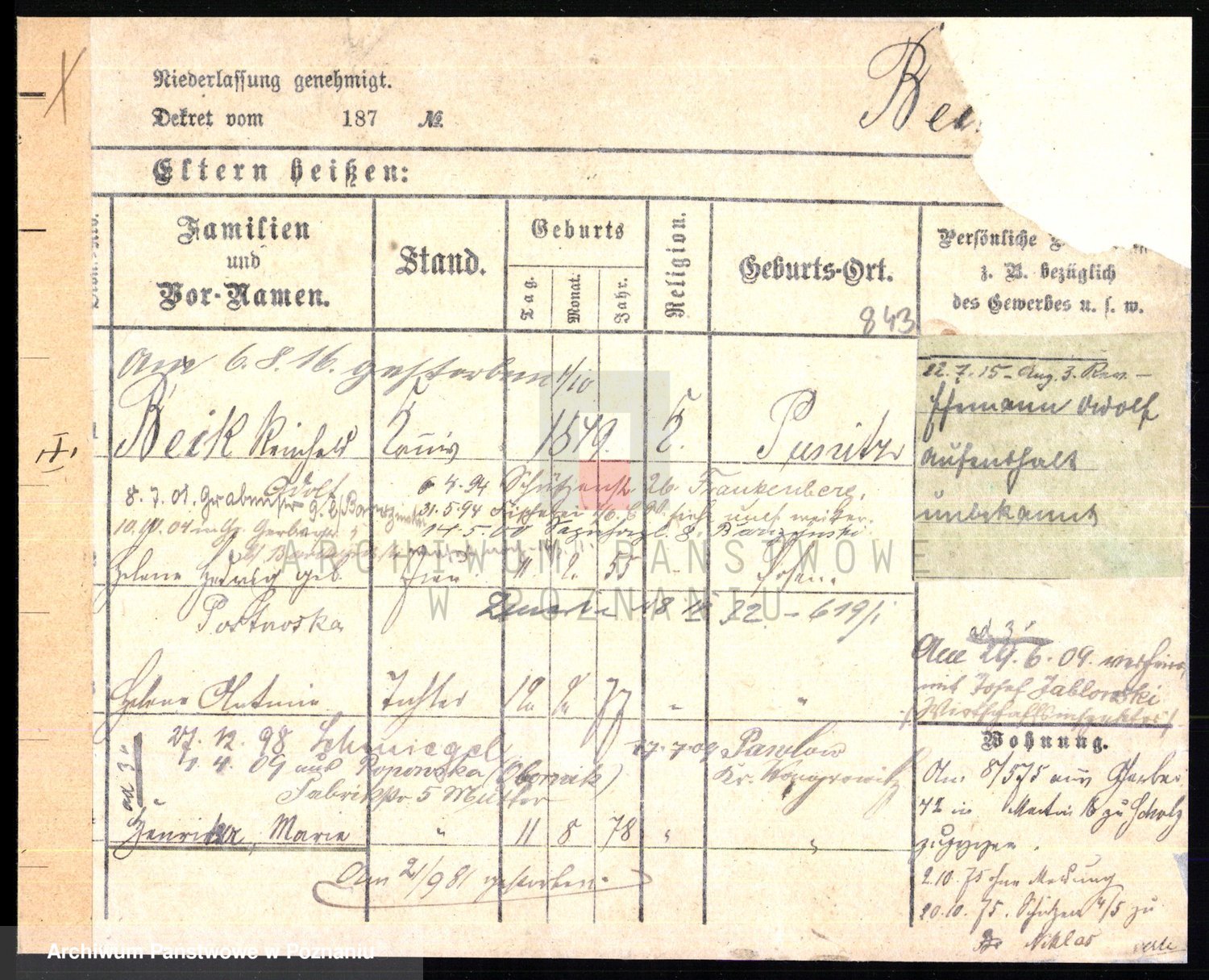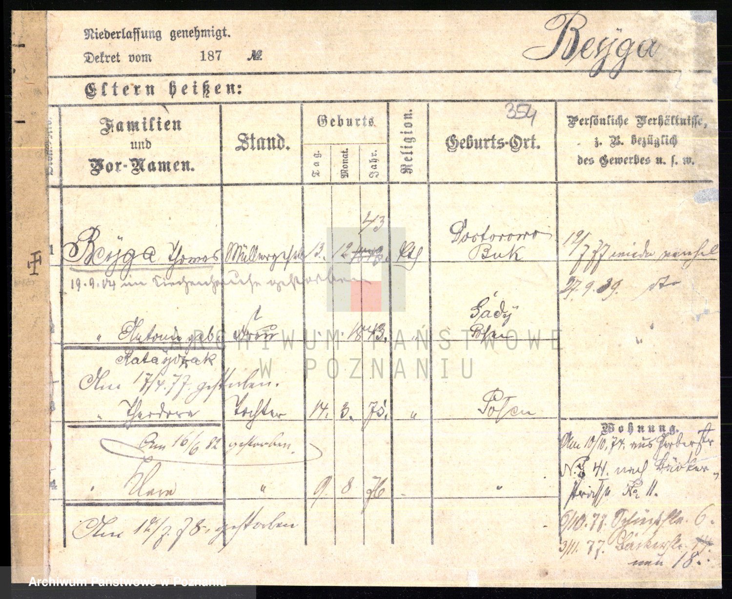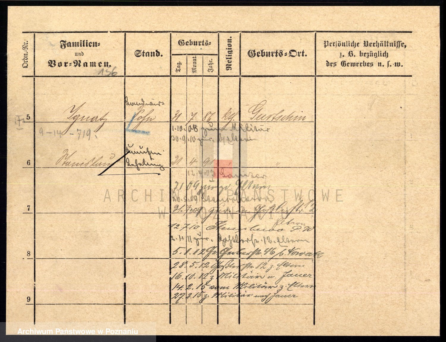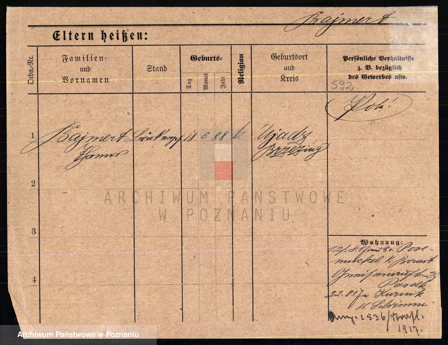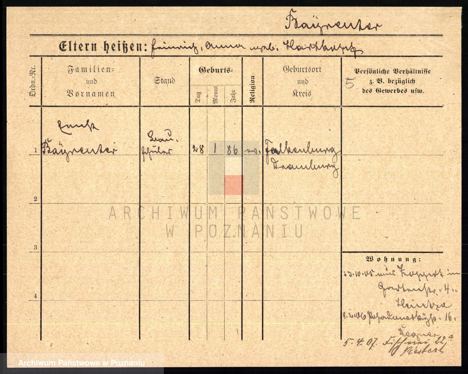 Podgląd karty osobowej dostępny jest po kliknięciu na nazwisko lub ikonkę karty. Można dokonywać powiększenia (ikony na górze) lub przechodzić między kolejnymi skanami (strzałki po bokach).