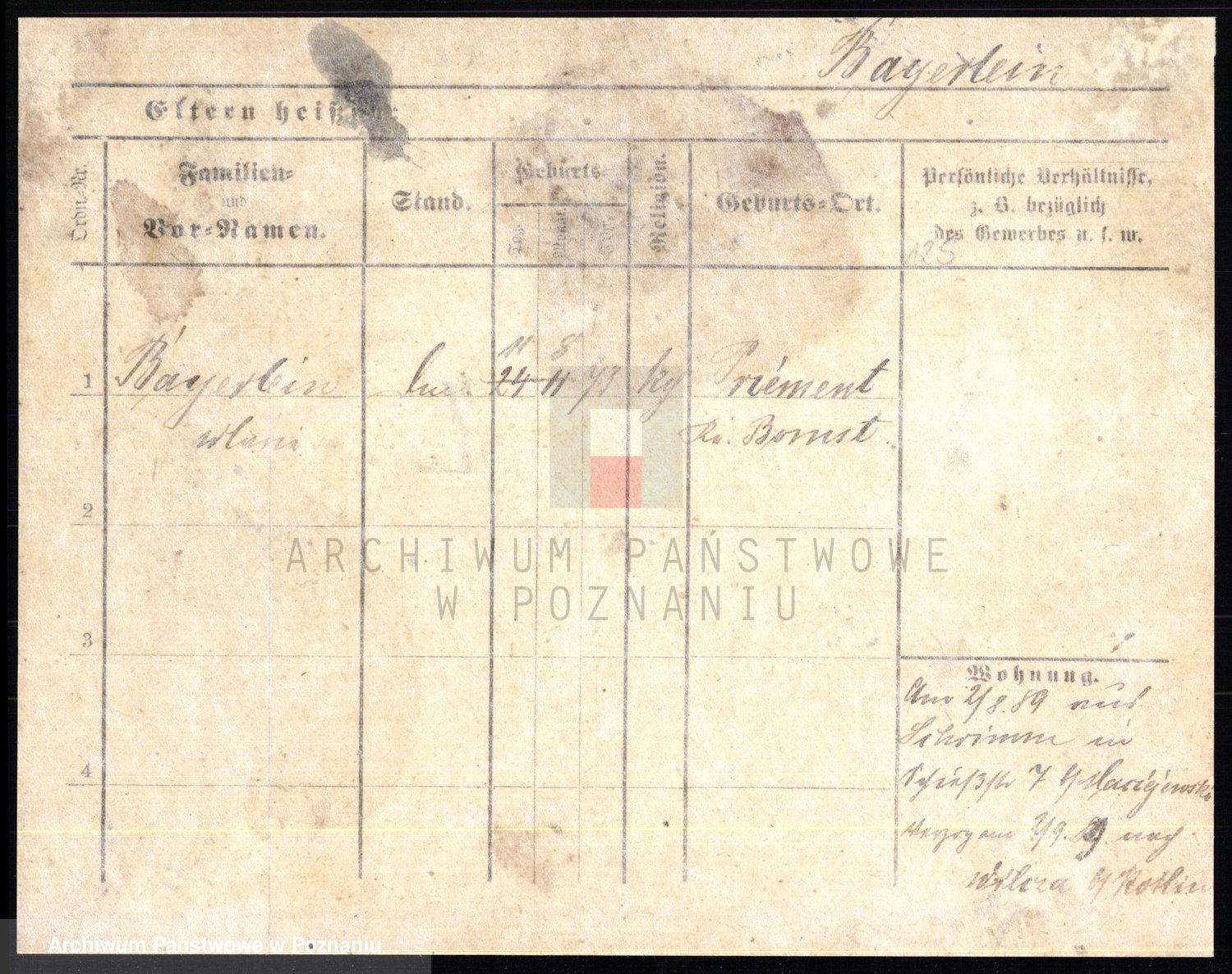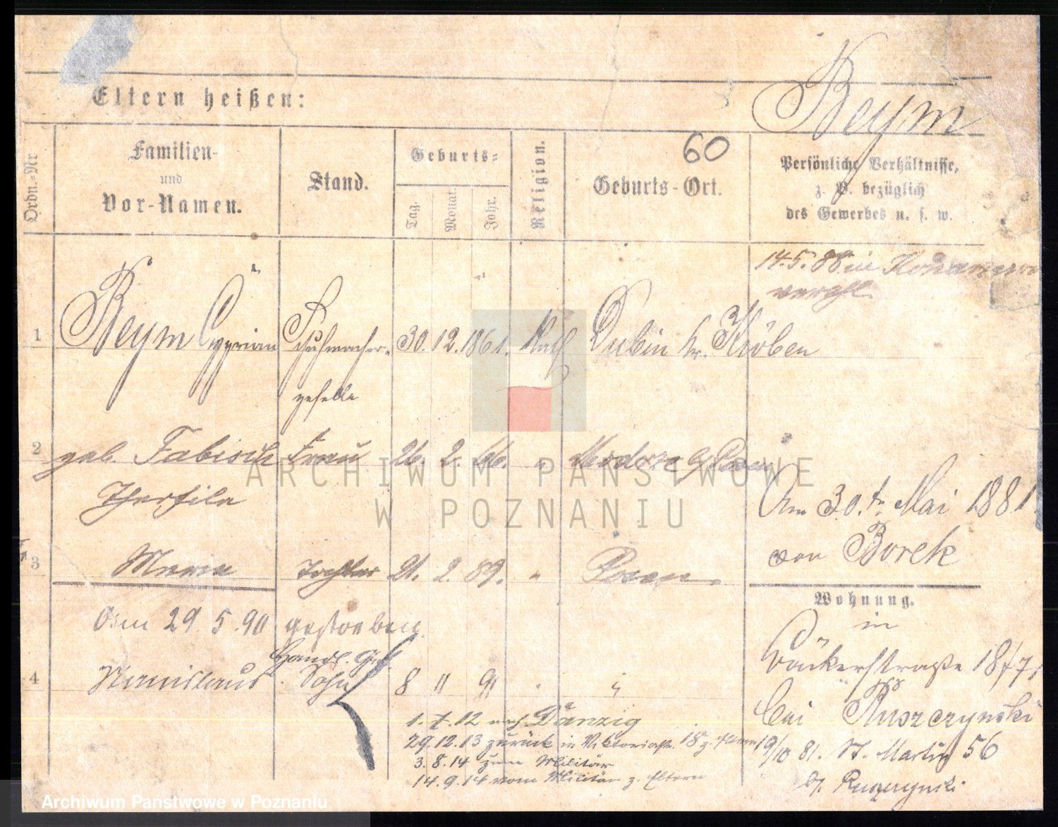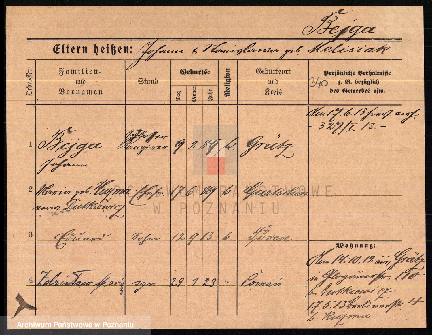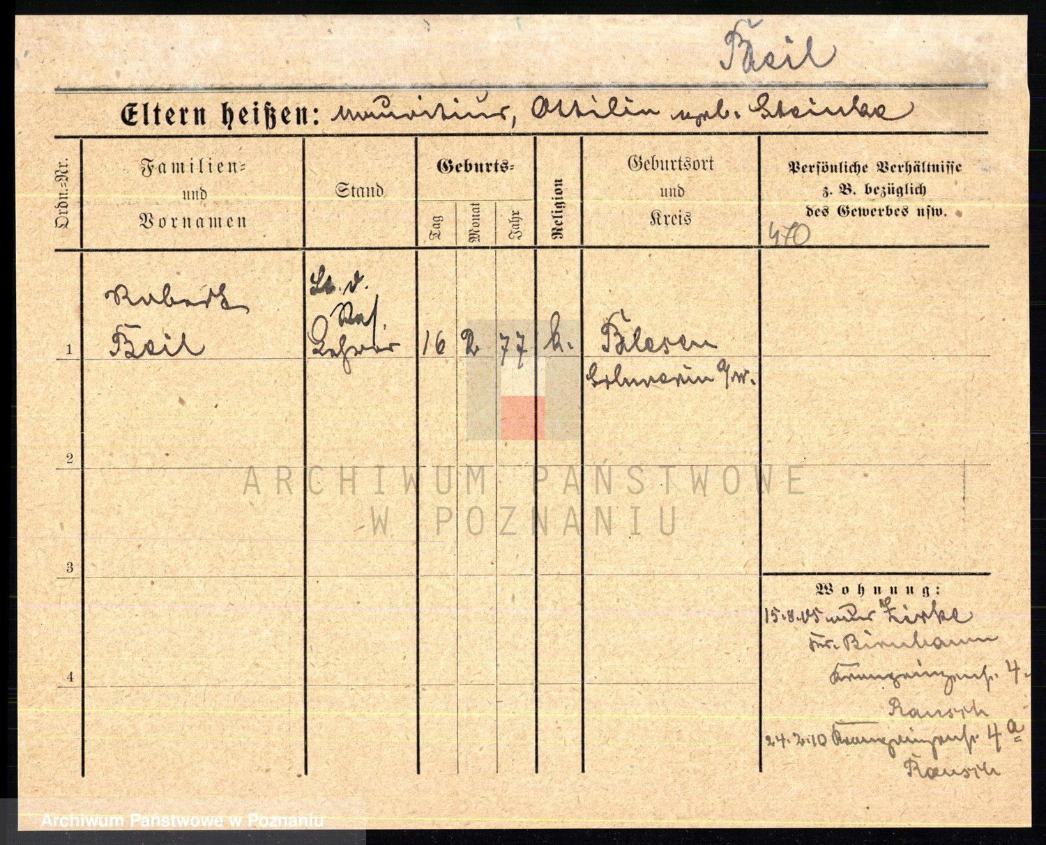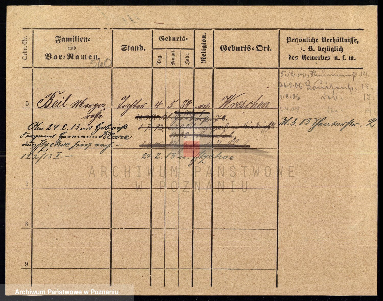 Podgląd karty osobowej dostępny jest po kliknięciu na nazwisko lub ikonkę karty. Można dokonywać powiększenia (ikony na górze) lub przechodzić między kolejnymi skanami (strzałki po bokach).