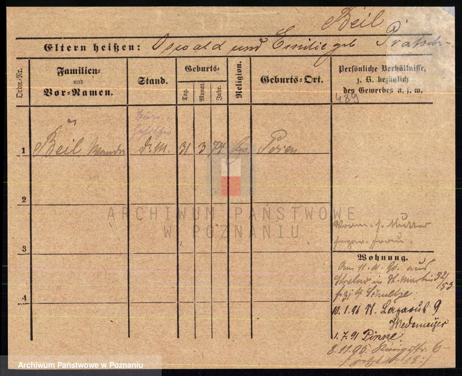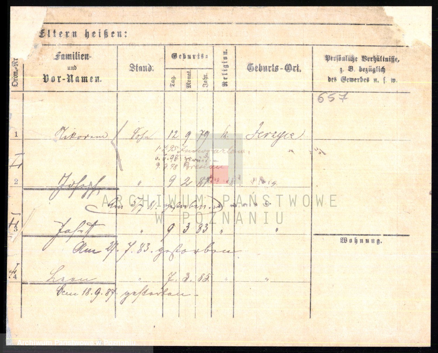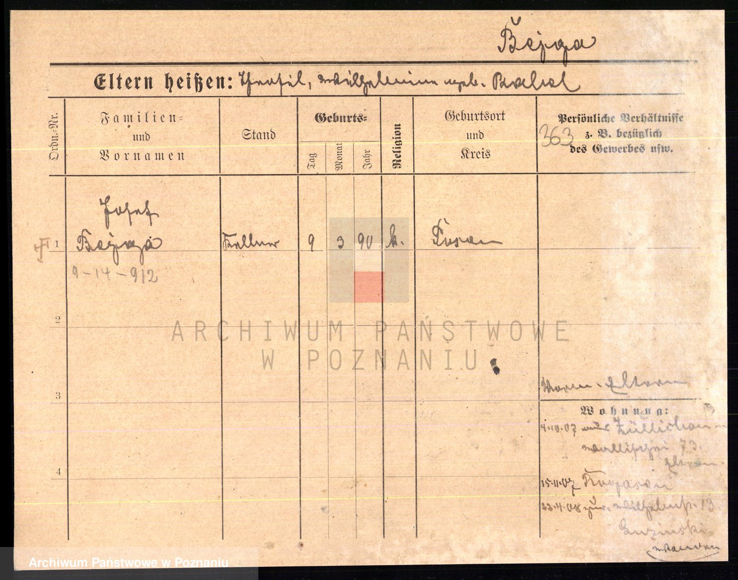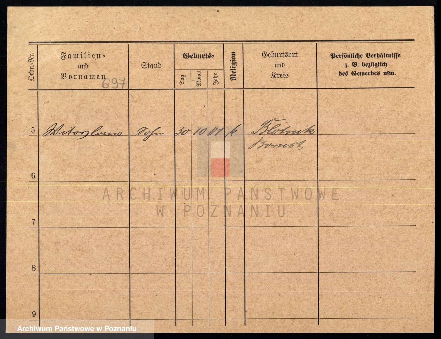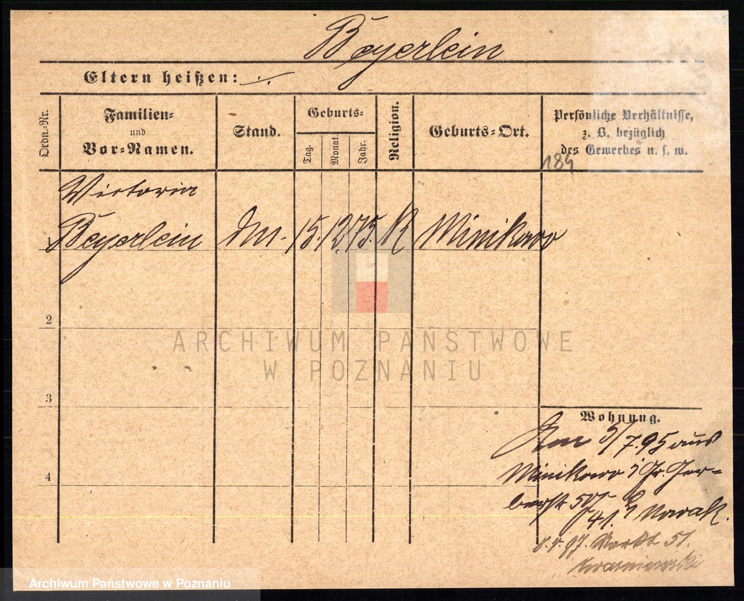 Podgląd karty osobowej dostępny jest po kliknięciu na nazwisko lub ikonkę karty. Można dokonywać powiększenia (ikony na górze) lub przechodzić między kolejnymi skanami (strzałki po bokach).