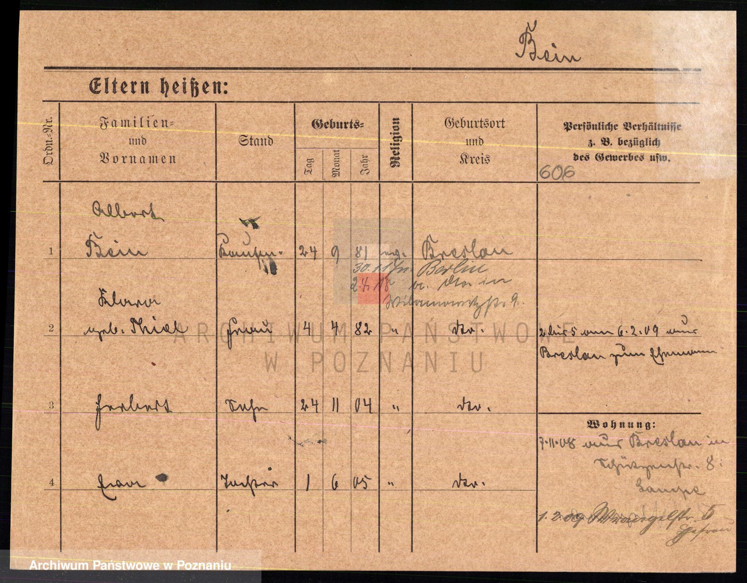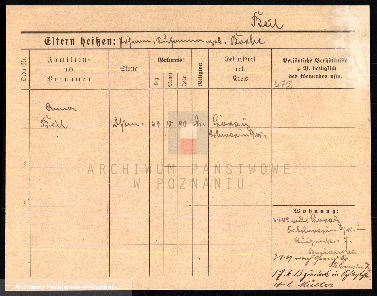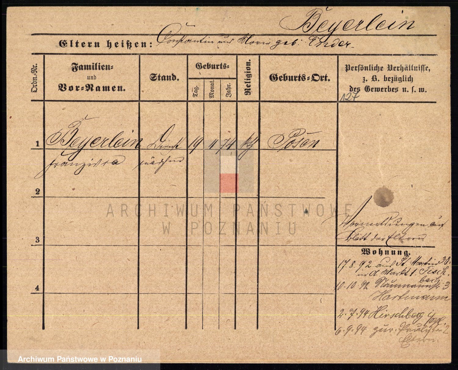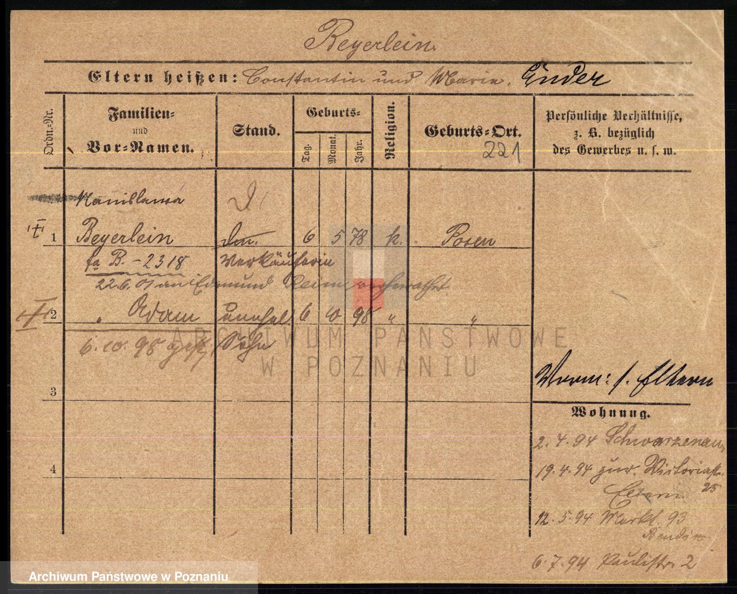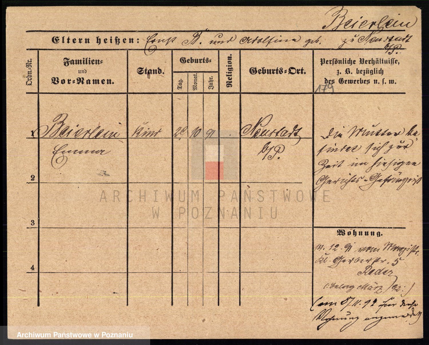 Podgląd karty osobowej dostępny jest po kliknięciu na nazwisko lub ikonkę karty. Można dokonywać powiększenia (ikony na górze) lub przechodzić między kolejnymi skanami (strzałki po bokach).