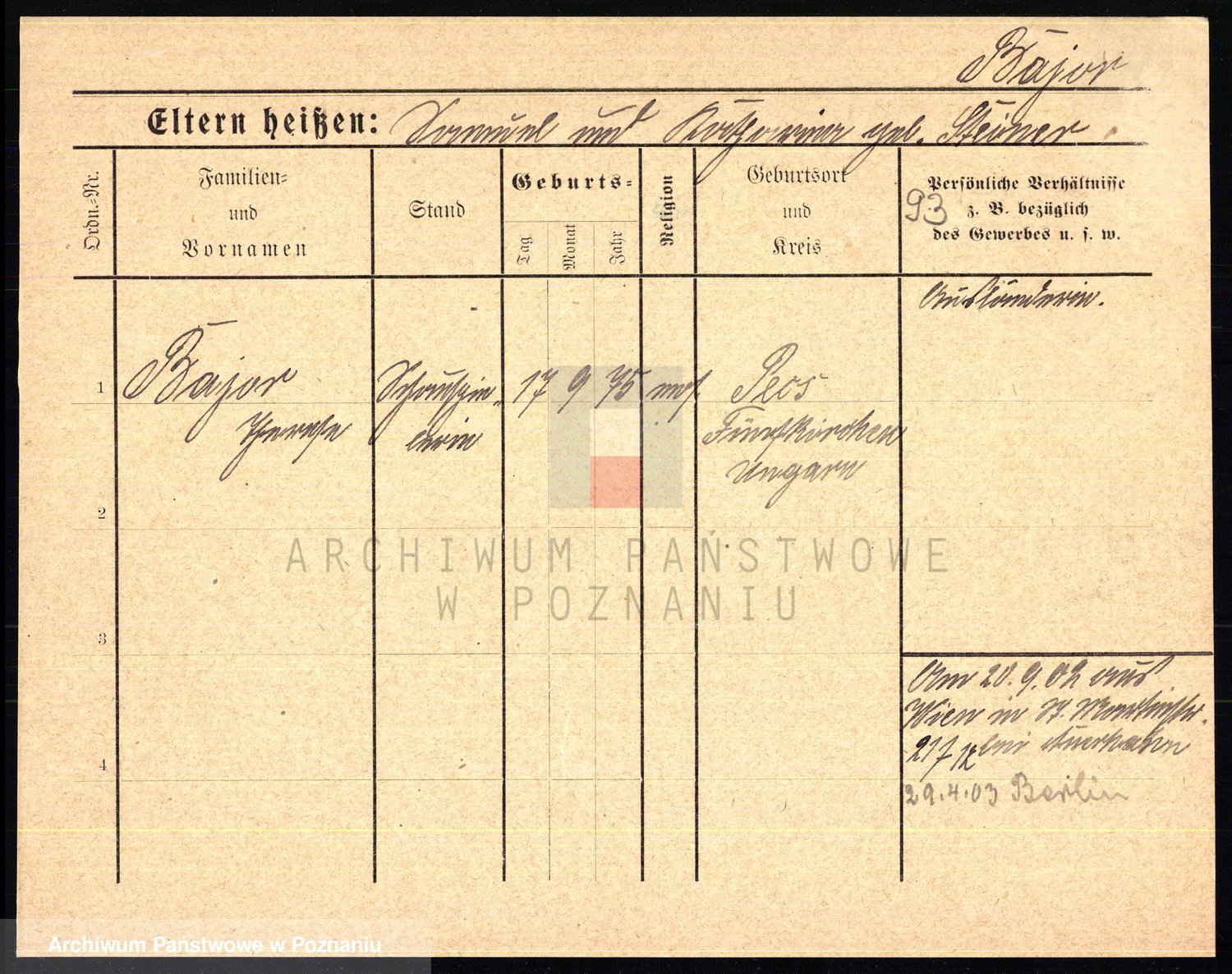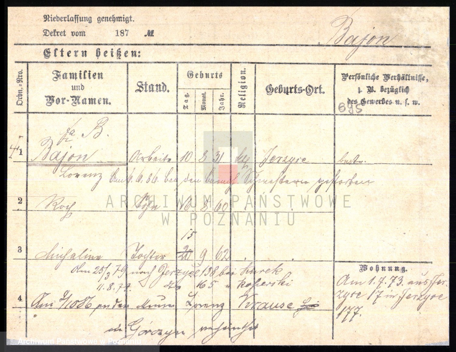 Bajonski, Vinzent