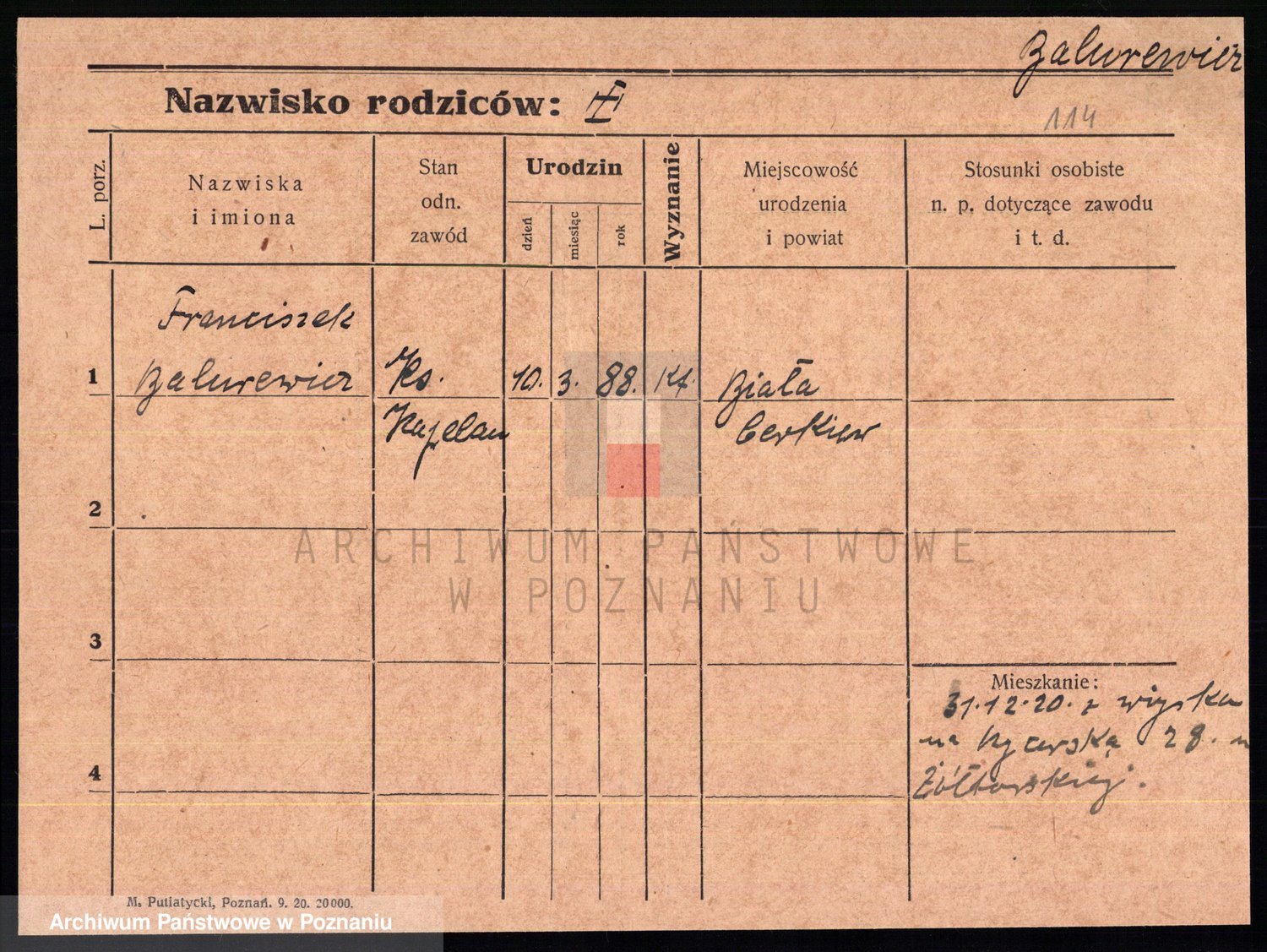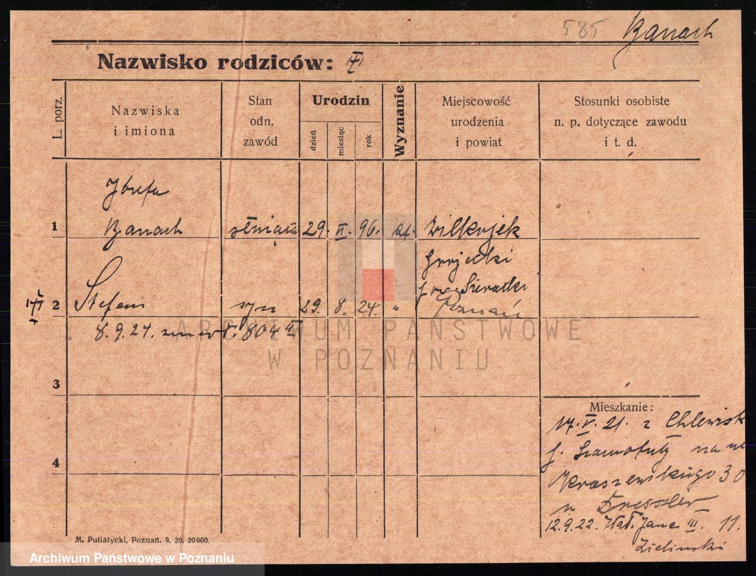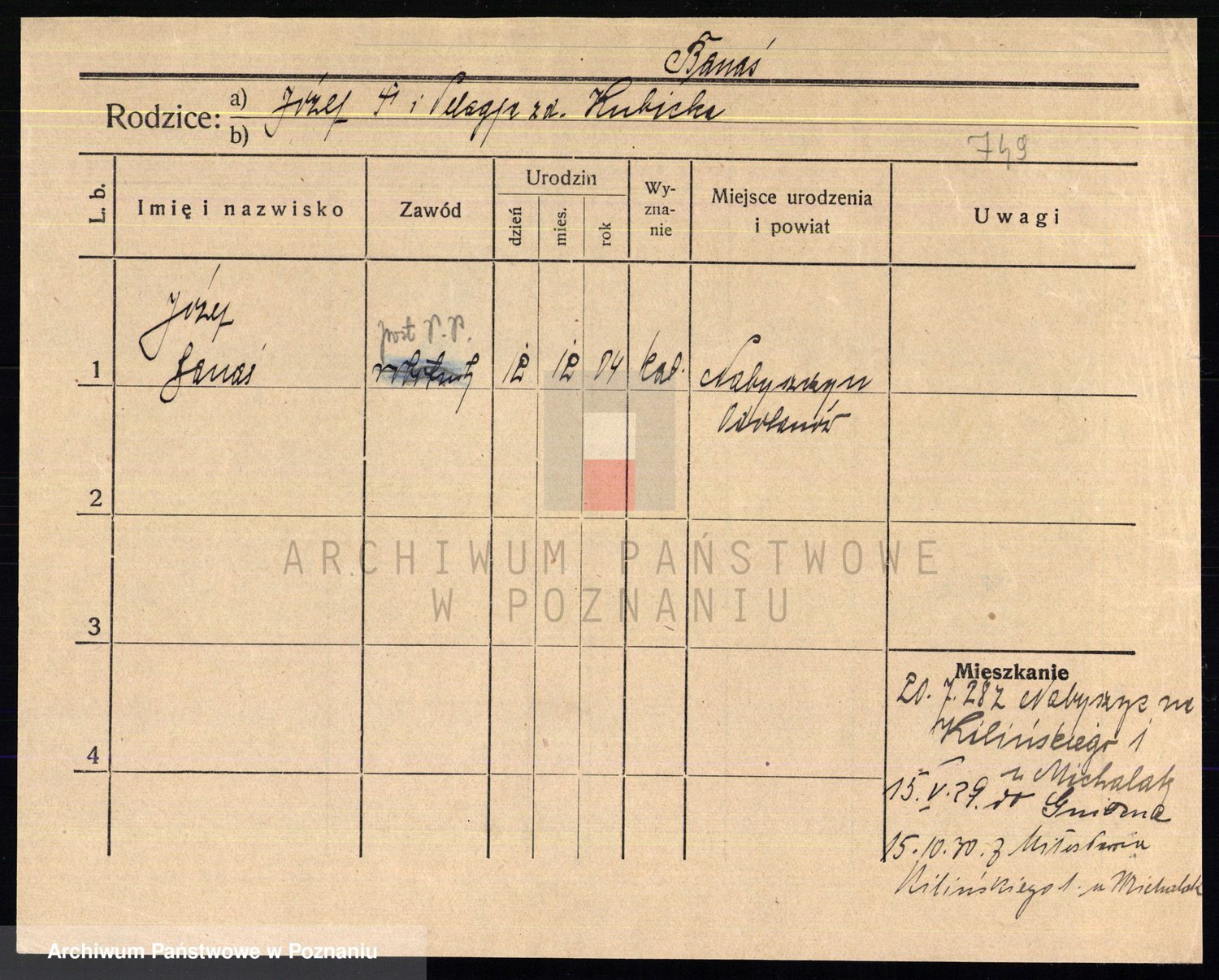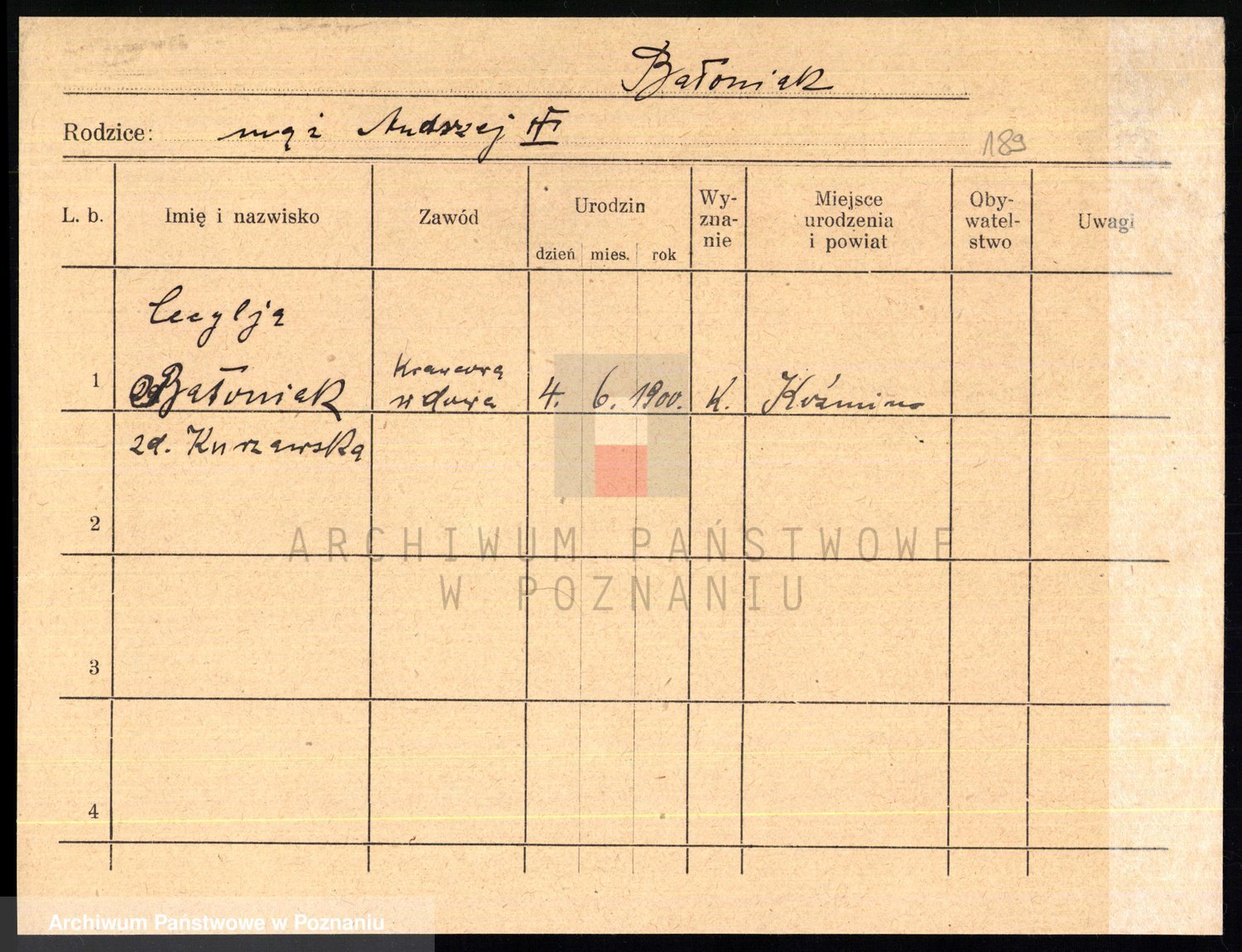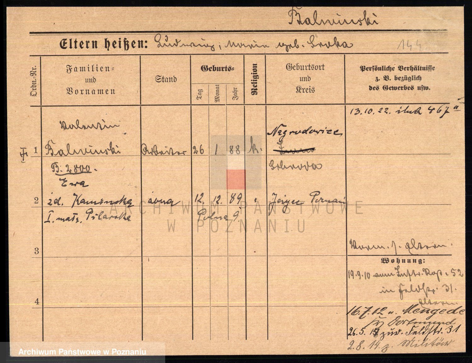 Podgląd karty osobowej dostępny jest po kliknięciu na nazwisko lub ikonkę karty. Można dokonywać powiększenia (ikony na górze) lub przechodzić między kolejnymi skanami (strzałki po bokach).
