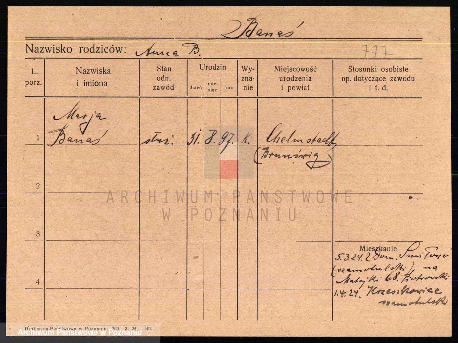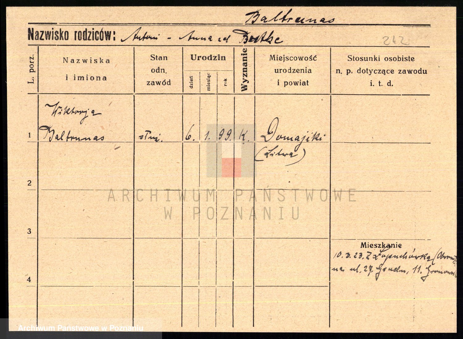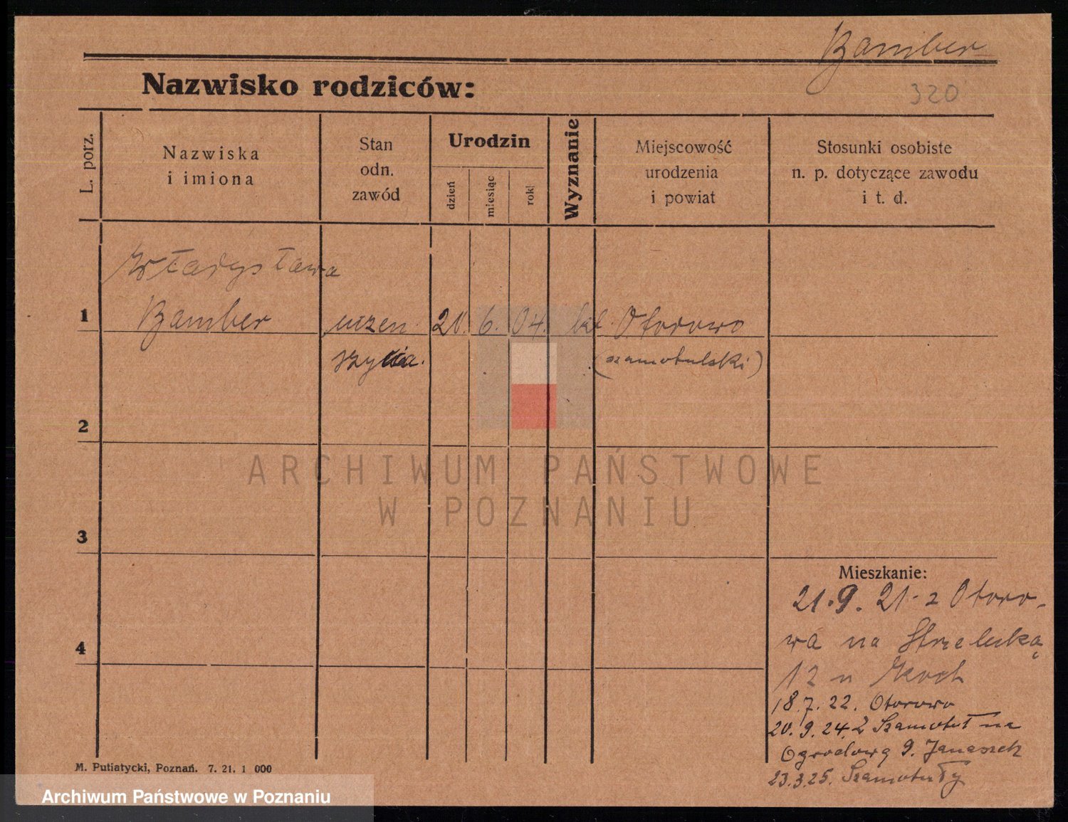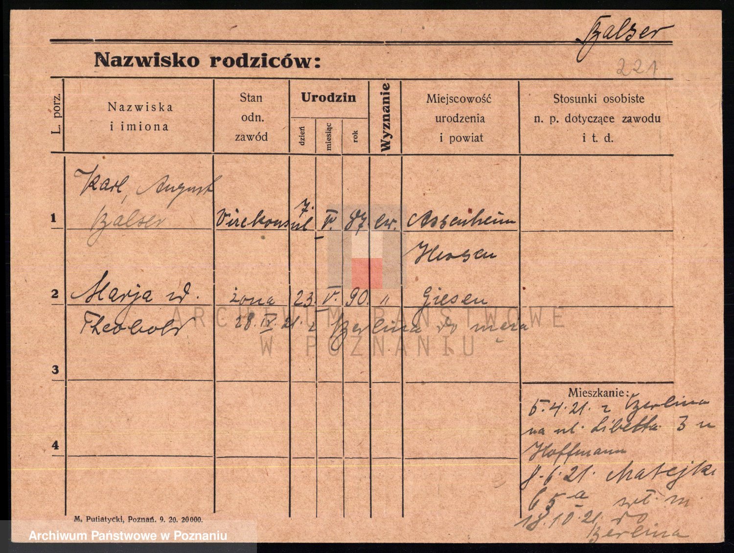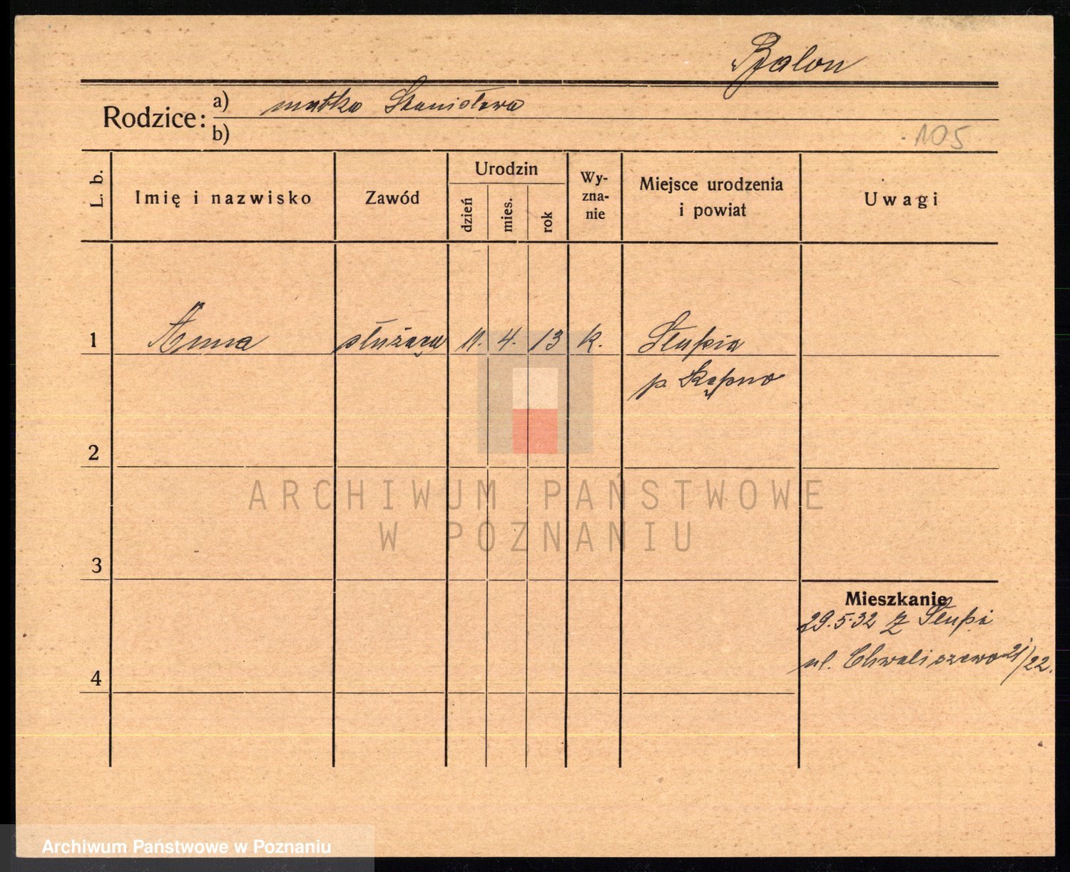 Podgląd karty osobowej dostępny jest po kliknięciu na nazwisko lub ikonkę karty. Można dokonywać powiększenia (ikony na górze) lub przechodzić między kolejnymi skanami (strzałki po bokach).