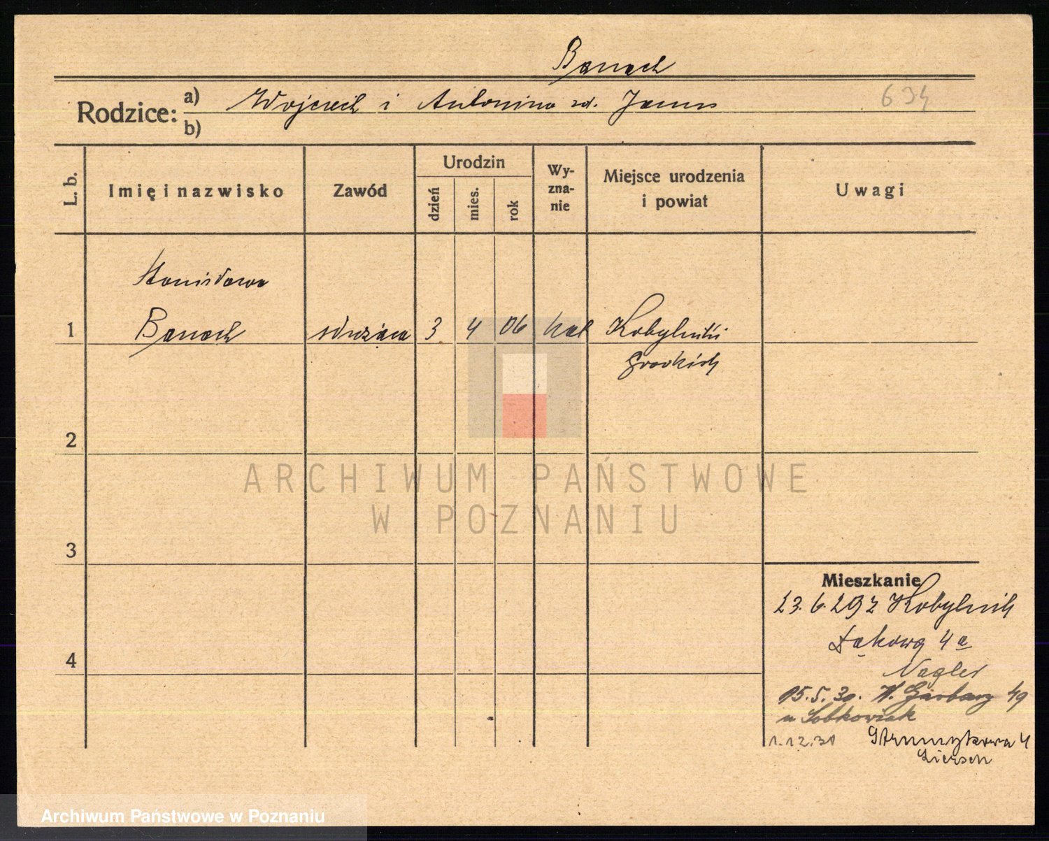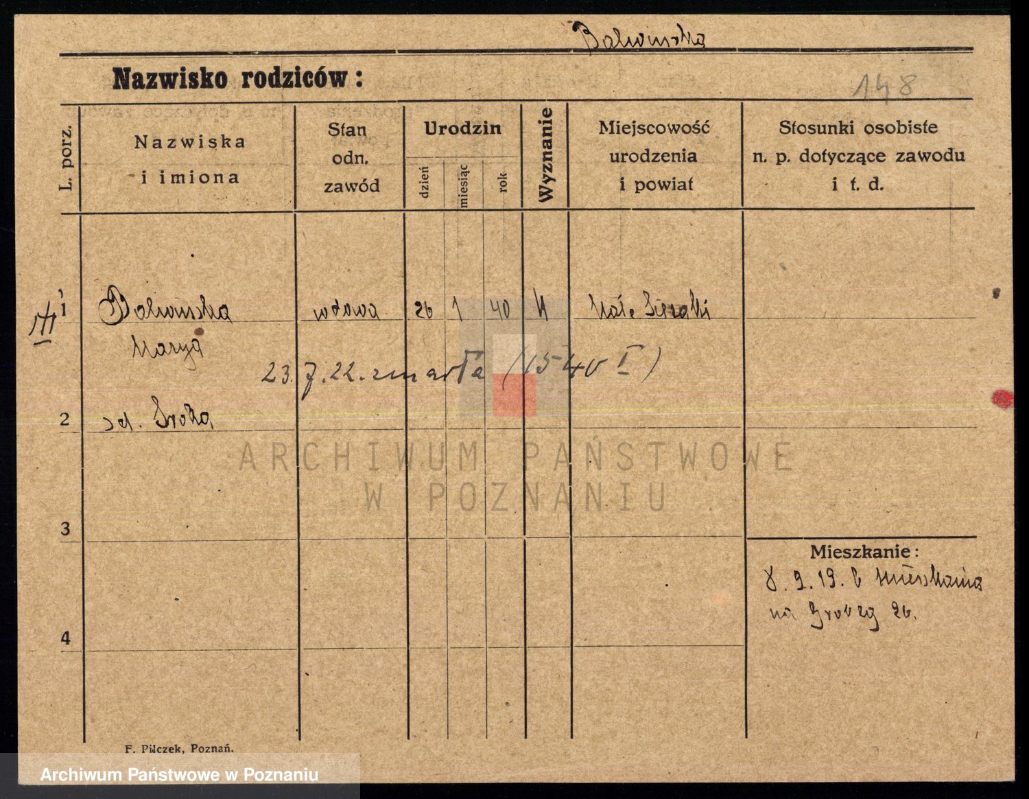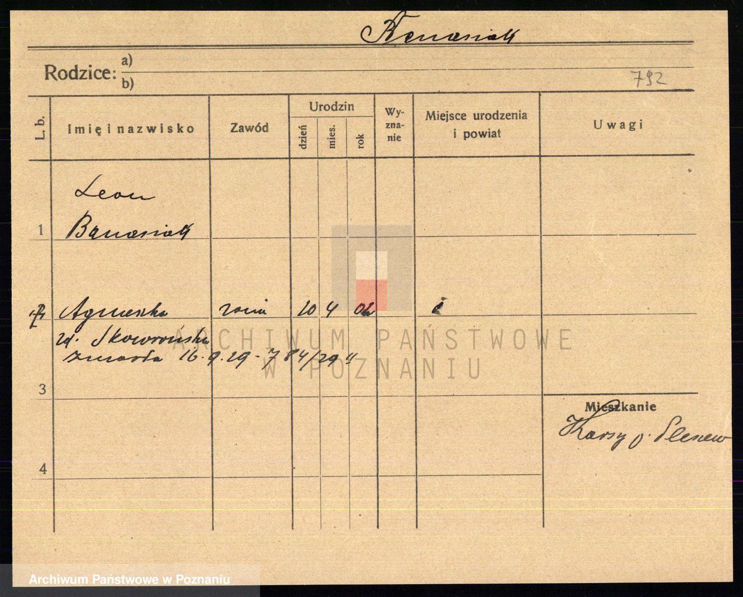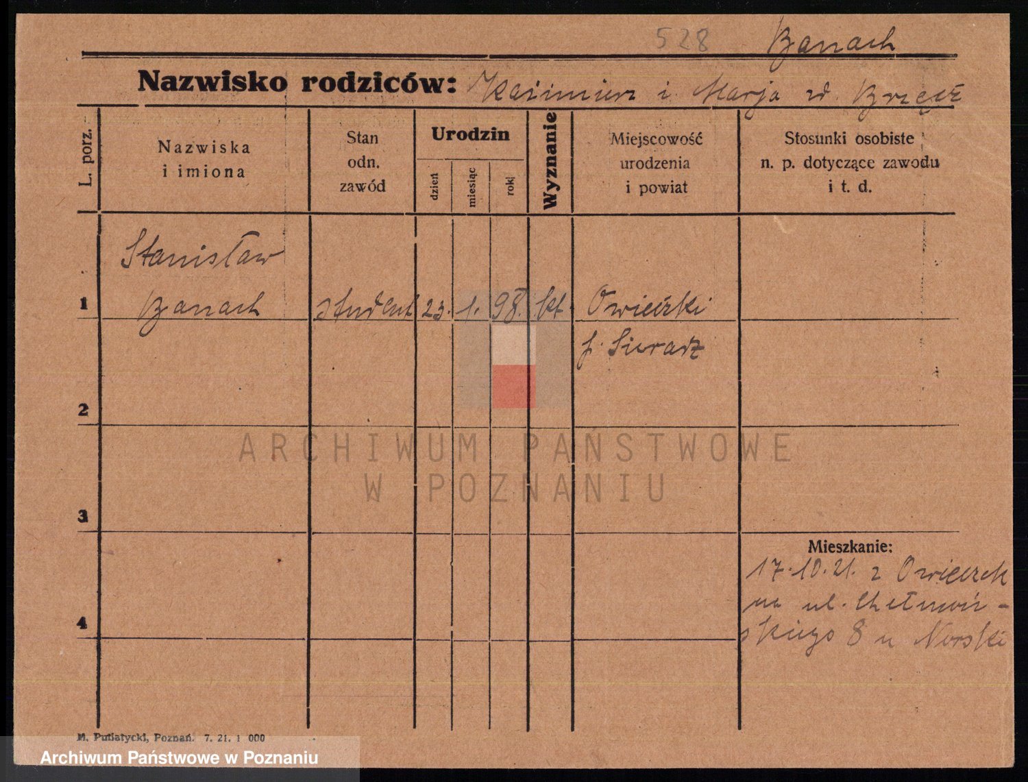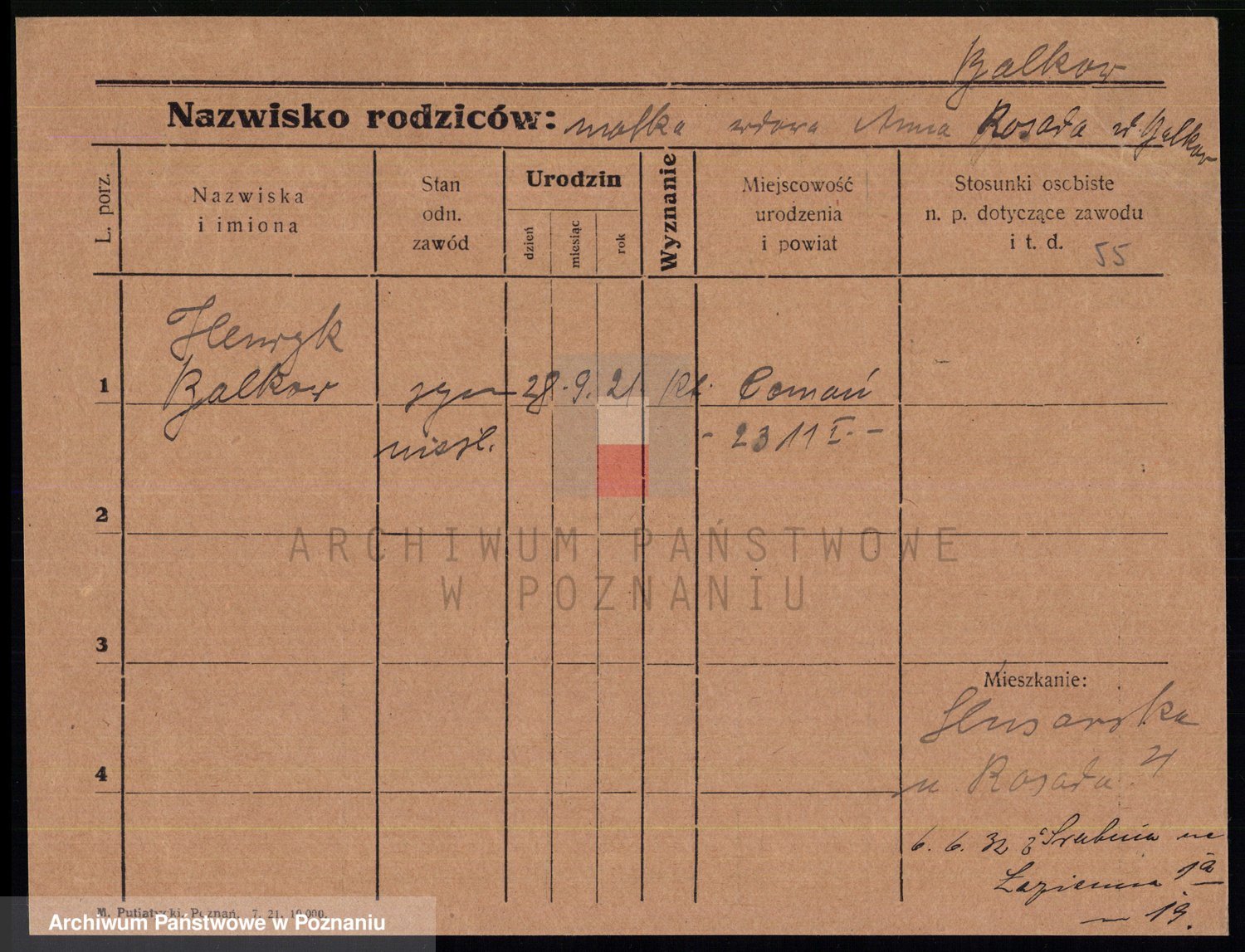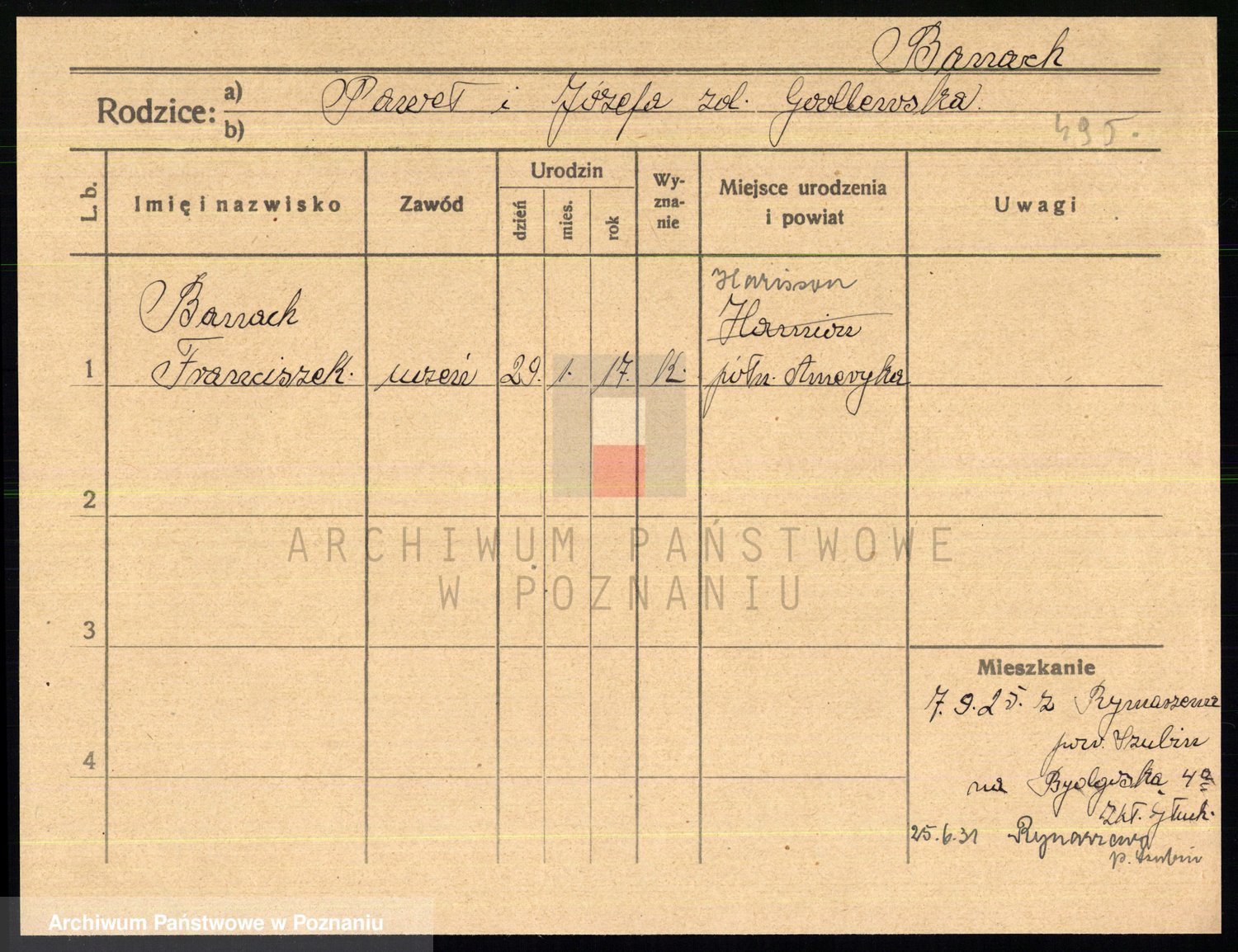 Podgląd karty osobowej dostępny jest po kliknięciu na nazwisko lub ikonkę karty. Można dokonywać powiększenia (ikony na górze) lub przechodzić między kolejnymi skanami (strzałki po bokach).
