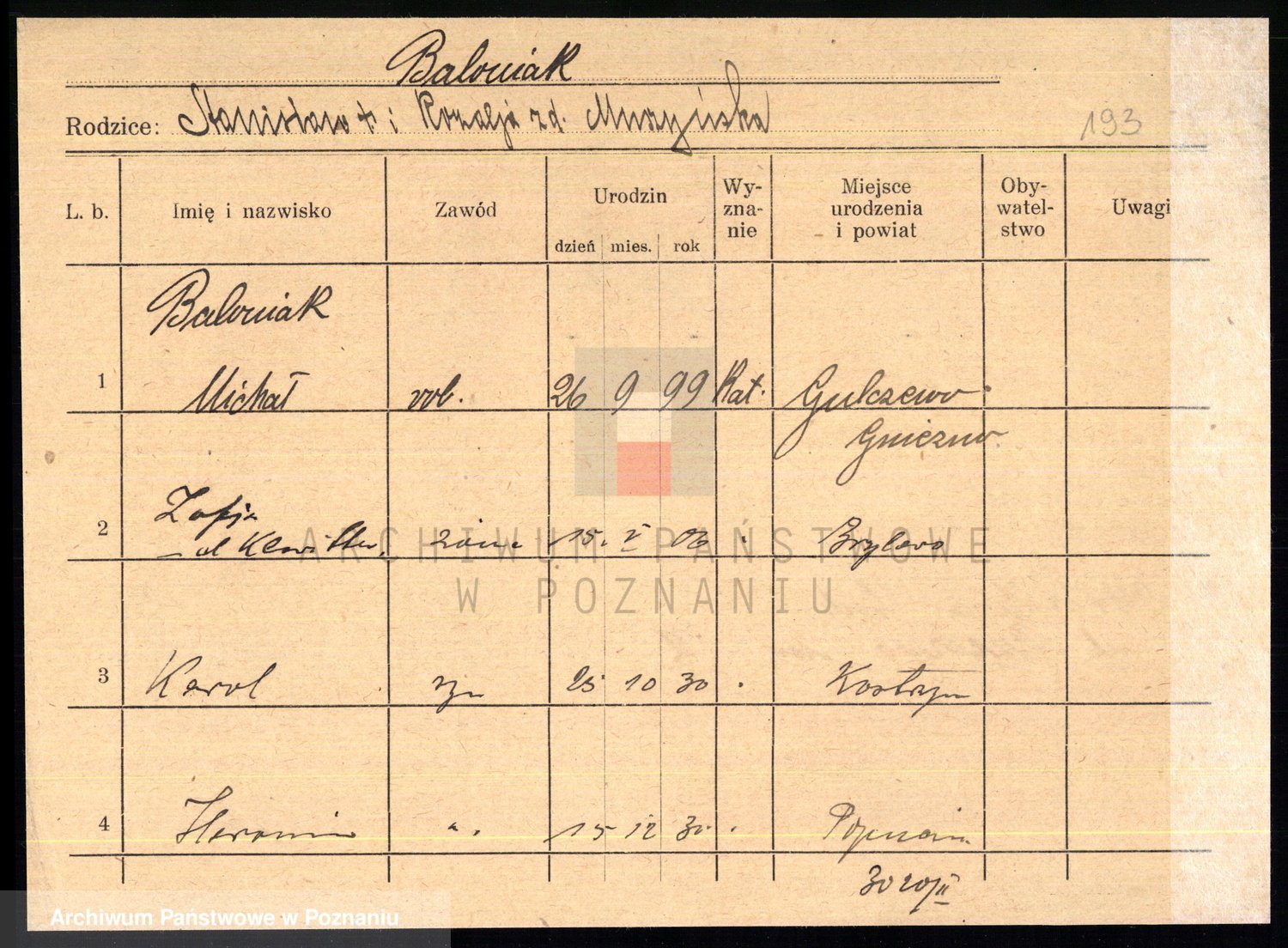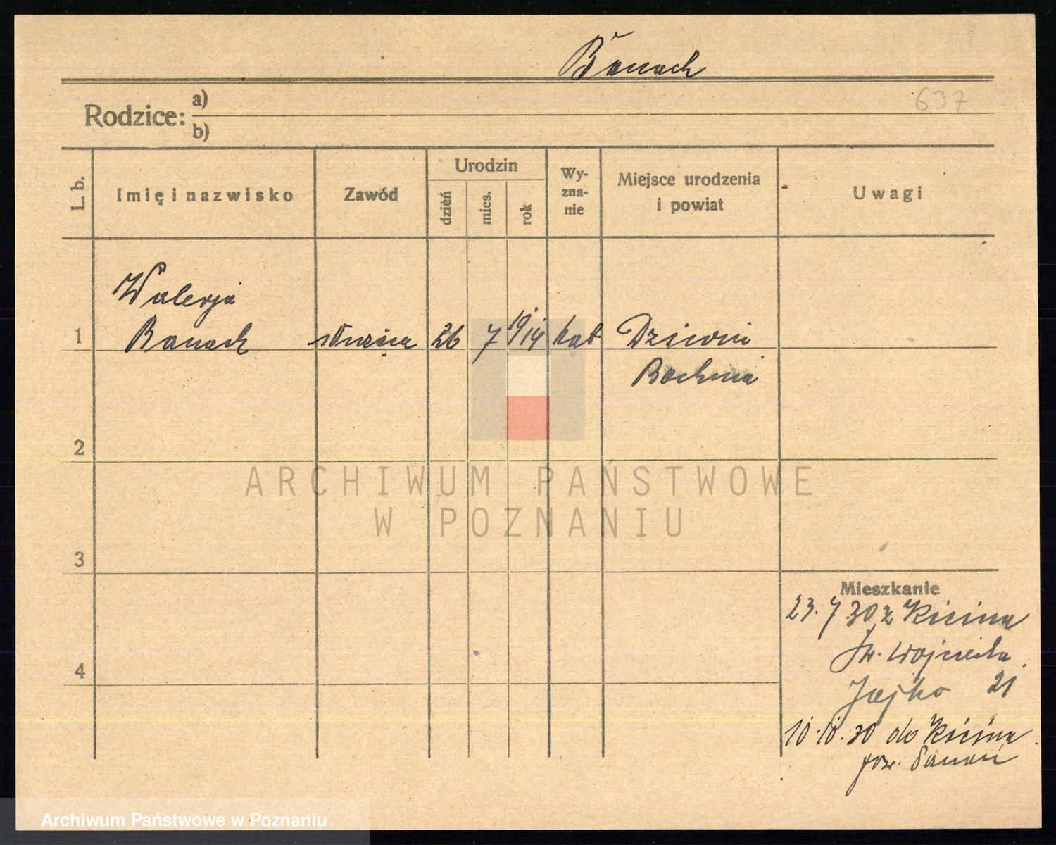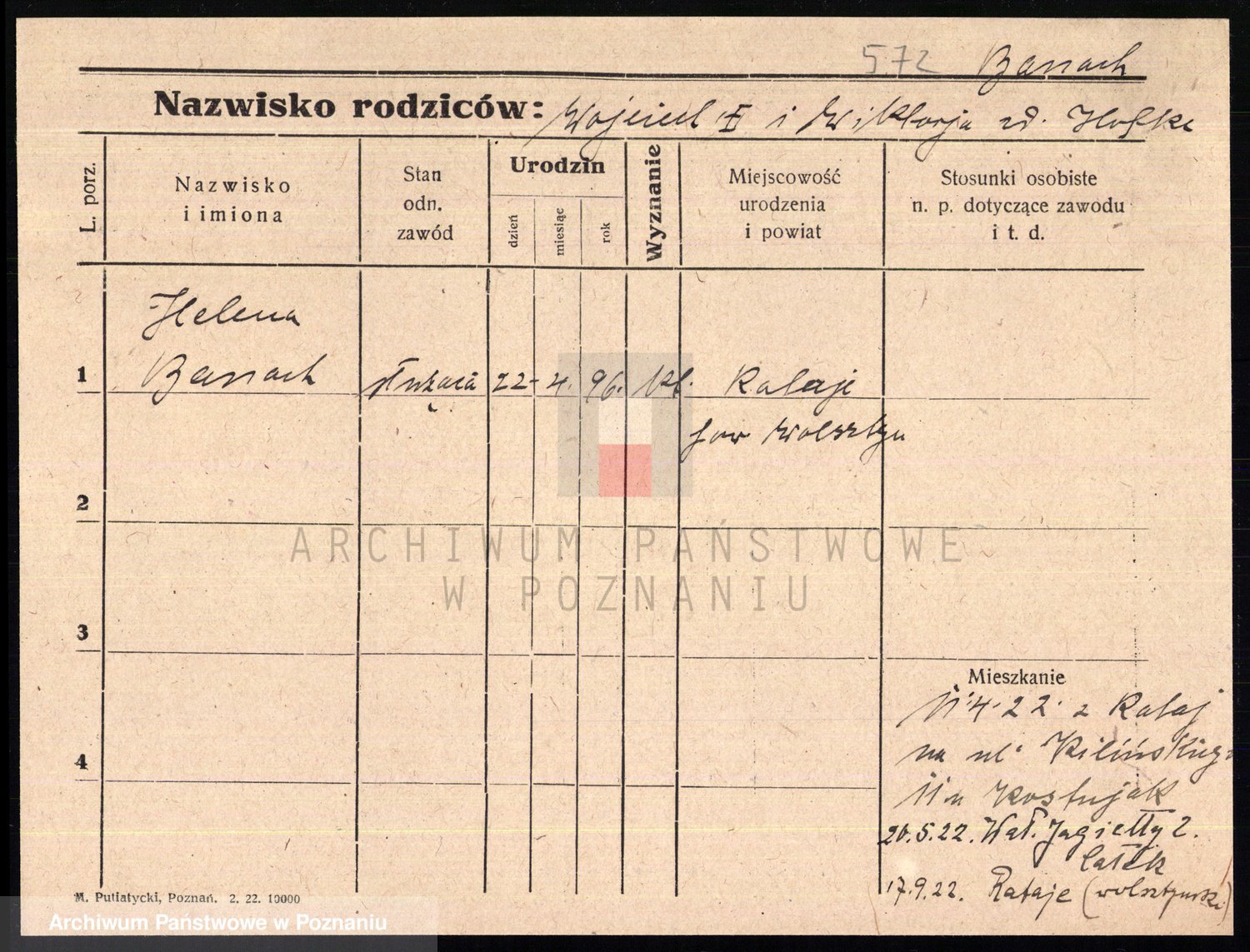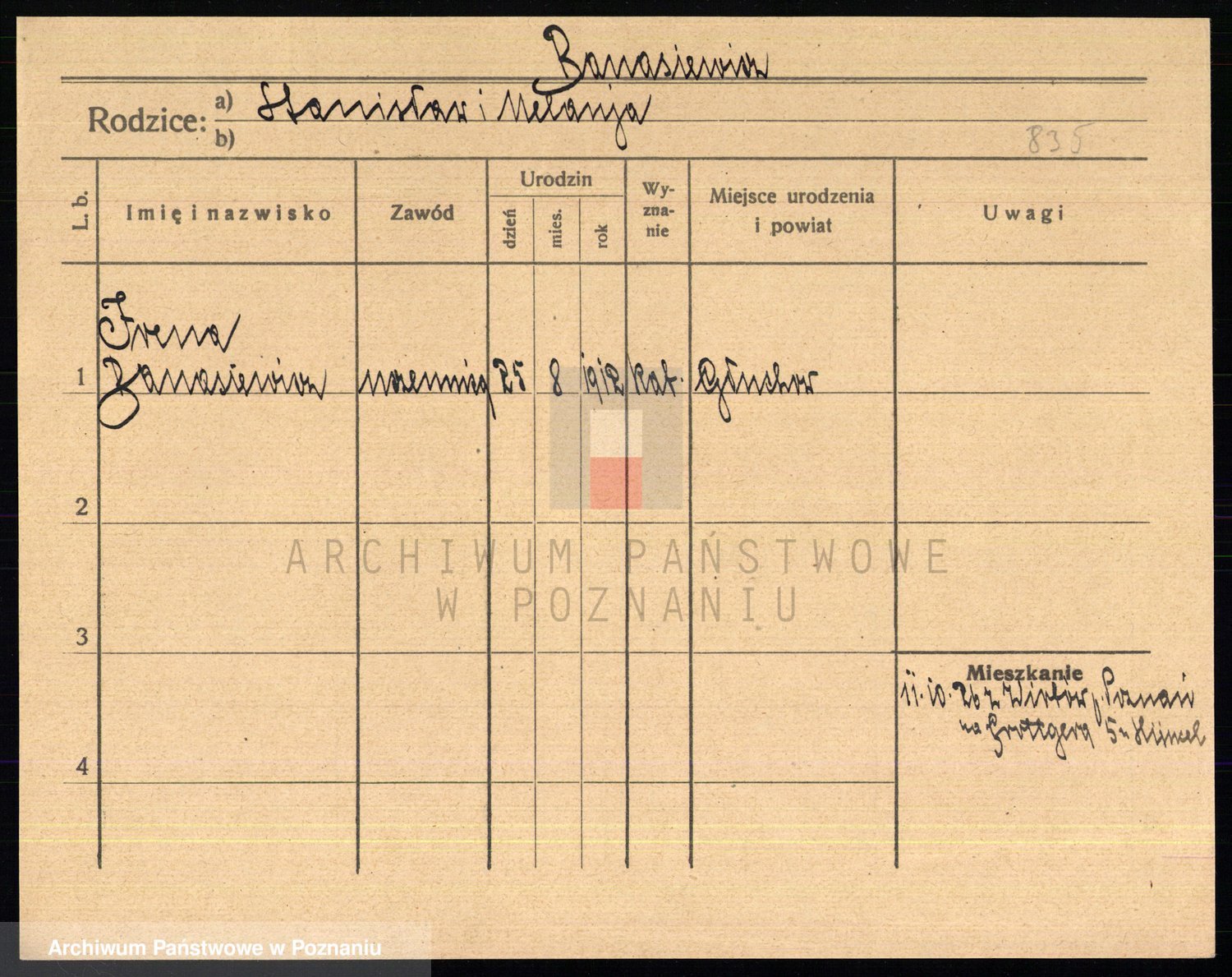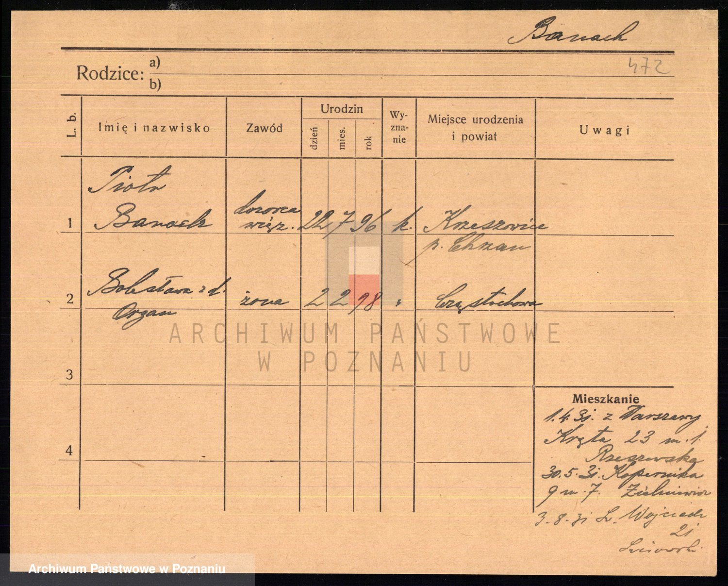 Podgląd karty osobowej dostępny jest po kliknięciu na nazwisko lub ikonkę karty. Można dokonywać powiększenia (ikony na górze) lub przechodzić między kolejnymi skanami (strzałki po bokach).