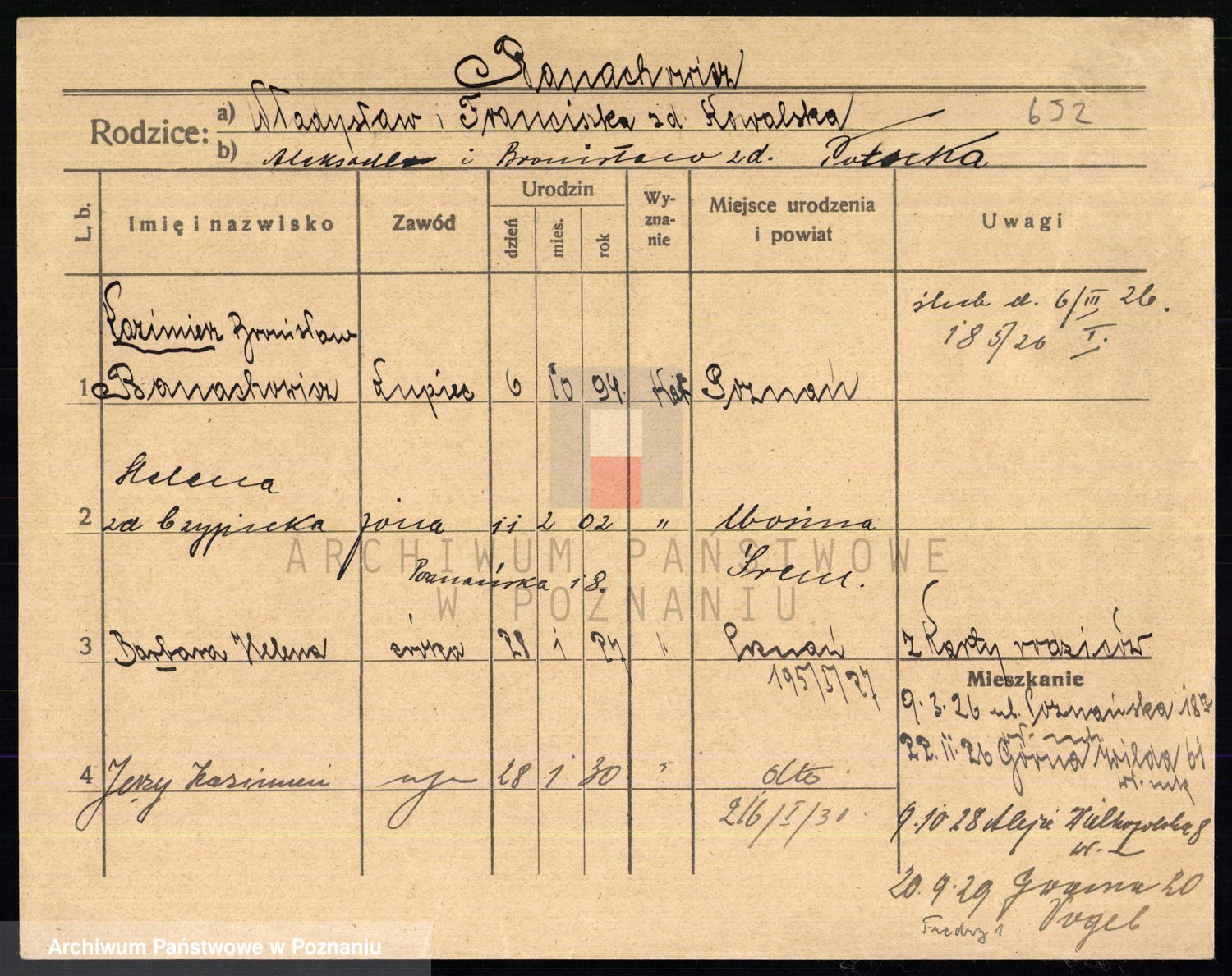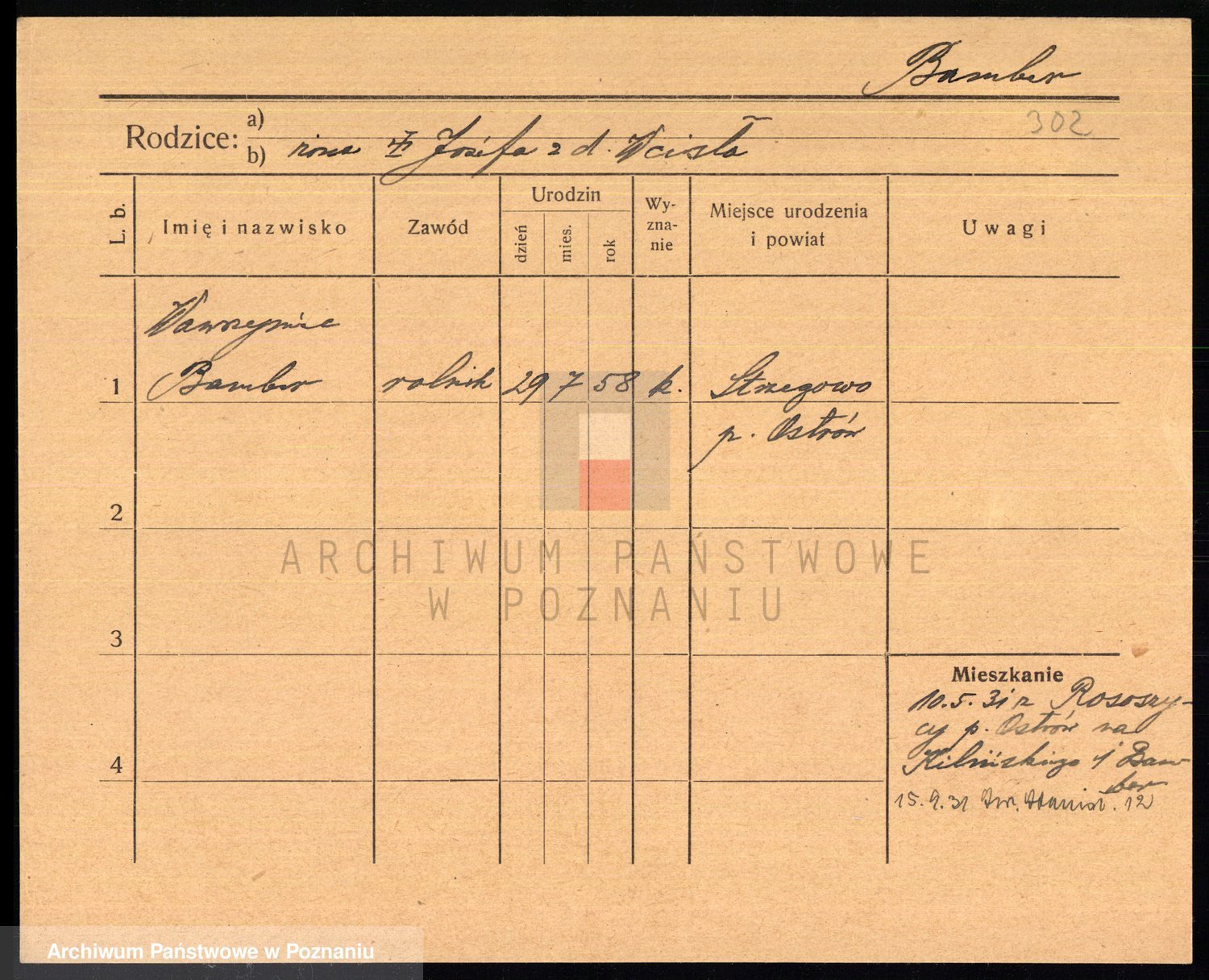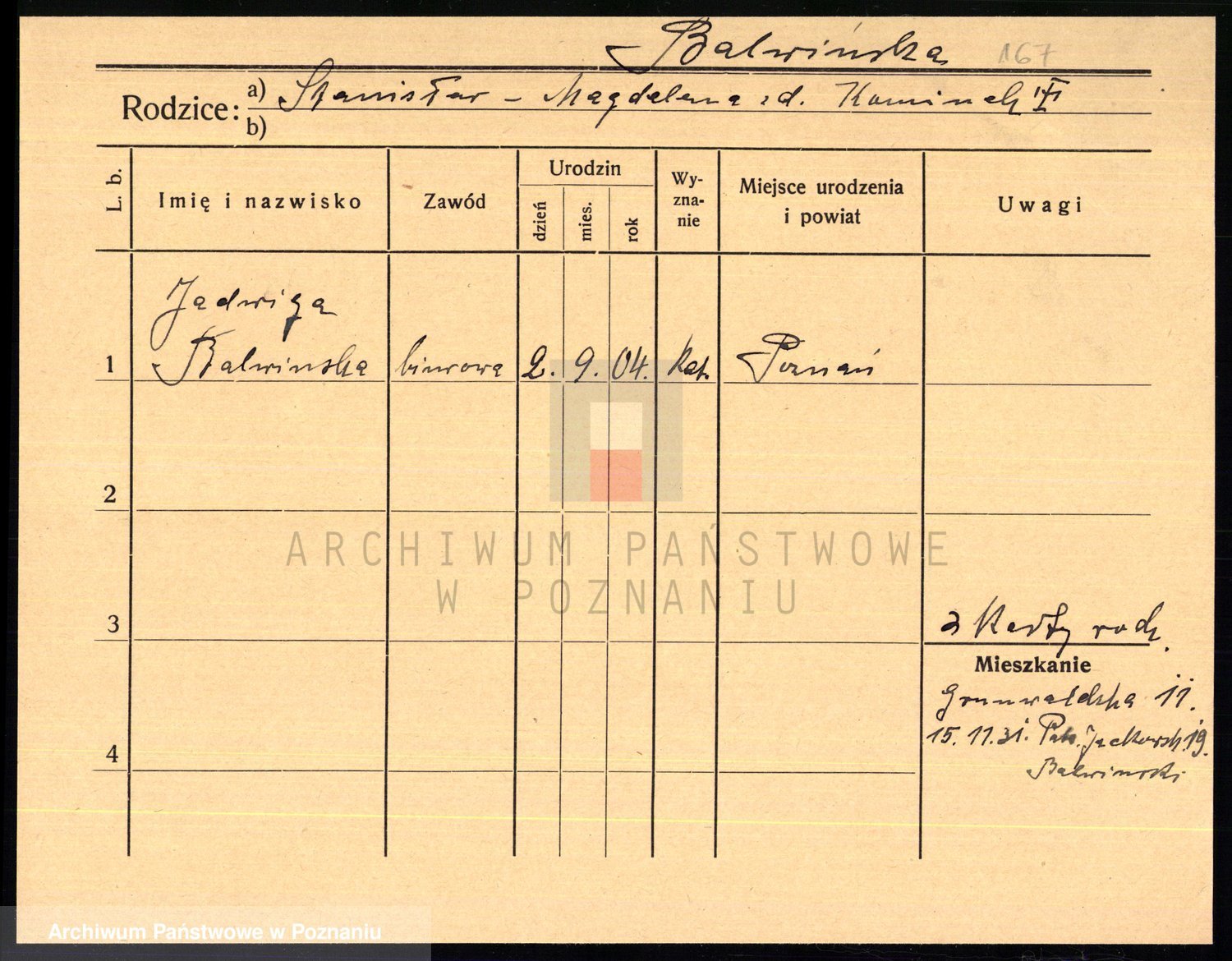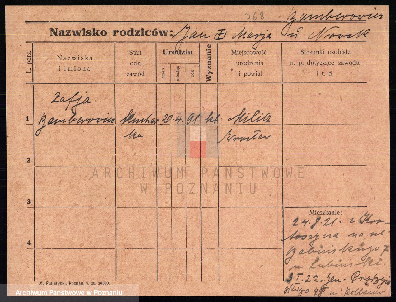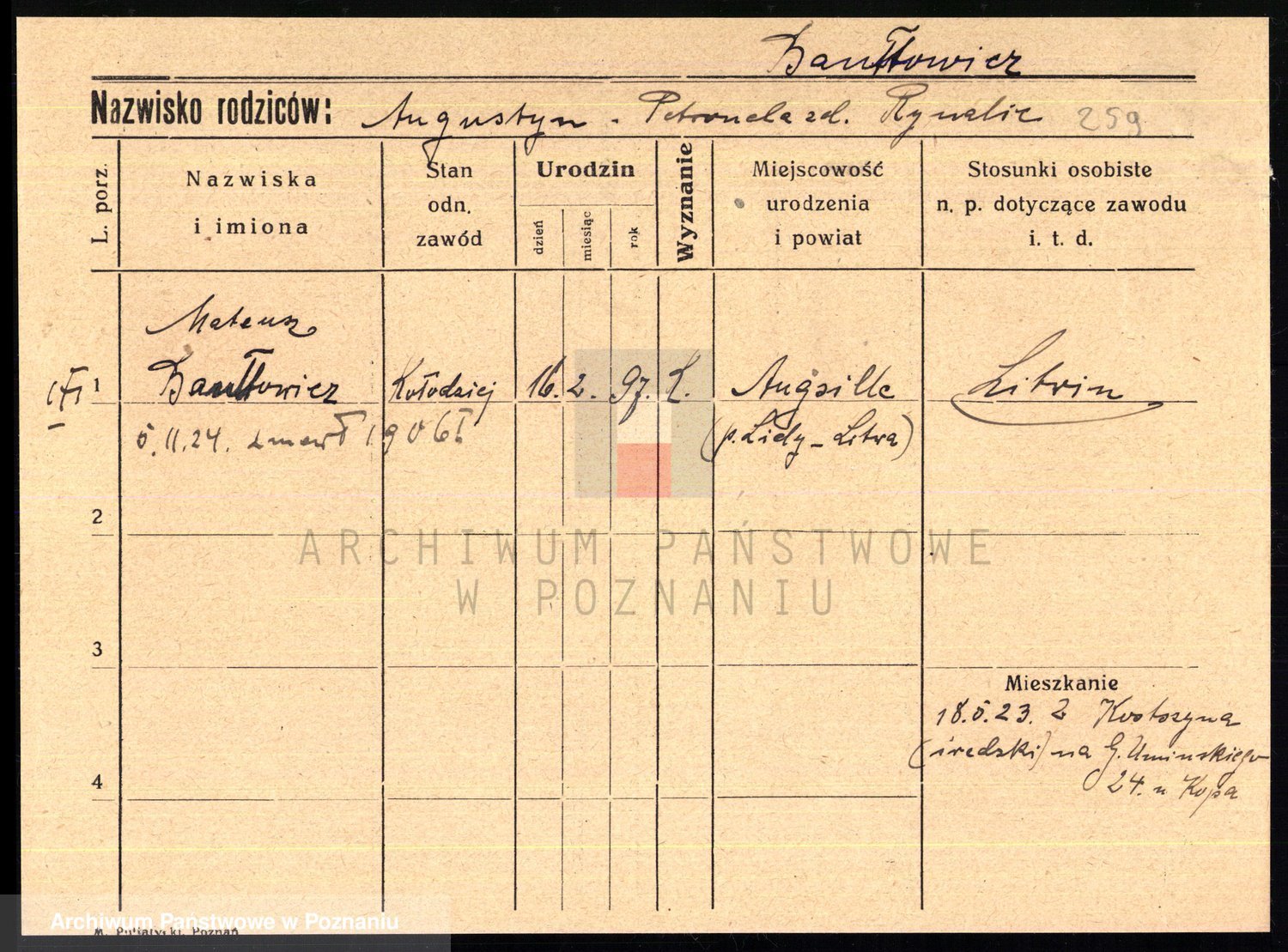 Podgląd karty osobowej dostępny jest po kliknięciu na nazwisko lub ikonkę karty. Można dokonywać powiększenia (ikony na górze) lub przechodzić między kolejnymi skanami (strzałki po bokach).
