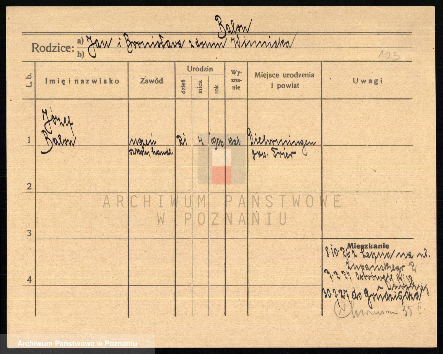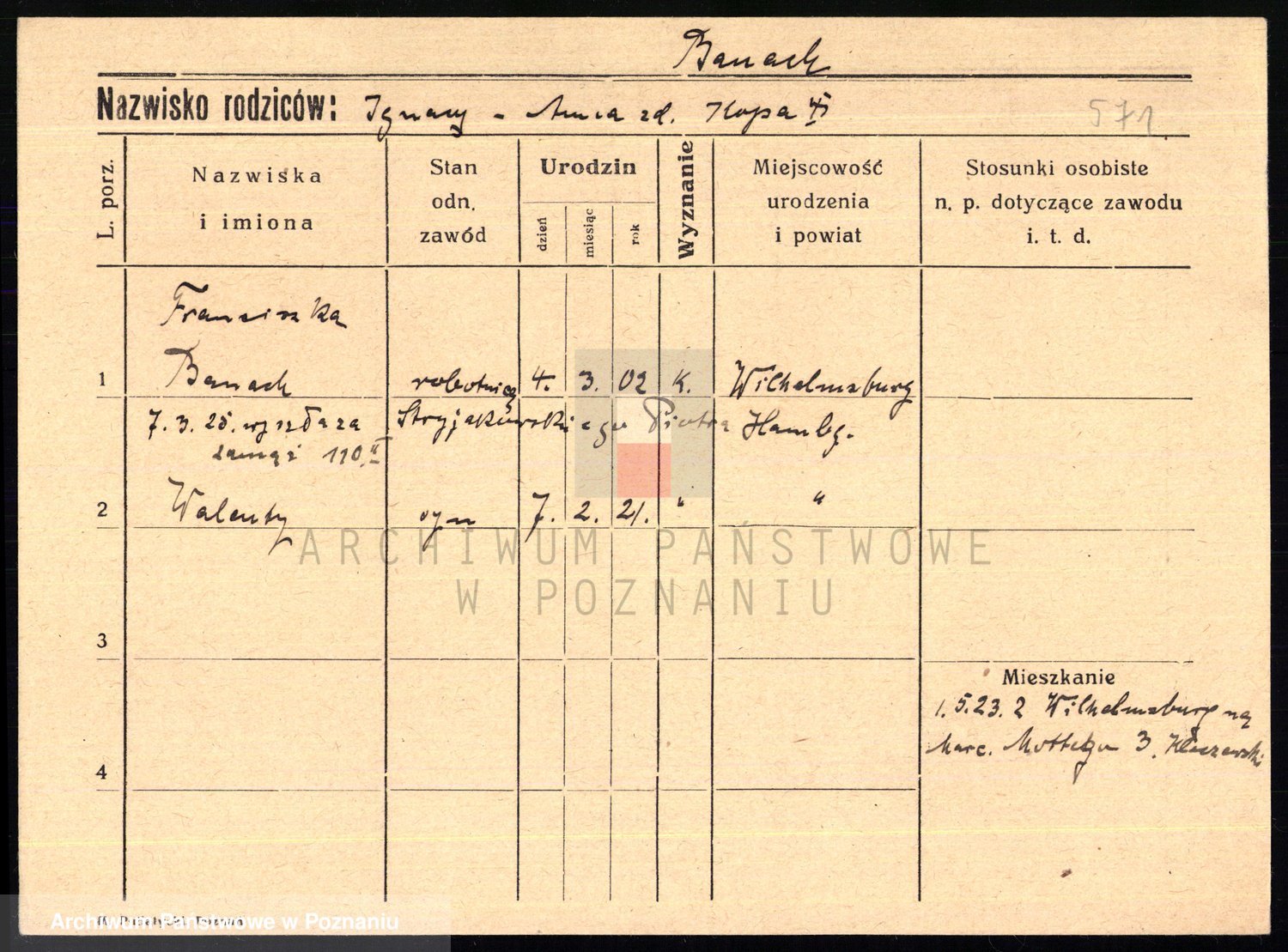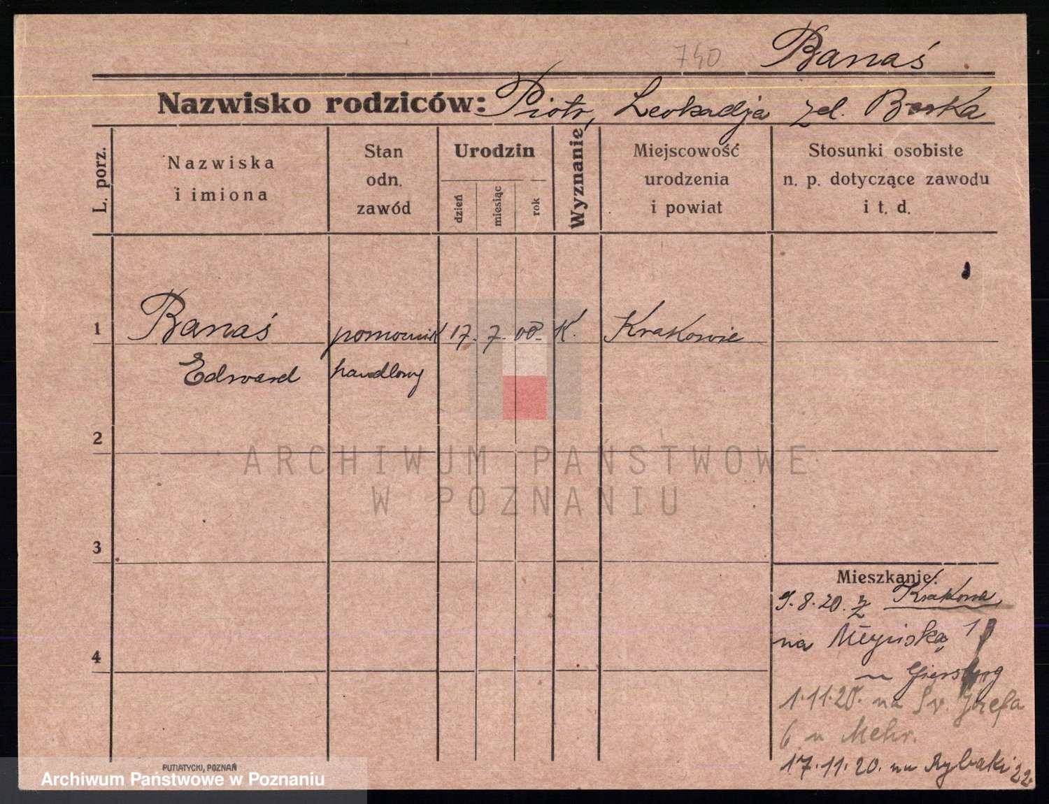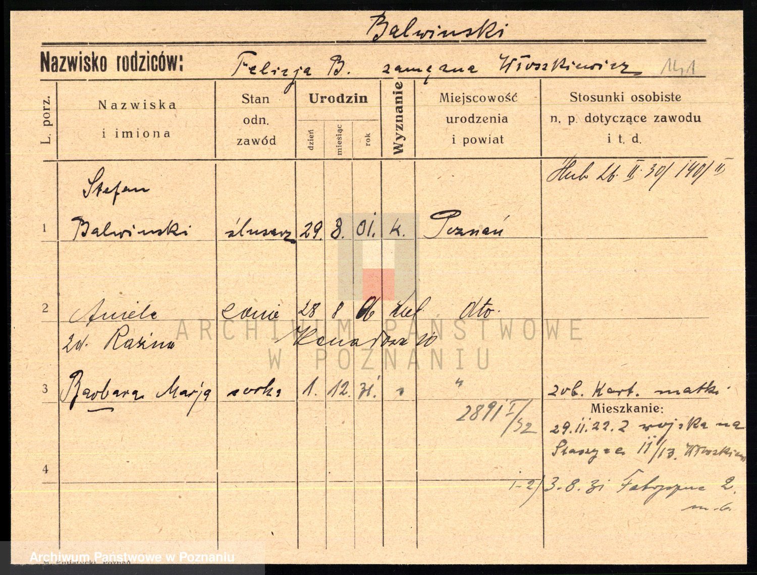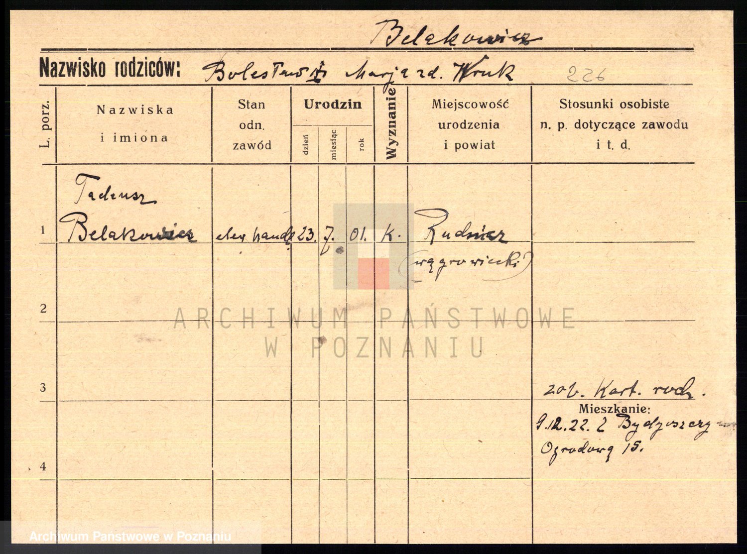 Podgląd karty osobowej dostępny jest po kliknięciu na nazwisko lub ikonkę karty. Można dokonywać powiększenia (ikony na górze) lub przechodzić między kolejnymi skanami (strzałki po bokach).