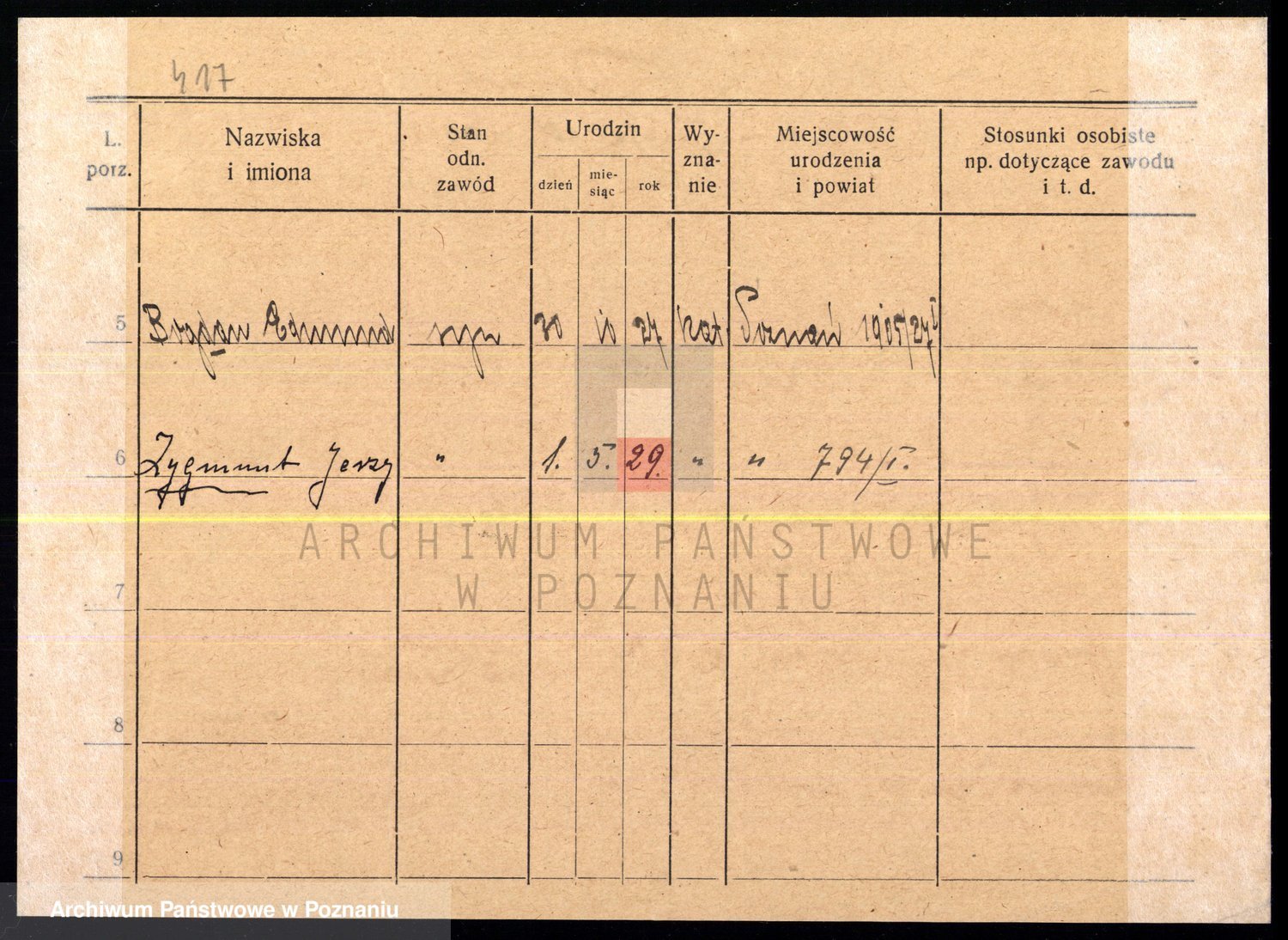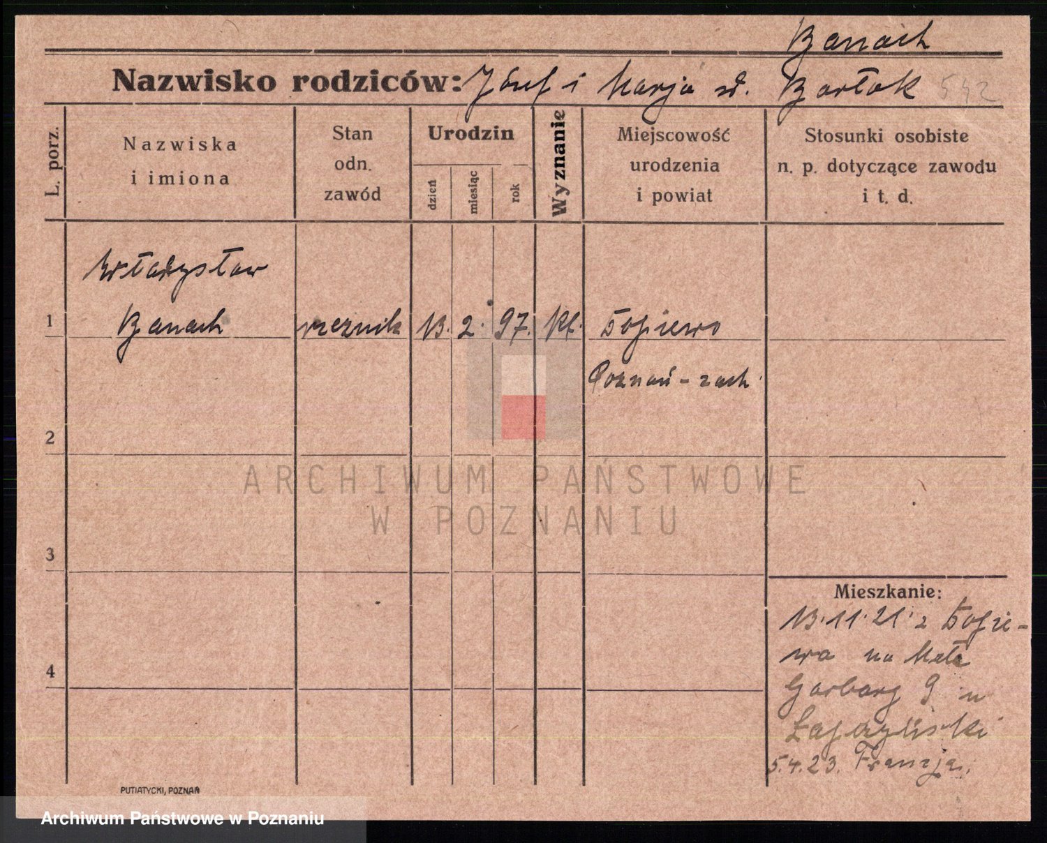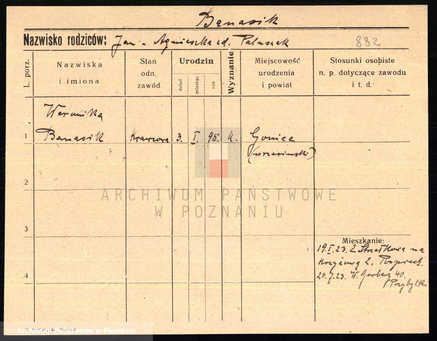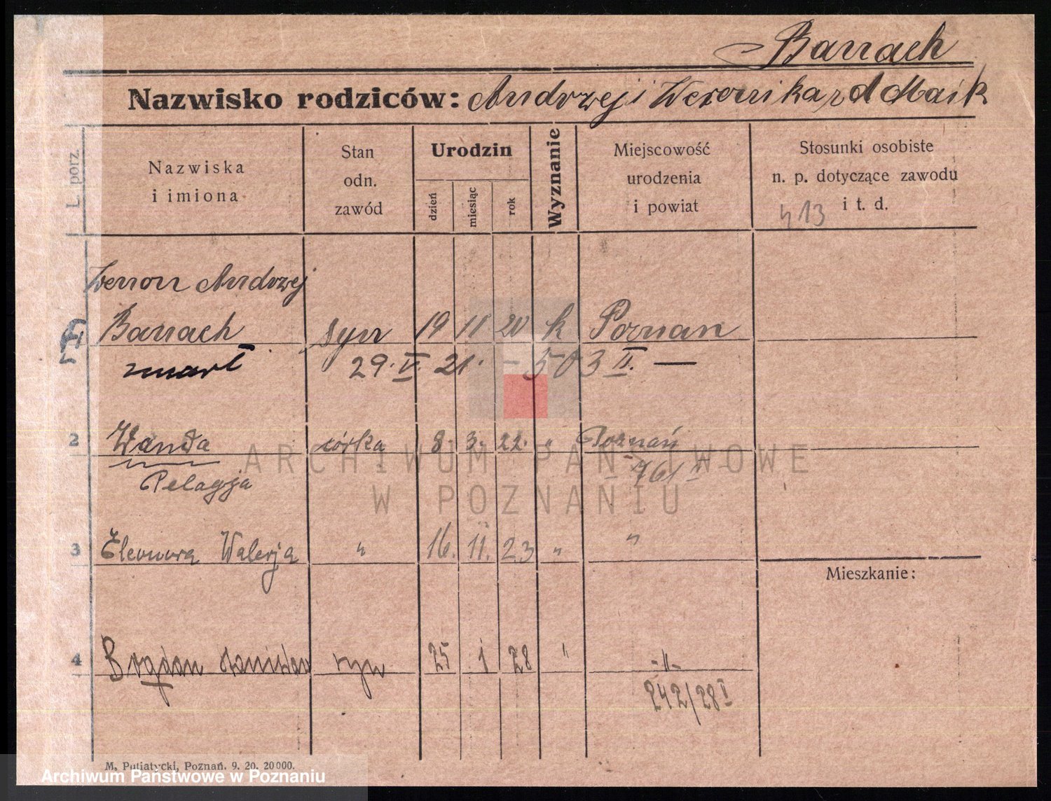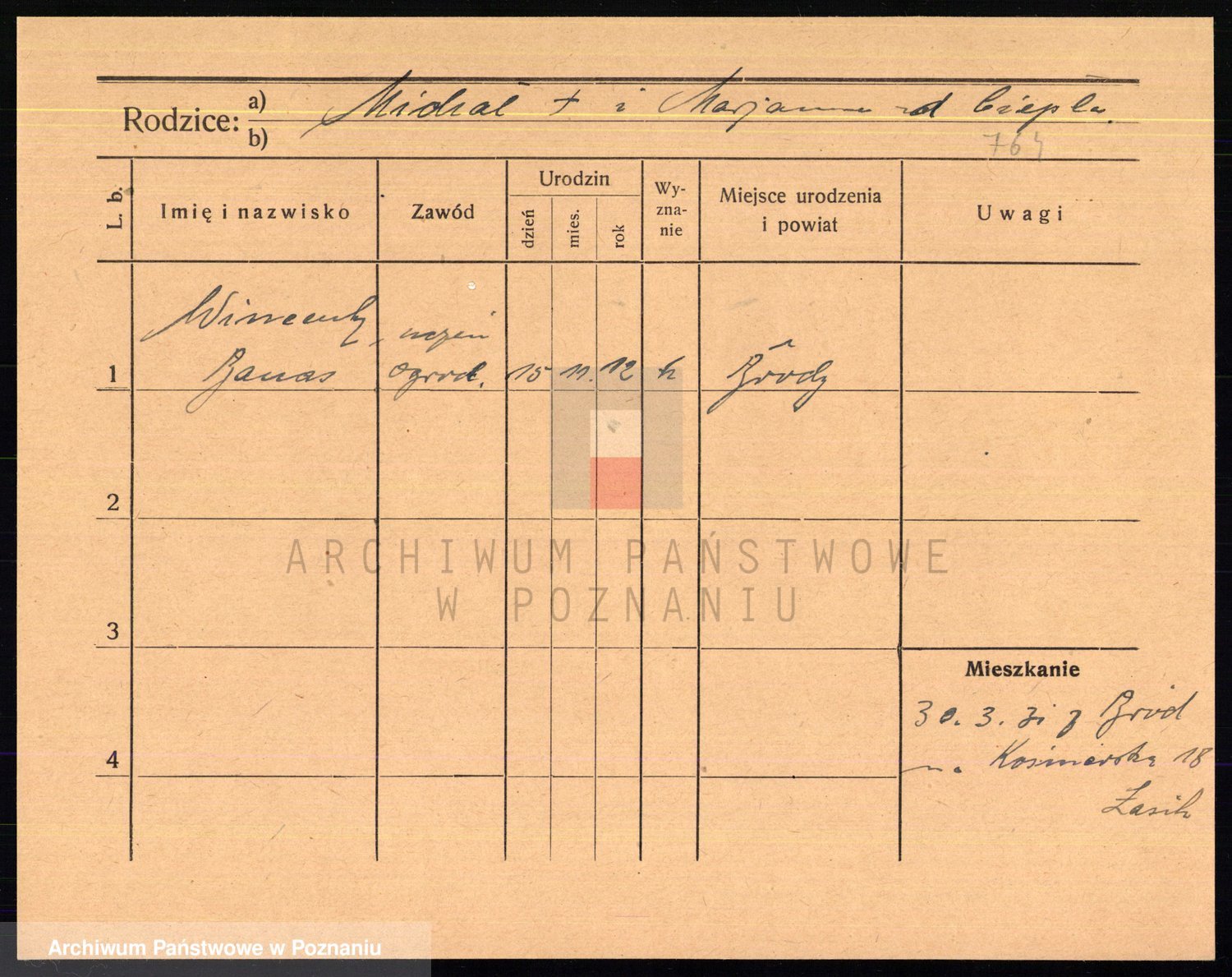 Podgląd karty osobowej dostępny jest po kliknięciu na nazwisko lub ikonkę karty. Można dokonywać powiększenia (ikony na górze) lub przechodzić między kolejnymi skanami (strzałki po bokach).