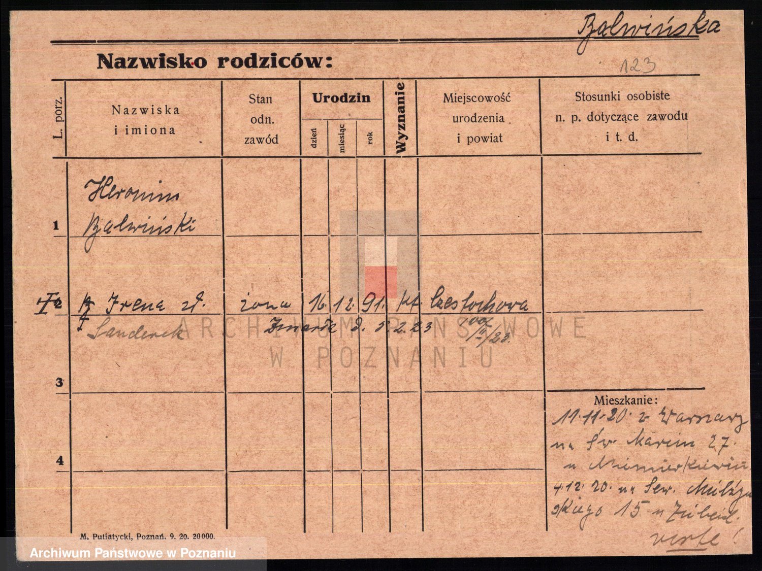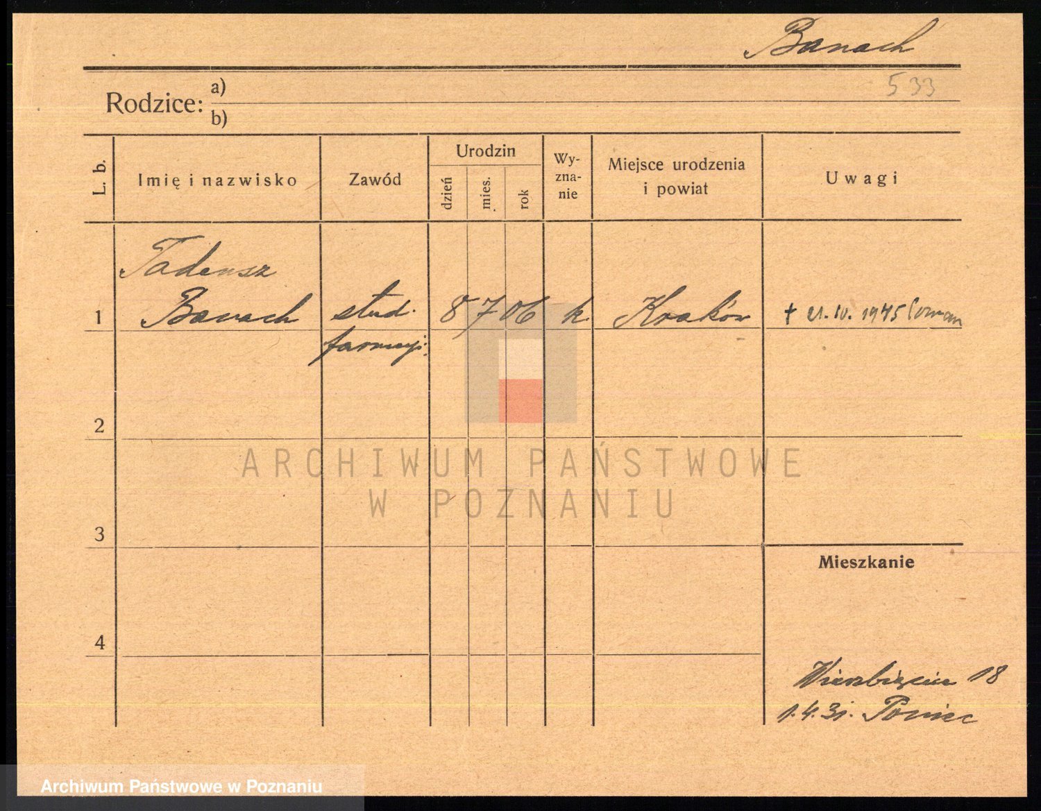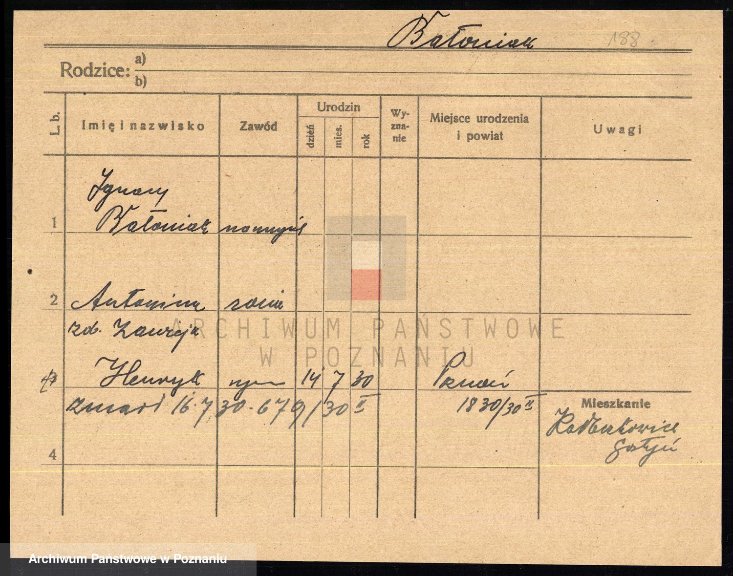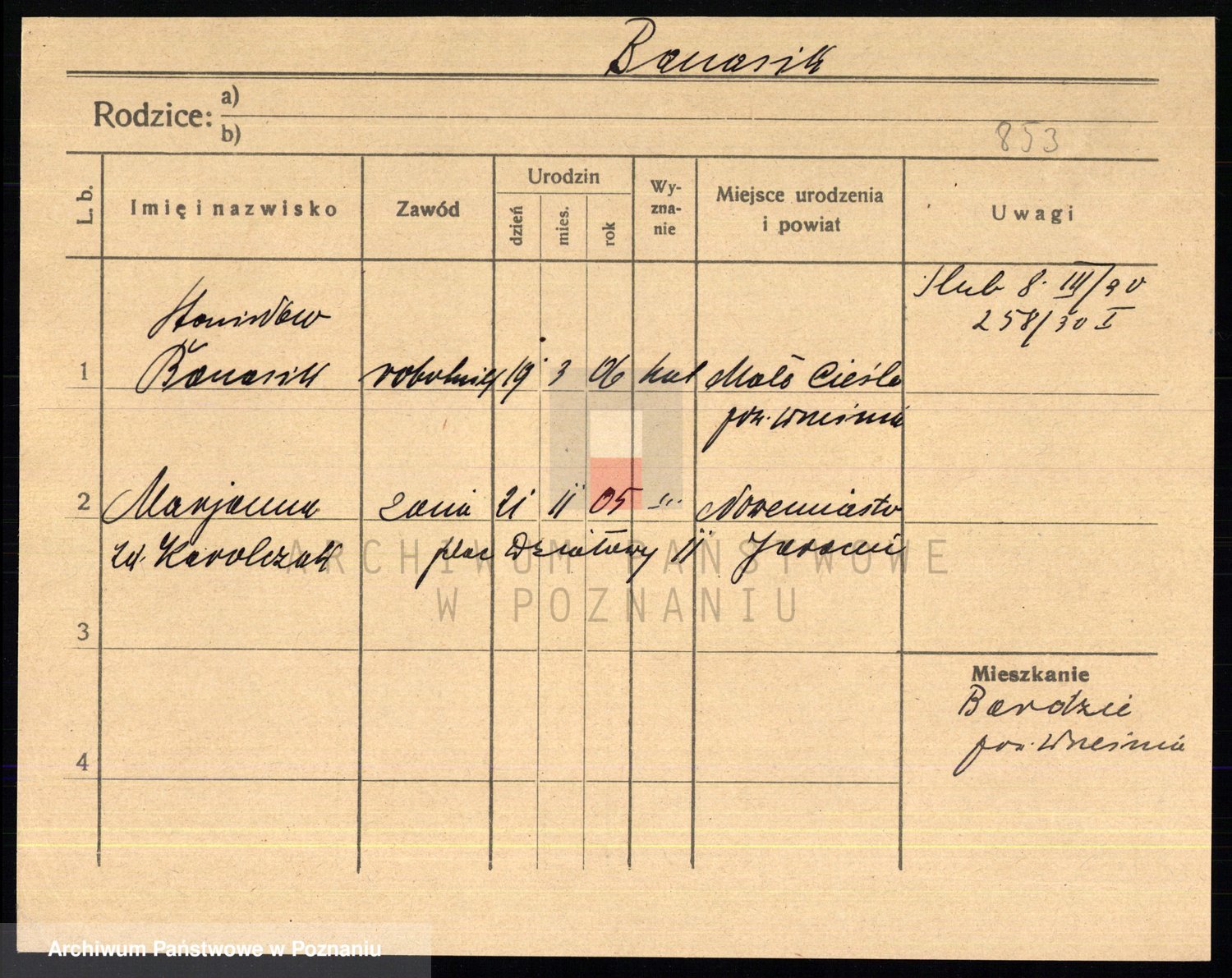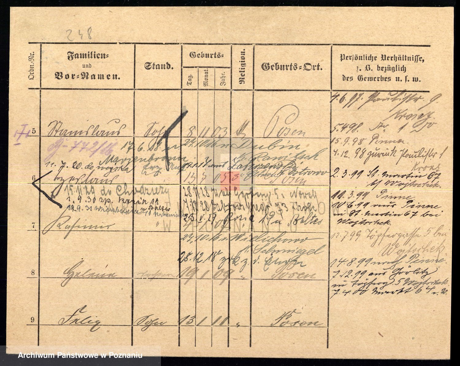 Podgląd karty osobowej dostępny jest po kliknięciu na nazwisko lub ikonkę karty. Można dokonywać powiększenia (ikony na górze) lub przechodzić między kolejnymi skanami (strzałki po bokach).