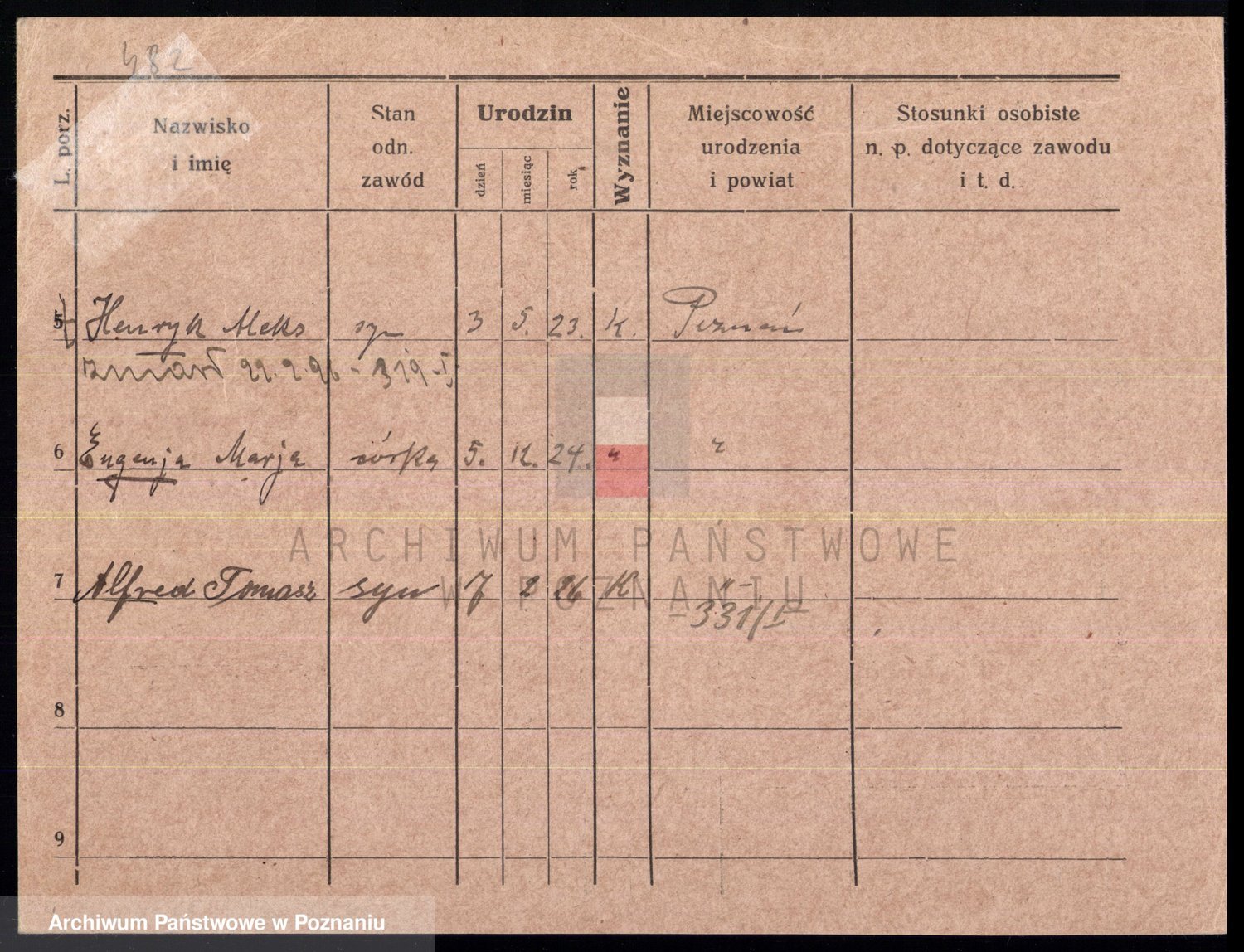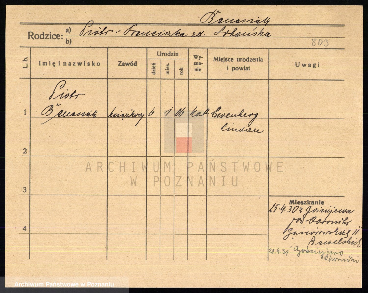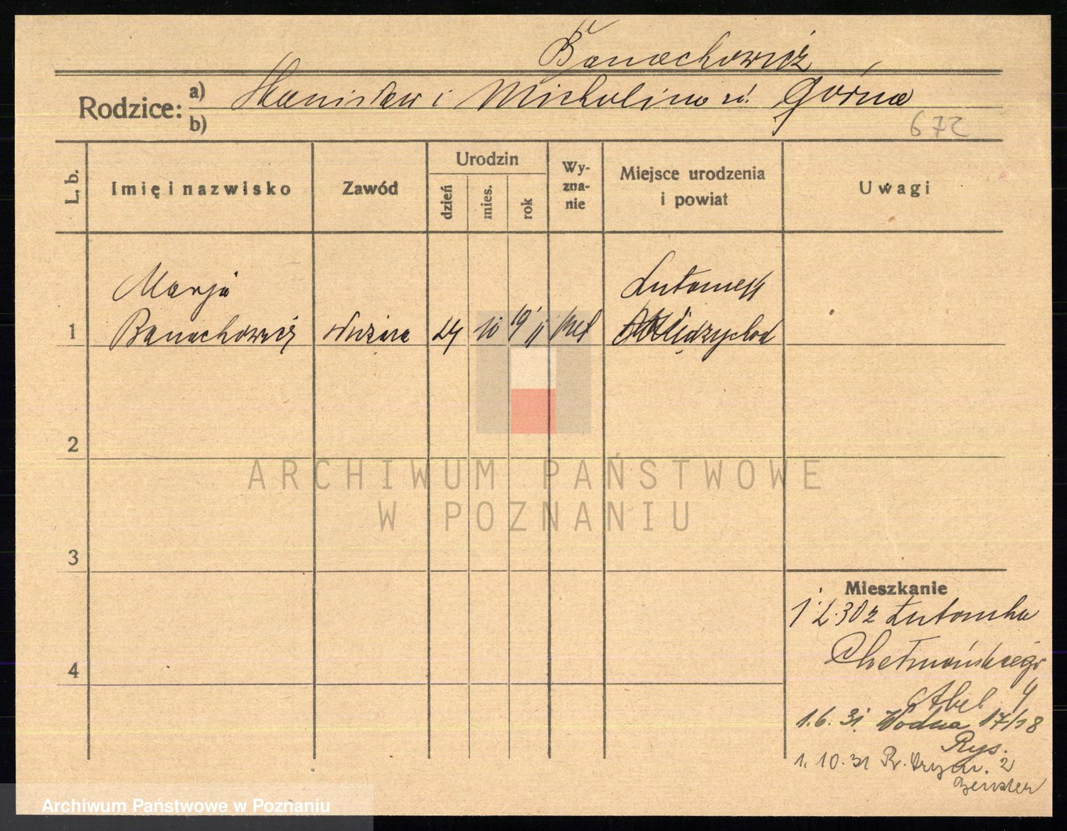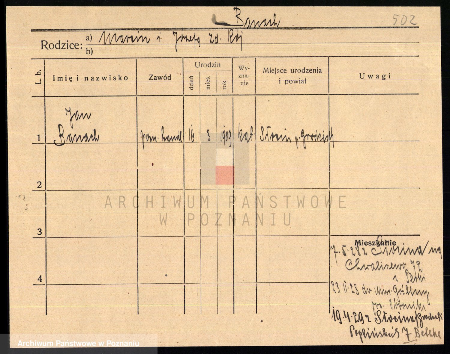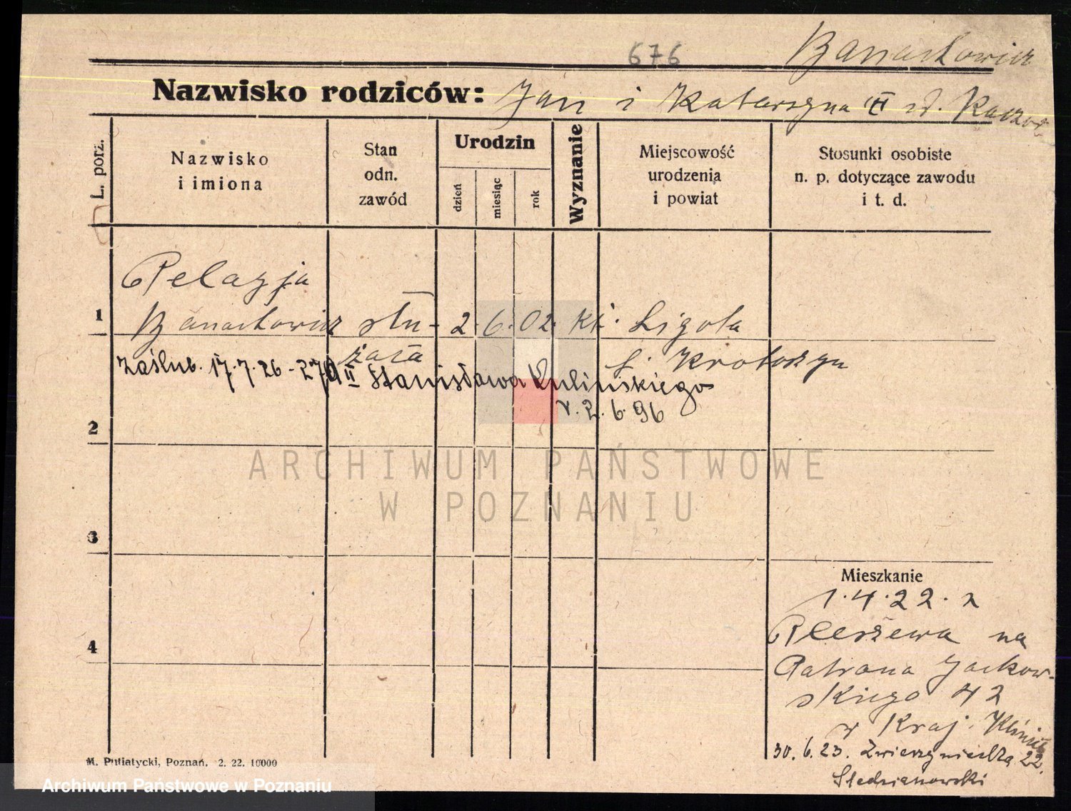 Podgląd karty osobowej dostępny jest po kliknięciu na nazwisko lub ikonkę karty. Można dokonywać powiększenia (ikony na górze) lub przechodzić między kolejnymi skanami (strzałki po bokach).