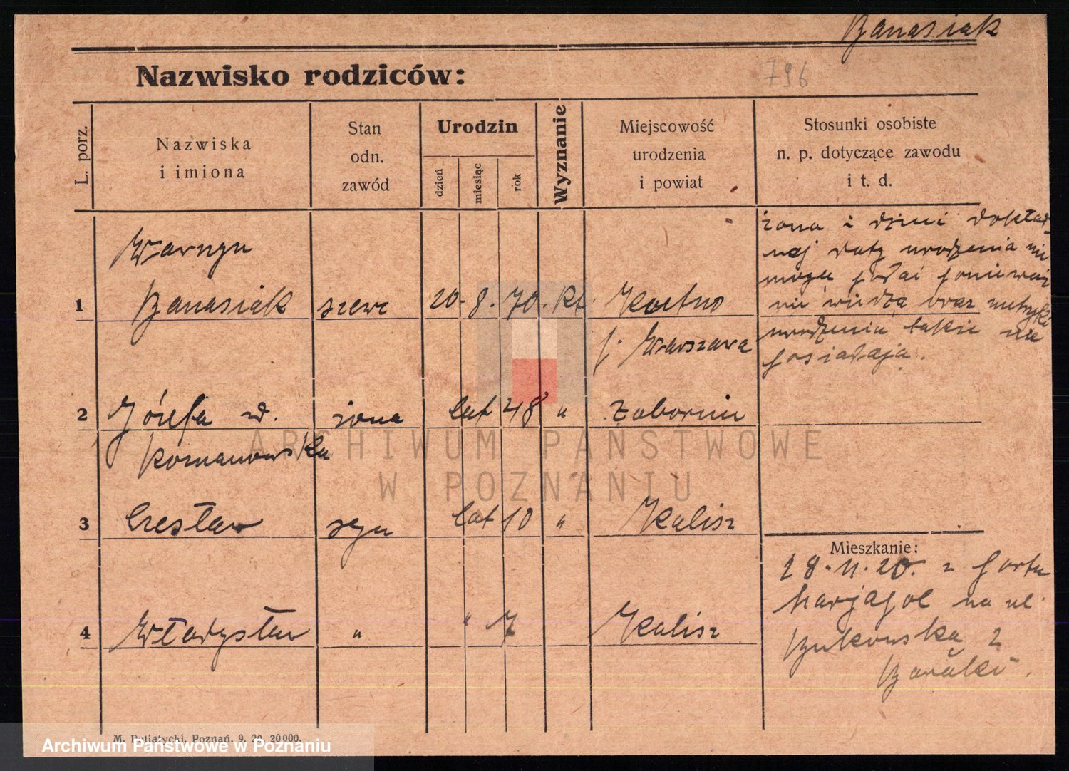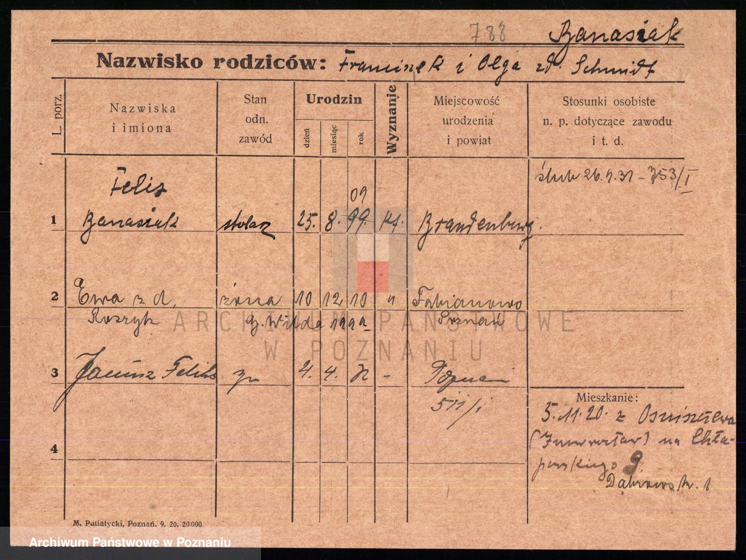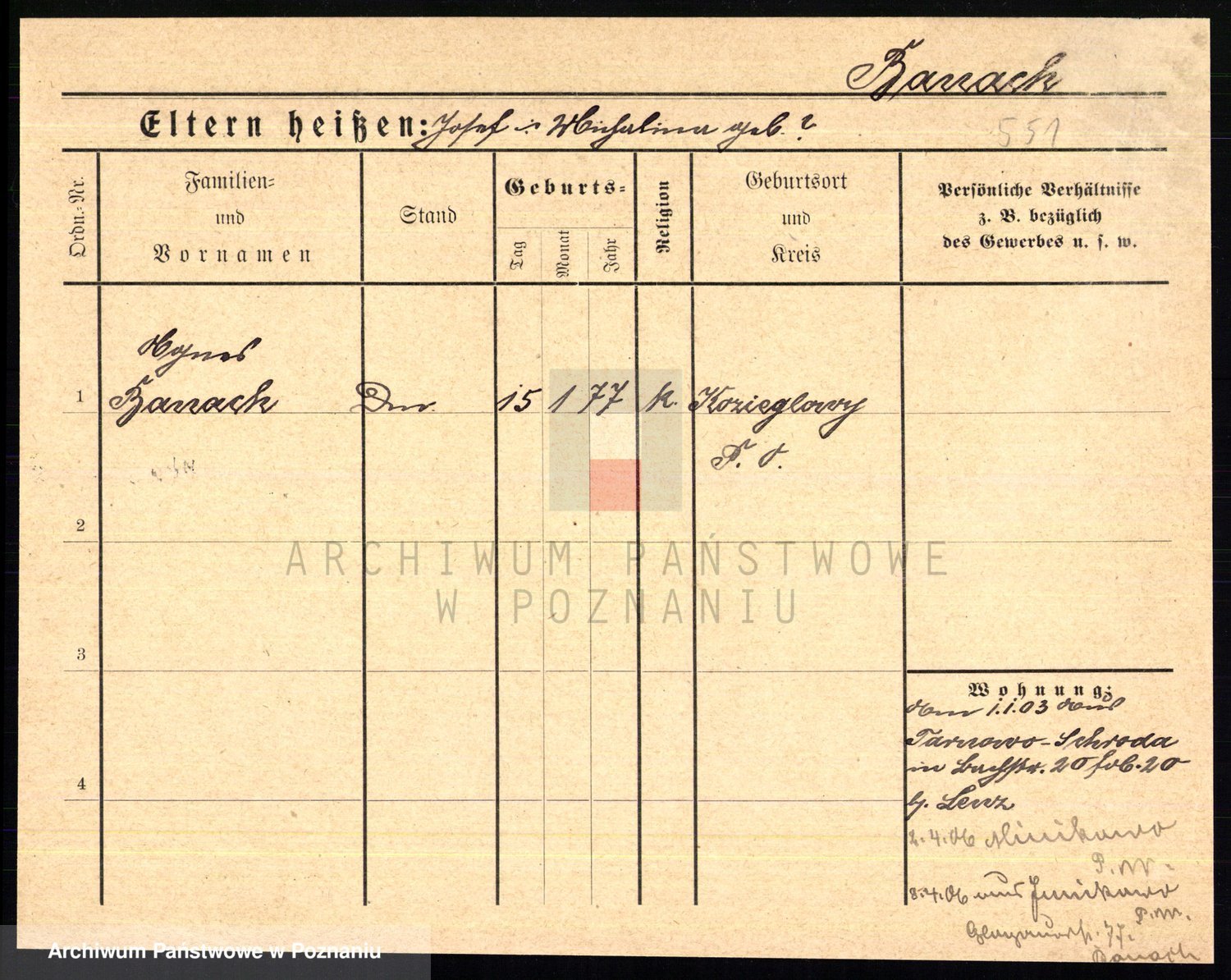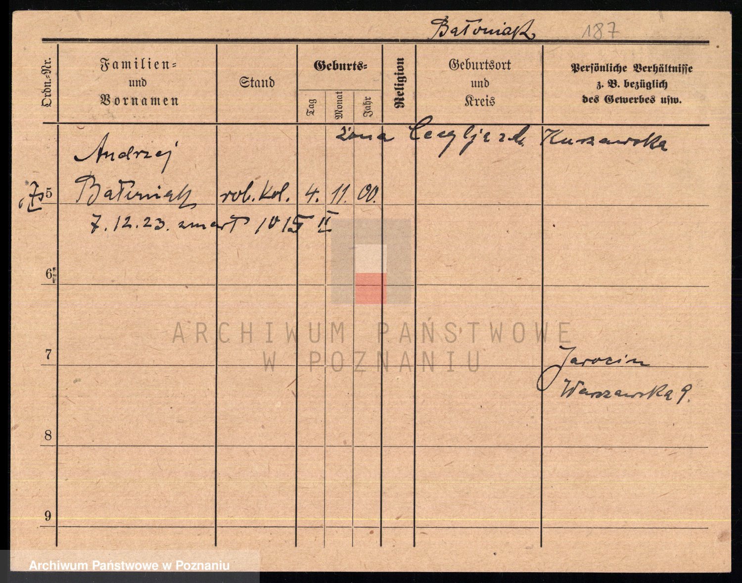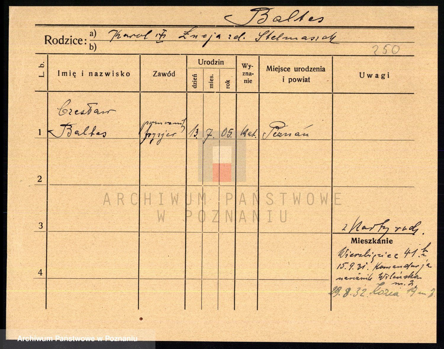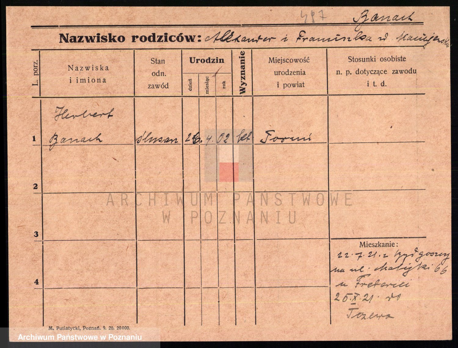 Podgląd karty osobowej dostępny jest po kliknięciu na nazwisko lub ikonkę karty. Można dokonywać powiększenia (ikony na górze) lub przechodzić między kolejnymi skanami (strzałki po bokach).