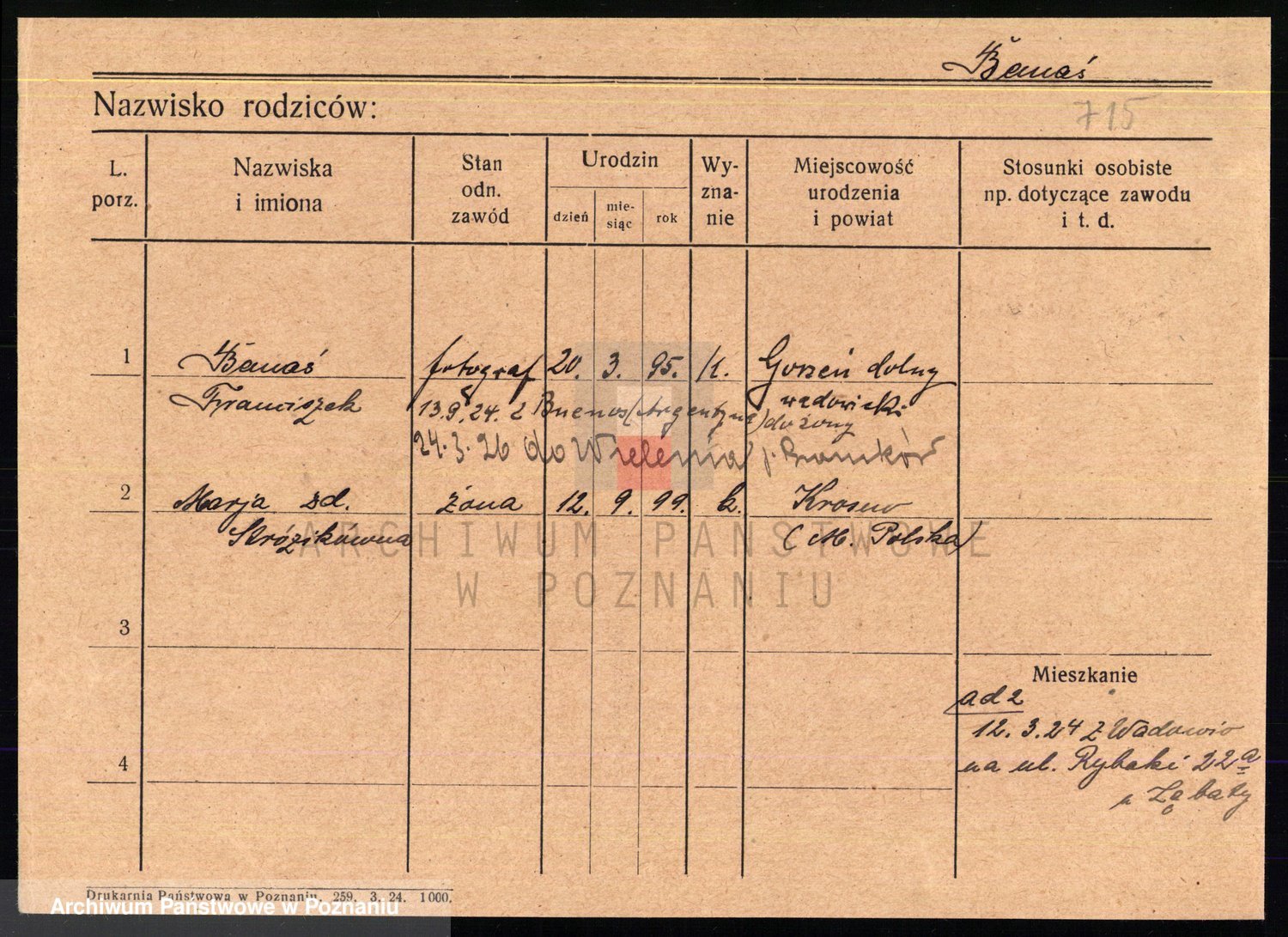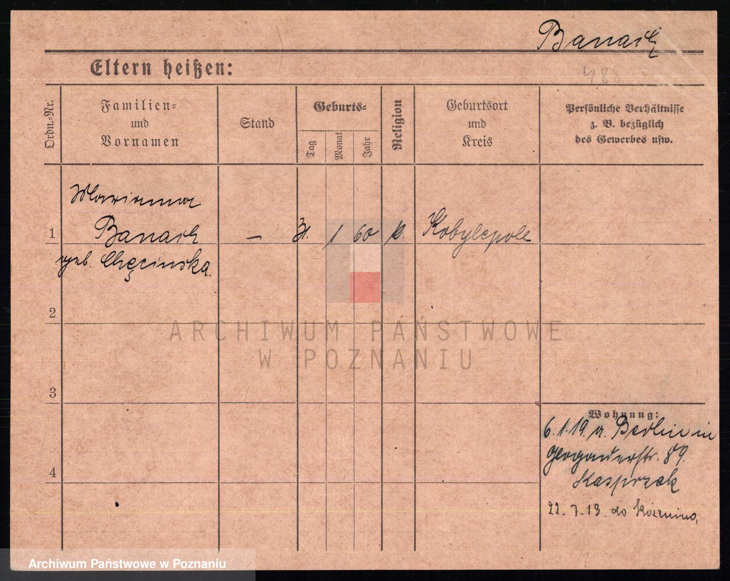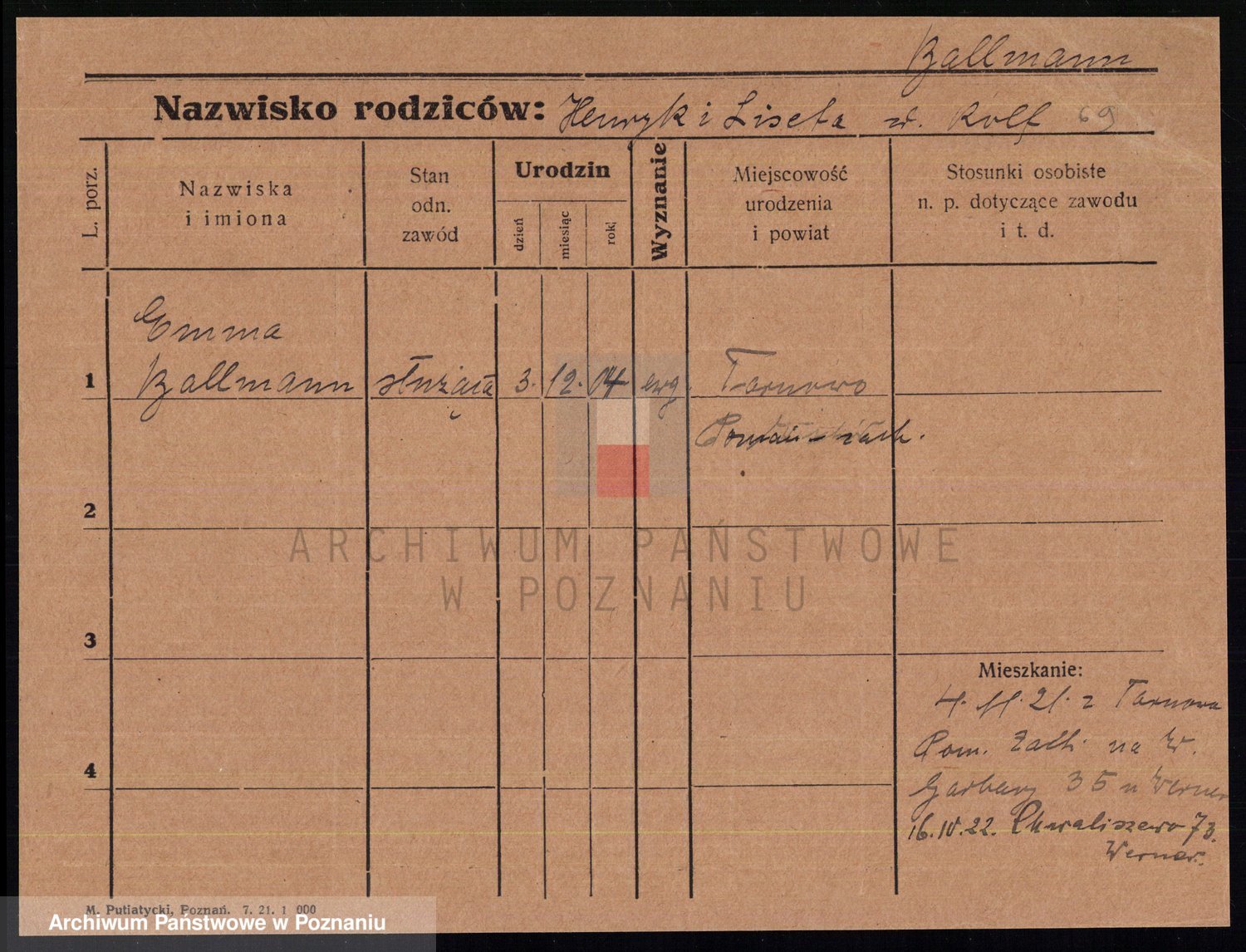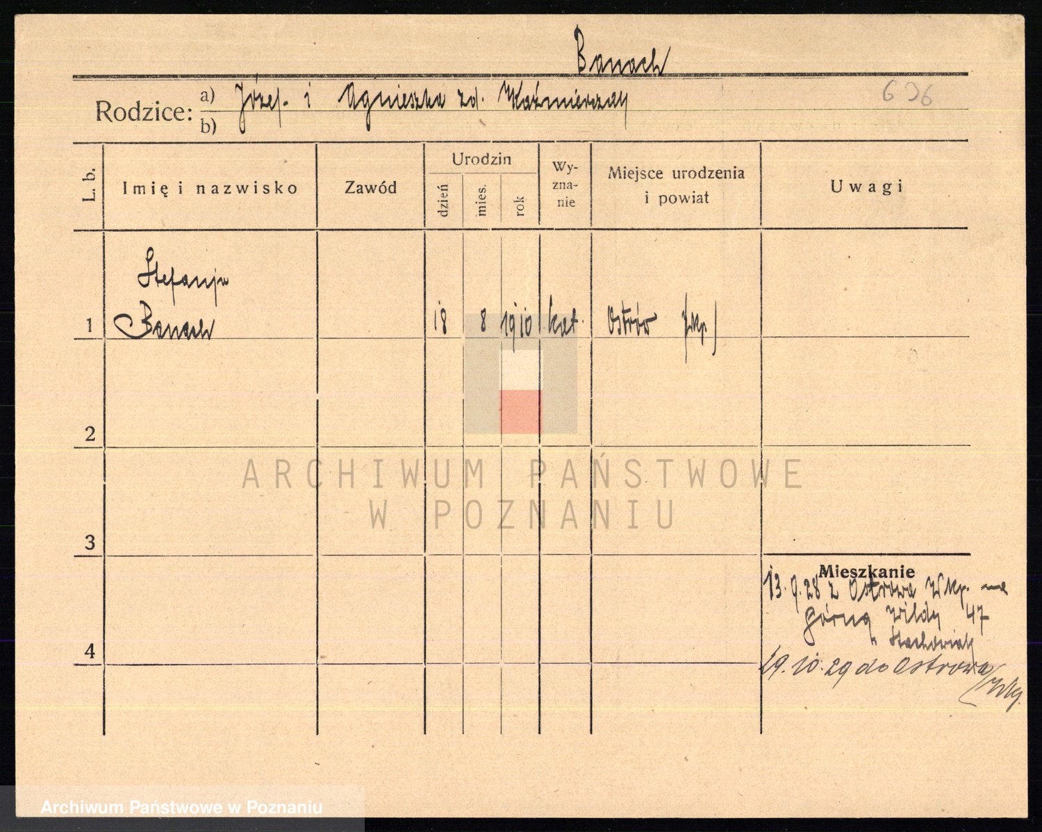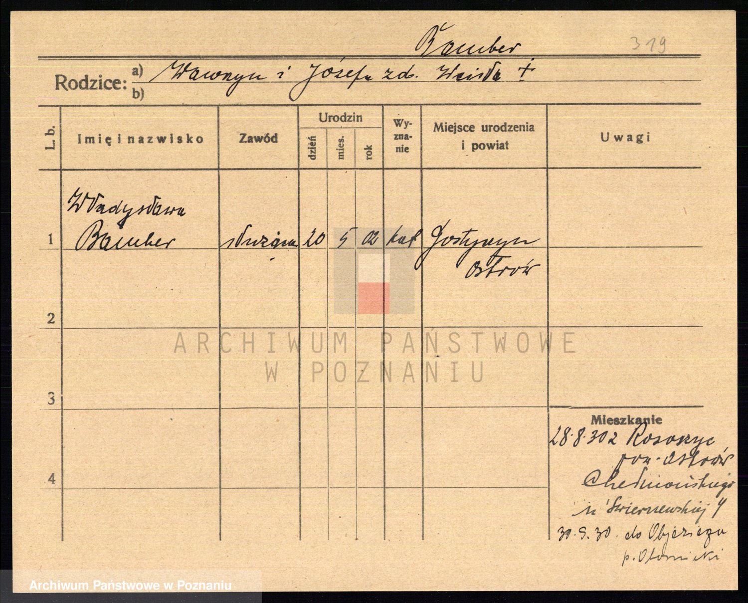 Podgląd karty osobowej dostępny jest po kliknięciu na nazwisko lub ikonkę karty. Można dokonywać powiększenia (ikony na górze) lub przechodzić między kolejnymi skanami (strzałki po bokach).