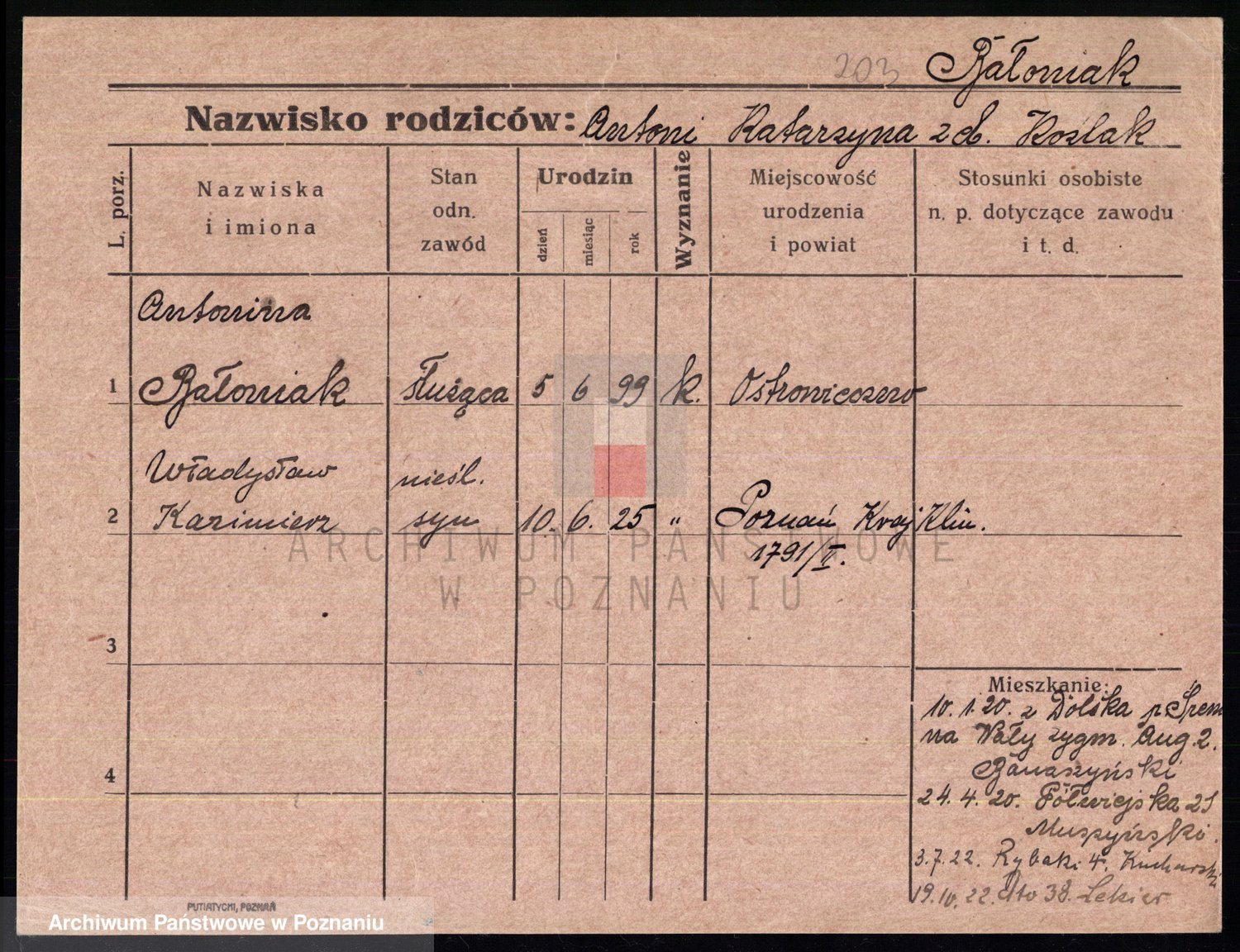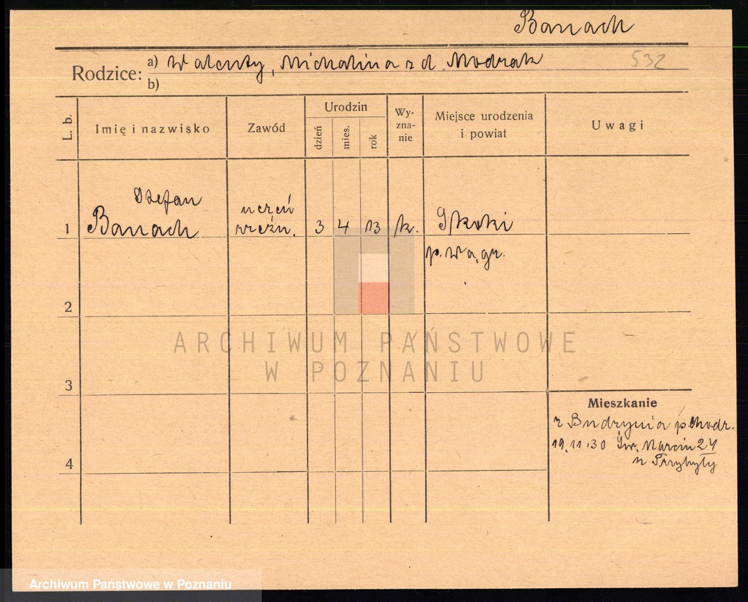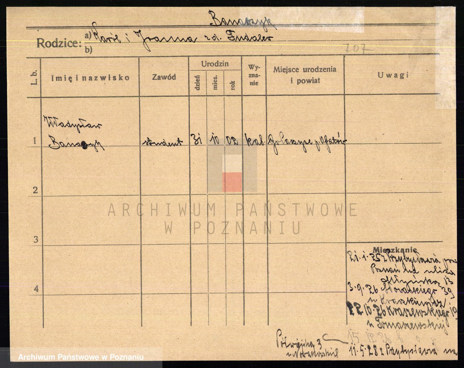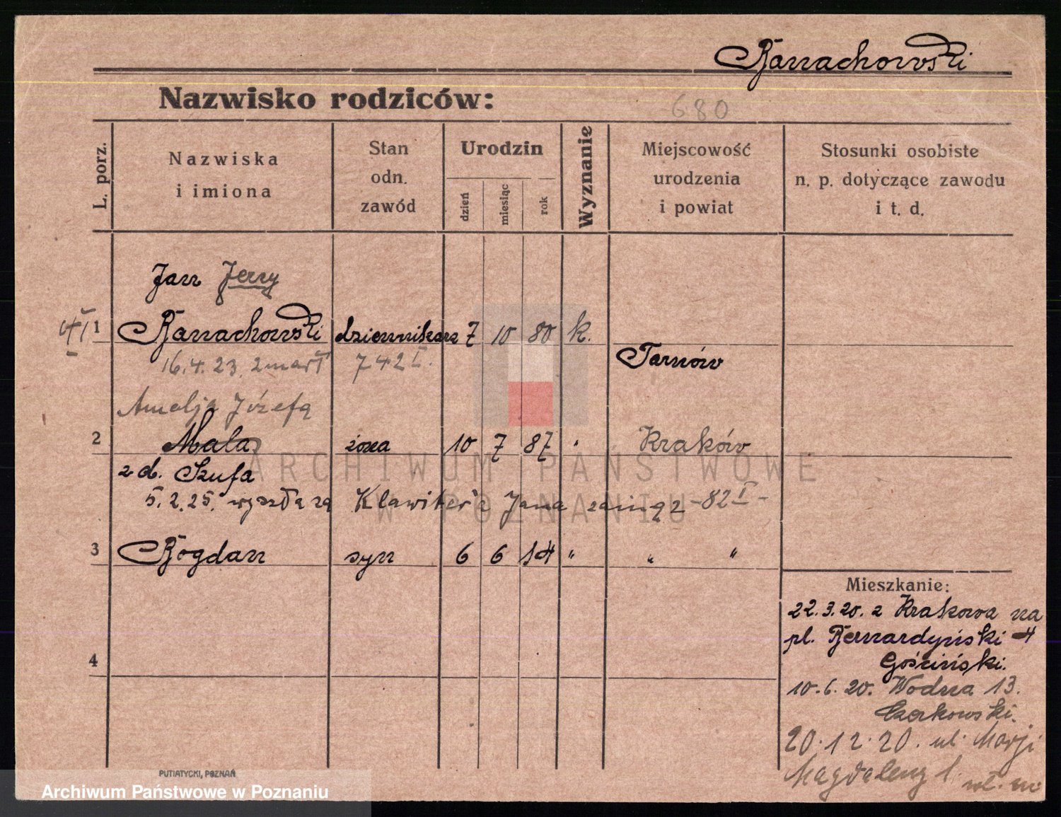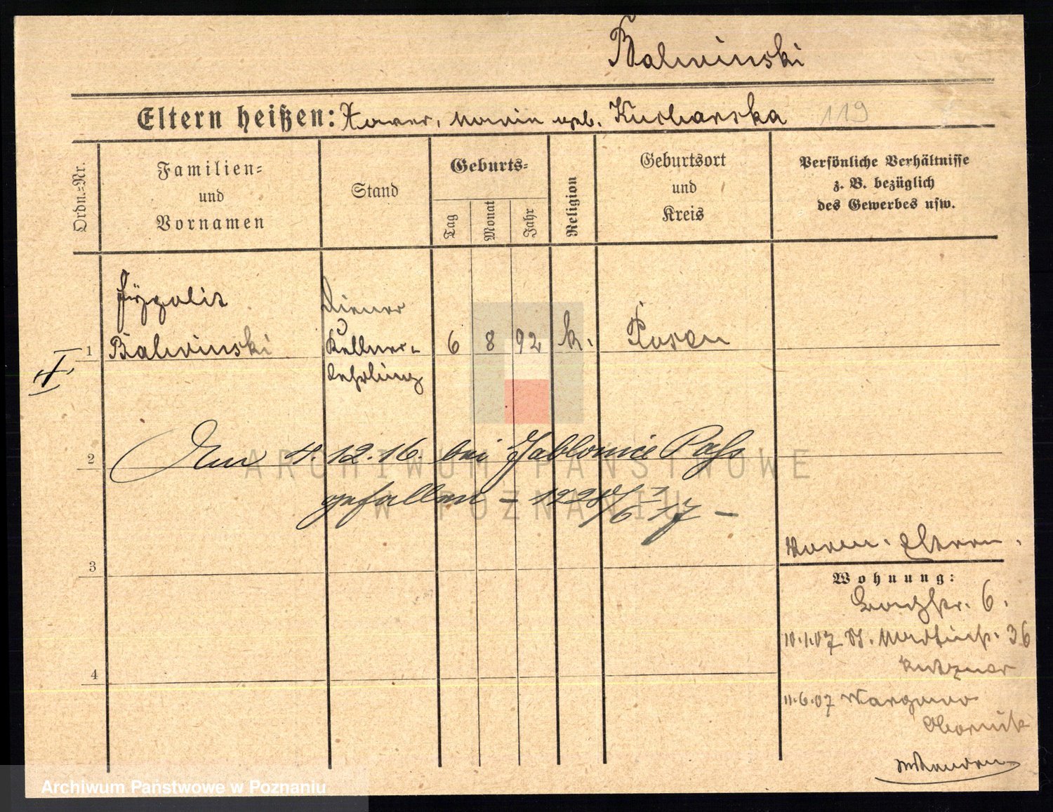 Podgląd karty osobowej dostępny jest po kliknięciu na nazwisko lub ikonkę karty. Można dokonywać powiększenia (ikony na górze) lub przechodzić między kolejnymi skanami (strzałki po bokach).