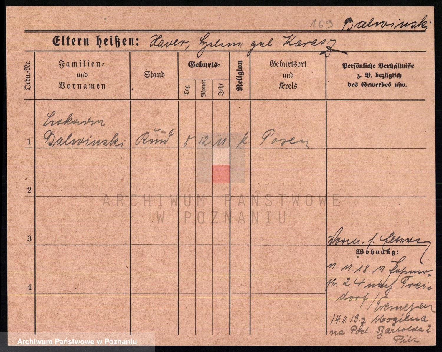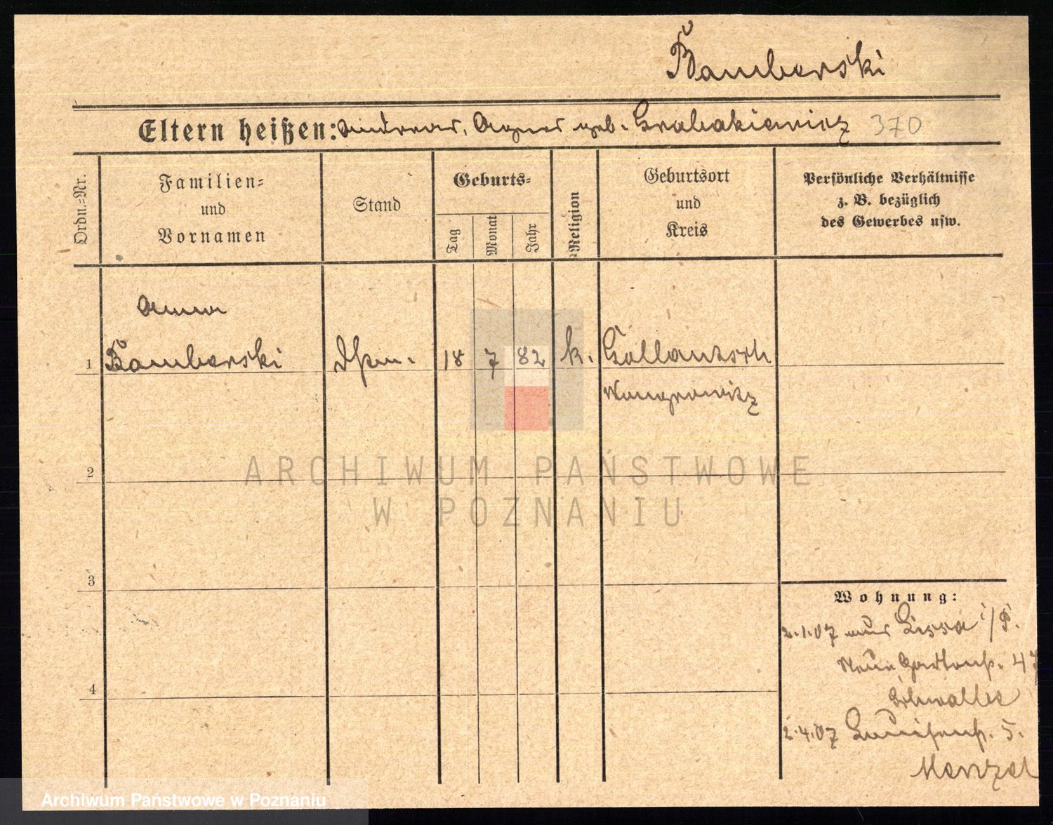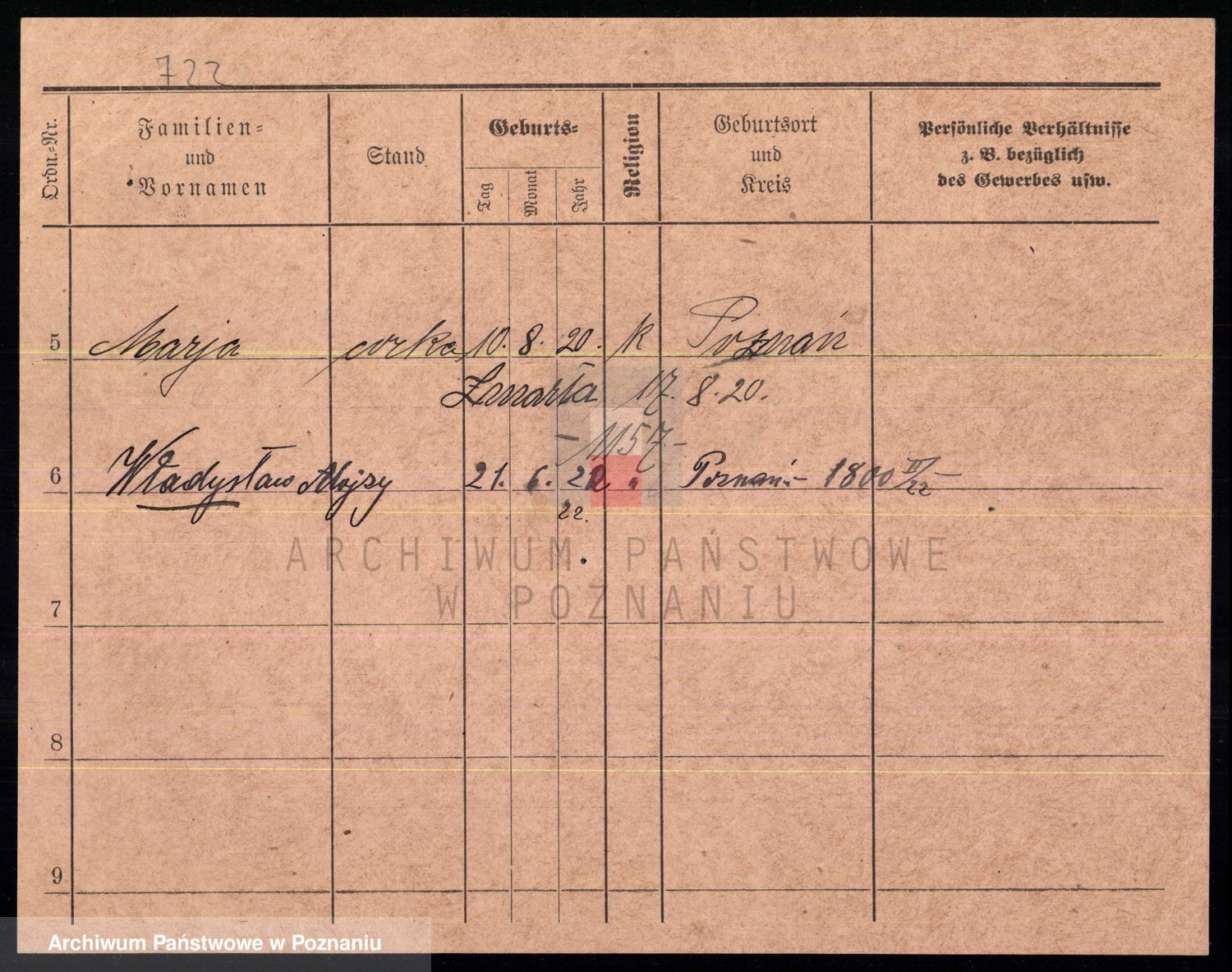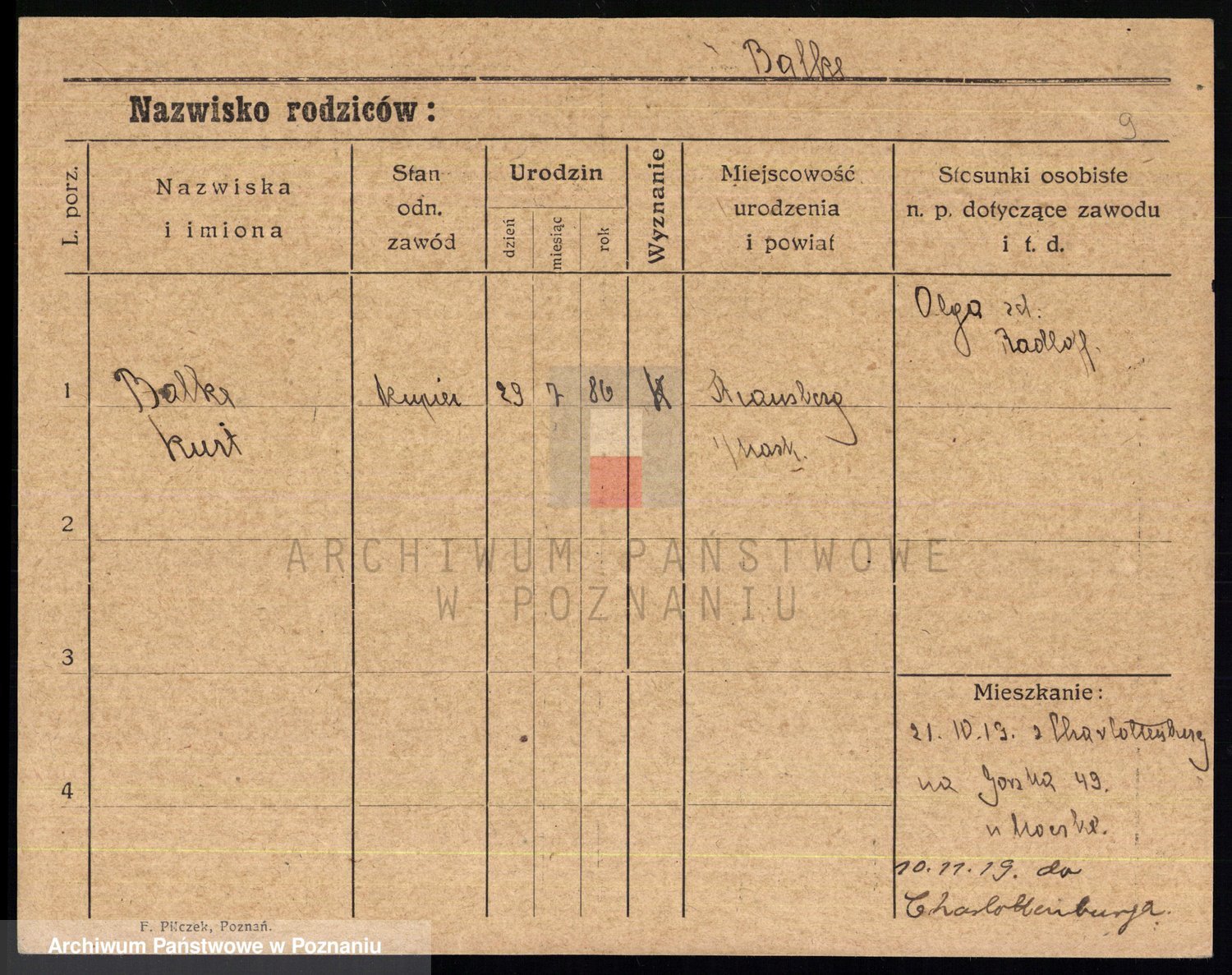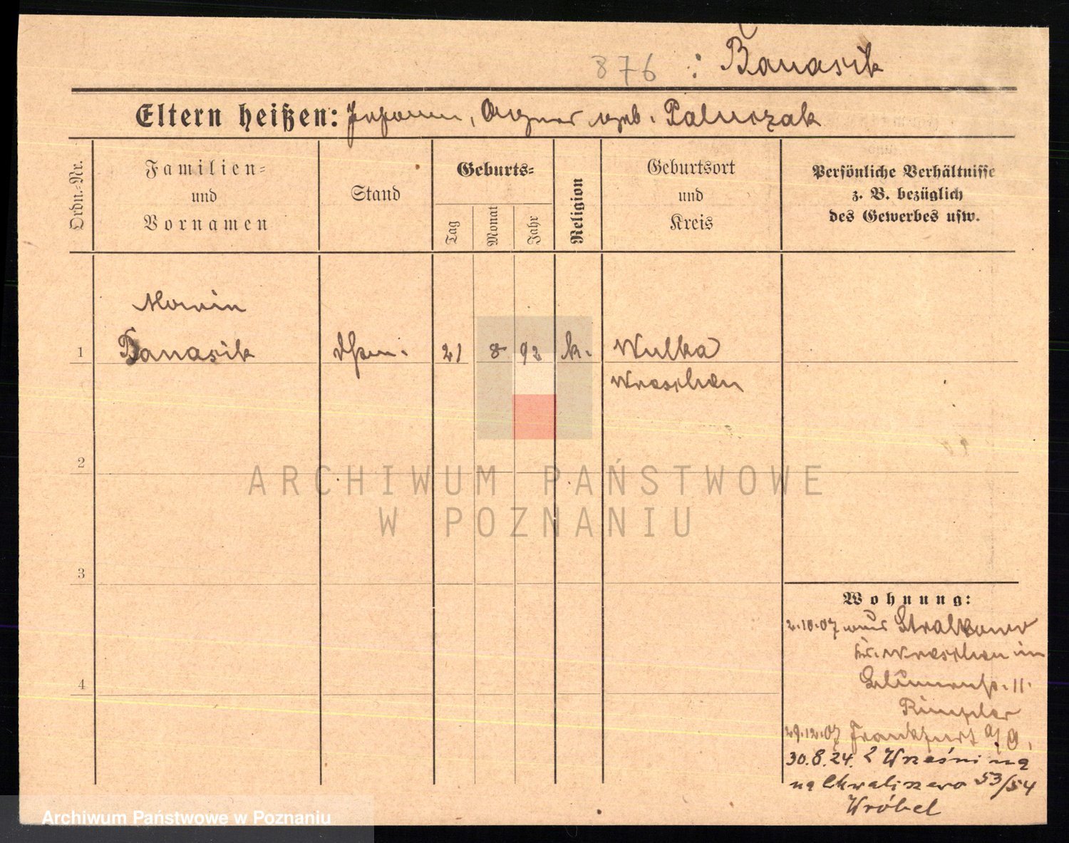 Podgląd karty osobowej dostępny jest po kliknięciu na nazwisko lub ikonkę karty. Można dokonywać powiększenia (ikony na górze) lub przechodzić między kolejnymi skanami (strzałki po bokach).