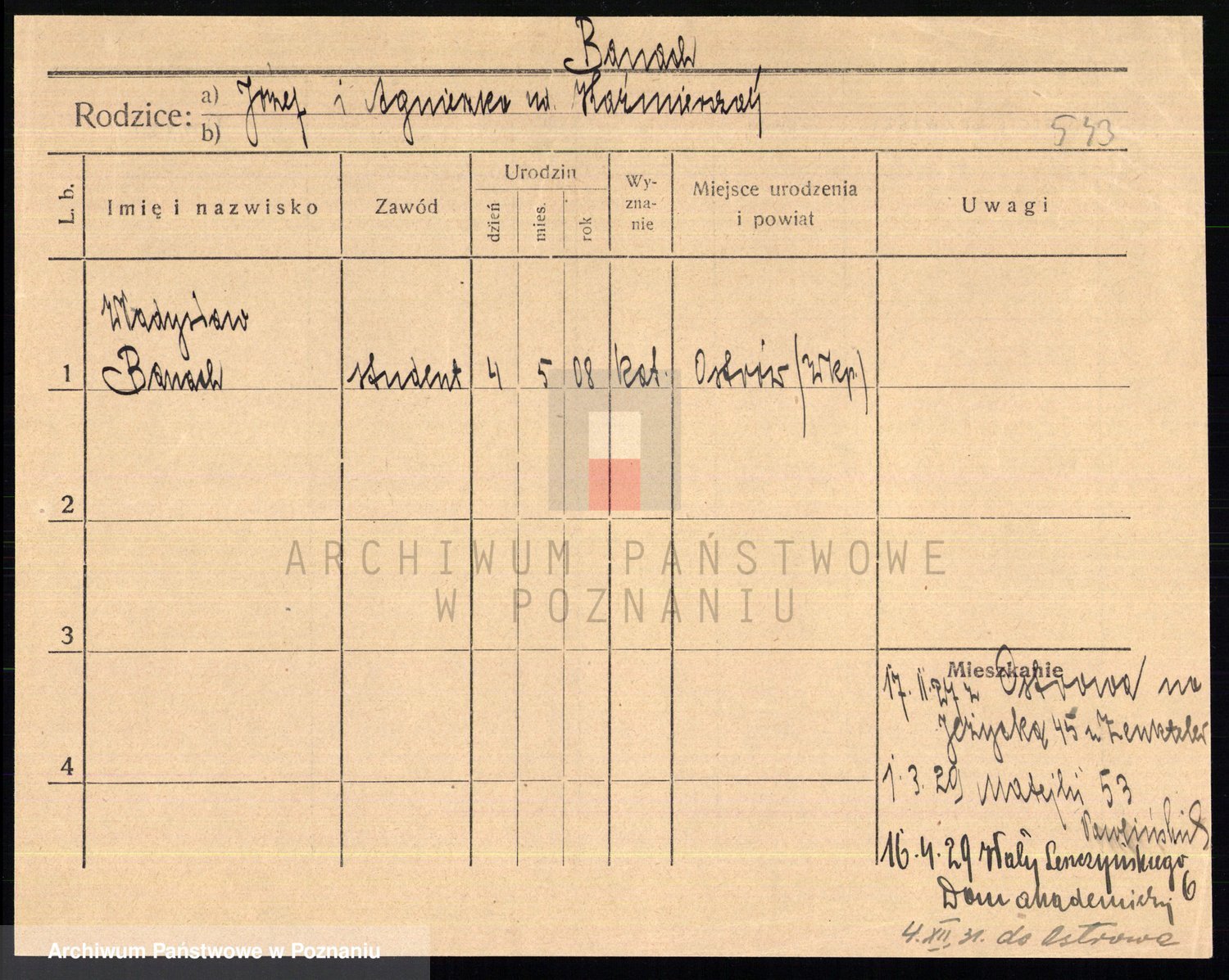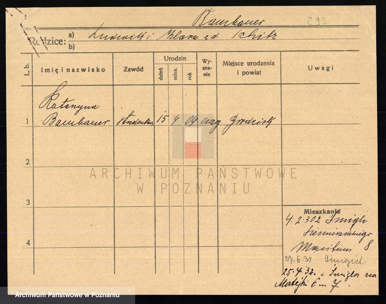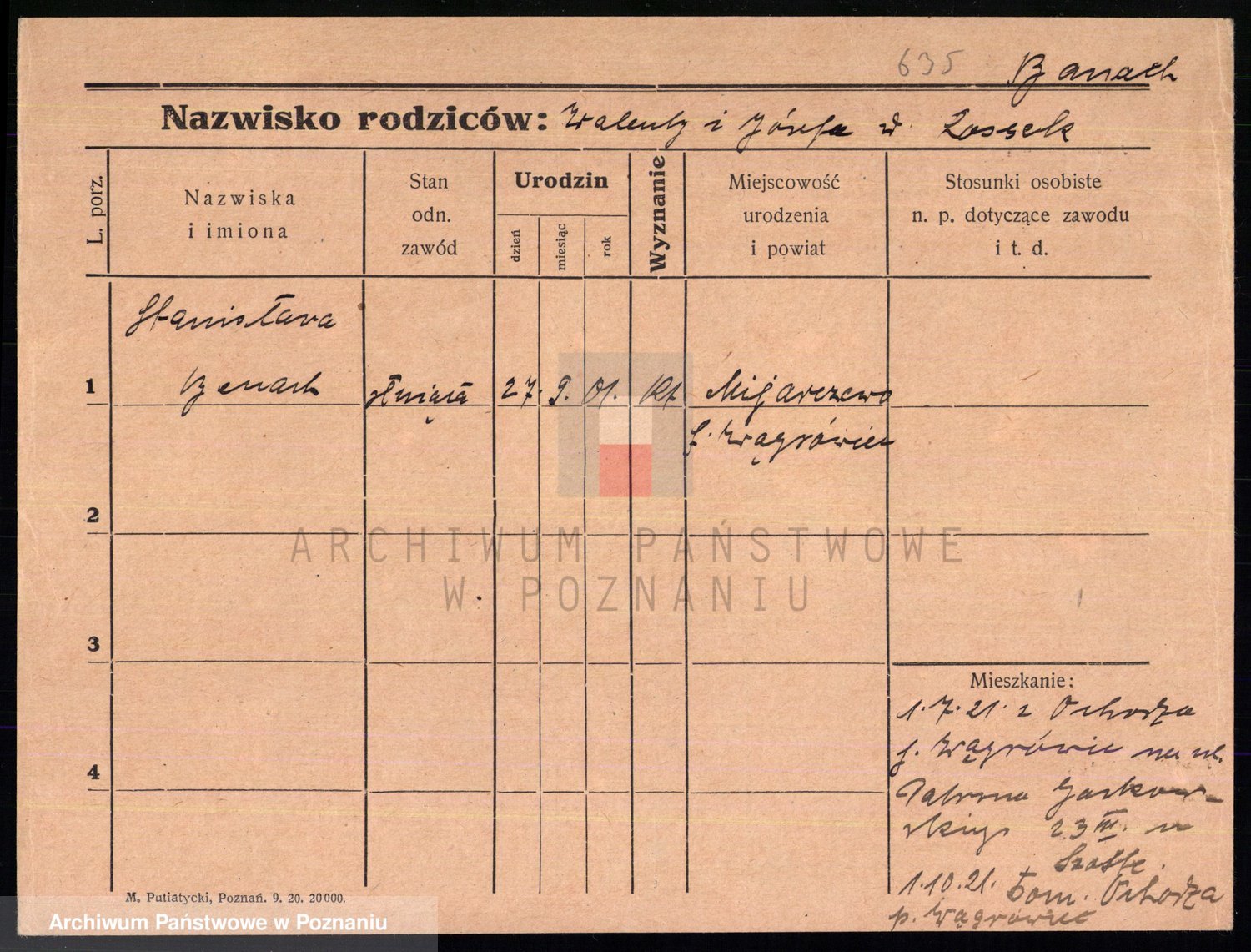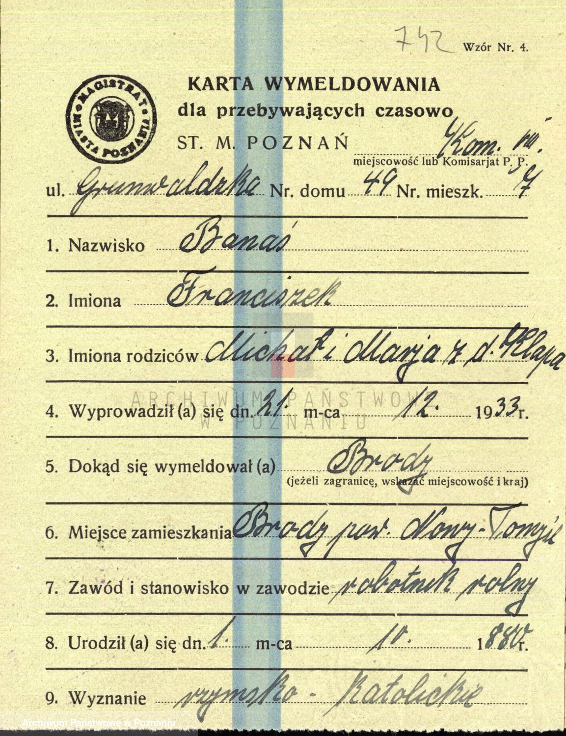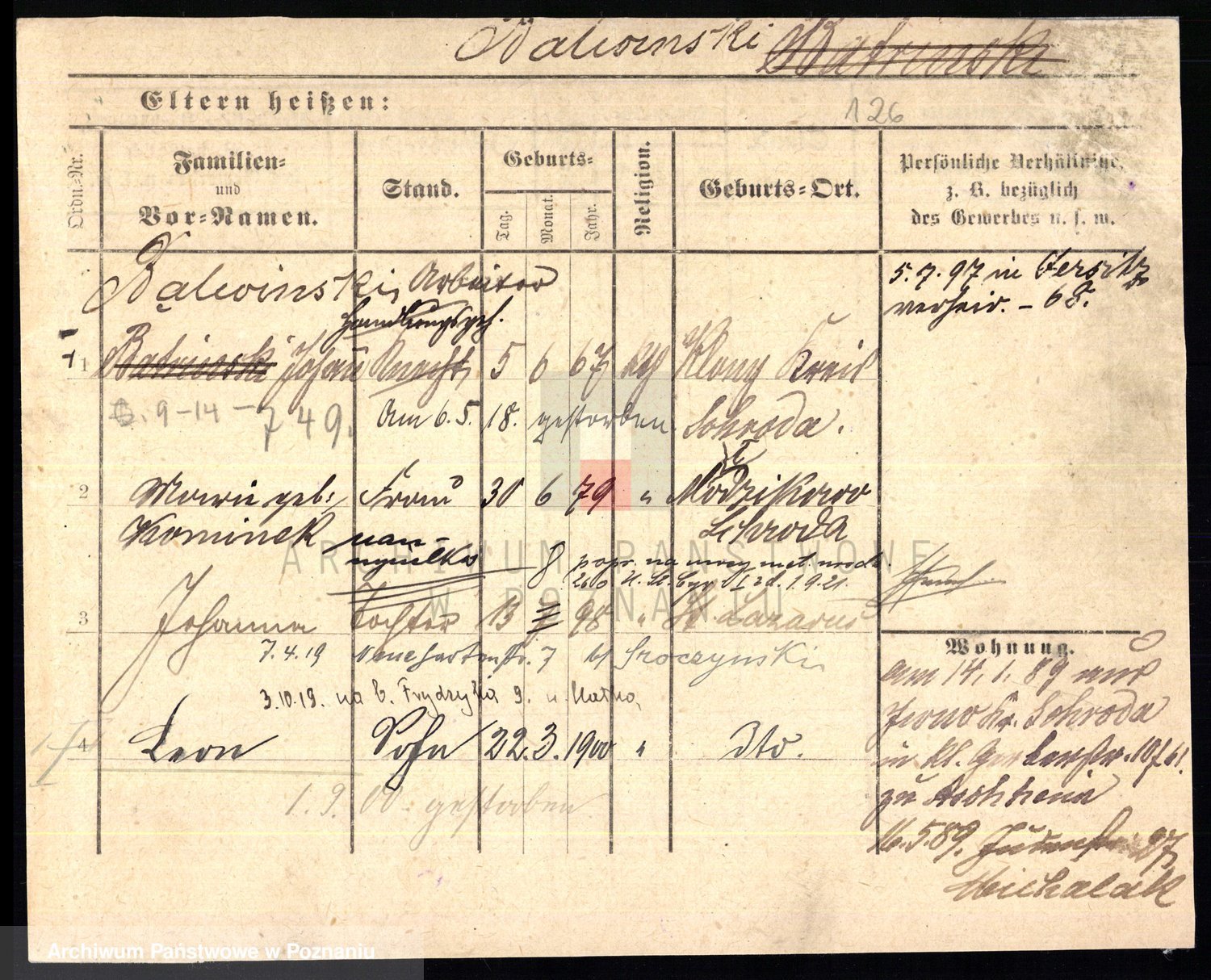 Podgląd karty osobowej dostępny jest po kliknięciu na nazwisko lub ikonkę karty. Można dokonywać powiększenia (ikony na górze) lub przechodzić między kolejnymi skanami (strzałki po bokach).