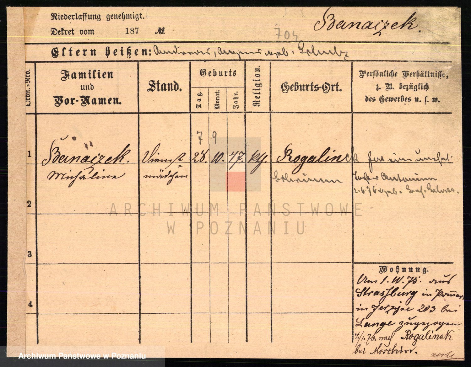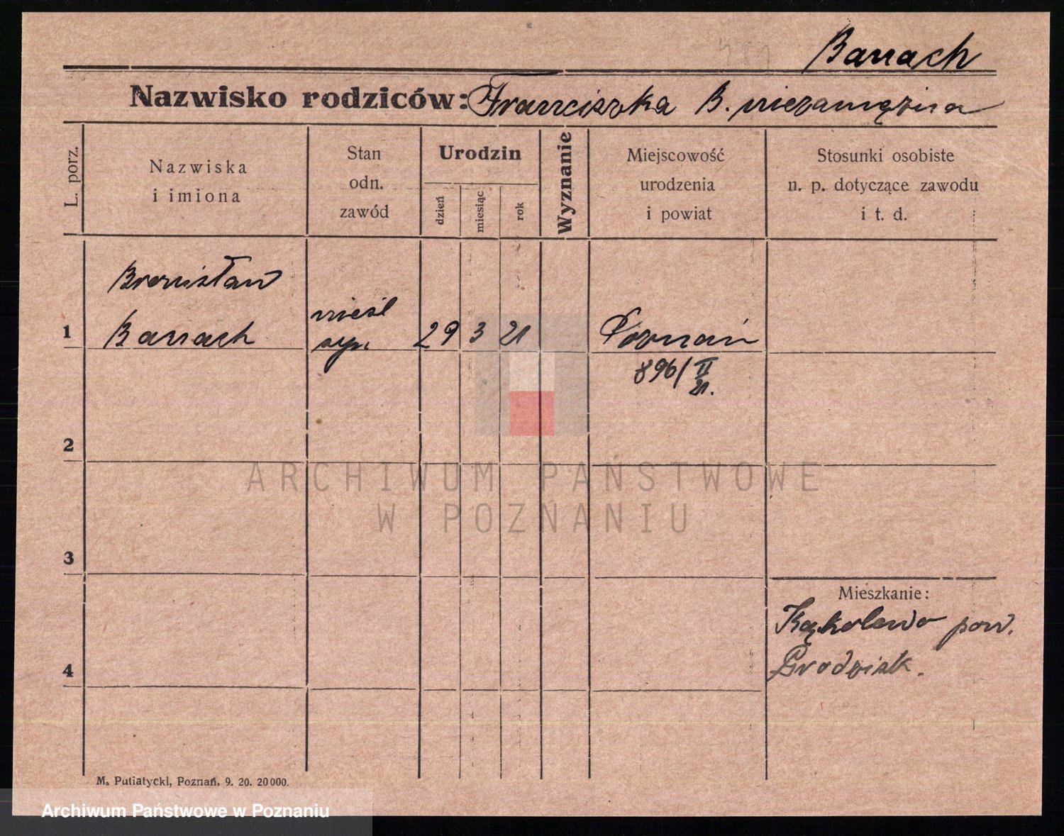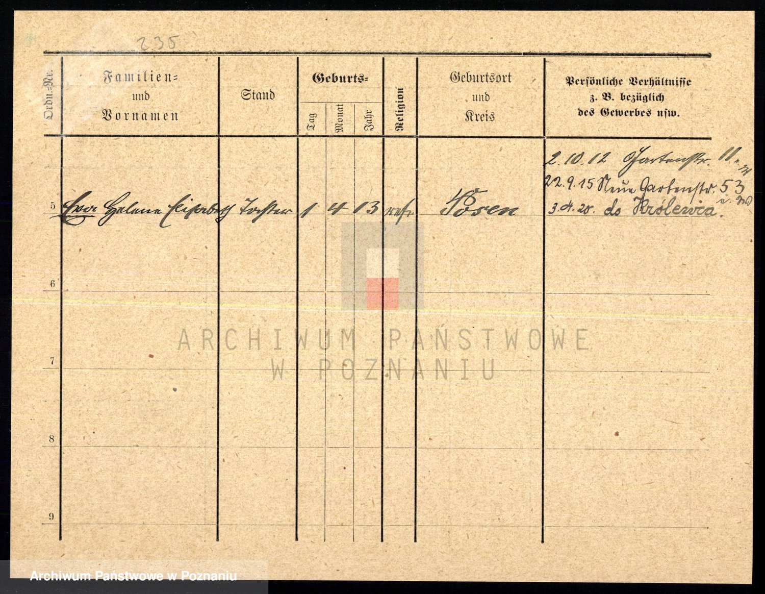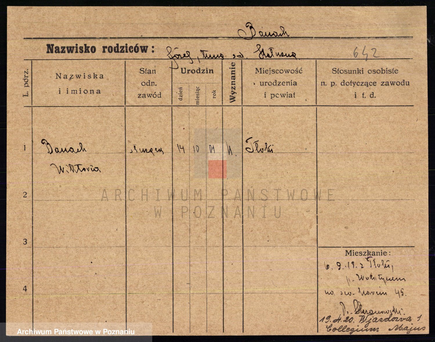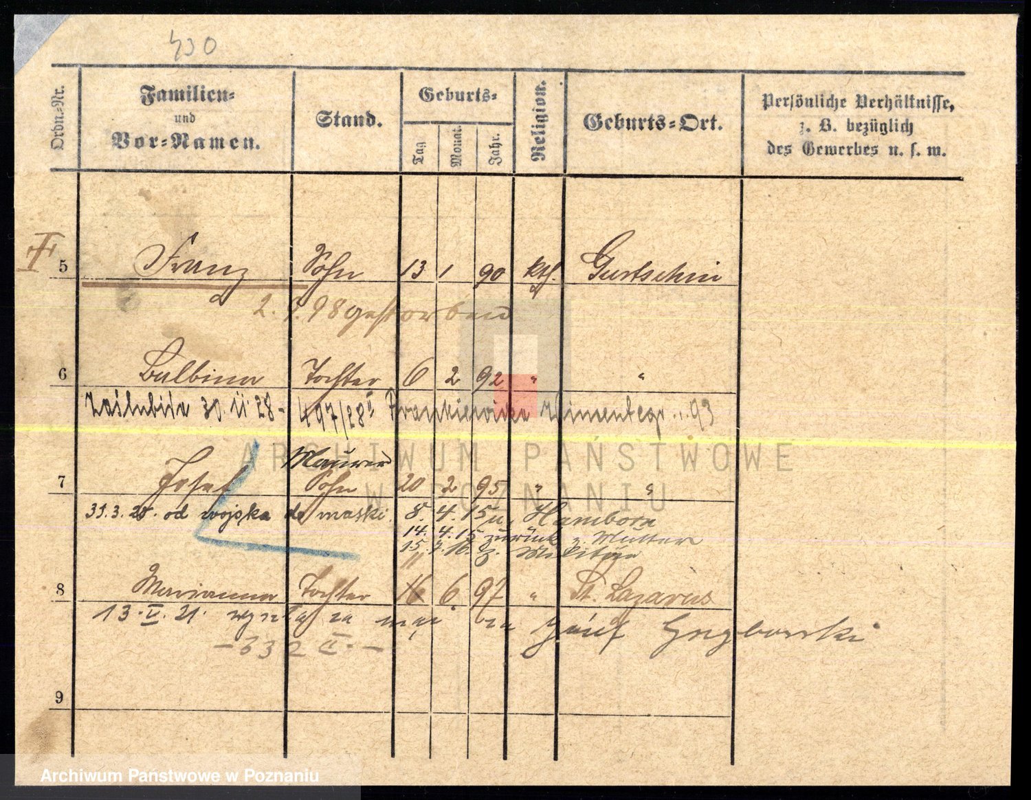 Podgląd karty osobowej dostępny jest po kliknięciu na nazwisko lub ikonkę karty. Można dokonywać powiększenia (ikony na górze) lub przechodzić między kolejnymi skanami (strzałki po bokach).