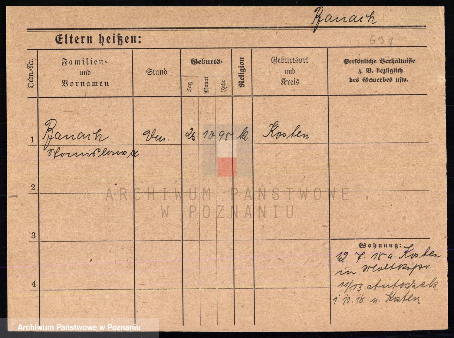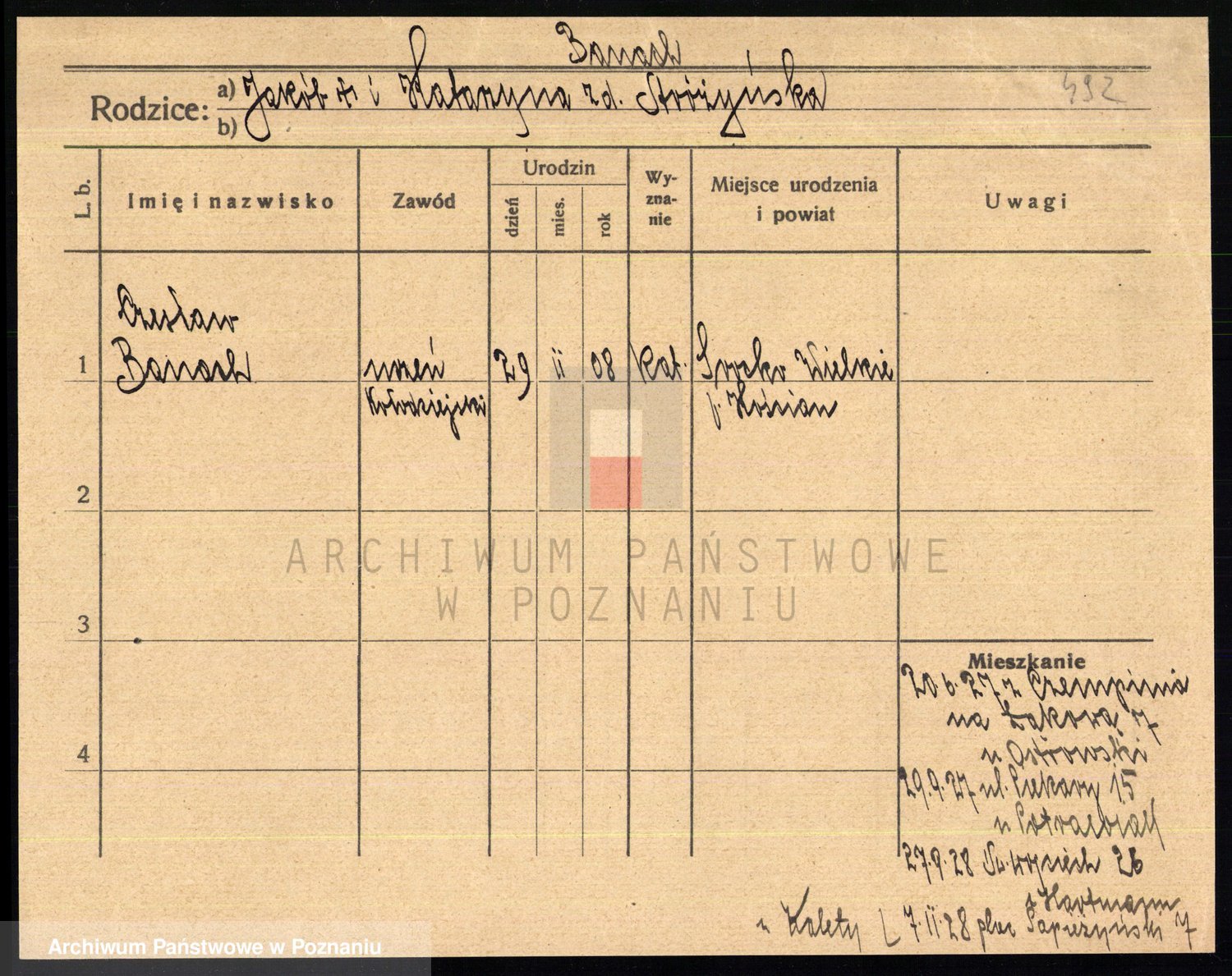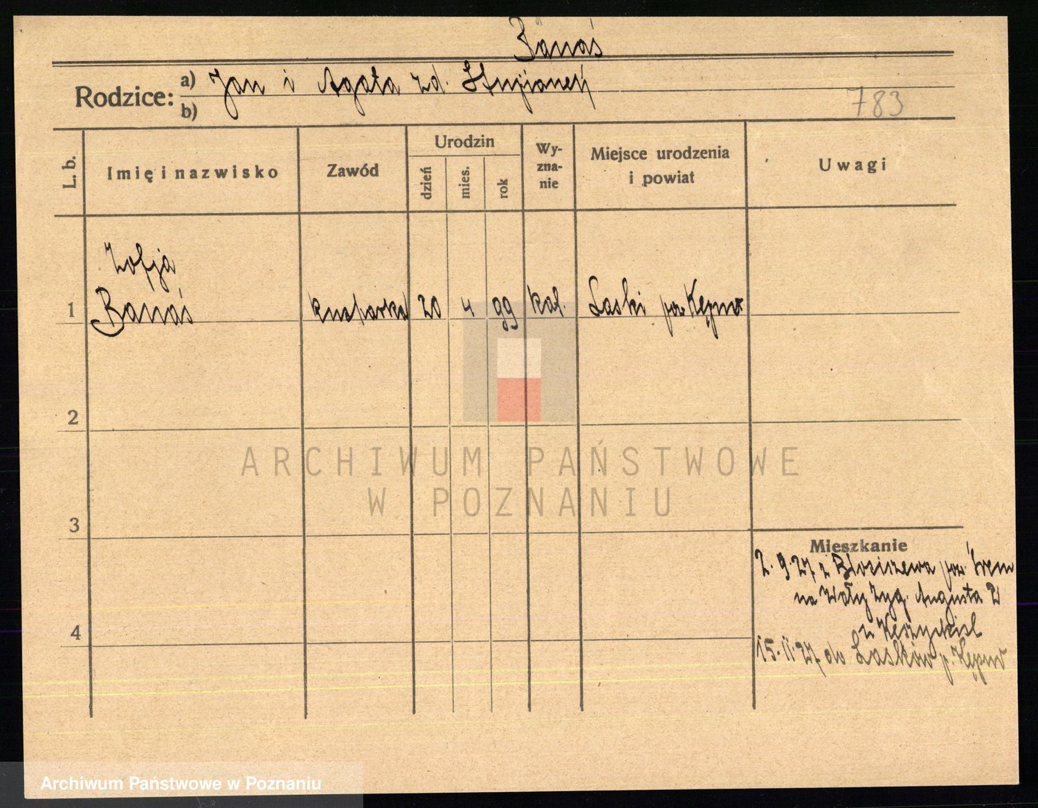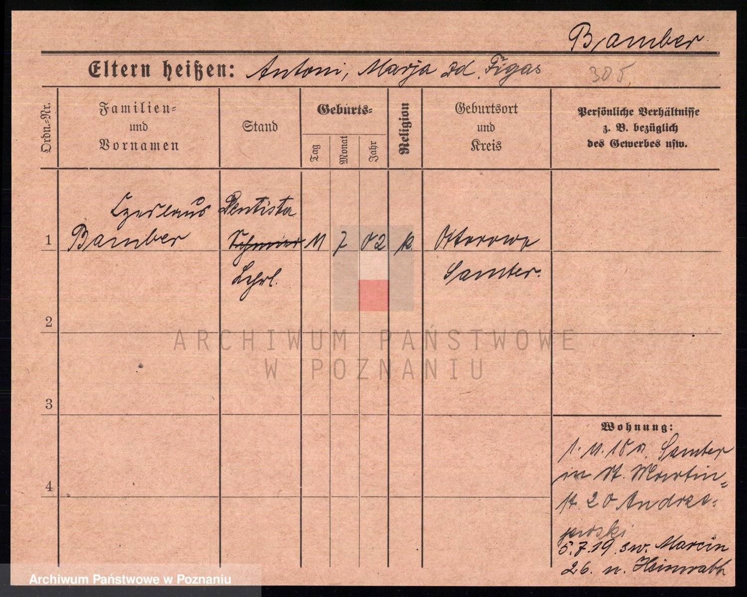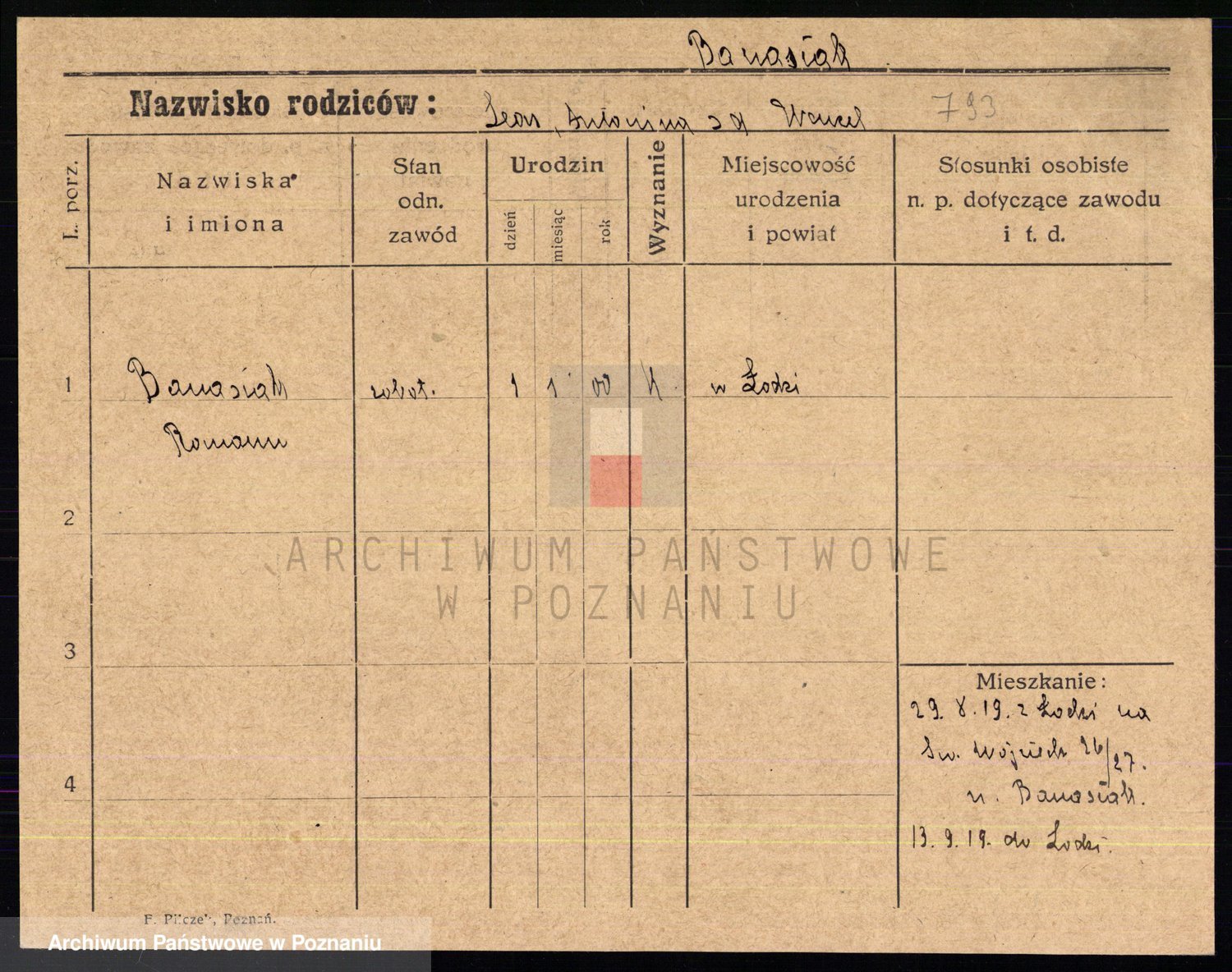 Podgląd karty osobowej dostępny jest po kliknięciu na nazwisko lub ikonkę karty. Można dokonywać powiększenia (ikony na górze) lub przechodzić między kolejnymi skanami (strzałki po bokach).