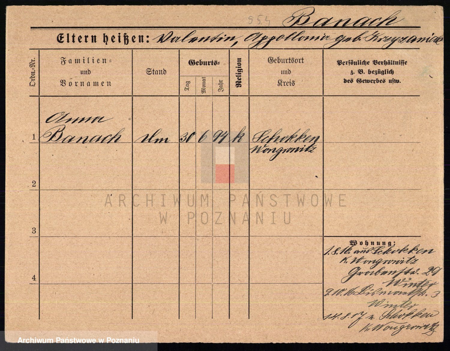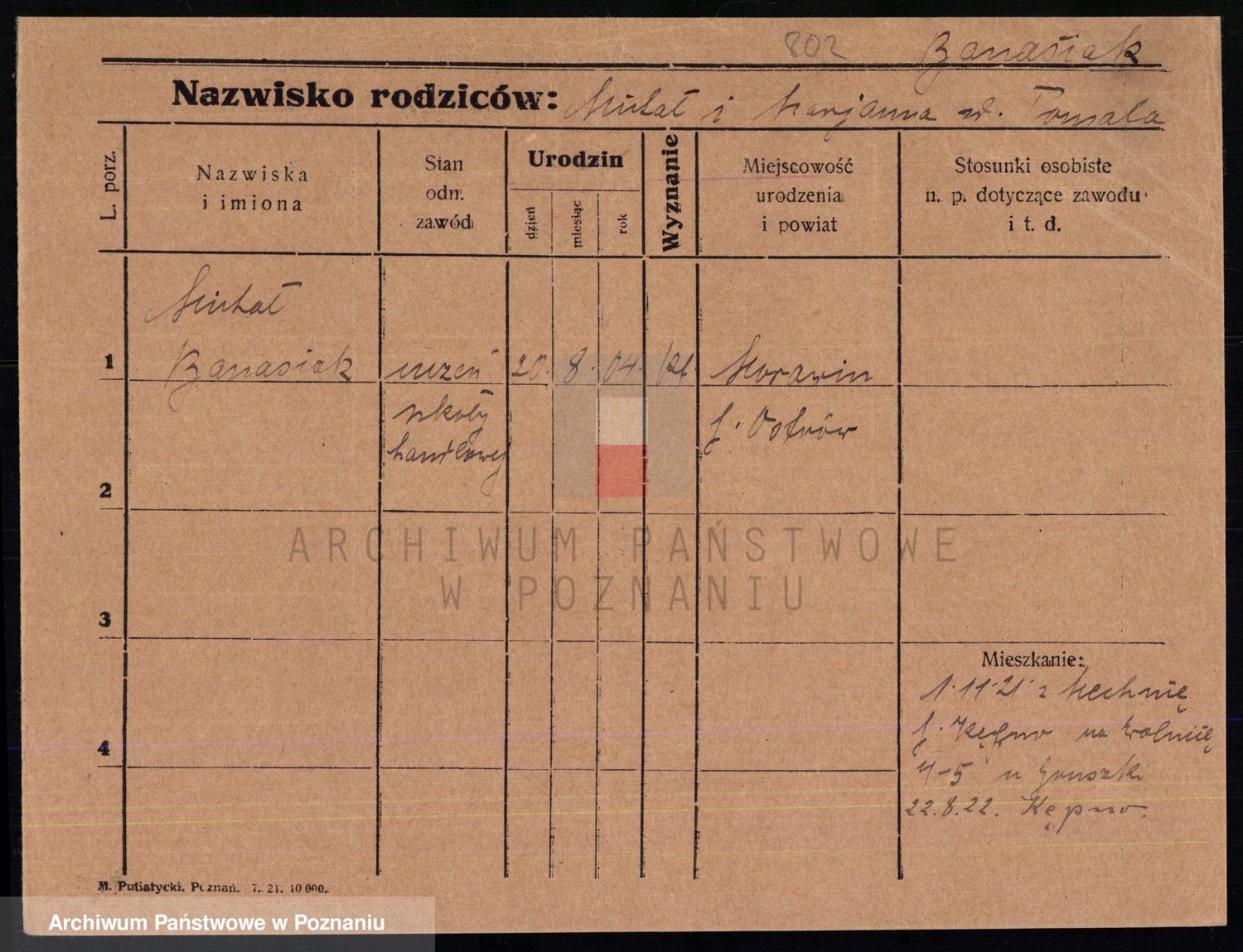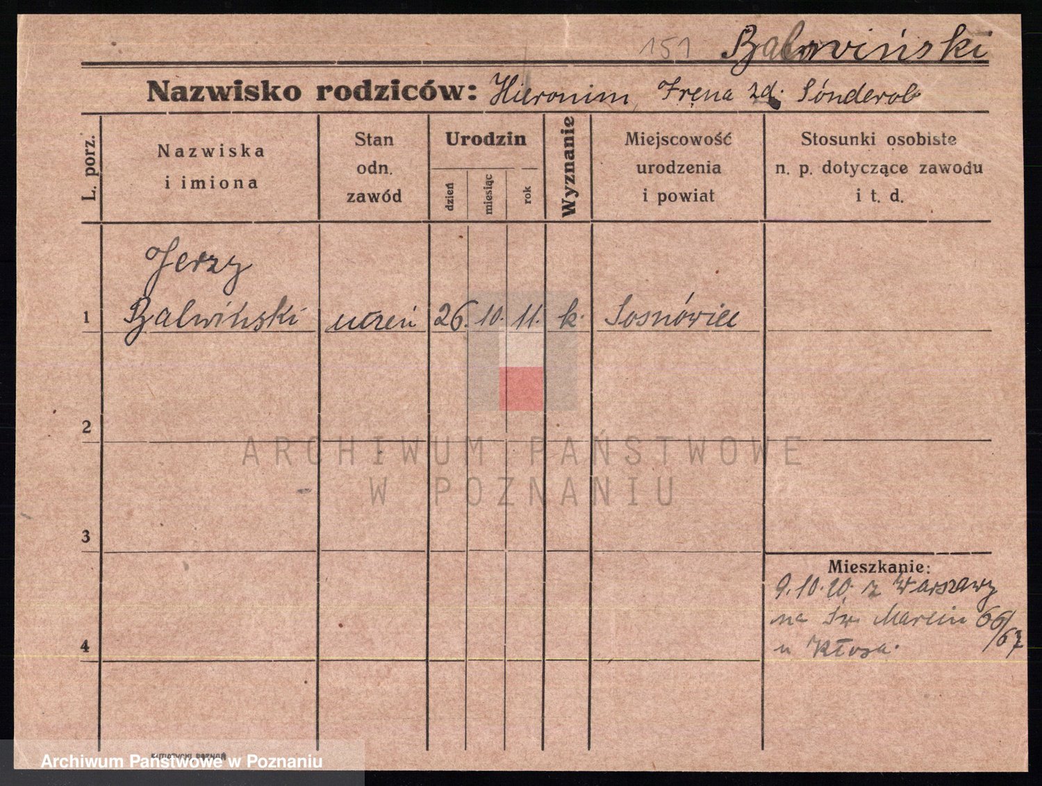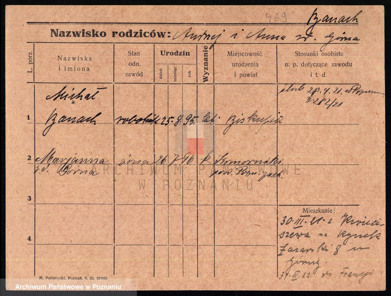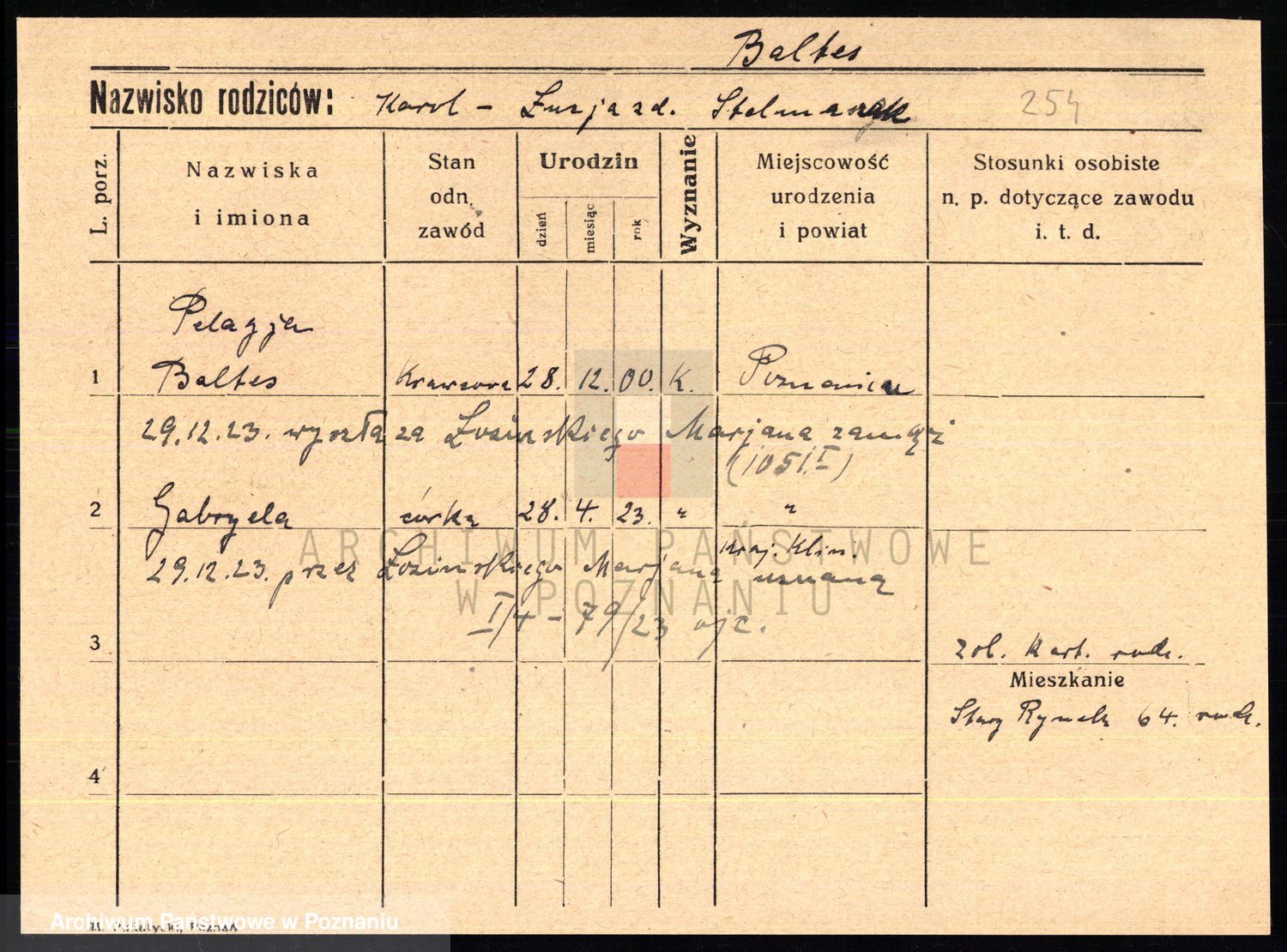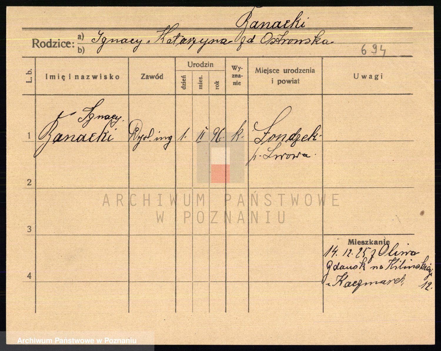 Podgląd karty osobowej dostępny jest po kliknięciu na nazwisko lub ikonkę karty. Można dokonywać powiększenia (ikony na górze) lub przechodzić między kolejnymi skanami (strzałki po bokach).