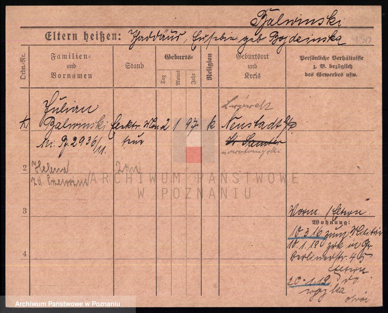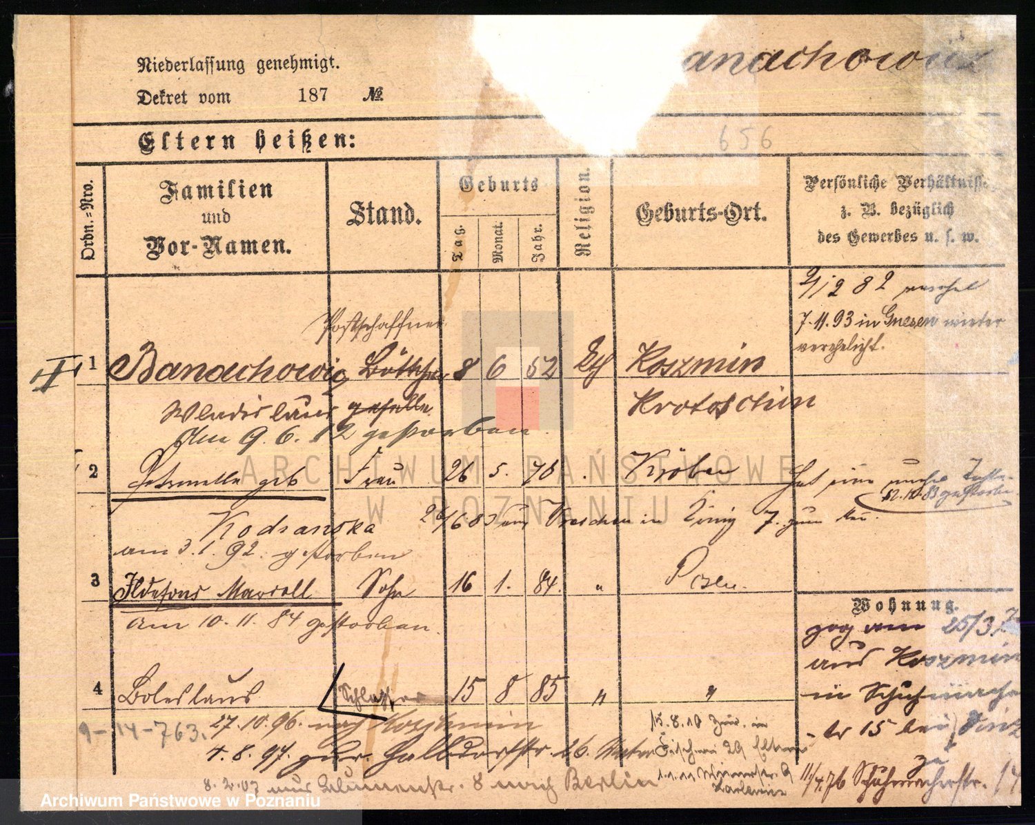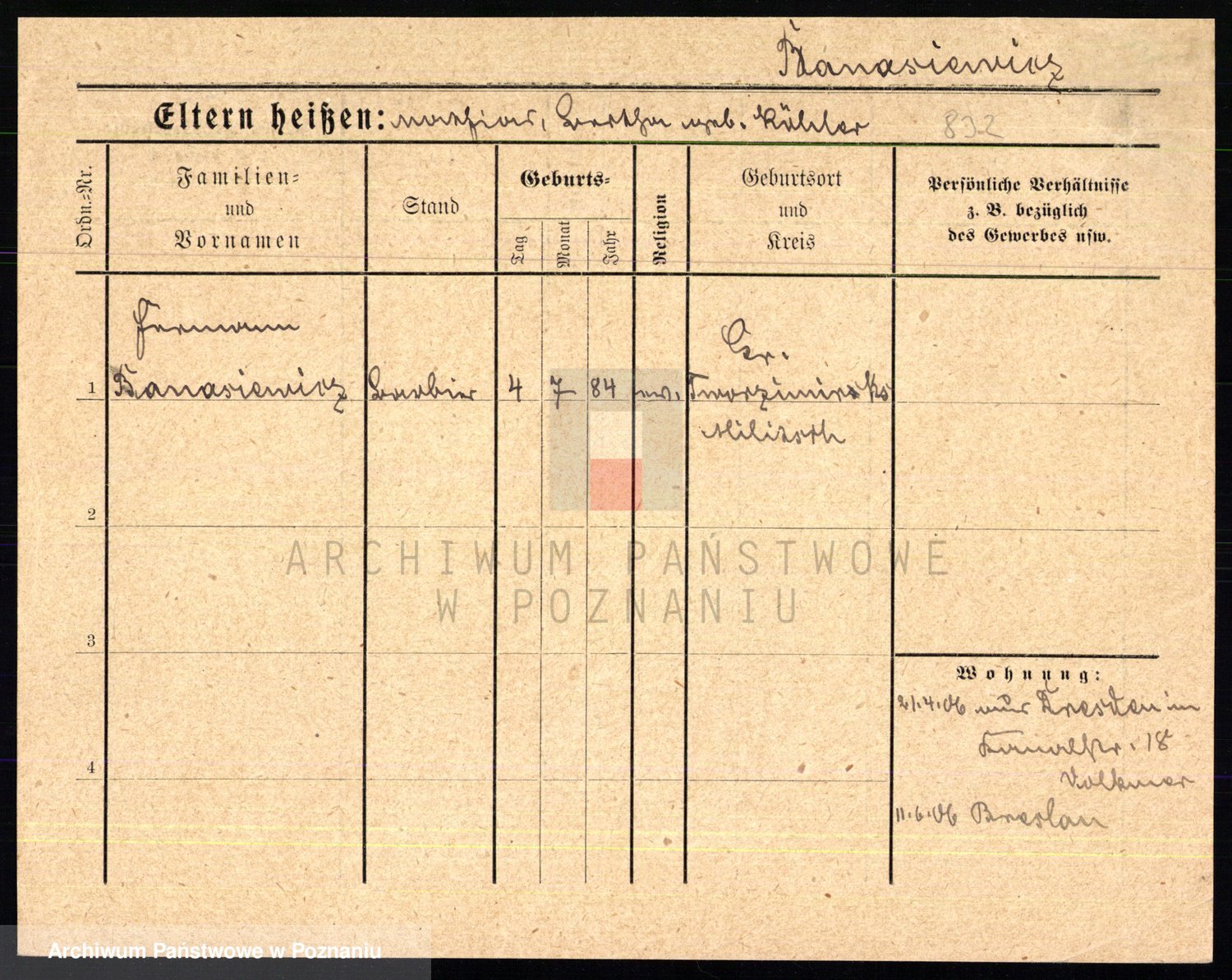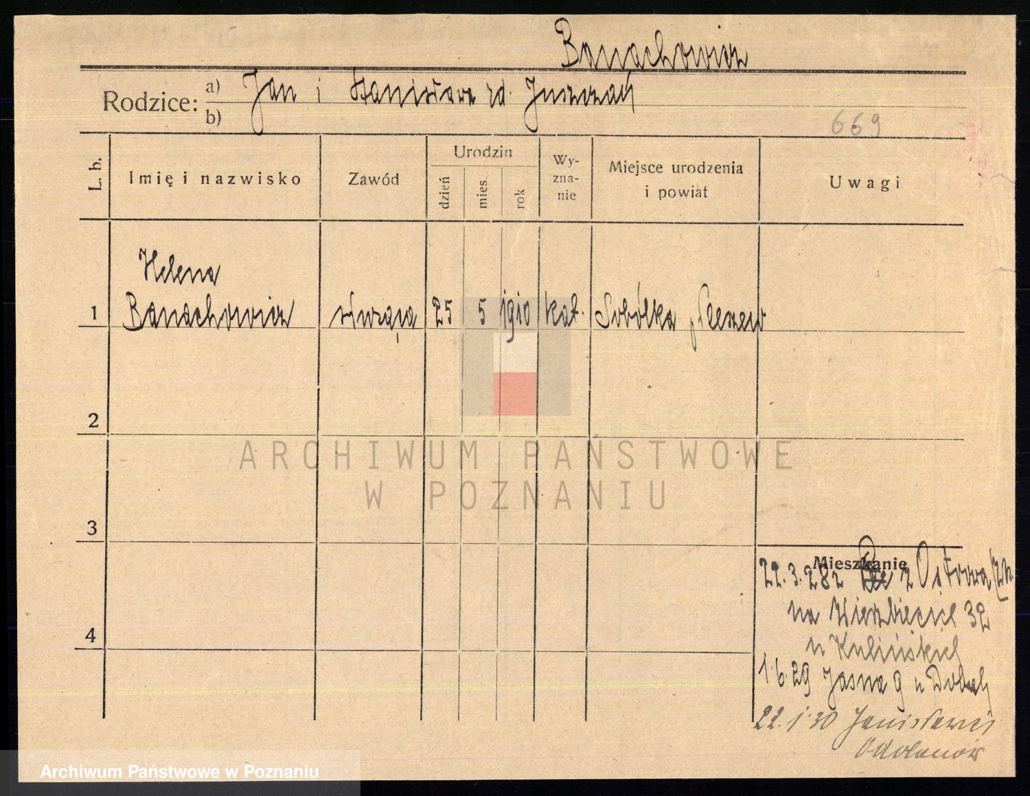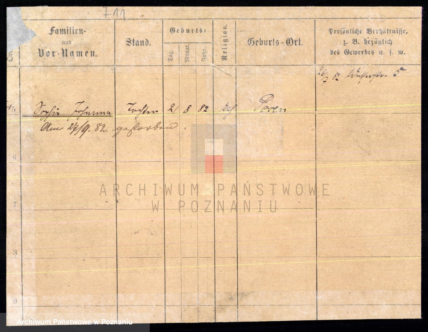 Podgląd karty osobowej dostępny jest po kliknięciu na nazwisko lub ikonkę karty. Można dokonywać powiększenia (ikony na górze) lub przechodzić między kolejnymi skanami (strzałki po bokach).
