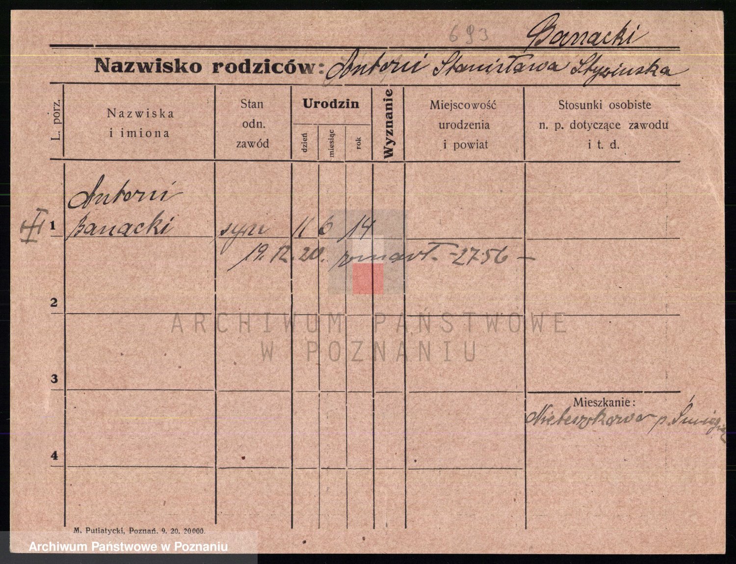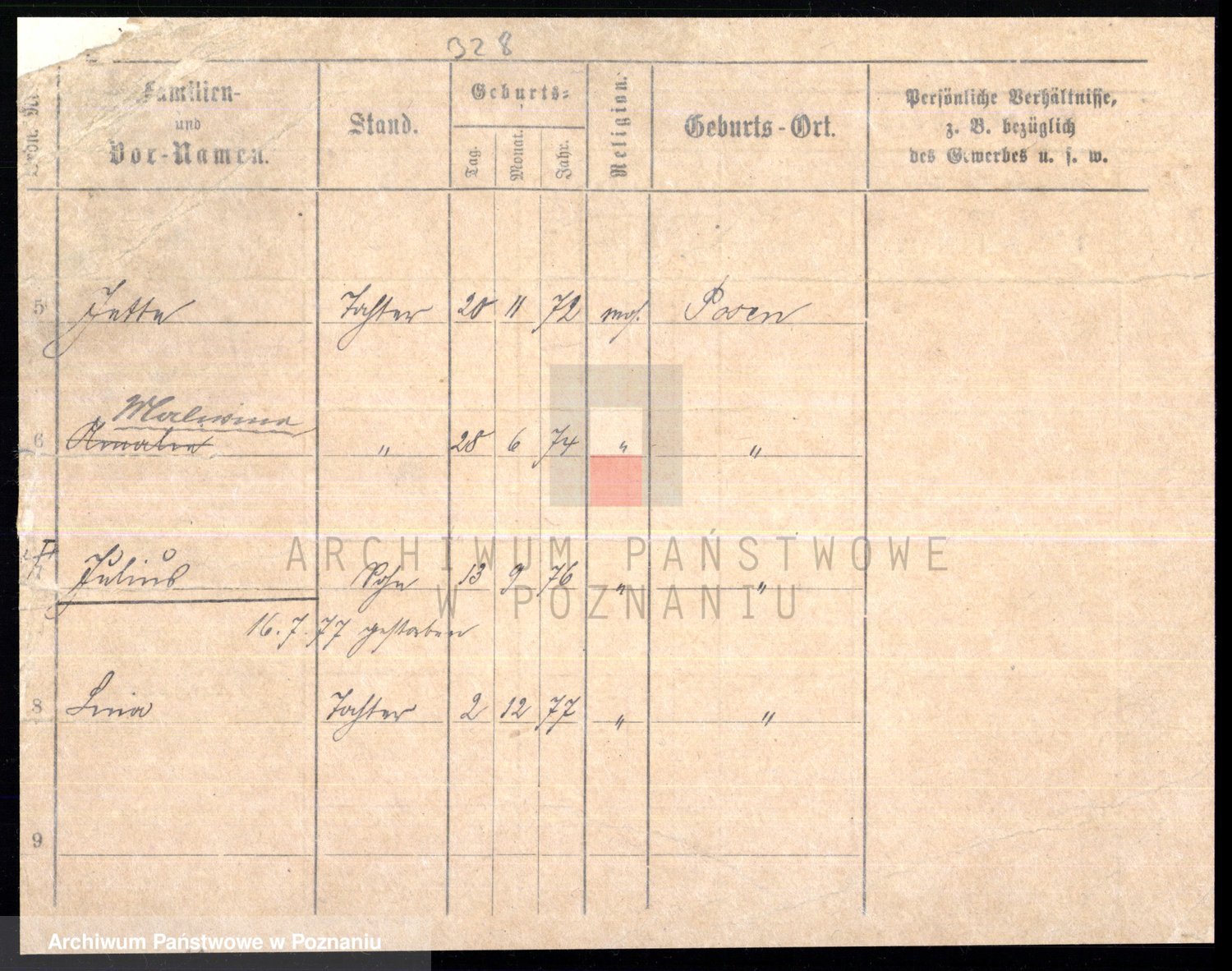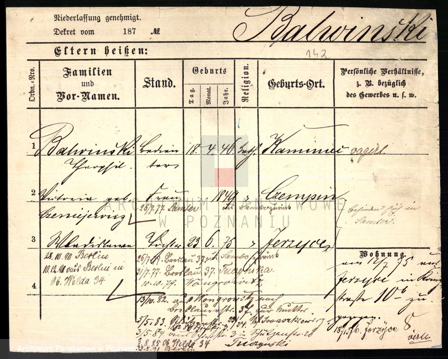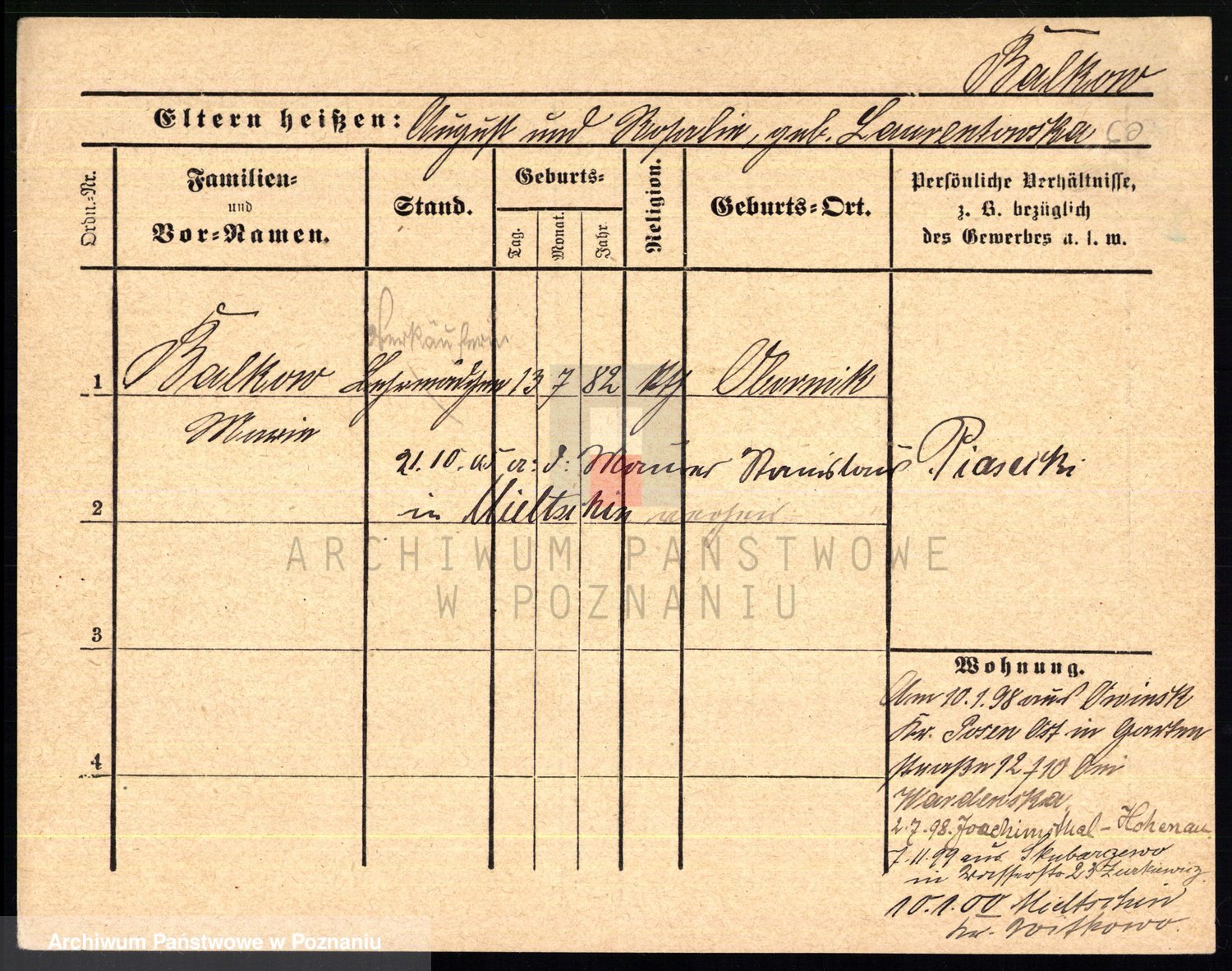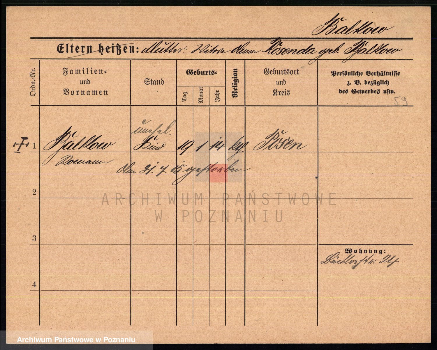 Podgląd karty osobowej dostępny jest po kliknięciu na nazwisko lub ikonkę karty. Można dokonywać powiększenia (ikony na górze) lub przechodzić między kolejnymi skanami (strzałki po bokach).