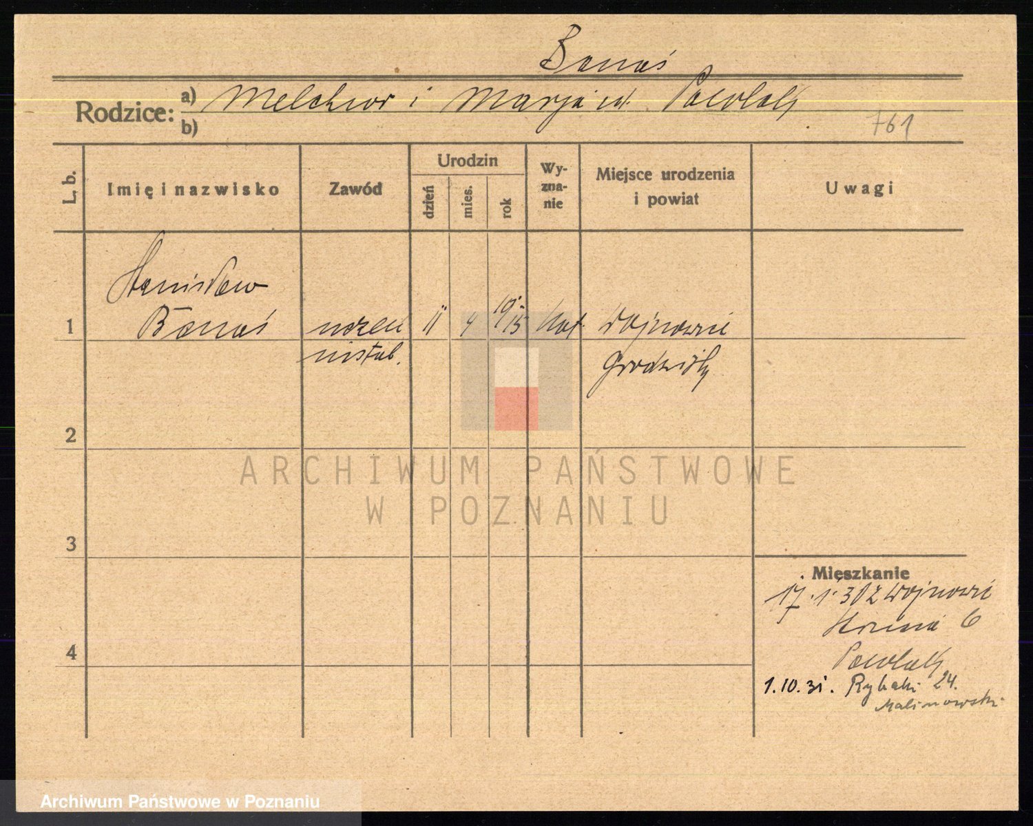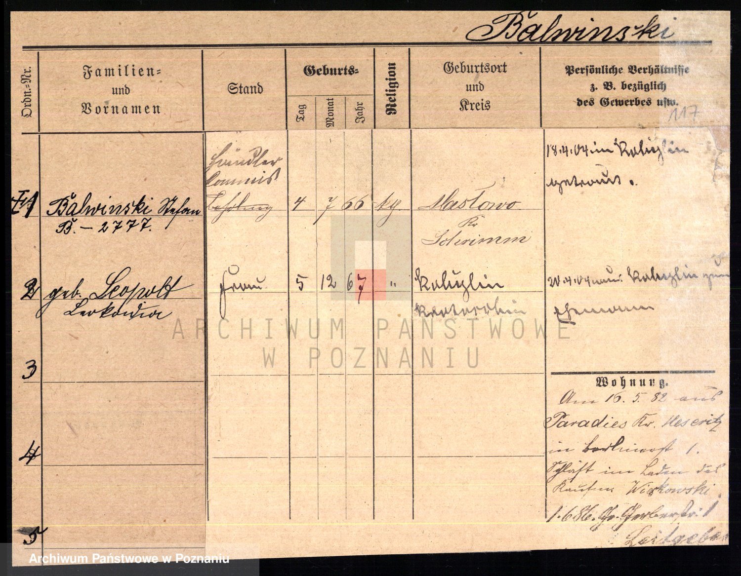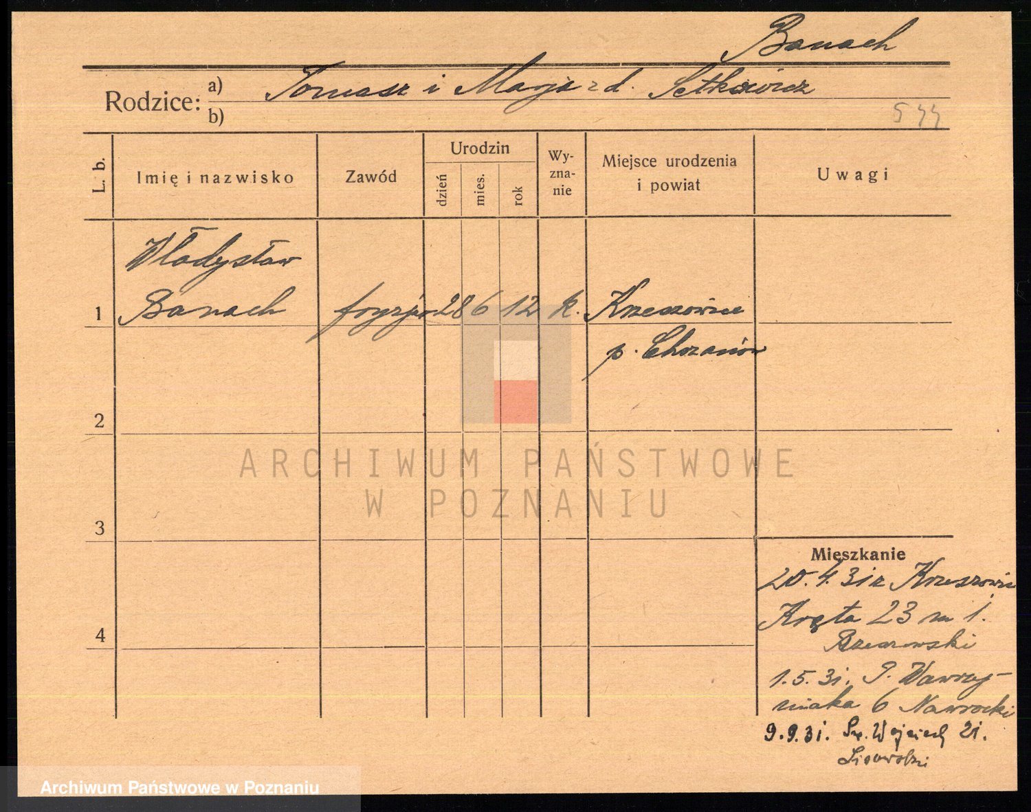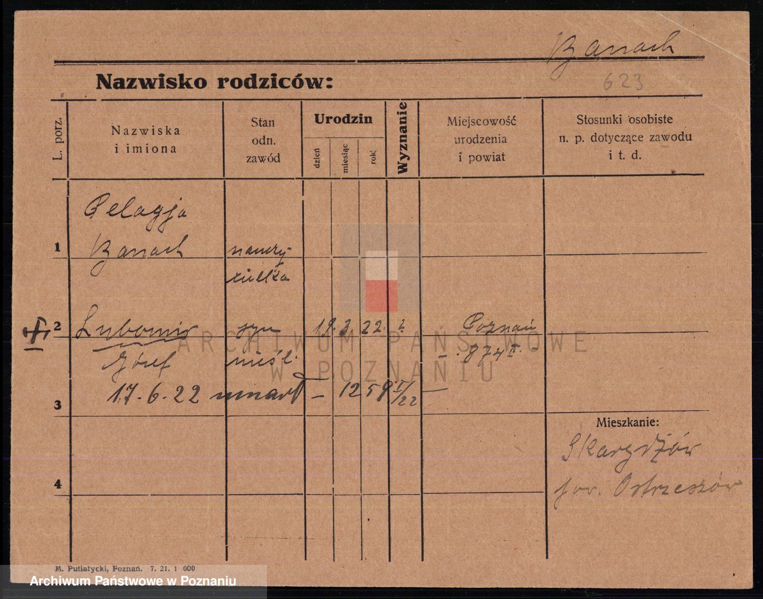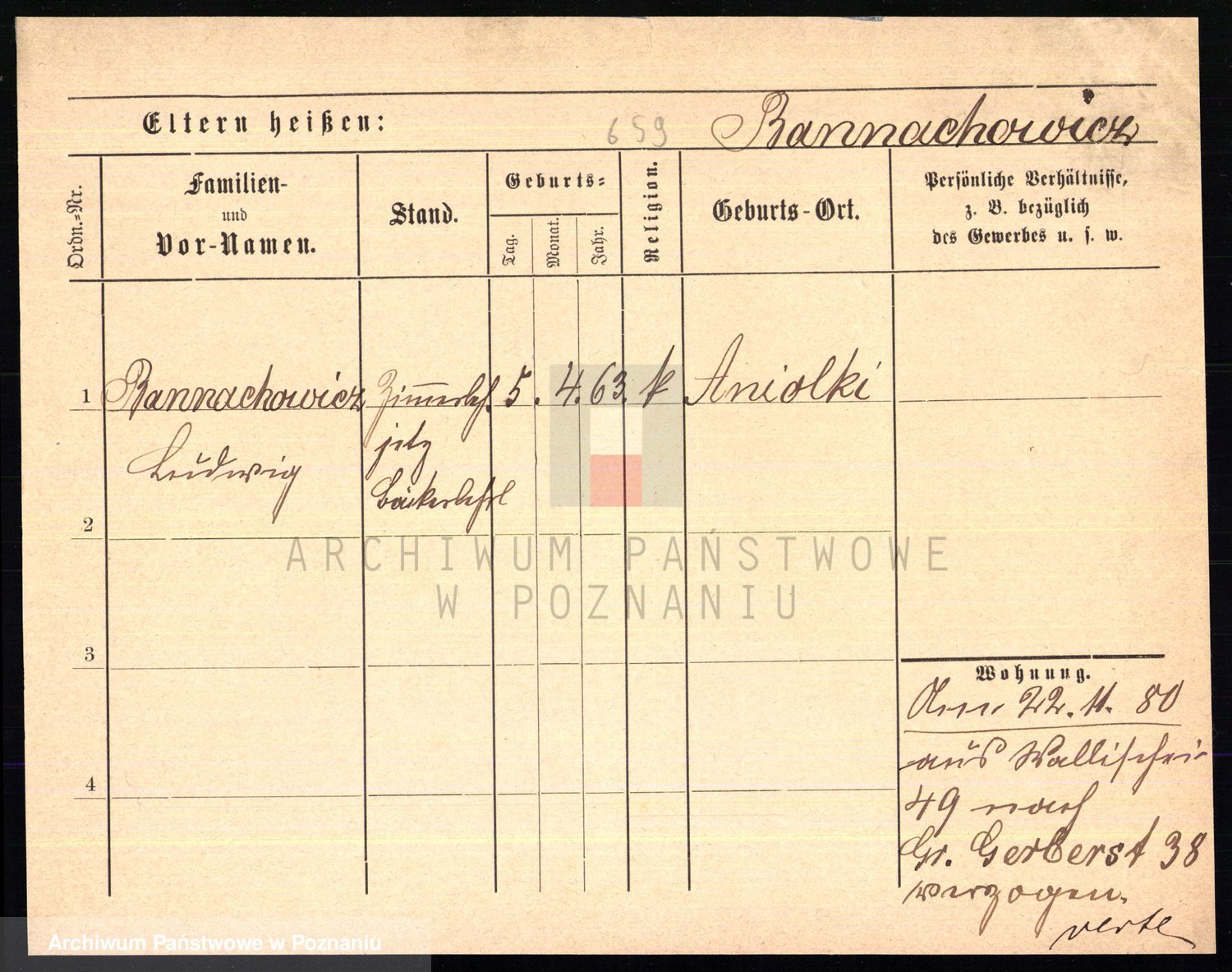 Podgląd karty osobowej dostępny jest po kliknięciu na nazwisko lub ikonkę karty. Można dokonywać powiększenia (ikony na górze) lub przechodzić między kolejnymi skanami (strzałki po bokach).