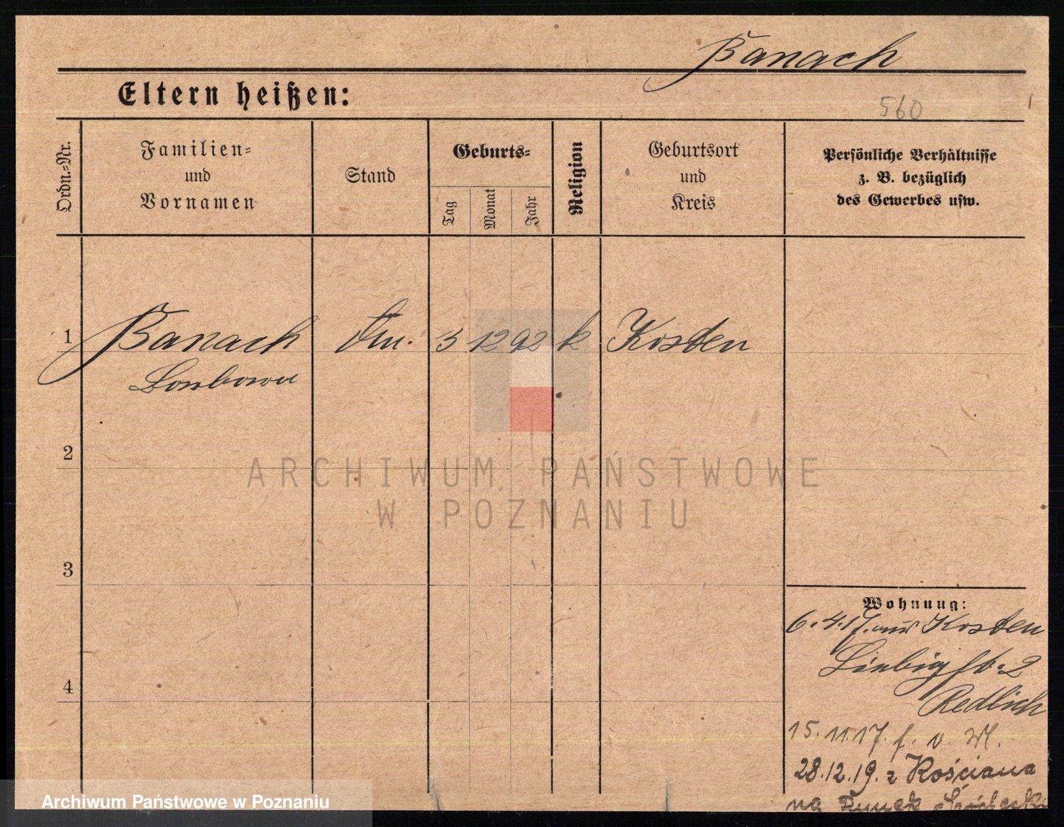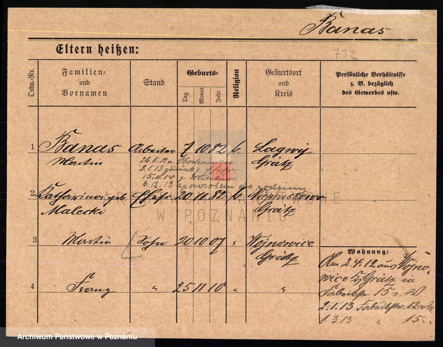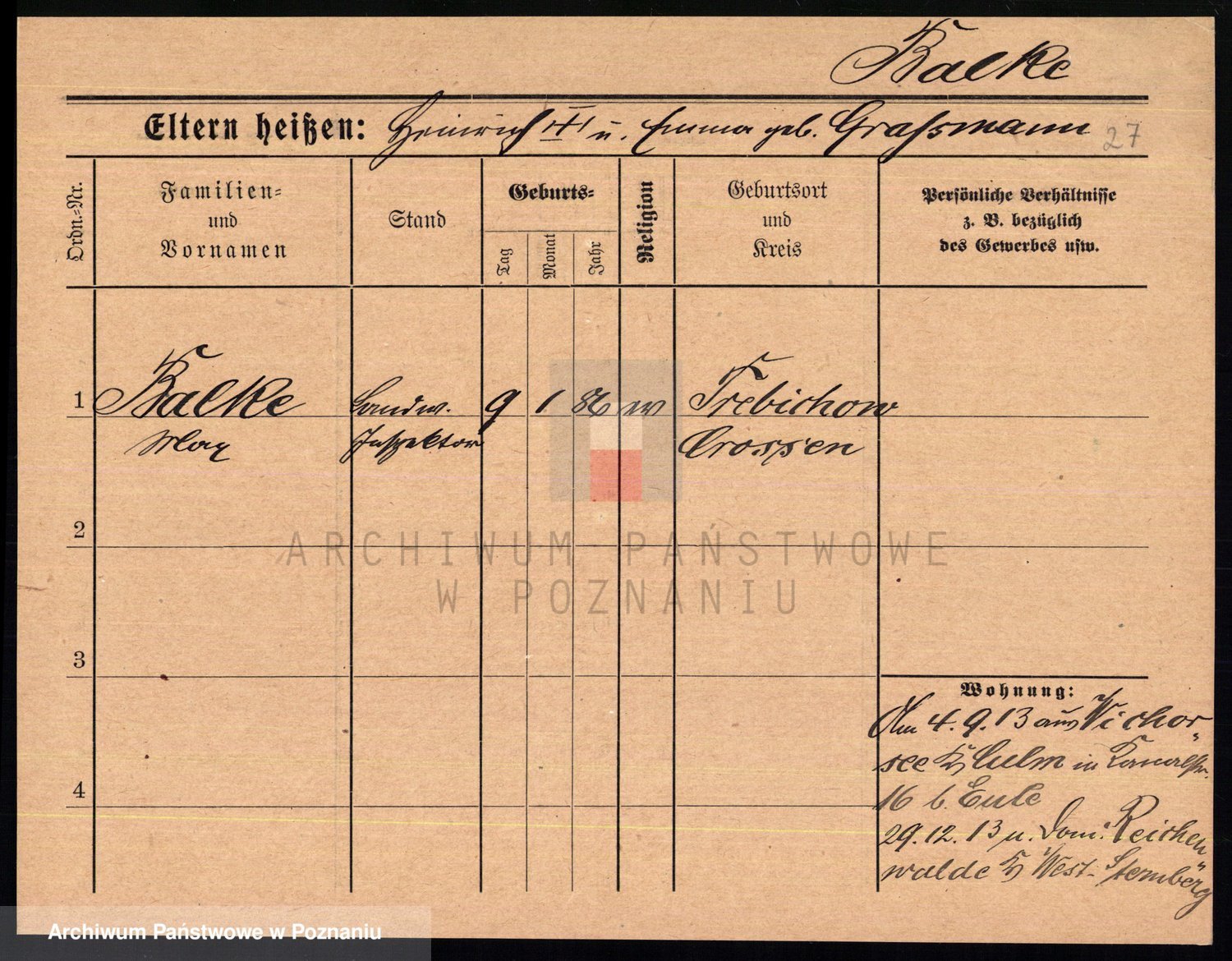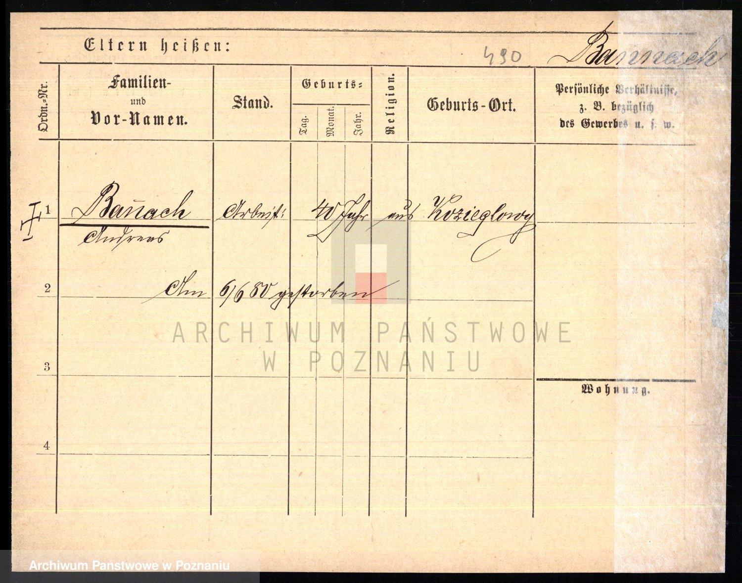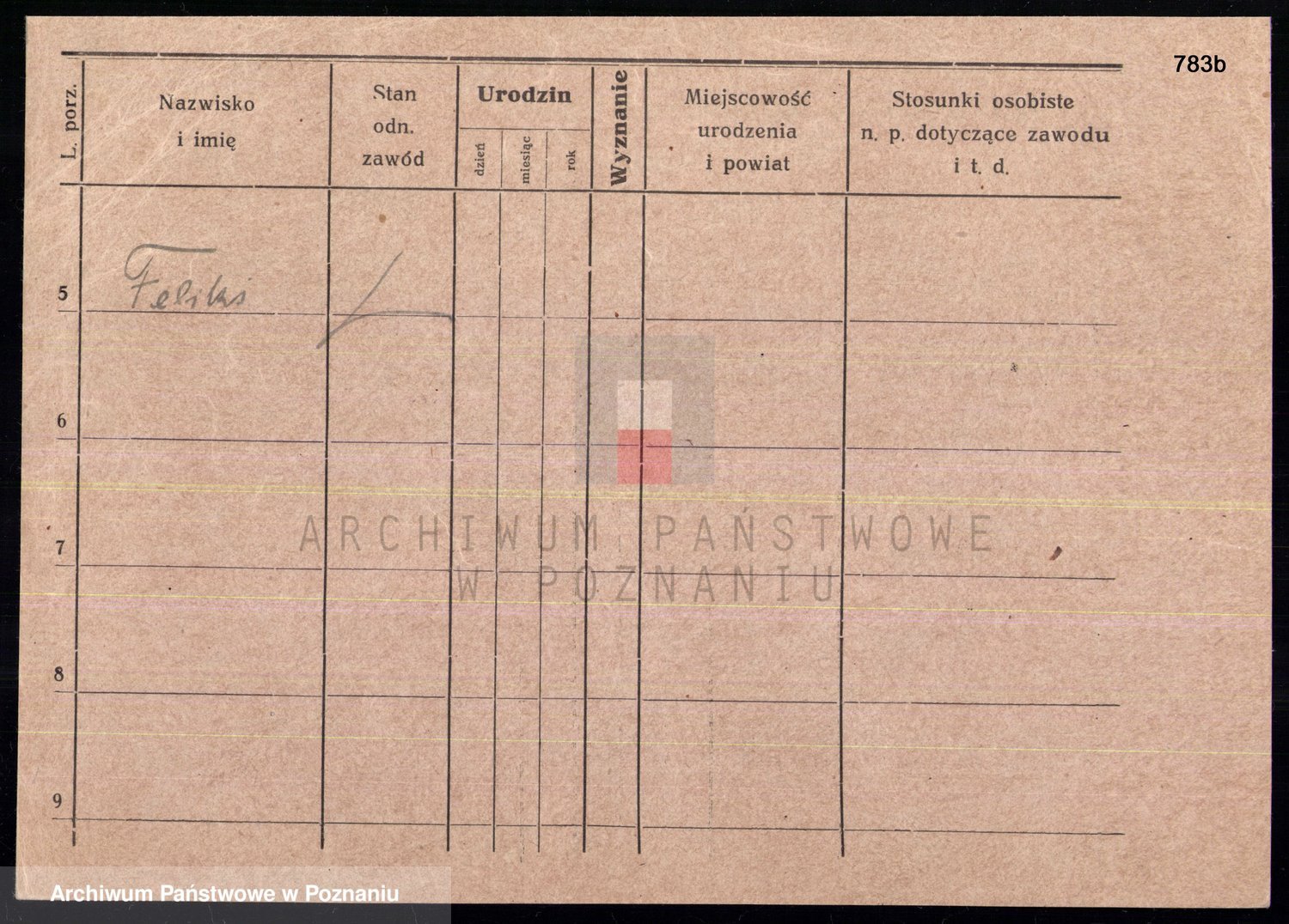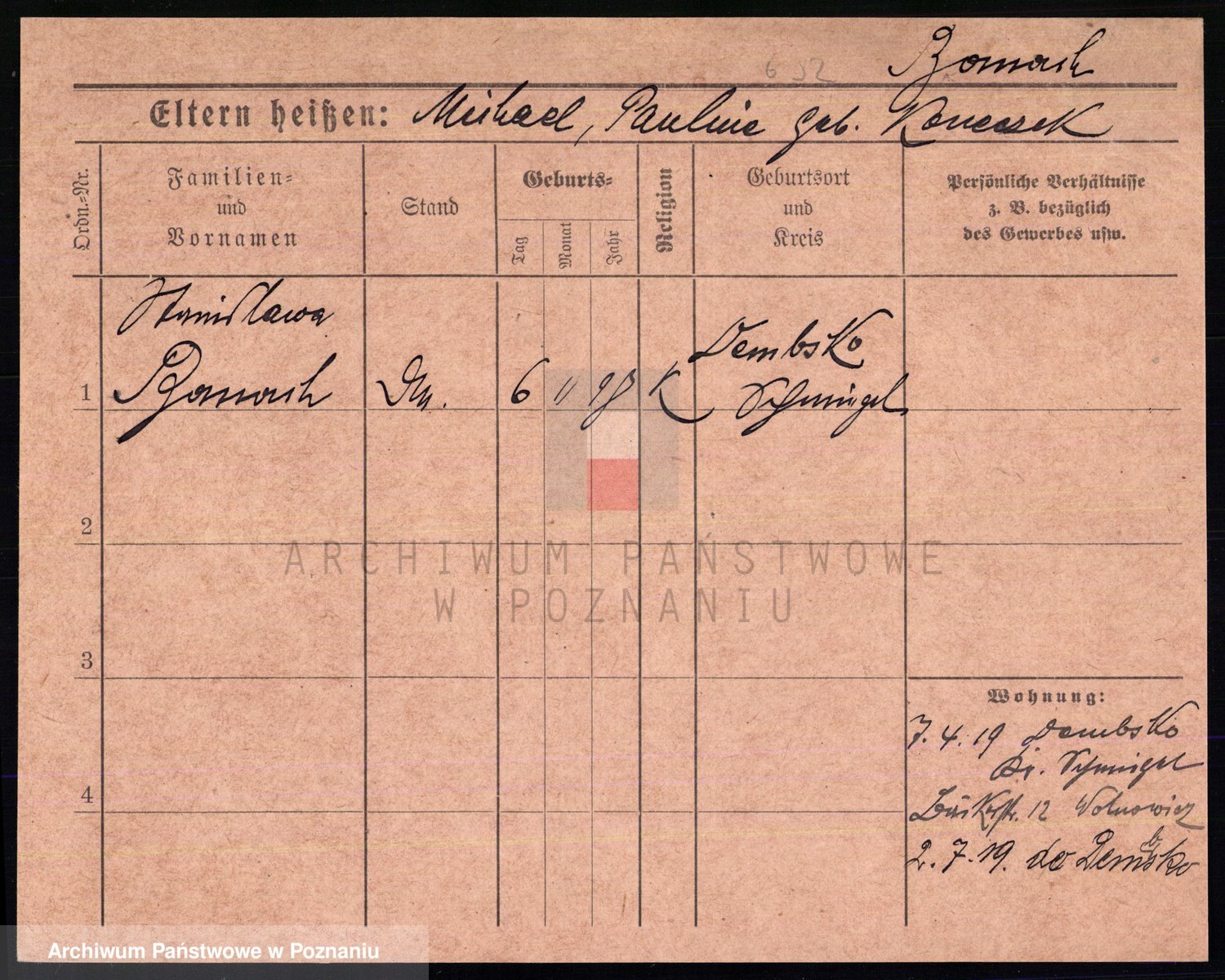 Podgląd karty osobowej dostępny jest po kliknięciu na nazwisko lub ikonkę karty. Można dokonywać powiększenia (ikony na górze) lub przechodzić między kolejnymi skanami (strzałki po bokach).