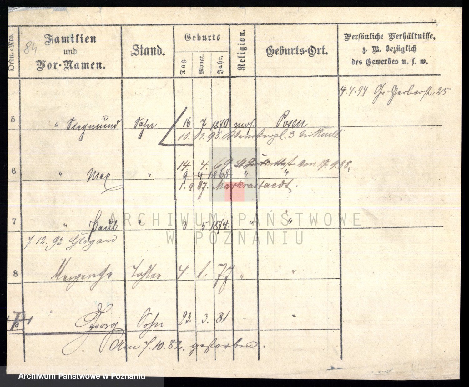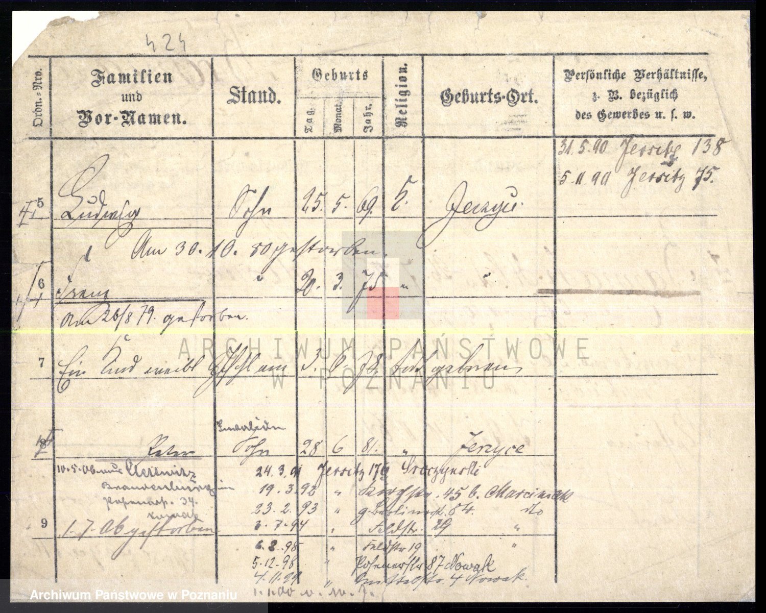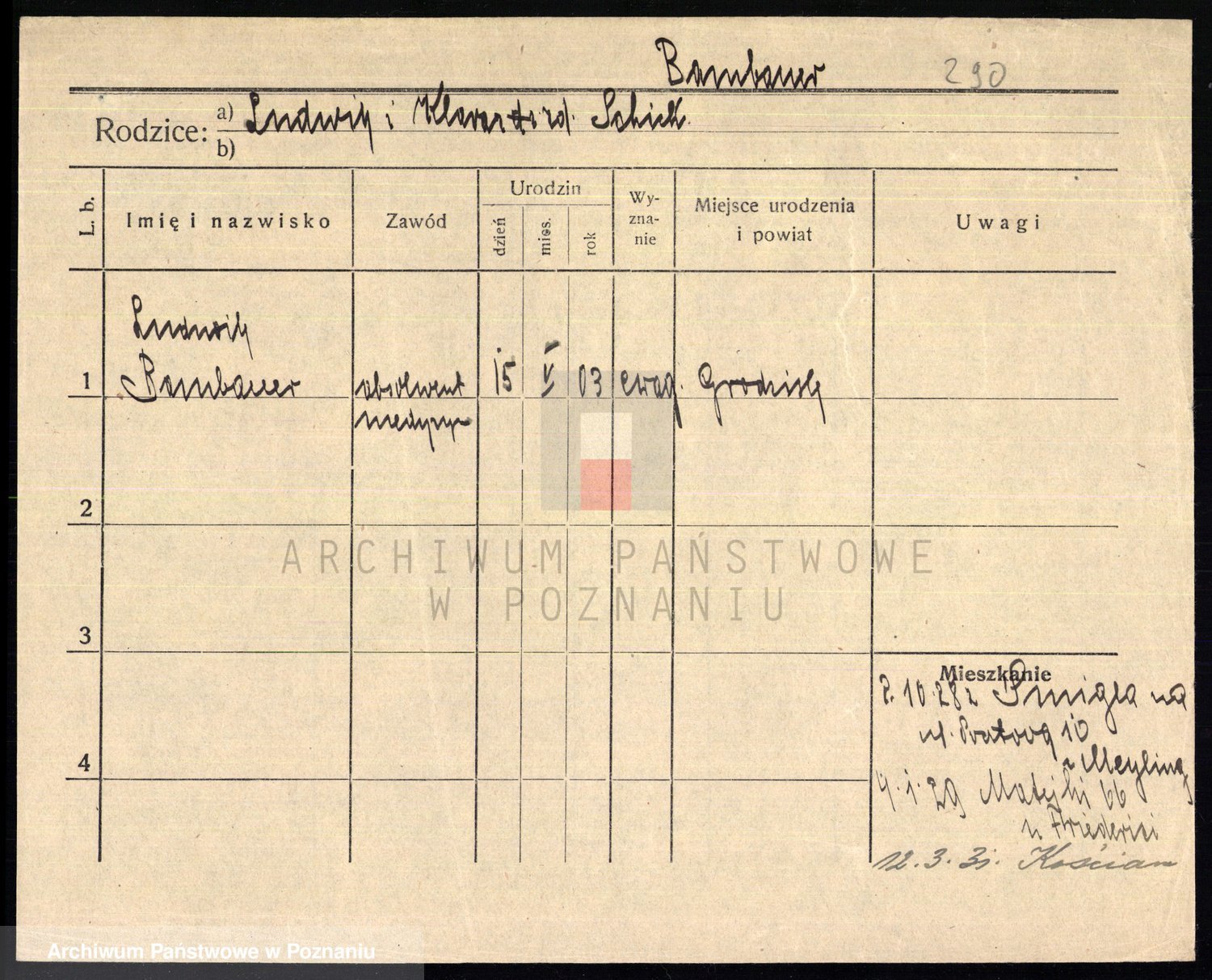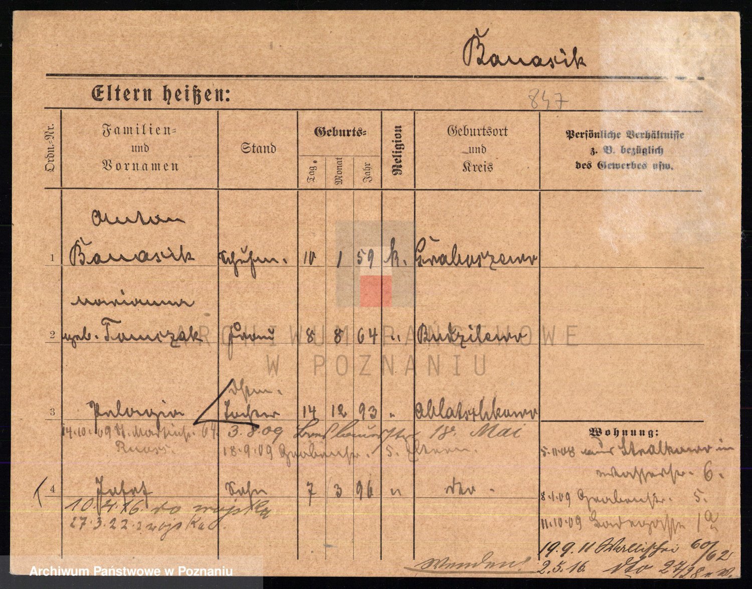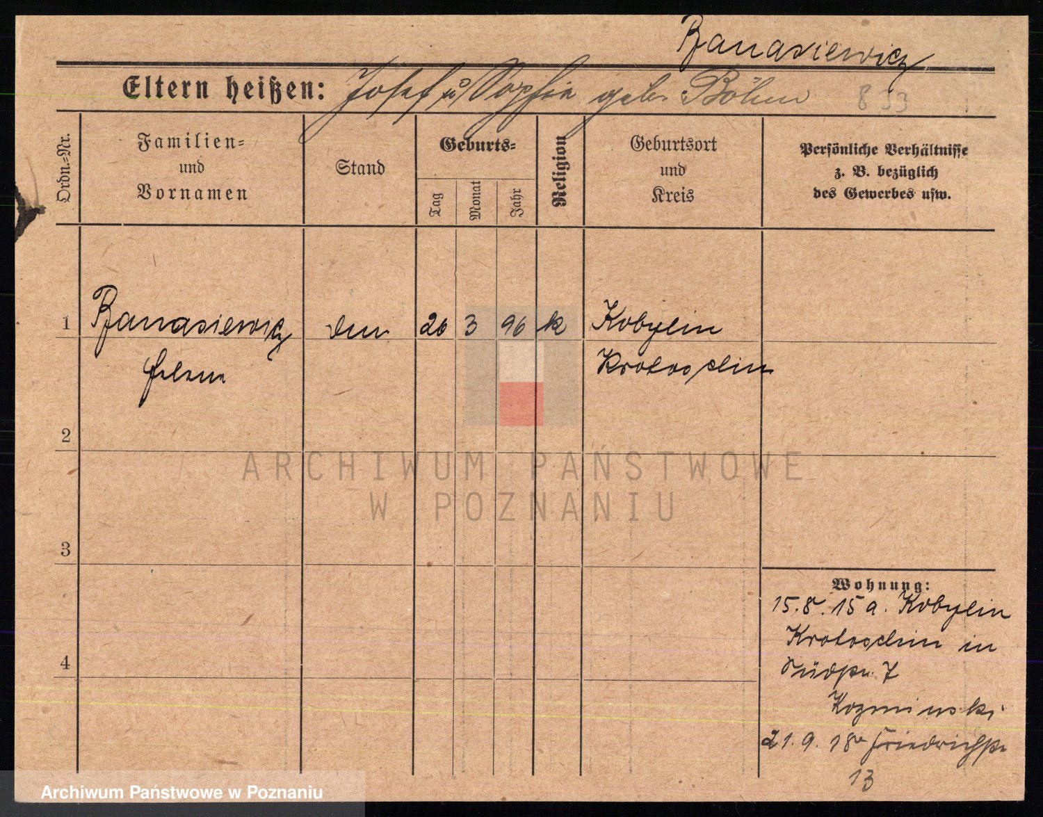 Podgląd karty osobowej dostępny jest po kliknięciu na nazwisko lub ikonkę karty. Można dokonywać powiększenia (ikony na górze) lub przechodzić między kolejnymi skanami (strzałki po bokach).