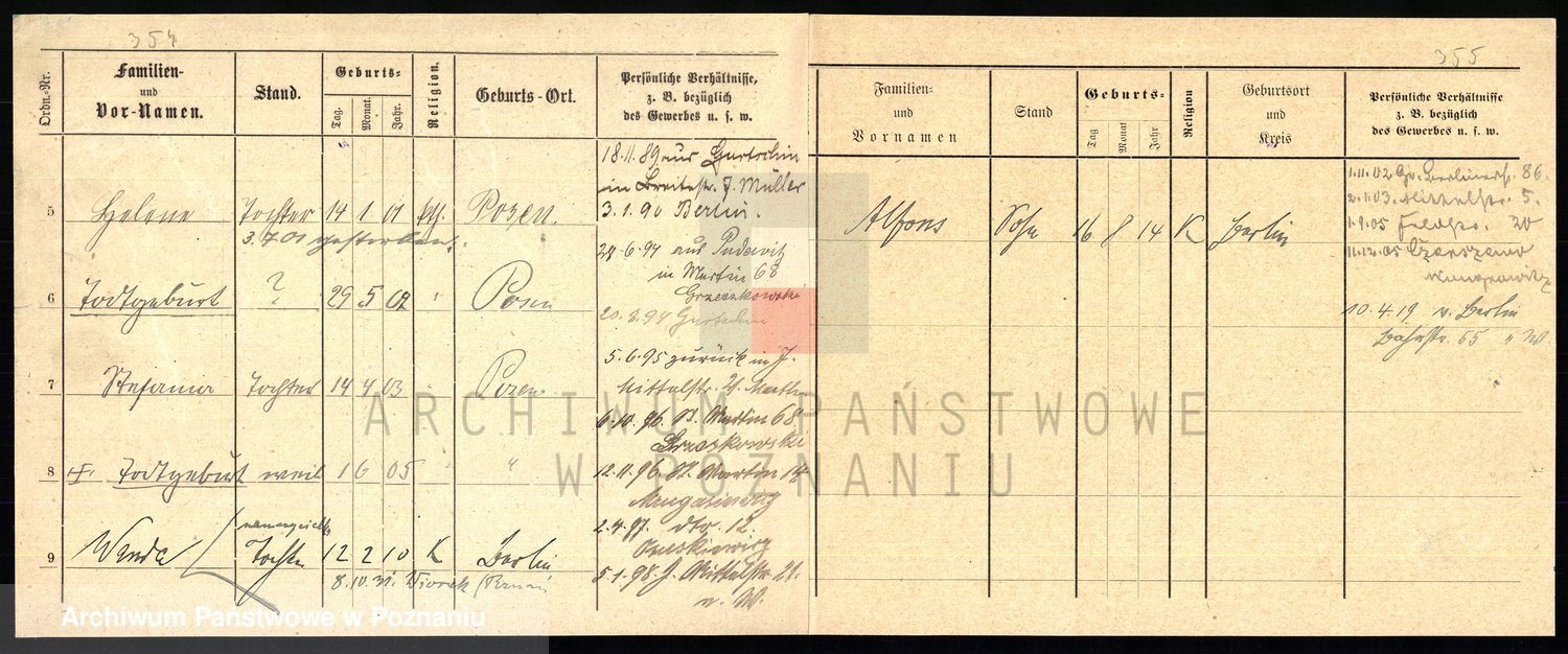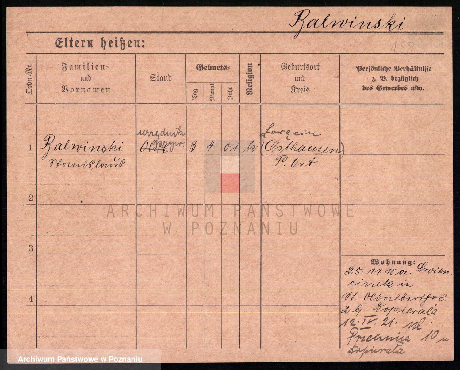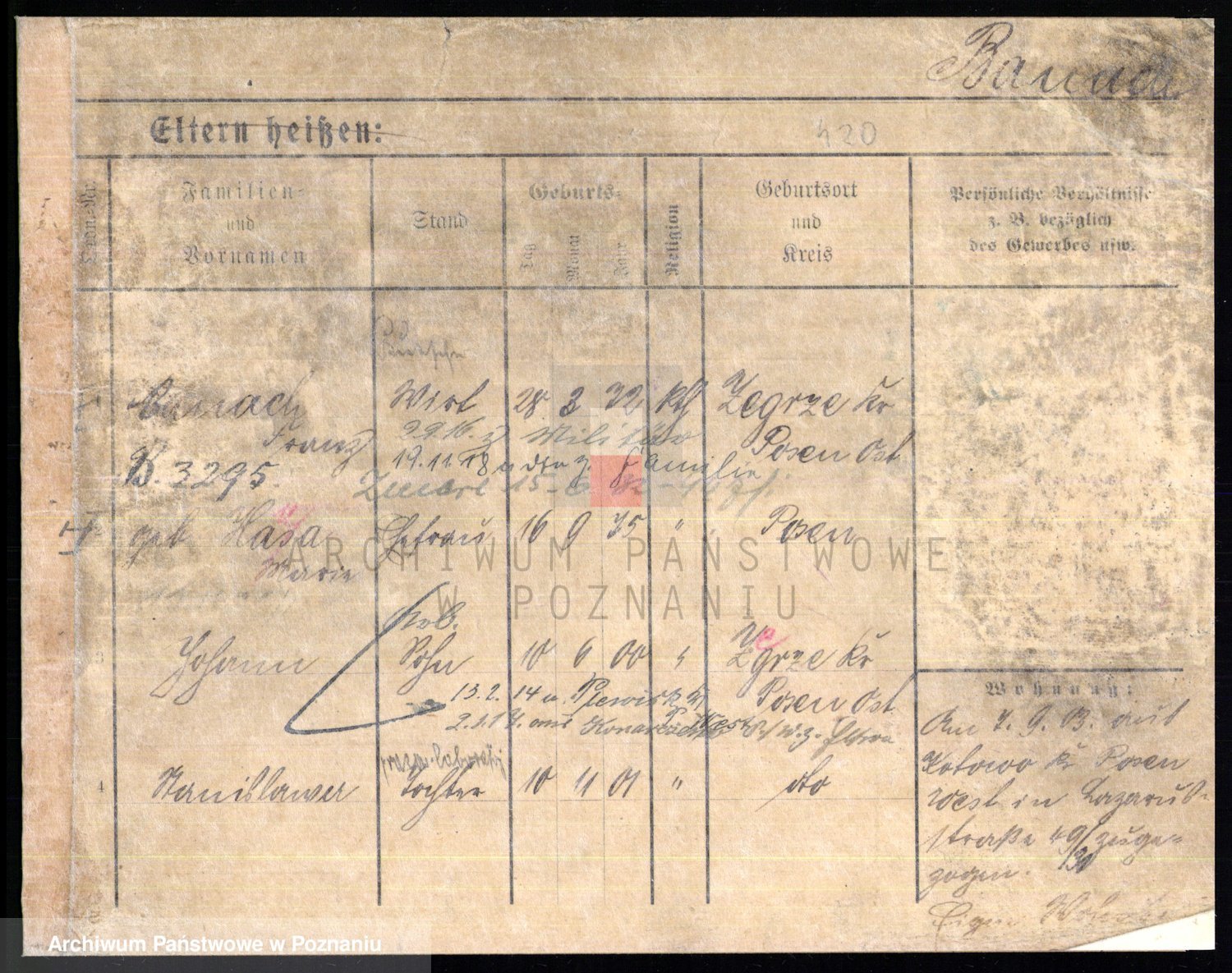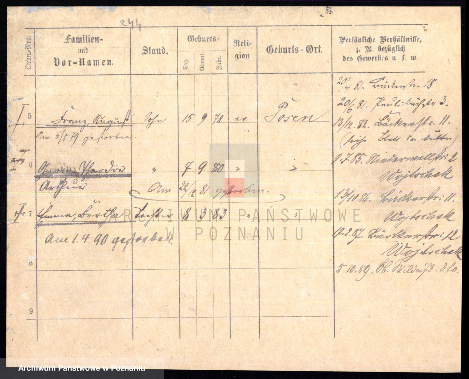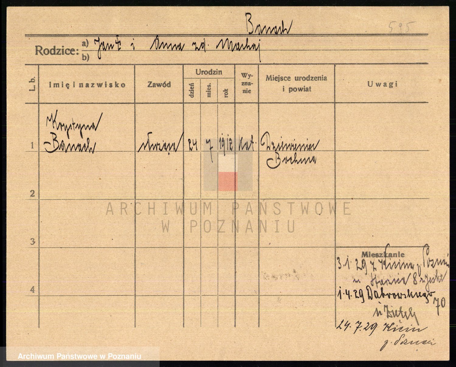 Podgląd karty osobowej dostępny jest po kliknięciu na nazwisko lub ikonkę karty. Można dokonywać powiększenia (ikony na górze) lub przechodzić między kolejnymi skanami (strzałki po bokach).