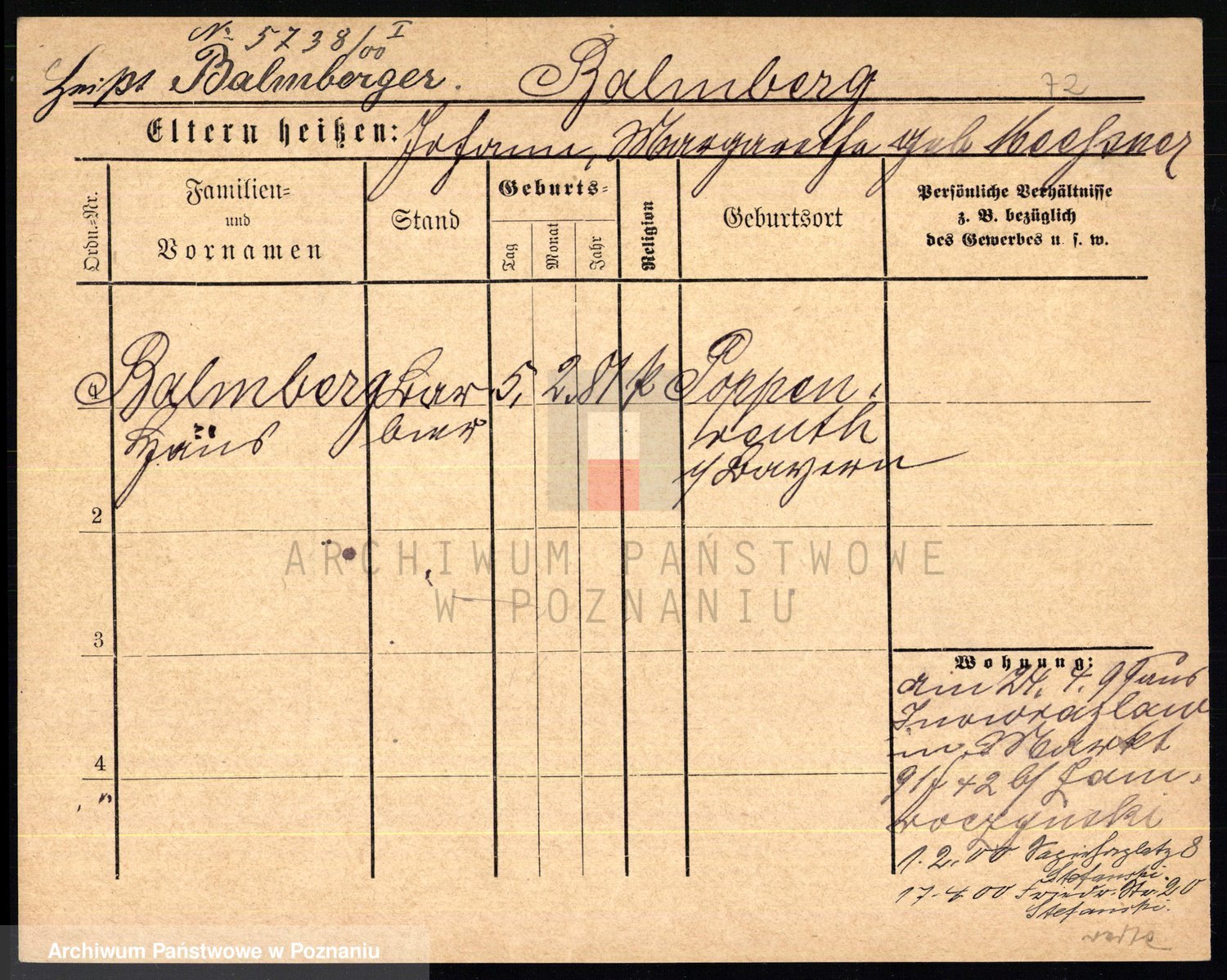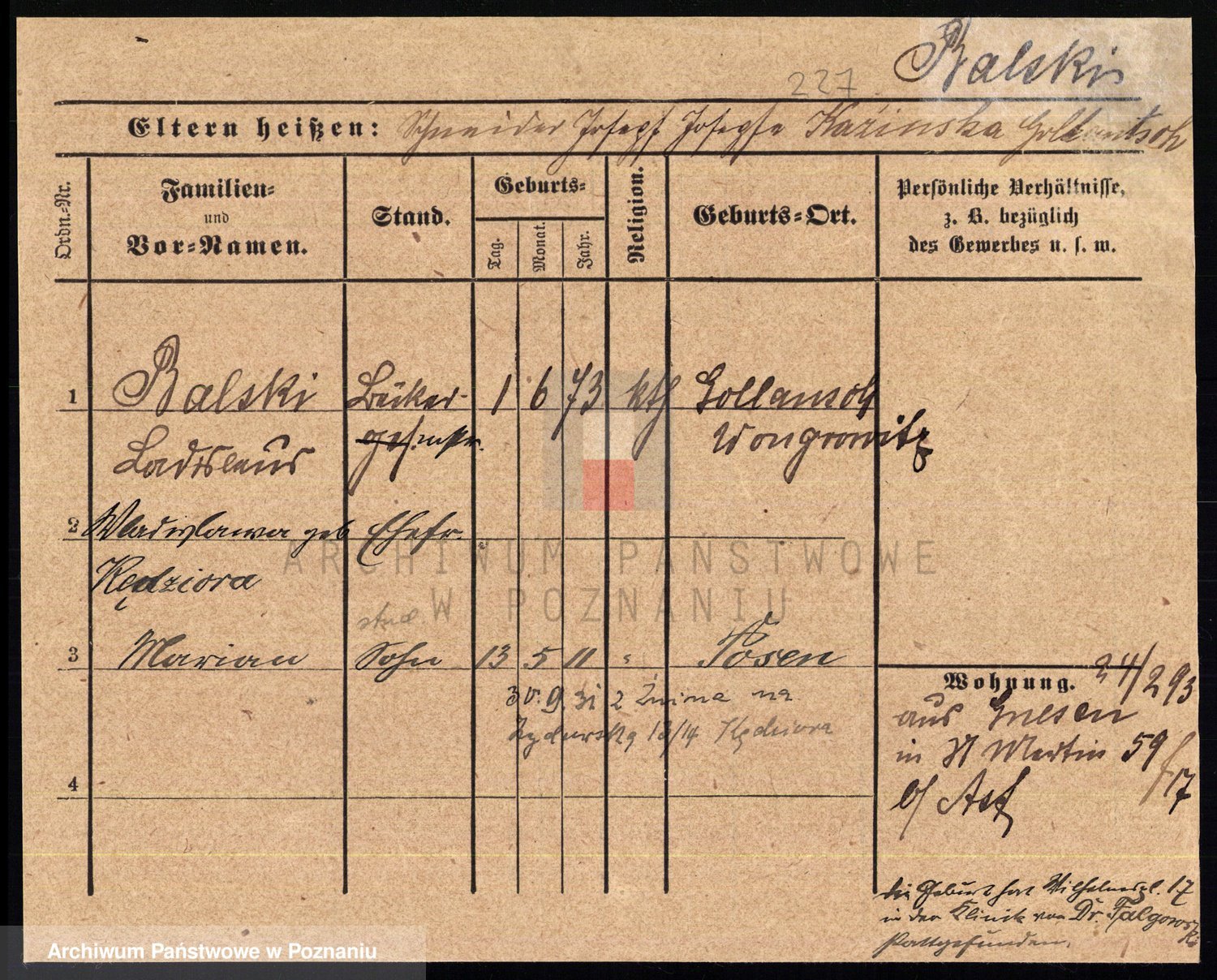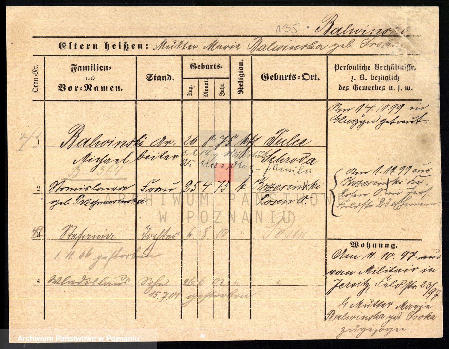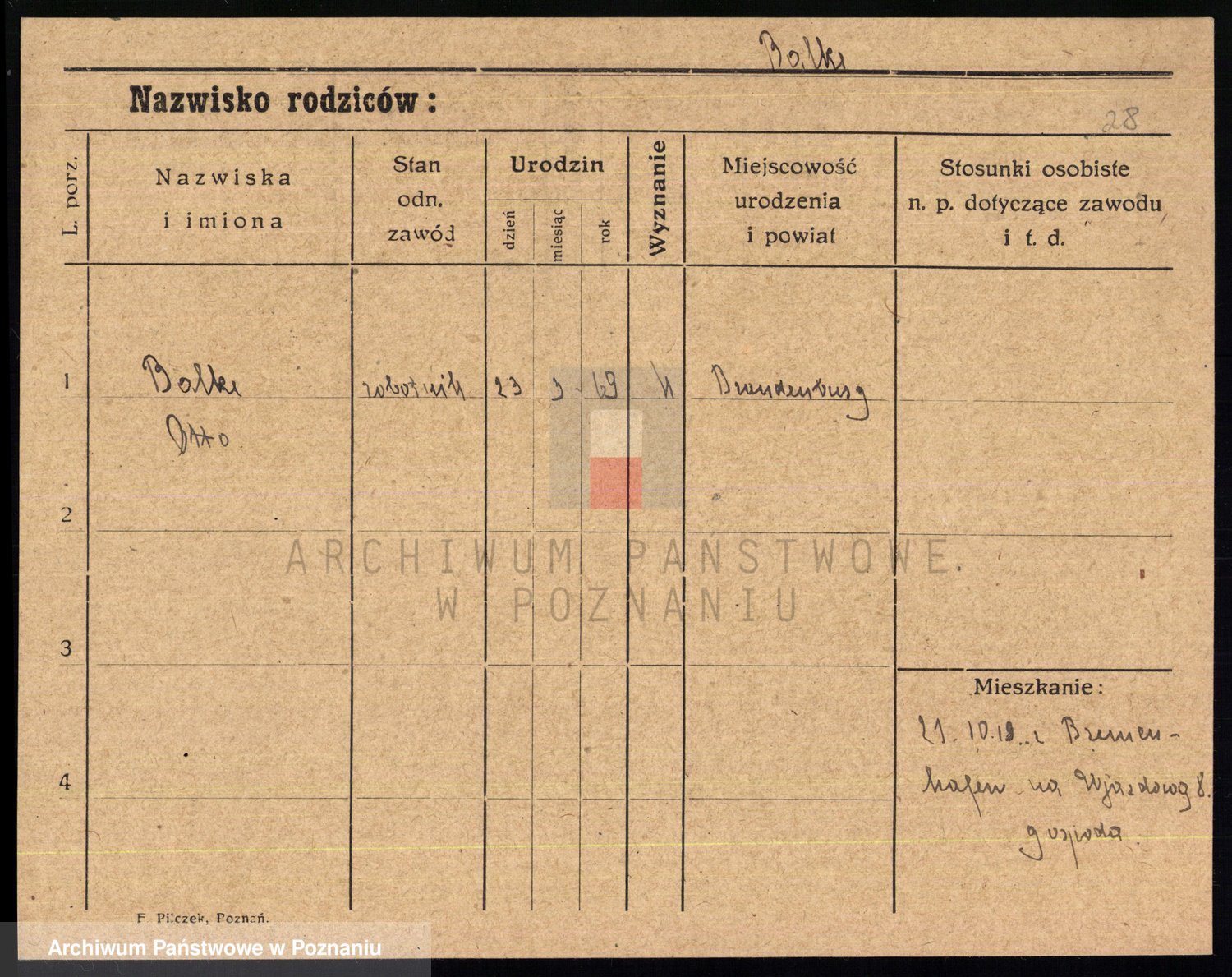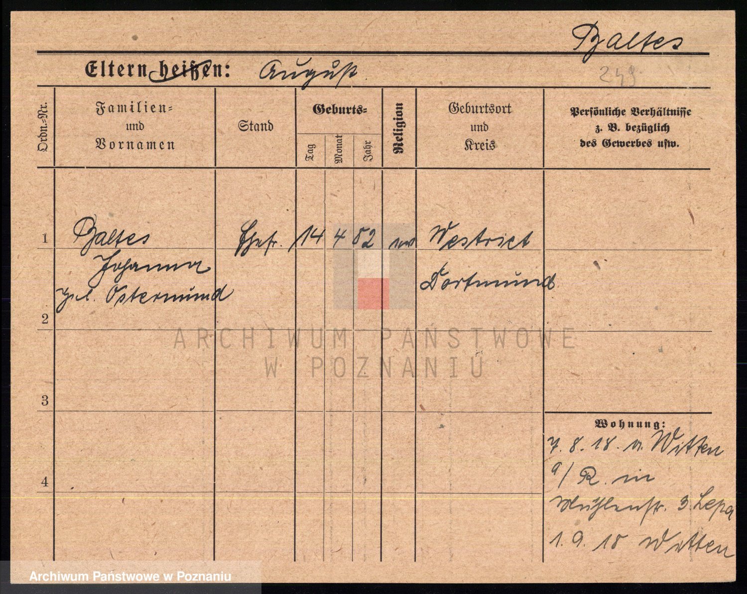 Podgląd karty osobowej dostępny jest po kliknięciu na nazwisko lub ikonkę karty. Można dokonywać powiększenia (ikony na górze) lub przechodzić między kolejnymi skanami (strzałki po bokach).
