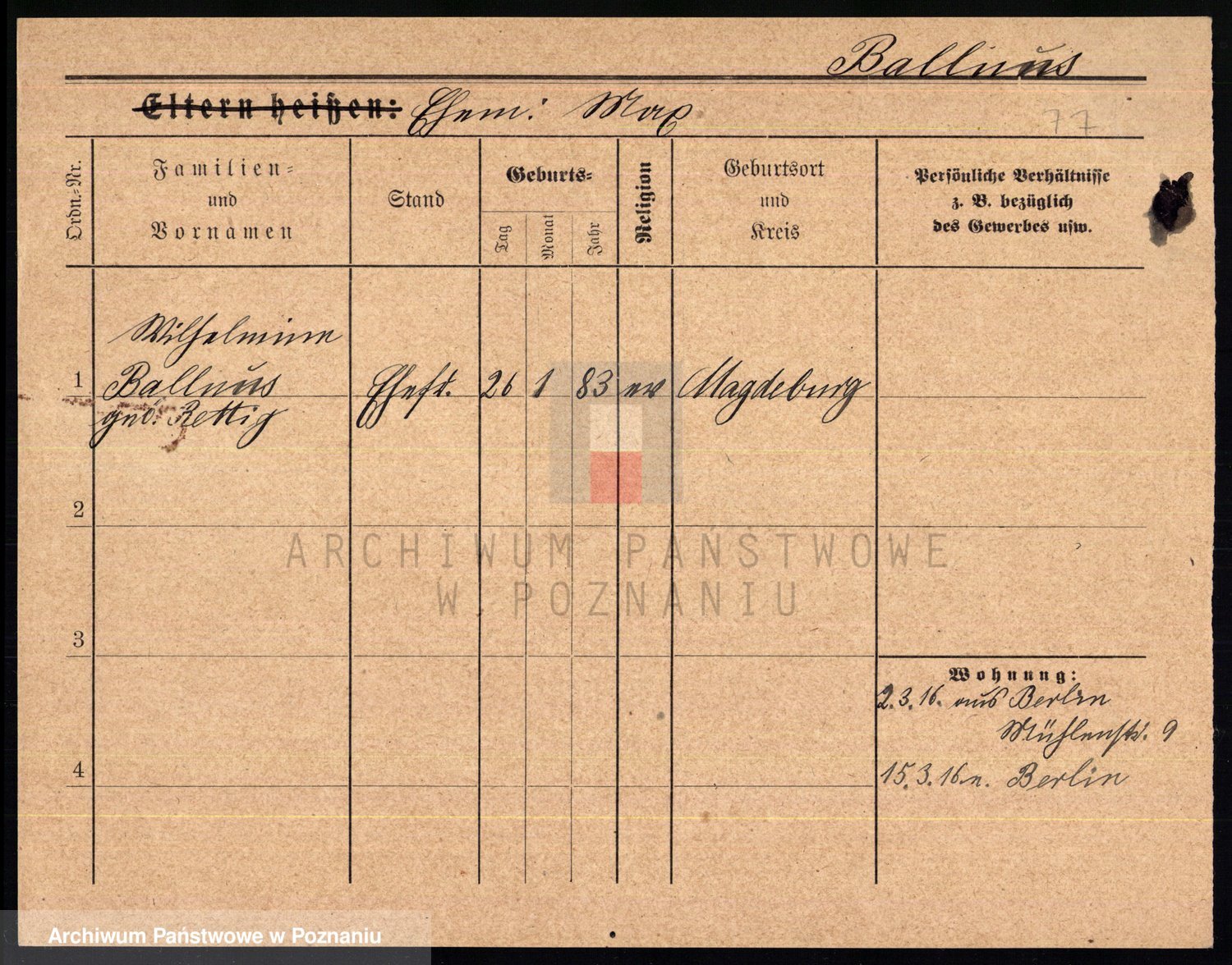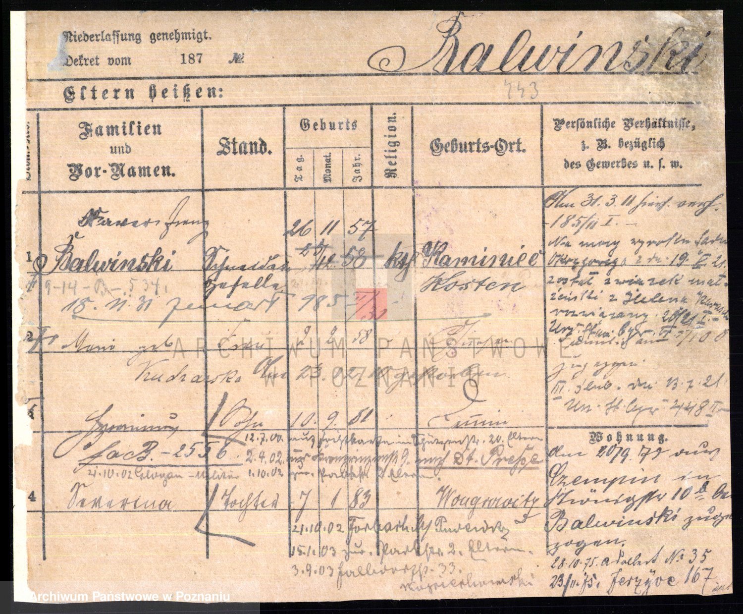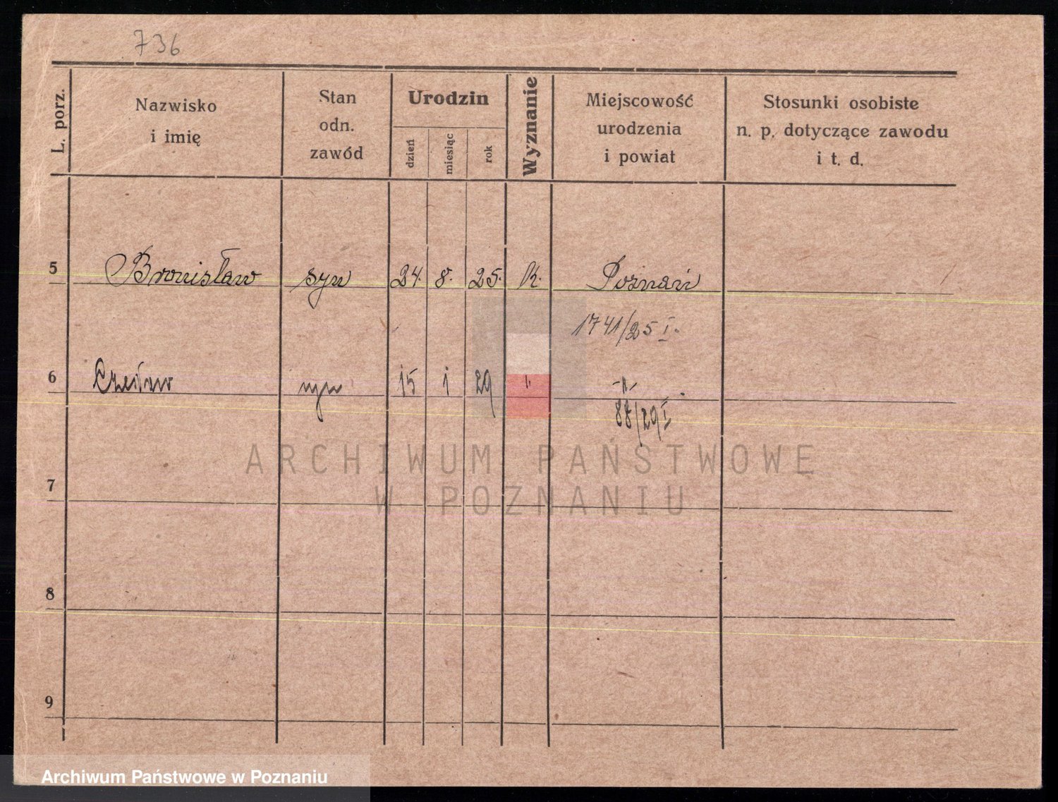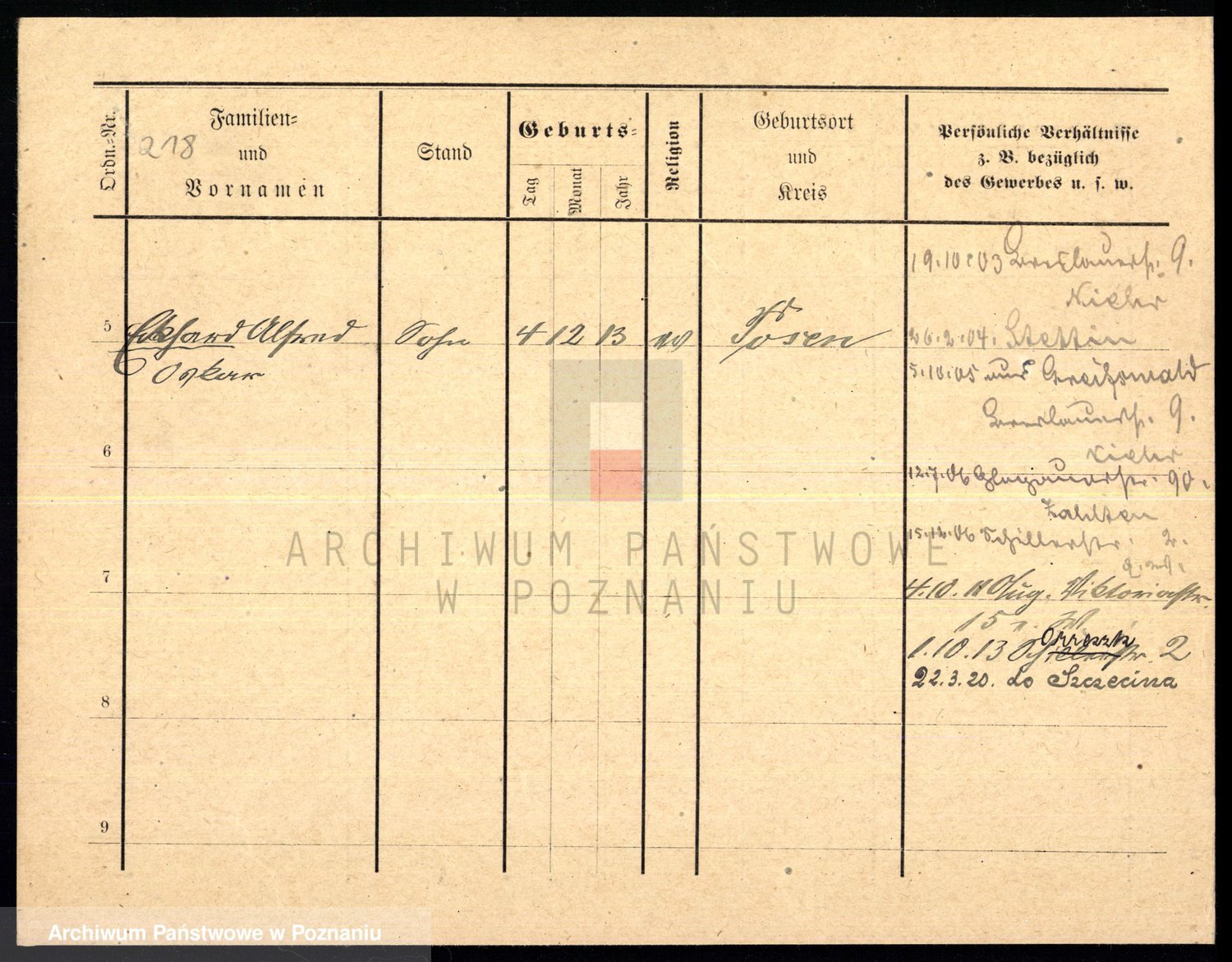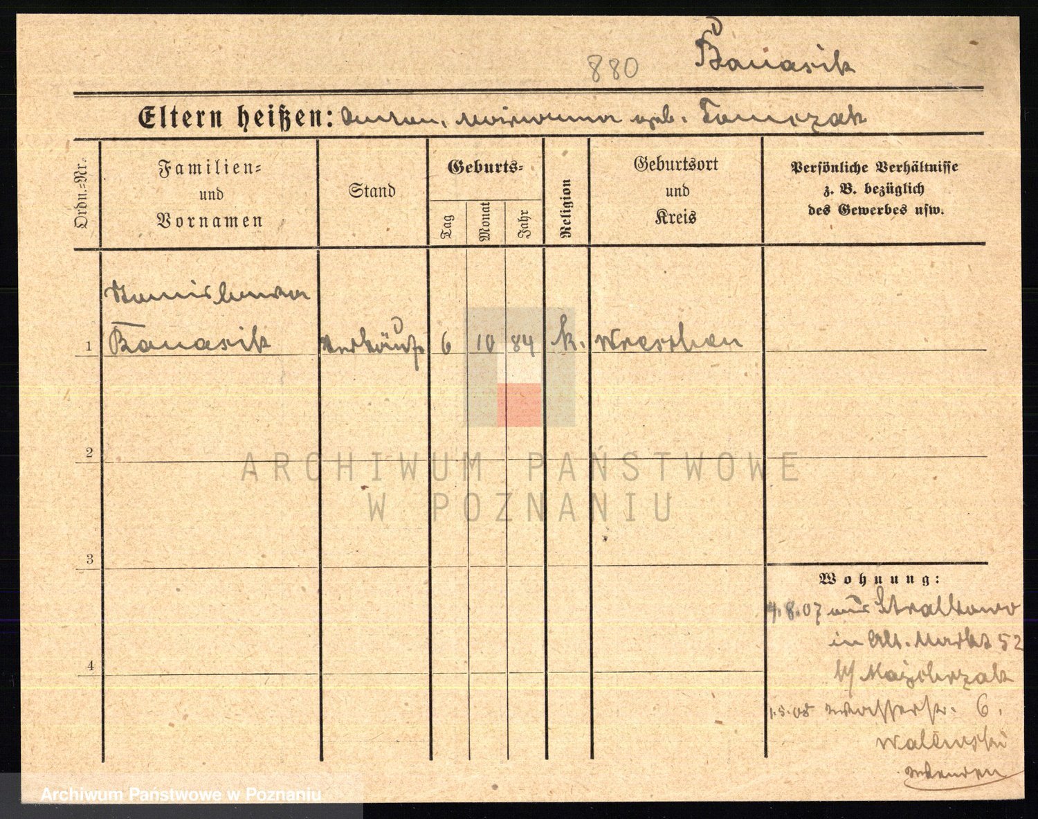 Podgląd karty osobowej dostępny jest po kliknięciu na nazwisko lub ikonkę karty. Można dokonywać powiększenia (ikony na górze) lub przechodzić między kolejnymi skanami (strzałki po bokach).