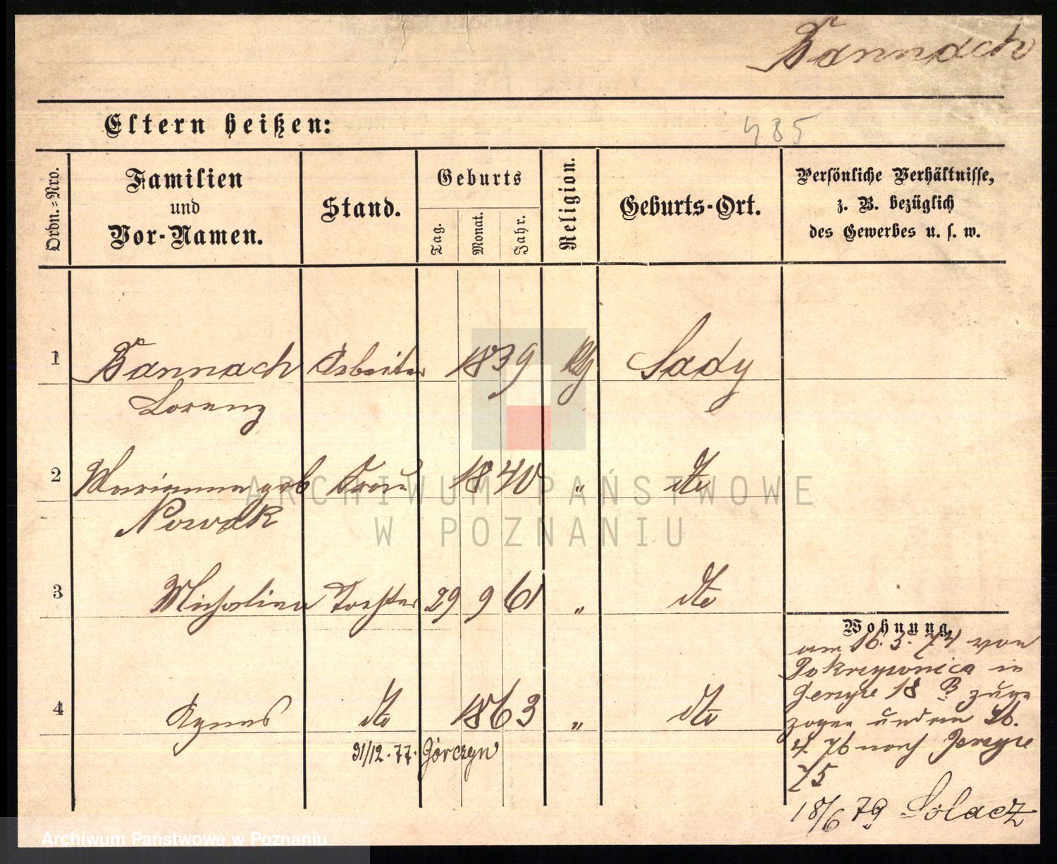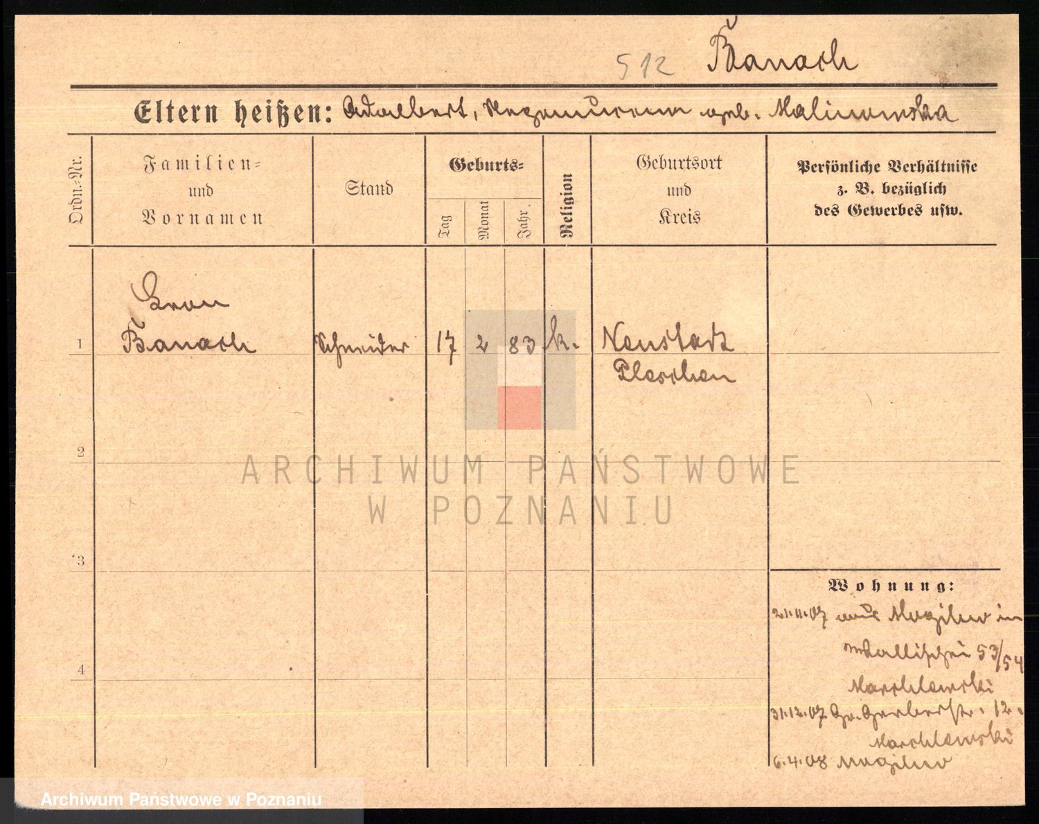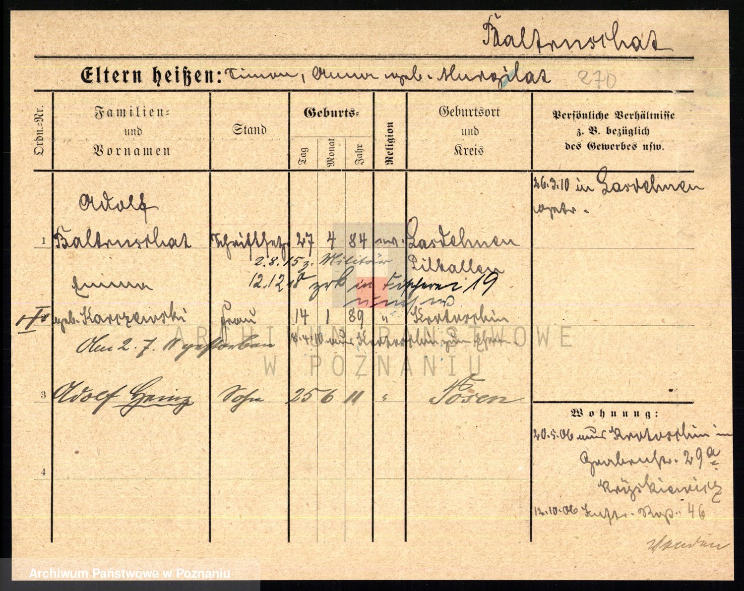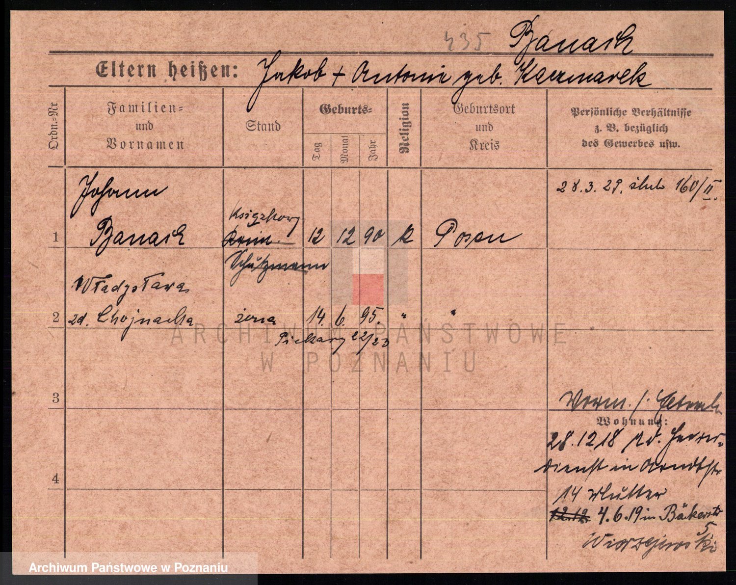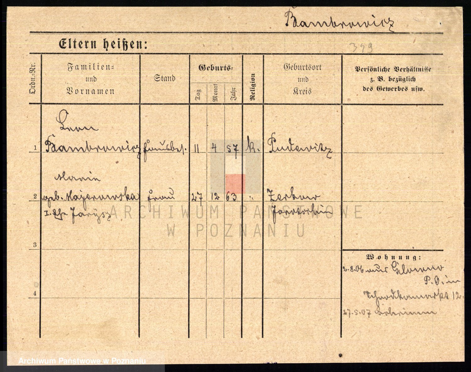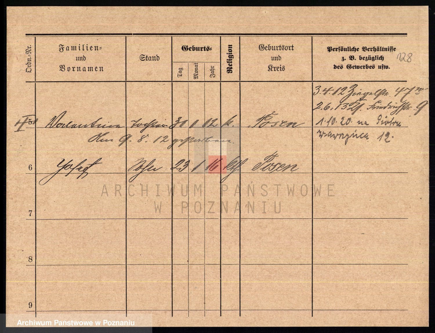 Podgląd karty osobowej dostępny jest po kliknięciu na nazwisko lub ikonkę karty. Można dokonywać powiększenia (ikony na górze) lub przechodzić między kolejnymi skanami (strzałki po bokach).