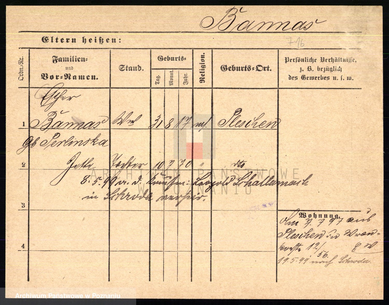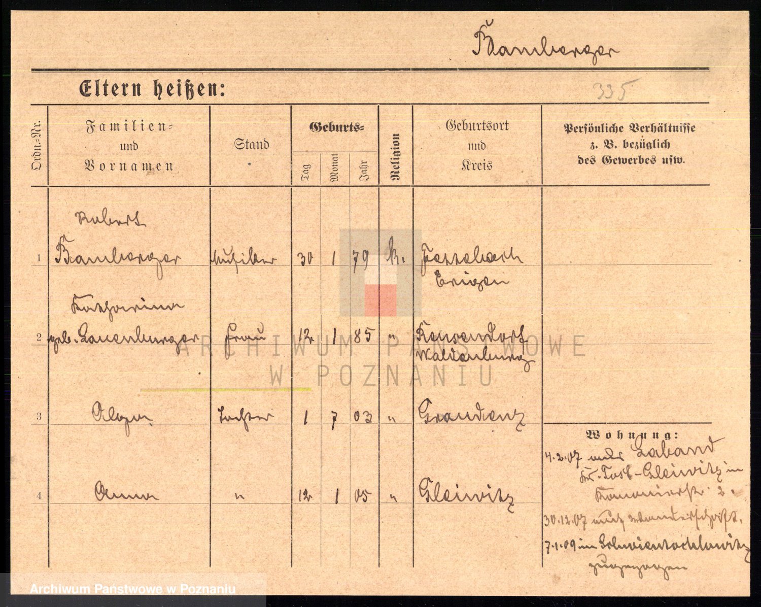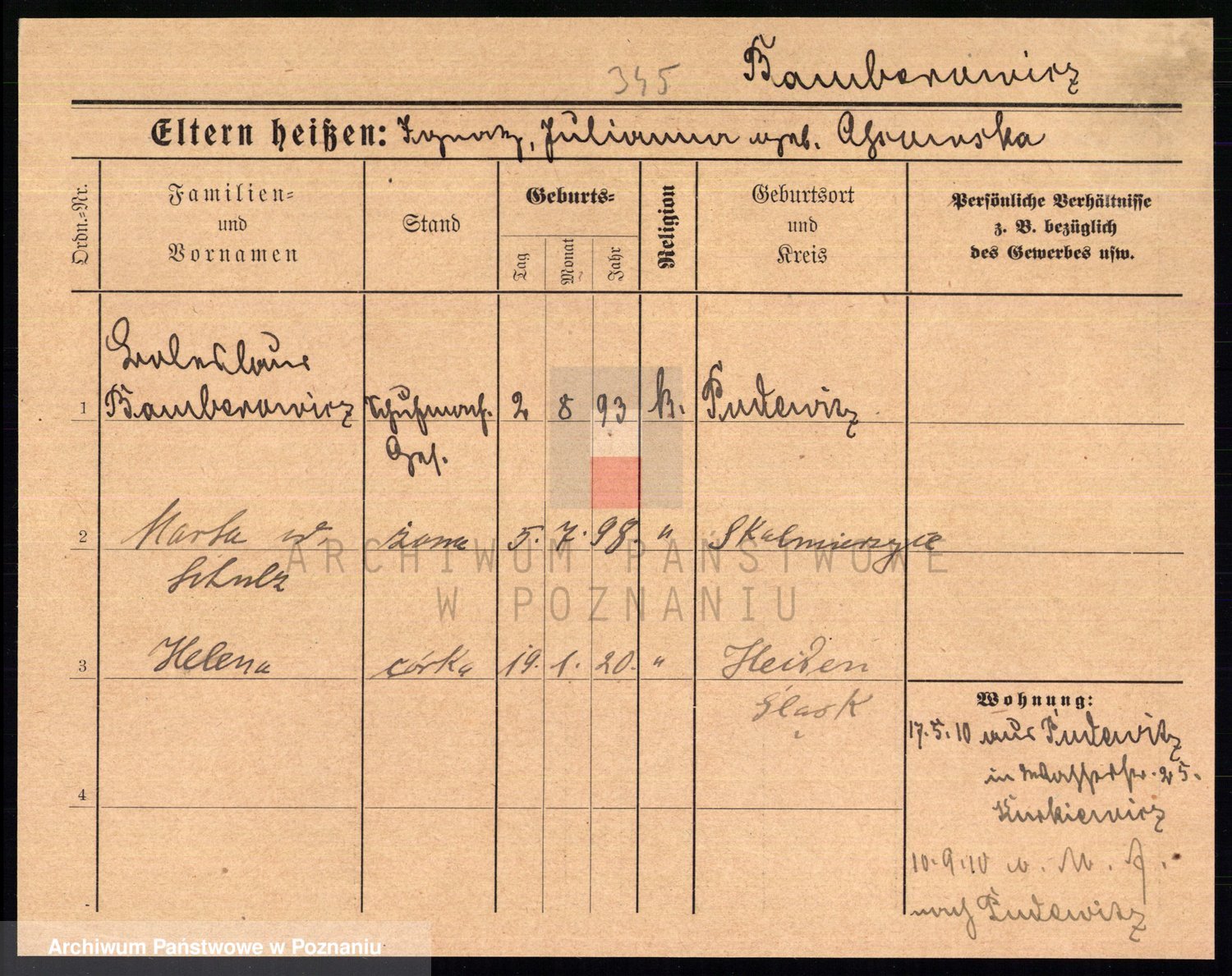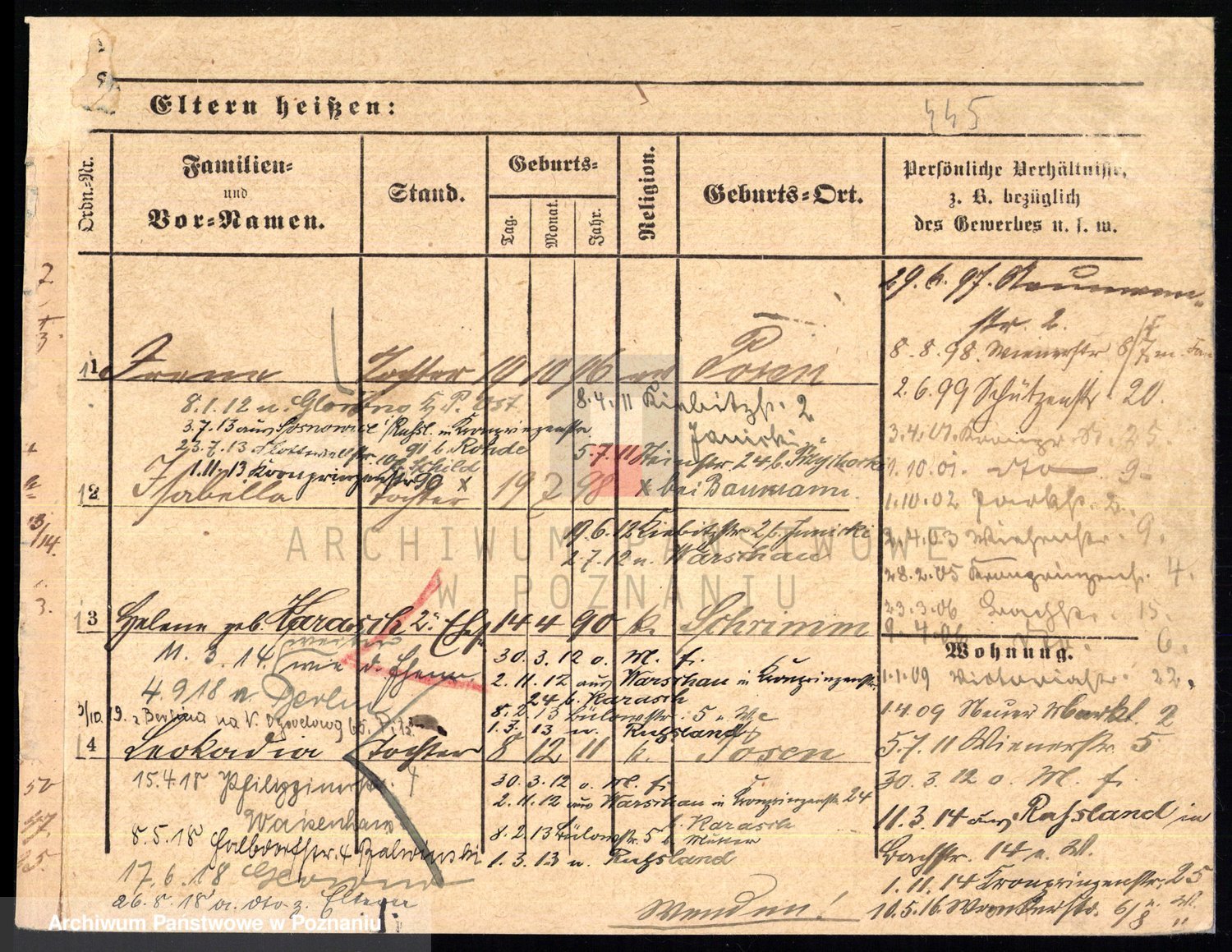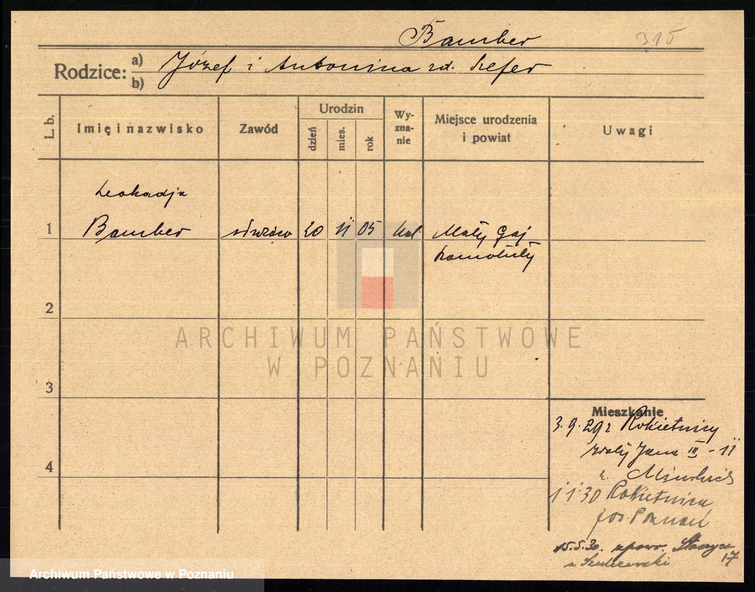 Podgląd karty osobowej dostępny jest po kliknięciu na nazwisko lub ikonkę karty. Można dokonywać powiększenia (ikony na górze) lub przechodzić między kolejnymi skanami (strzałki po bokach).