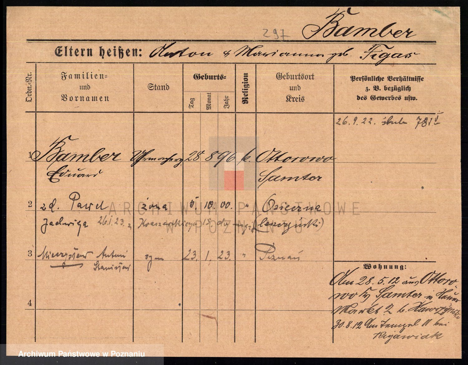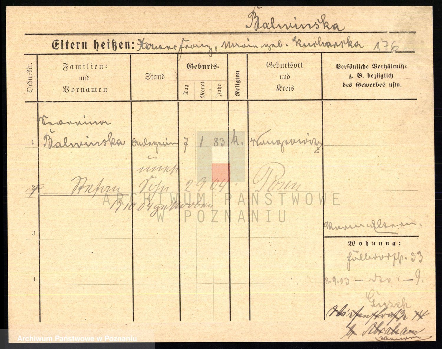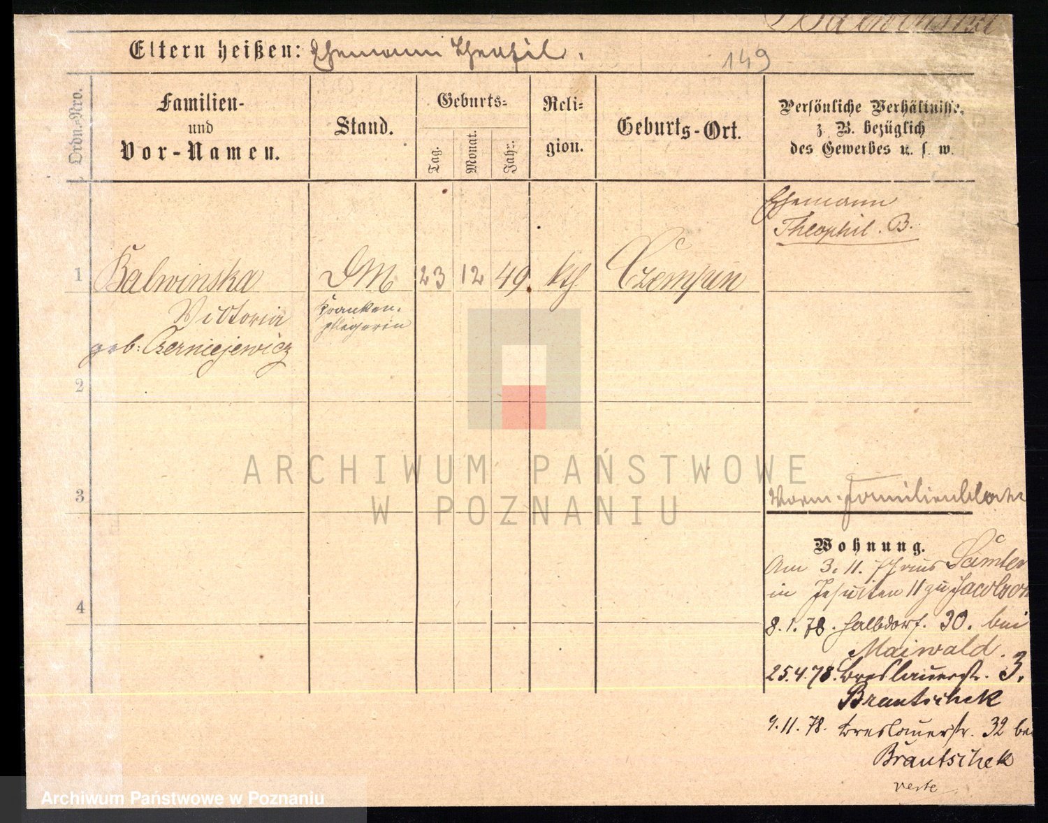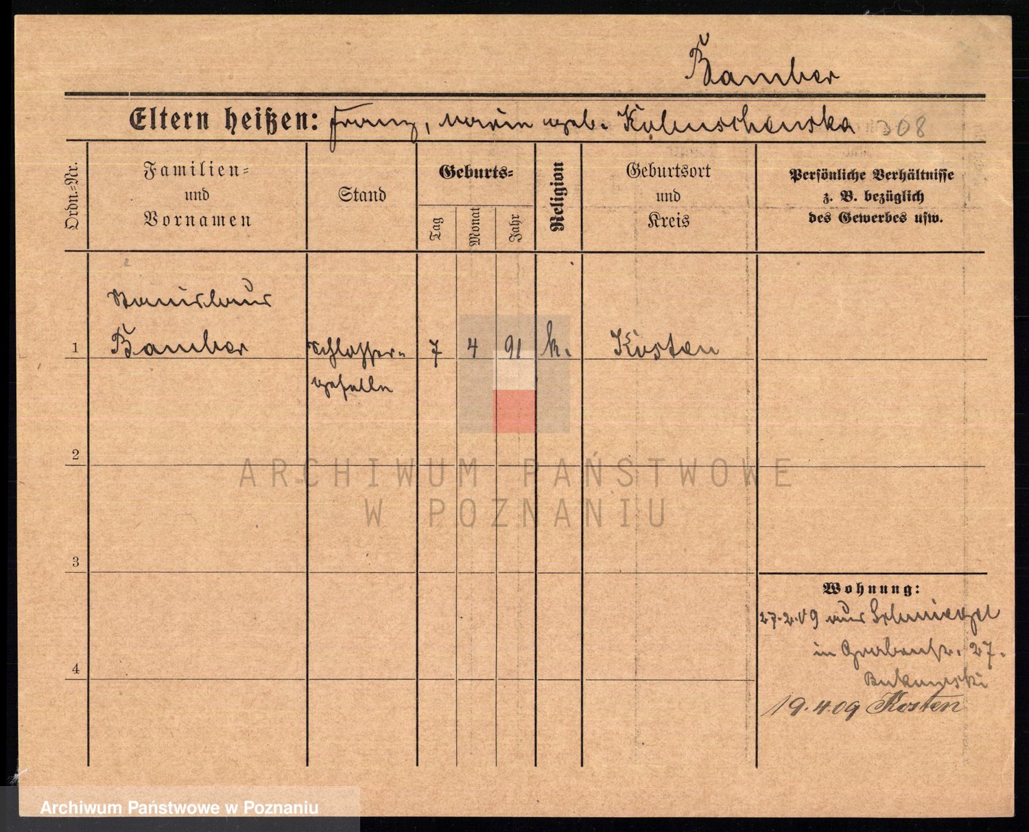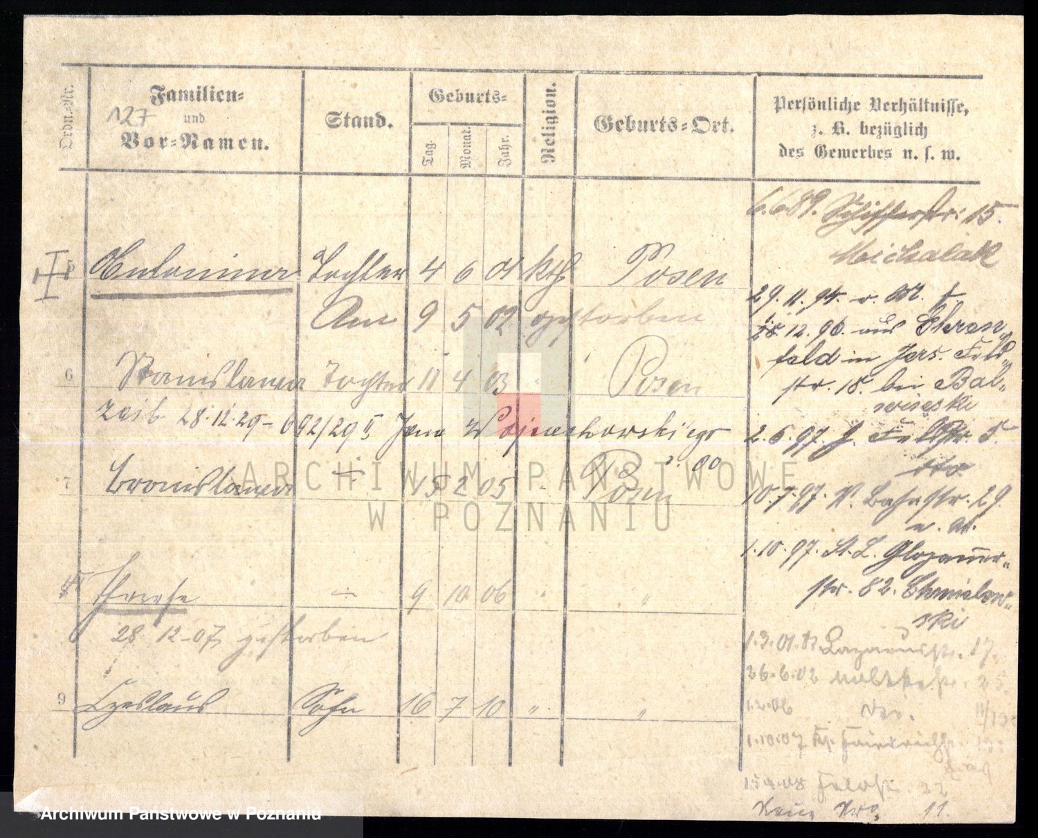 Podgląd karty osobowej dostępny jest po kliknięciu na nazwisko lub ikonkę karty. Można dokonywać powiększenia (ikony na górze) lub przechodzić między kolejnymi skanami (strzałki po bokach).
