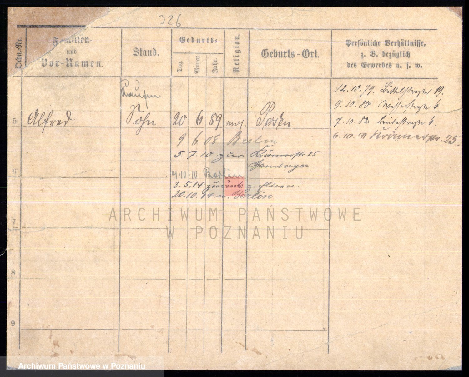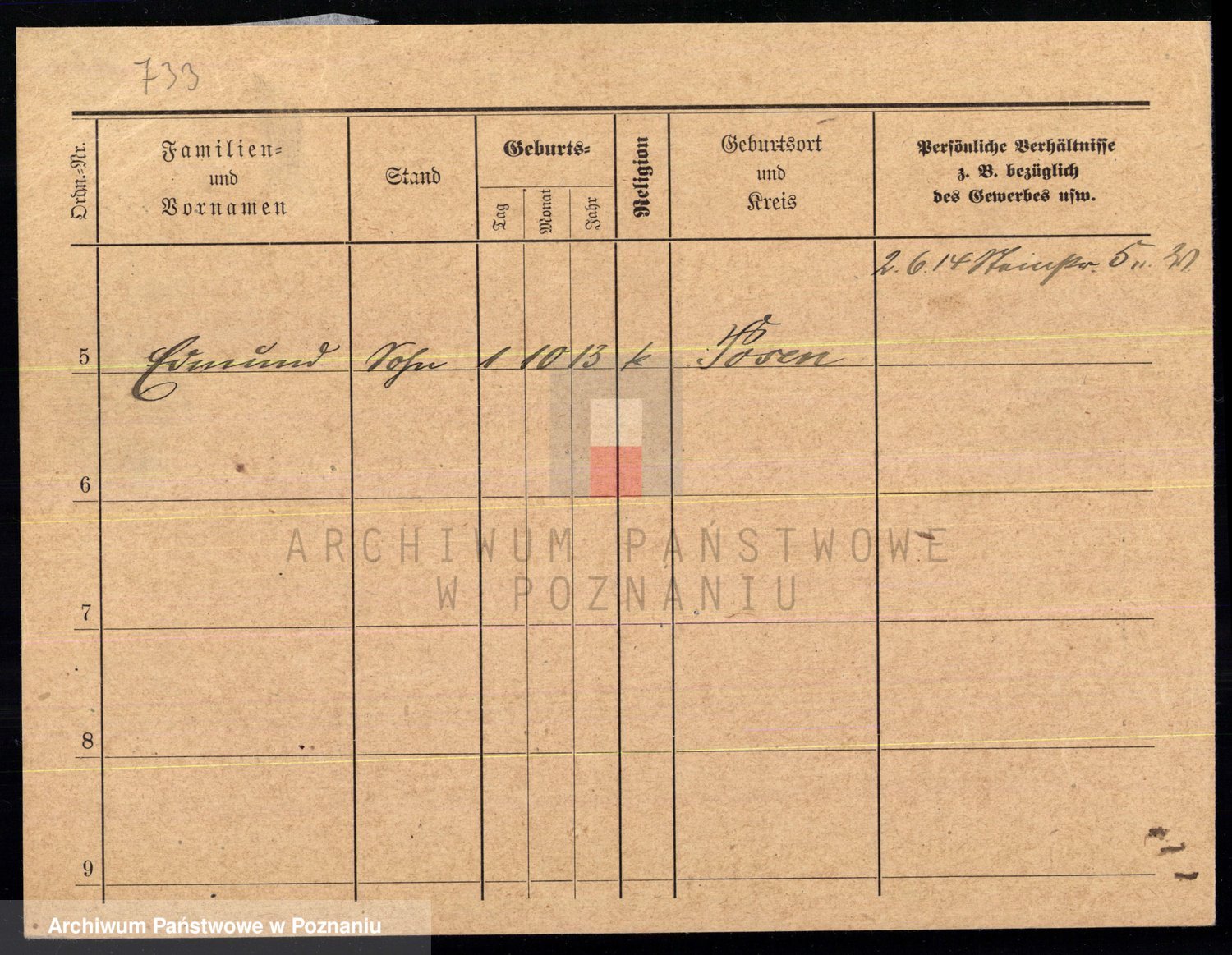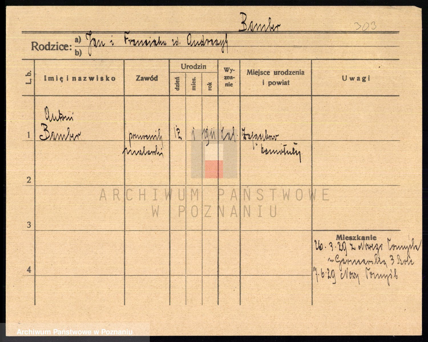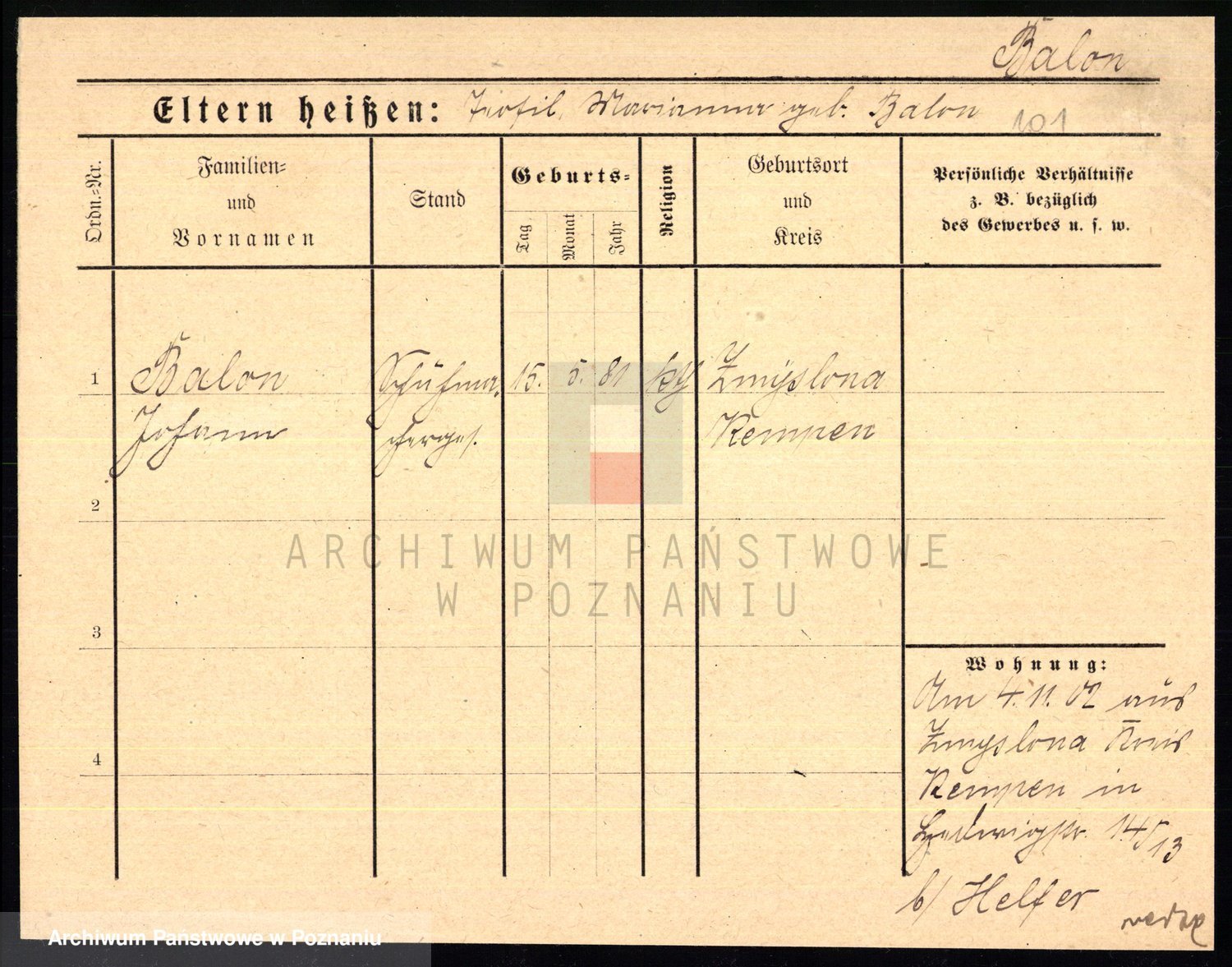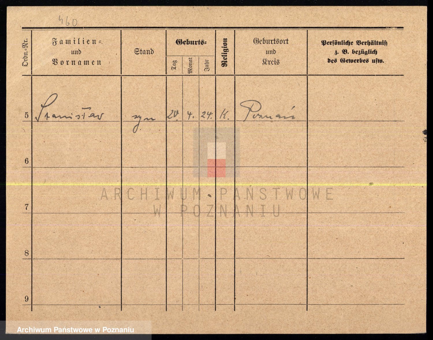 Podgląd karty osobowej dostępny jest po kliknięciu na nazwisko lub ikonkę karty. Można dokonywać powiększenia (ikony na górze) lub przechodzić między kolejnymi skanami (strzałki po bokach).