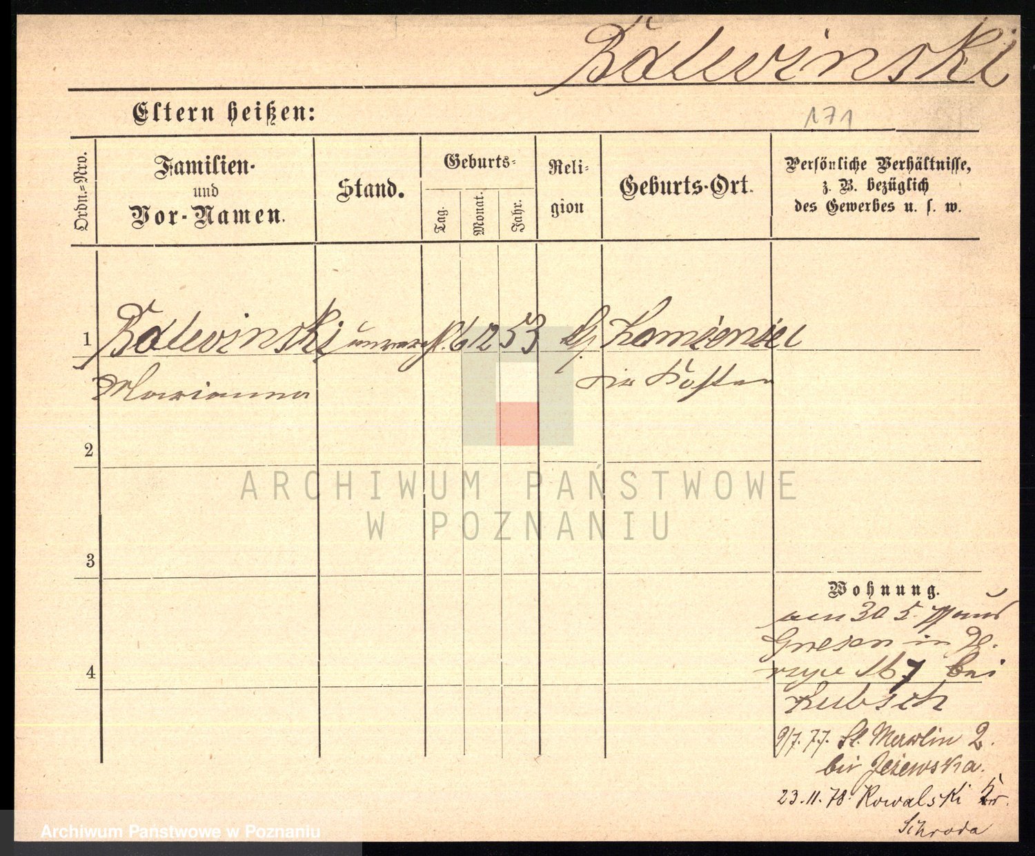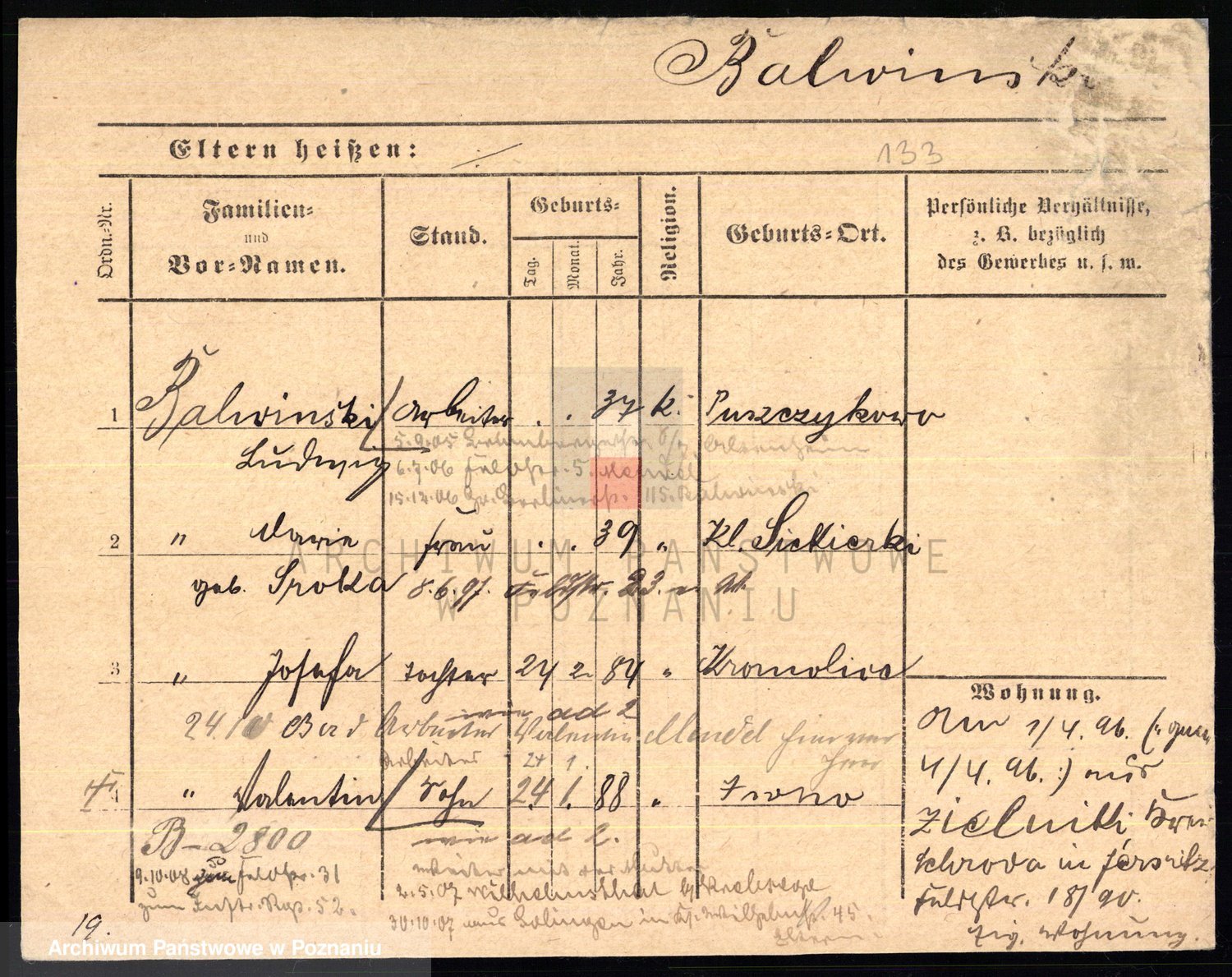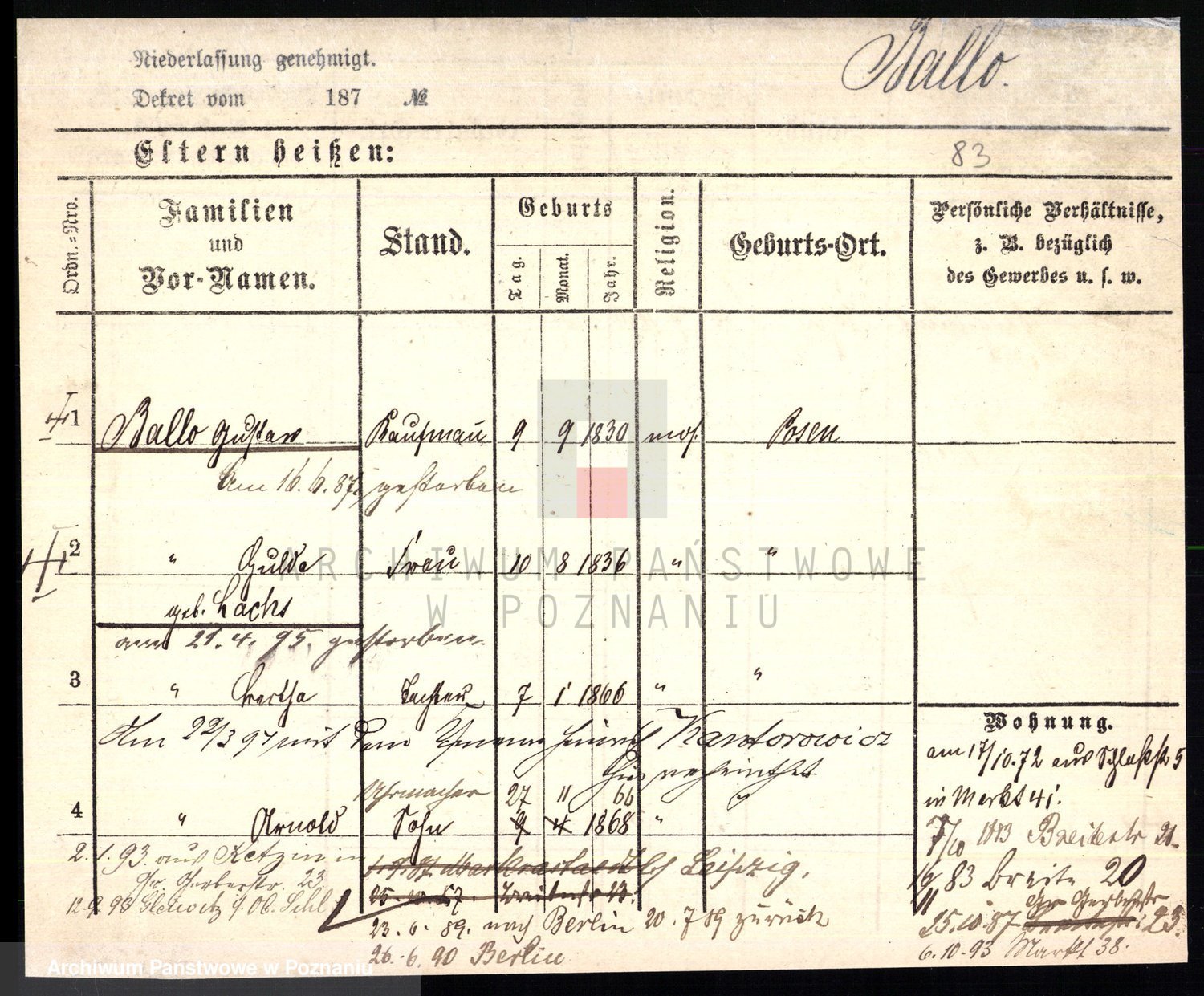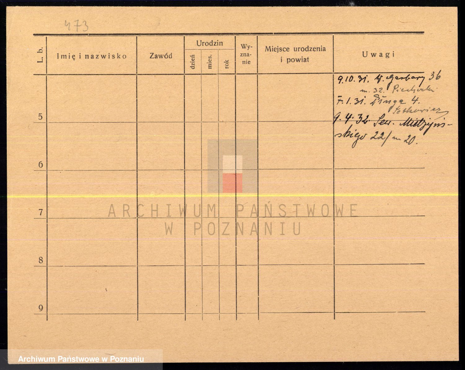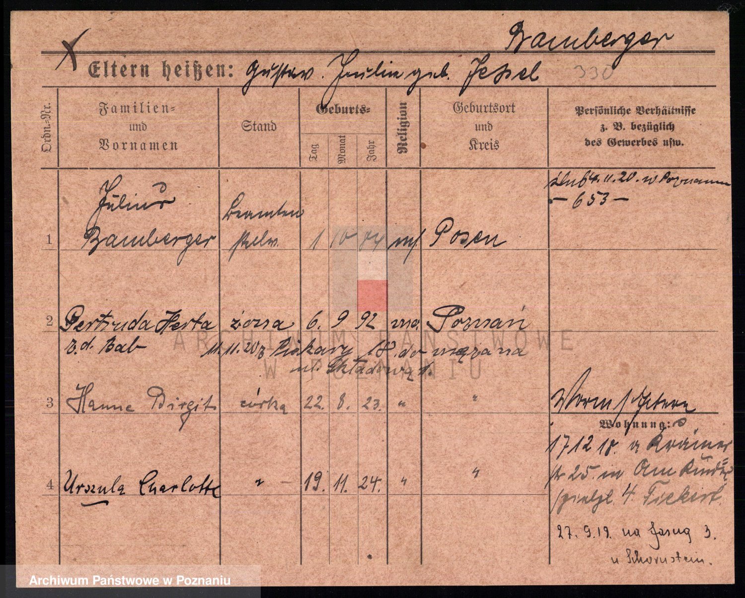 Podgląd karty osobowej dostępny jest po kliknięciu na nazwisko lub ikonkę karty. Można dokonywać powiększenia (ikony na górze) lub przechodzić między kolejnymi skanami (strzałki po bokach).