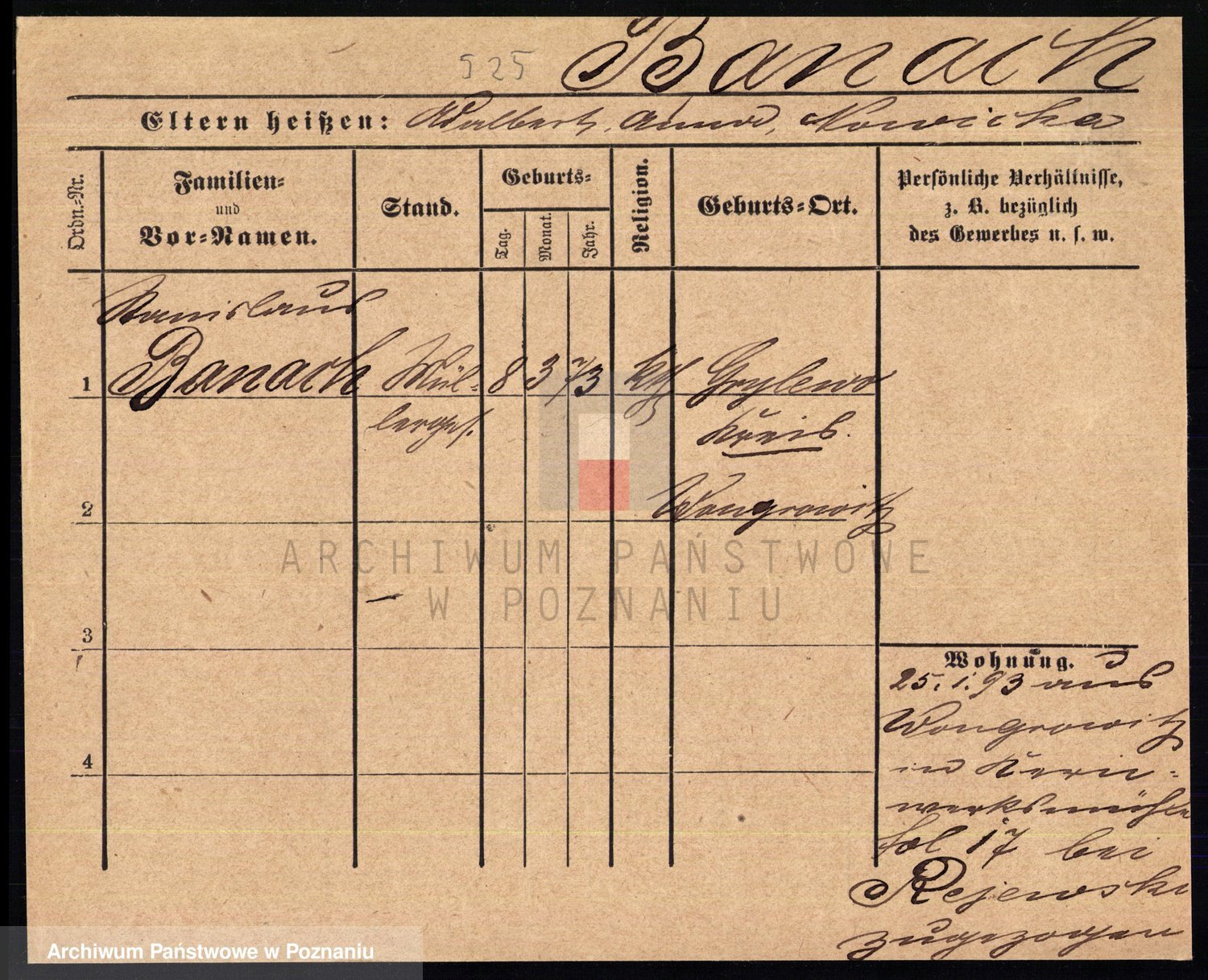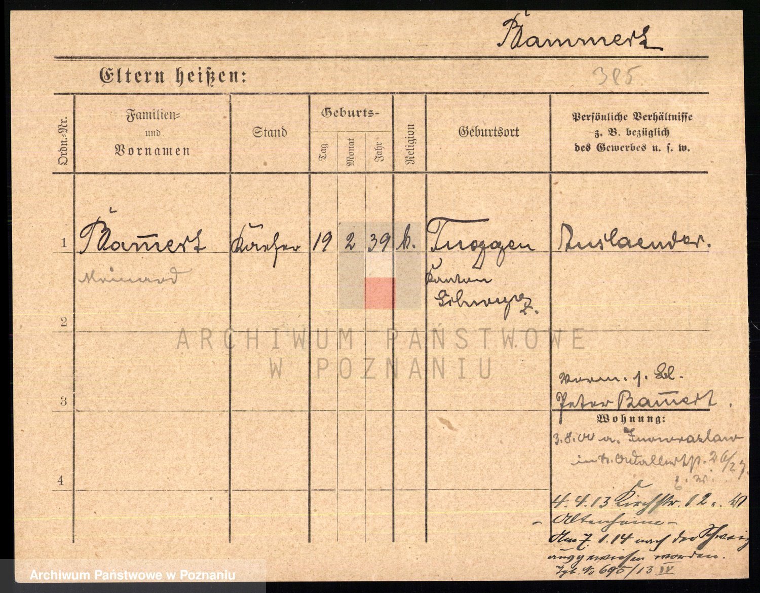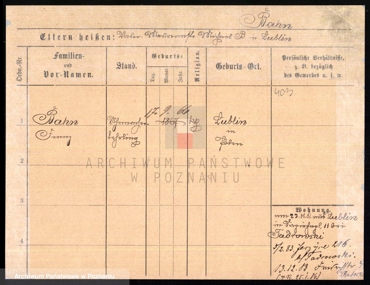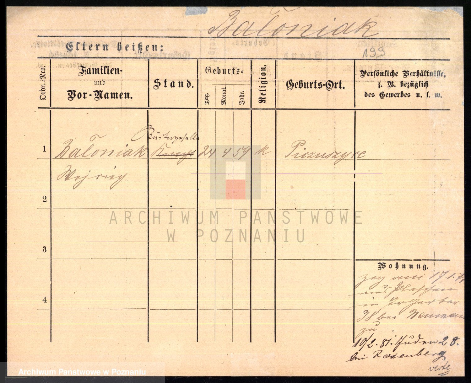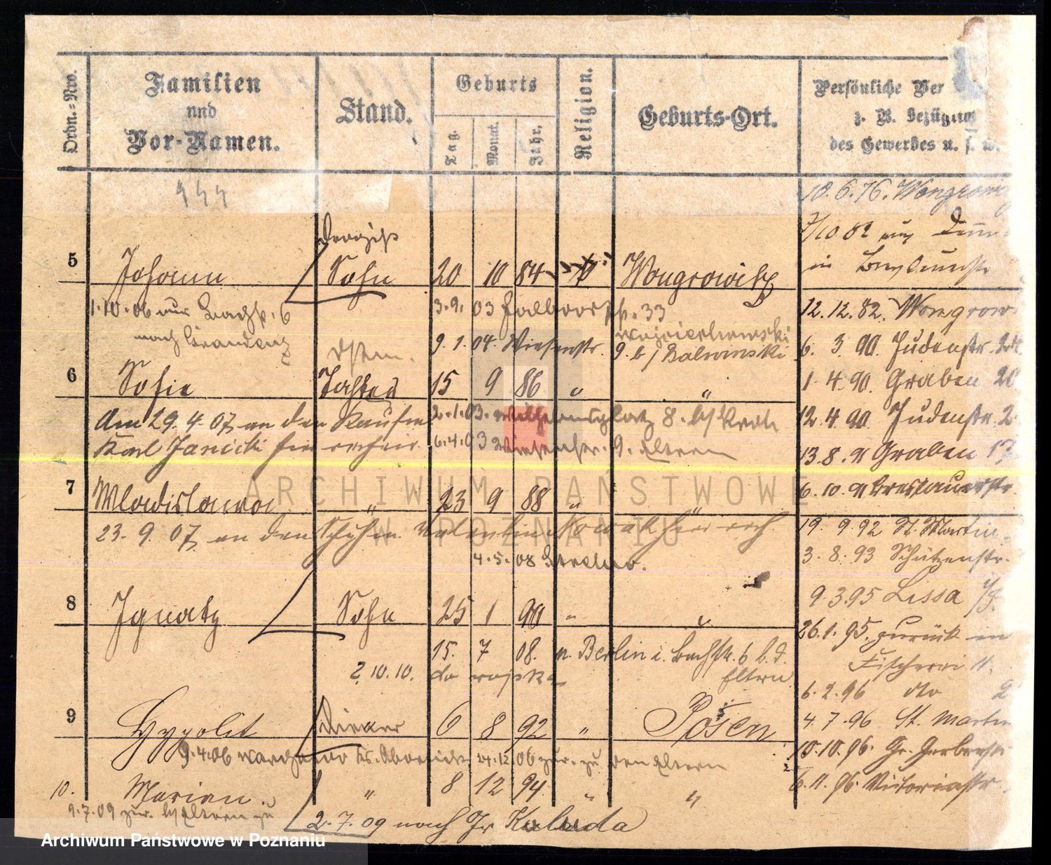 Podgląd karty osobowej dostępny jest po kliknięciu na nazwisko lub ikonkę karty. Można dokonywać powiększenia (ikony na górze) lub przechodzić między kolejnymi skanami (strzałki po bokach).