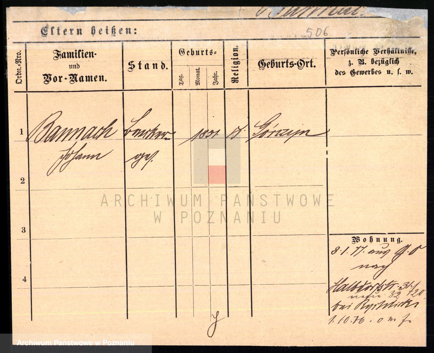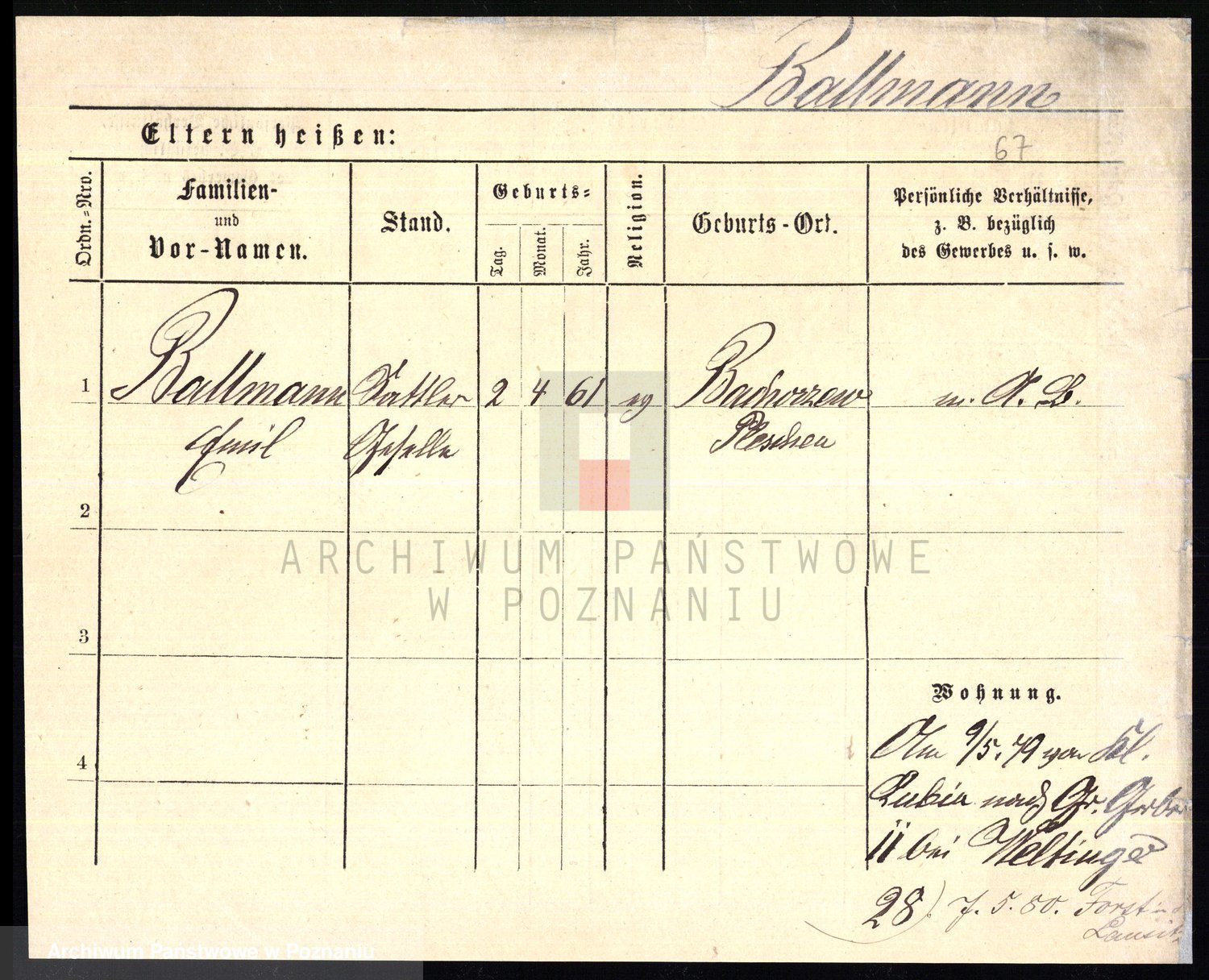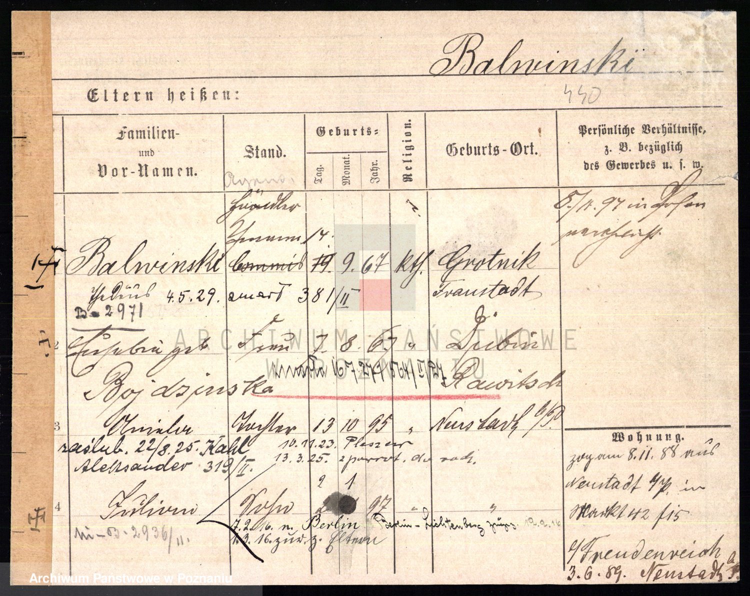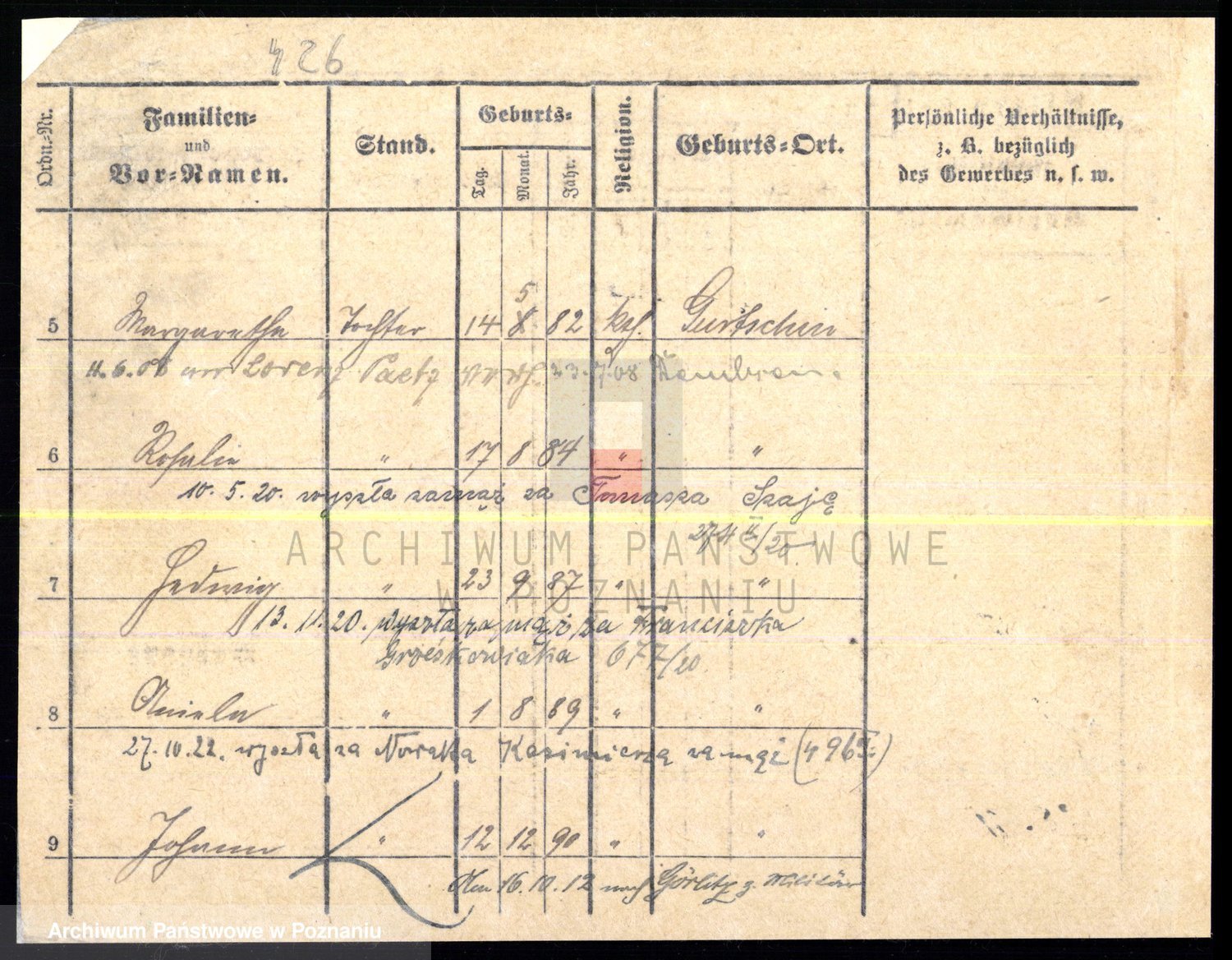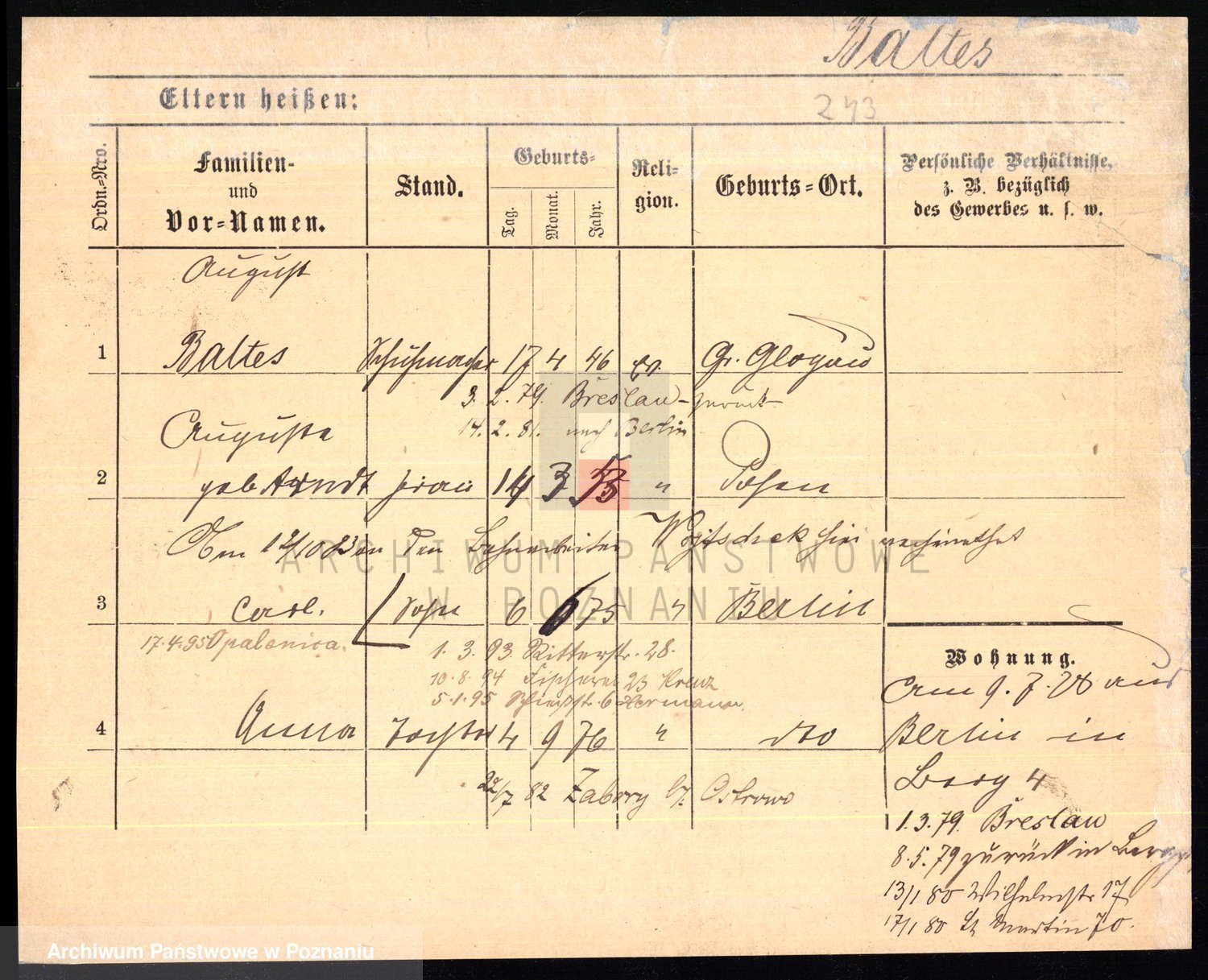 Podgląd karty osobowej dostępny jest po kliknięciu na nazwisko lub ikonkę karty. Można dokonywać powiększenia (ikony na górze) lub przechodzić między kolejnymi skanami (strzałki po bokach).
