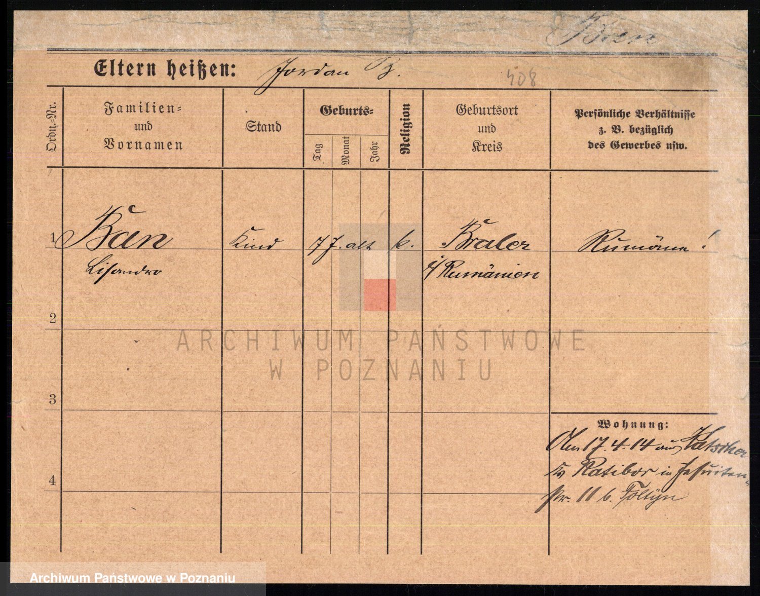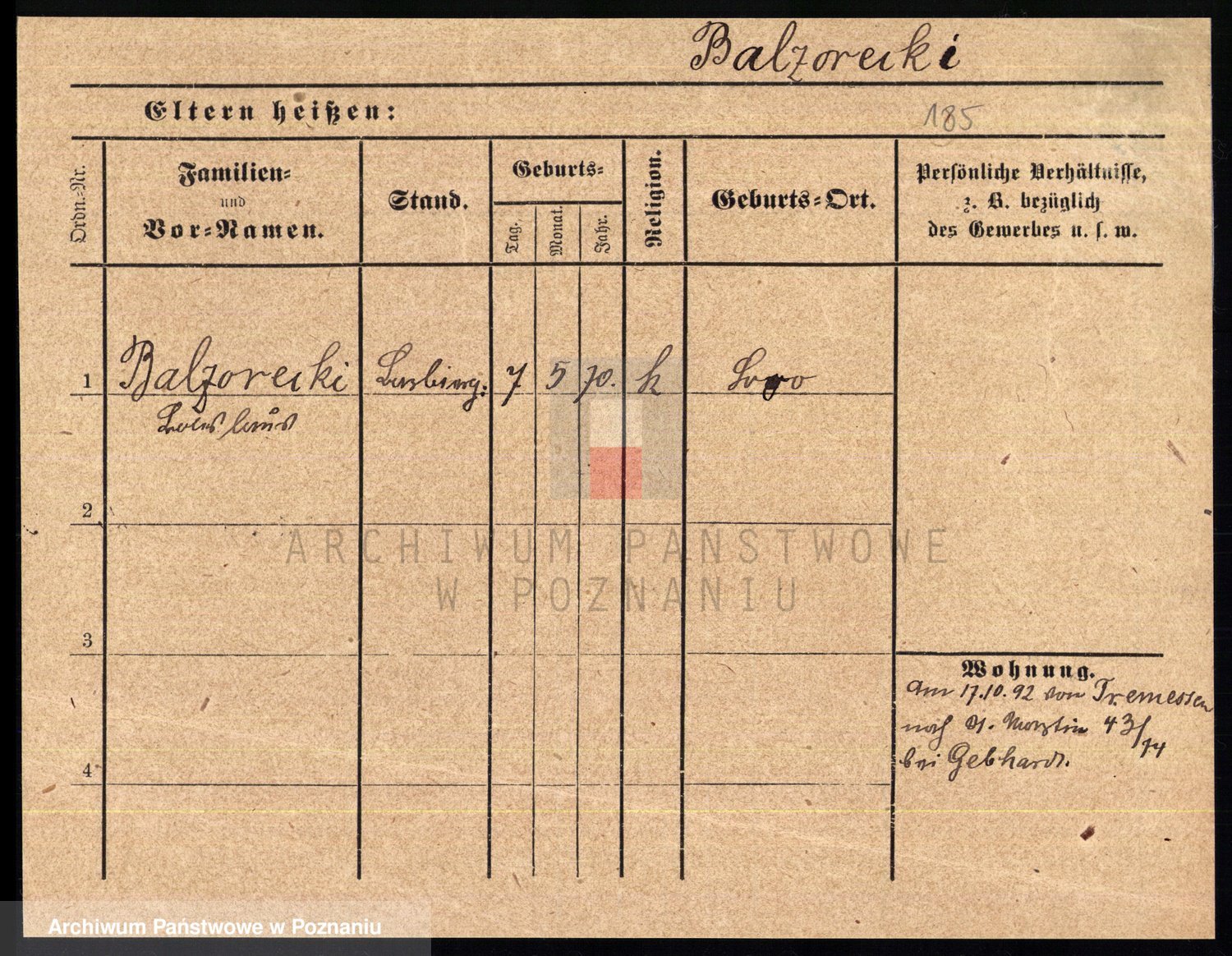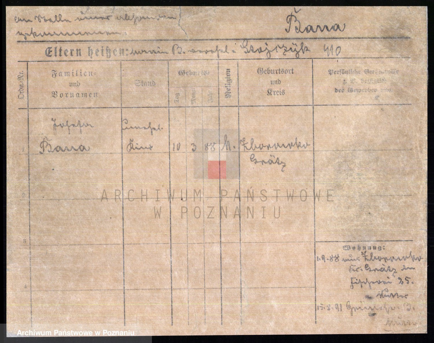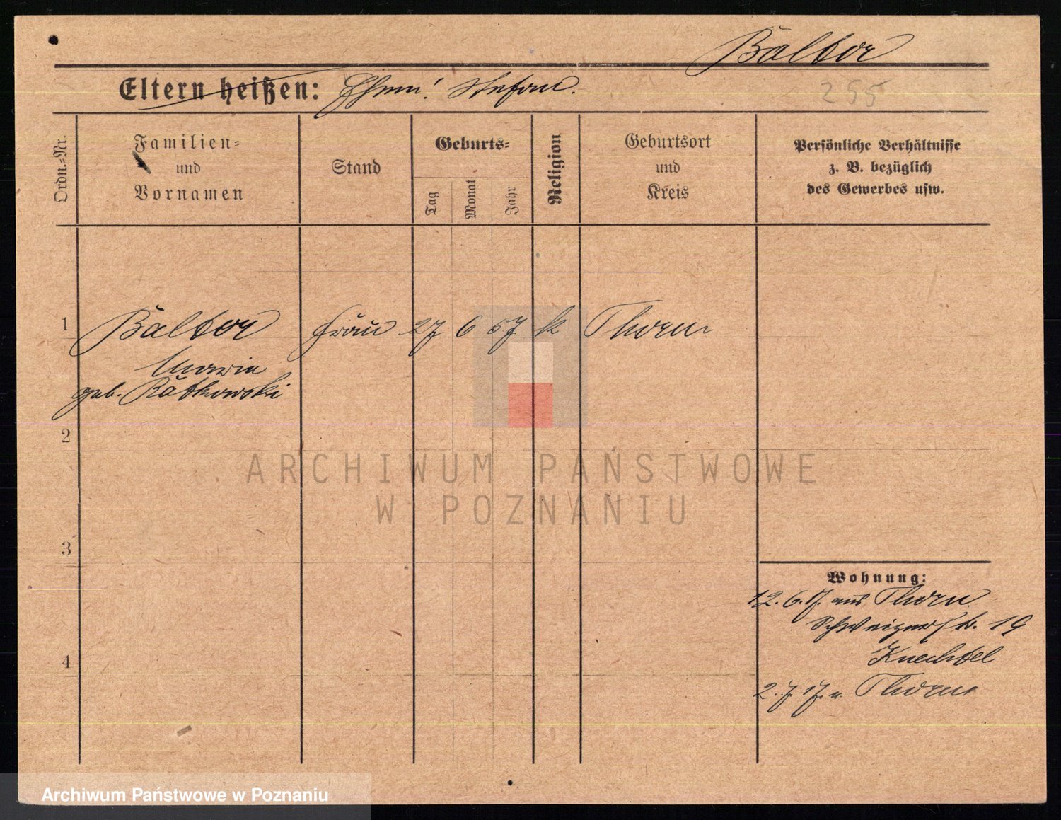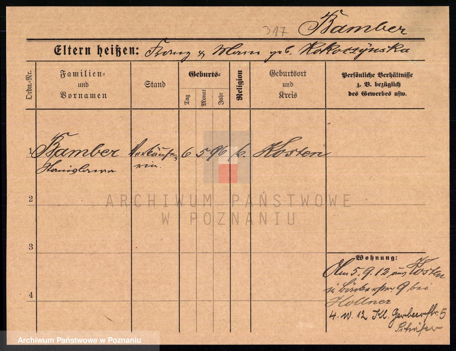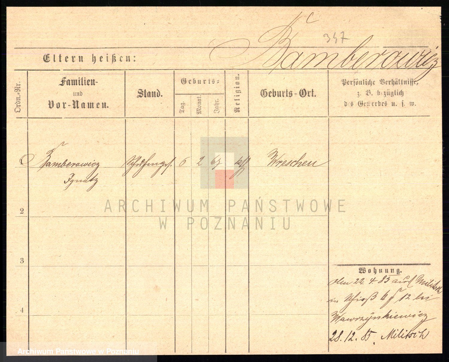 Podgląd karty osobowej dostępny jest po kliknięciu na nazwisko lub ikonkę karty. Można dokonywać powiększenia (ikony na górze) lub przechodzić między kolejnymi skanami (strzałki po bokach).