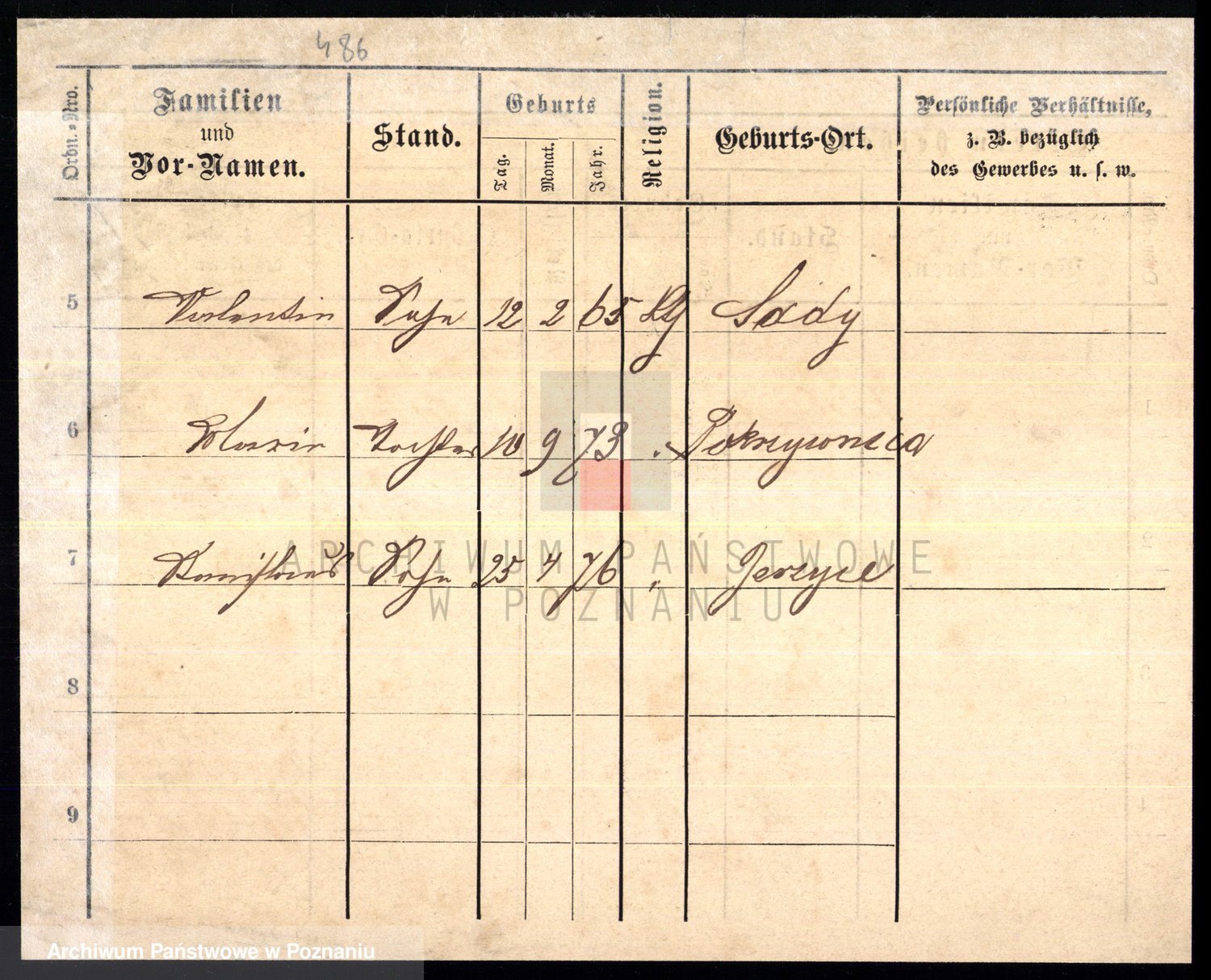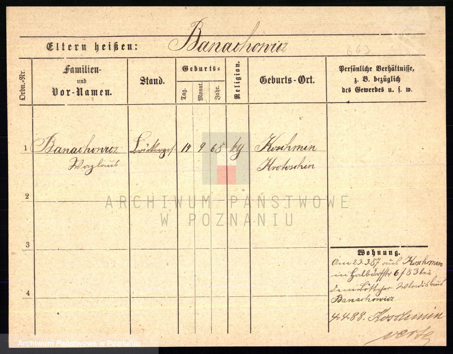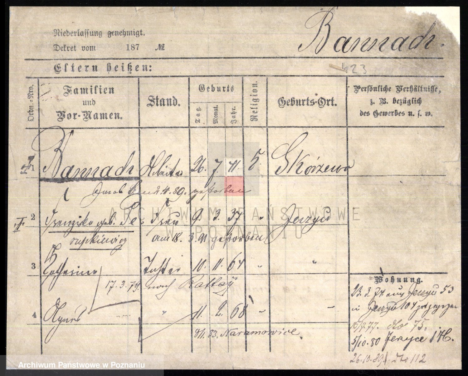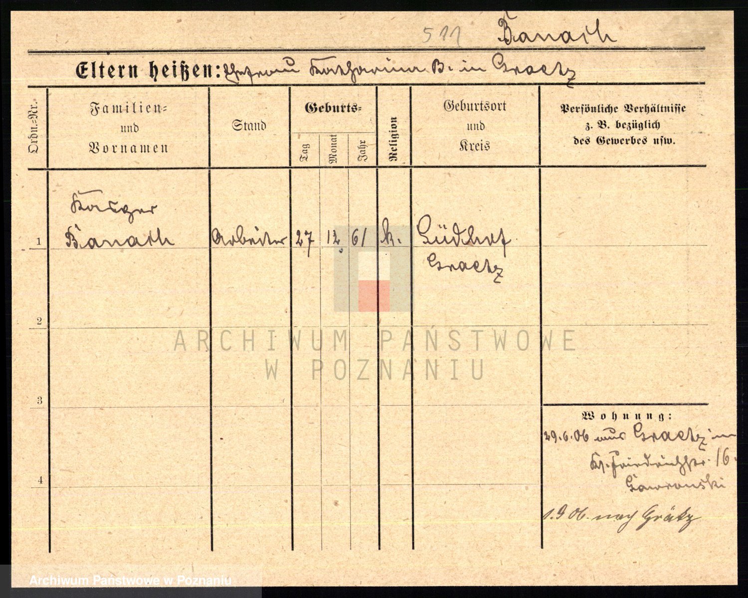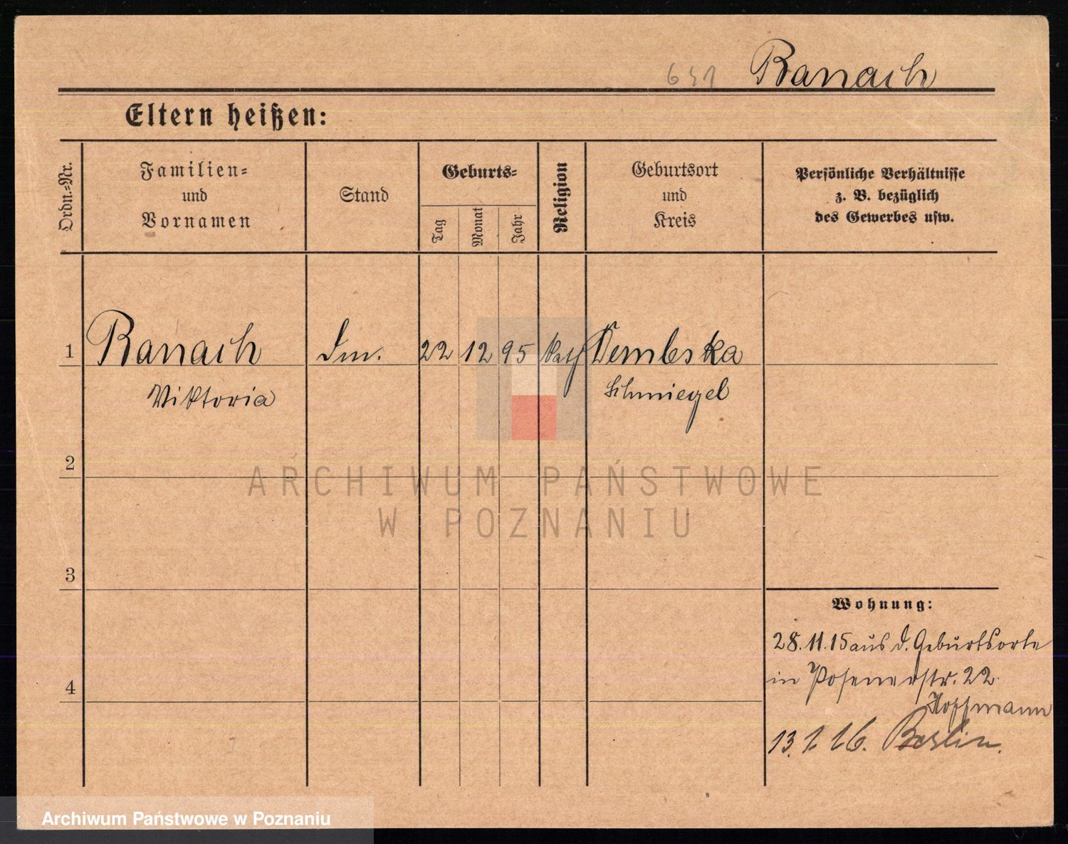 Podgląd karty osobowej dostępny jest po kliknięciu na nazwisko lub ikonkę karty. Można dokonywać powiększenia (ikony na górze) lub przechodzić między kolejnymi skanami (strzałki po bokach).
