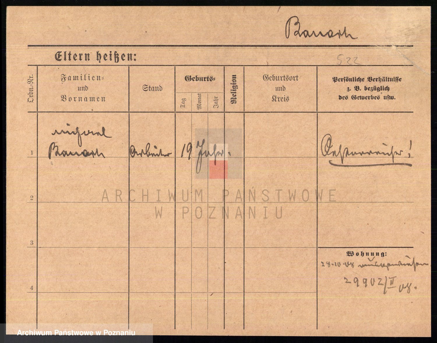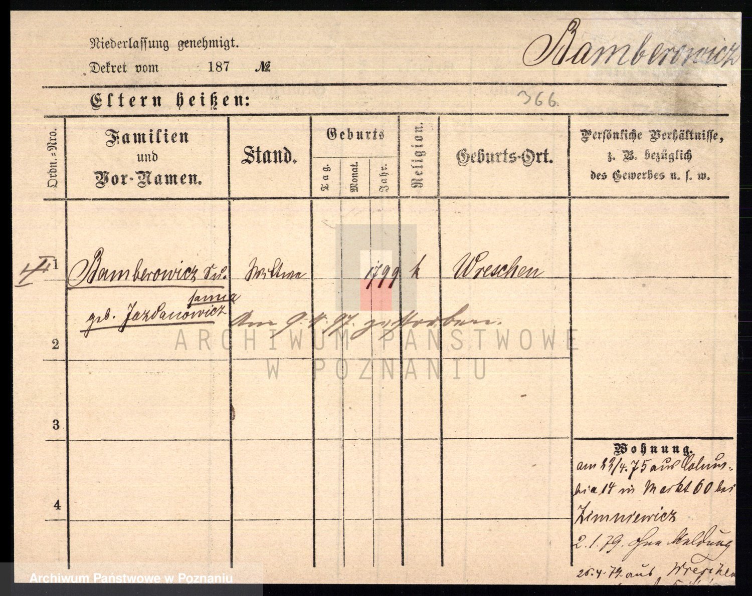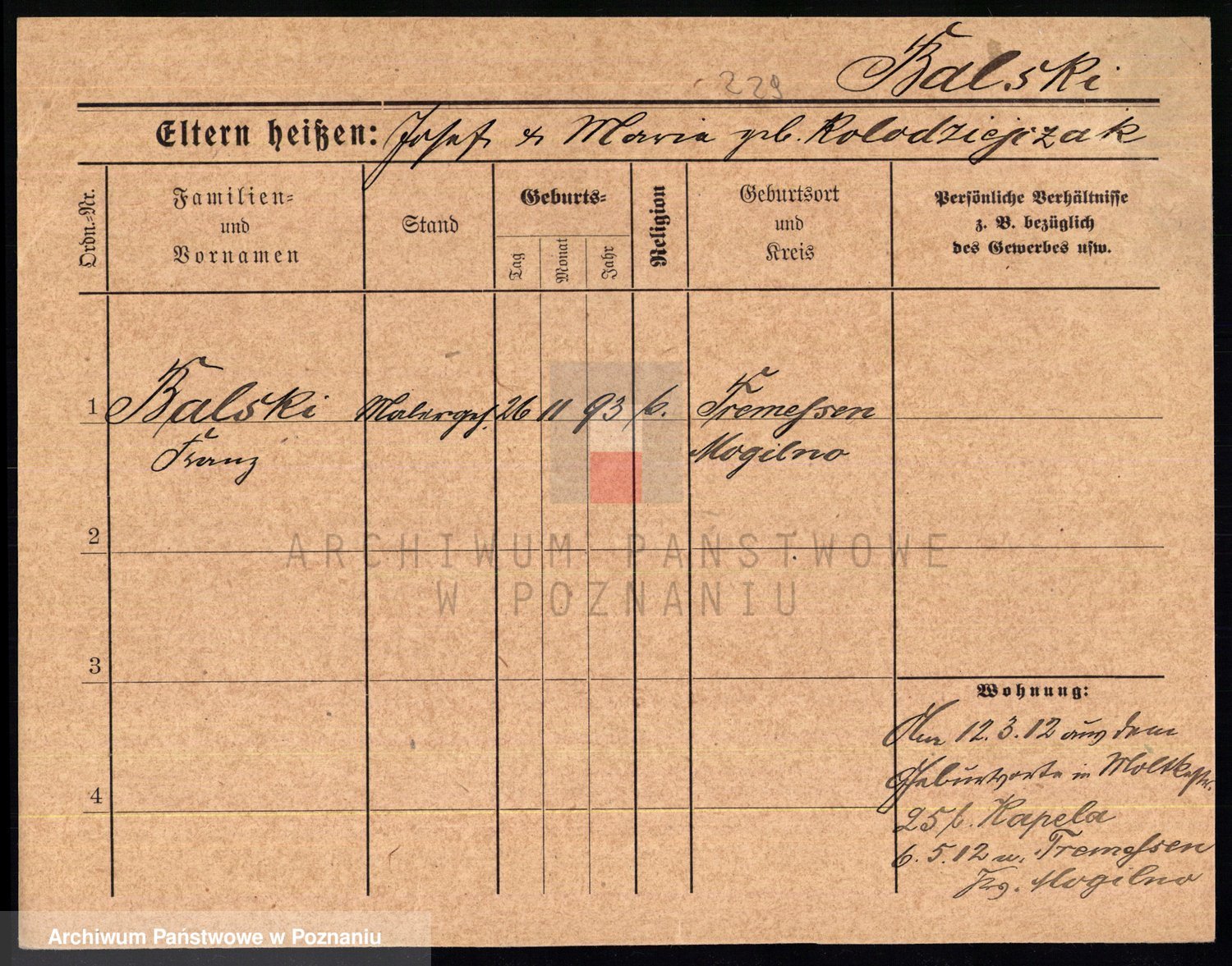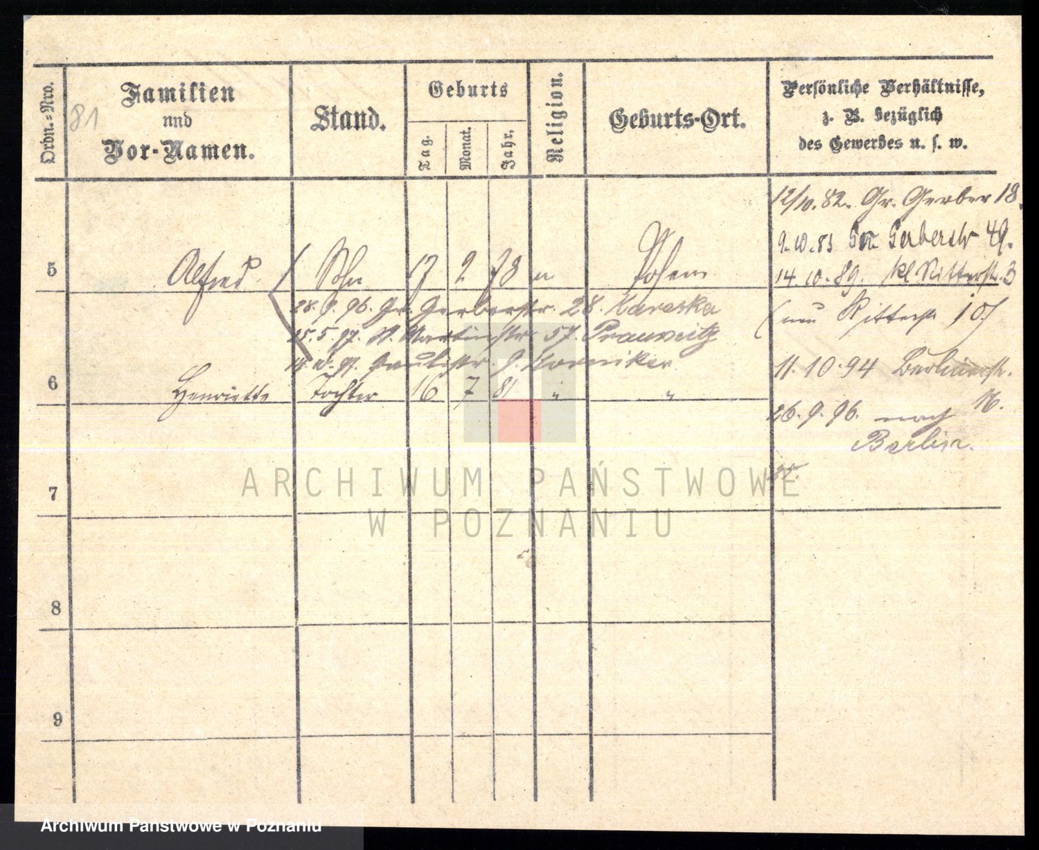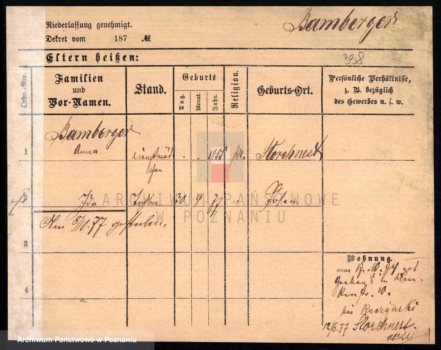 Podgląd karty osobowej dostępny jest po kliknięciu na nazwisko lub ikonkę karty. Można dokonywać powiększenia (ikony na górze) lub przechodzić między kolejnymi skanami (strzałki po bokach).