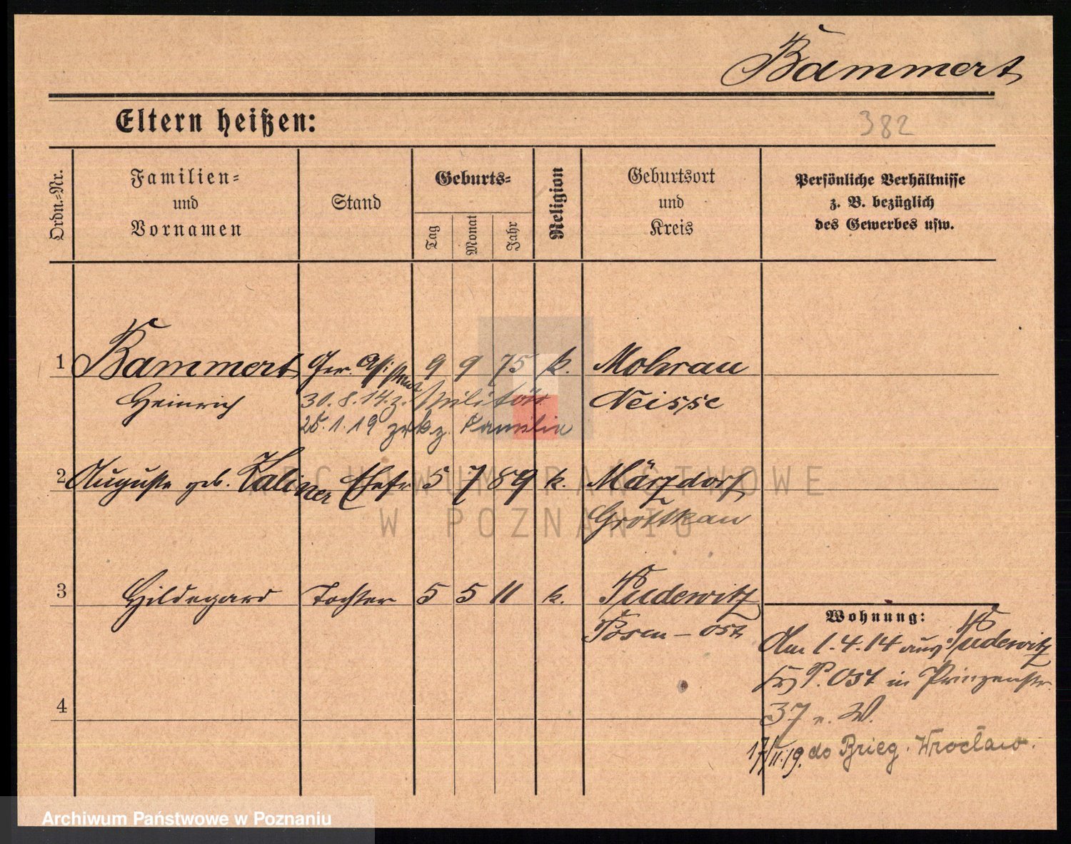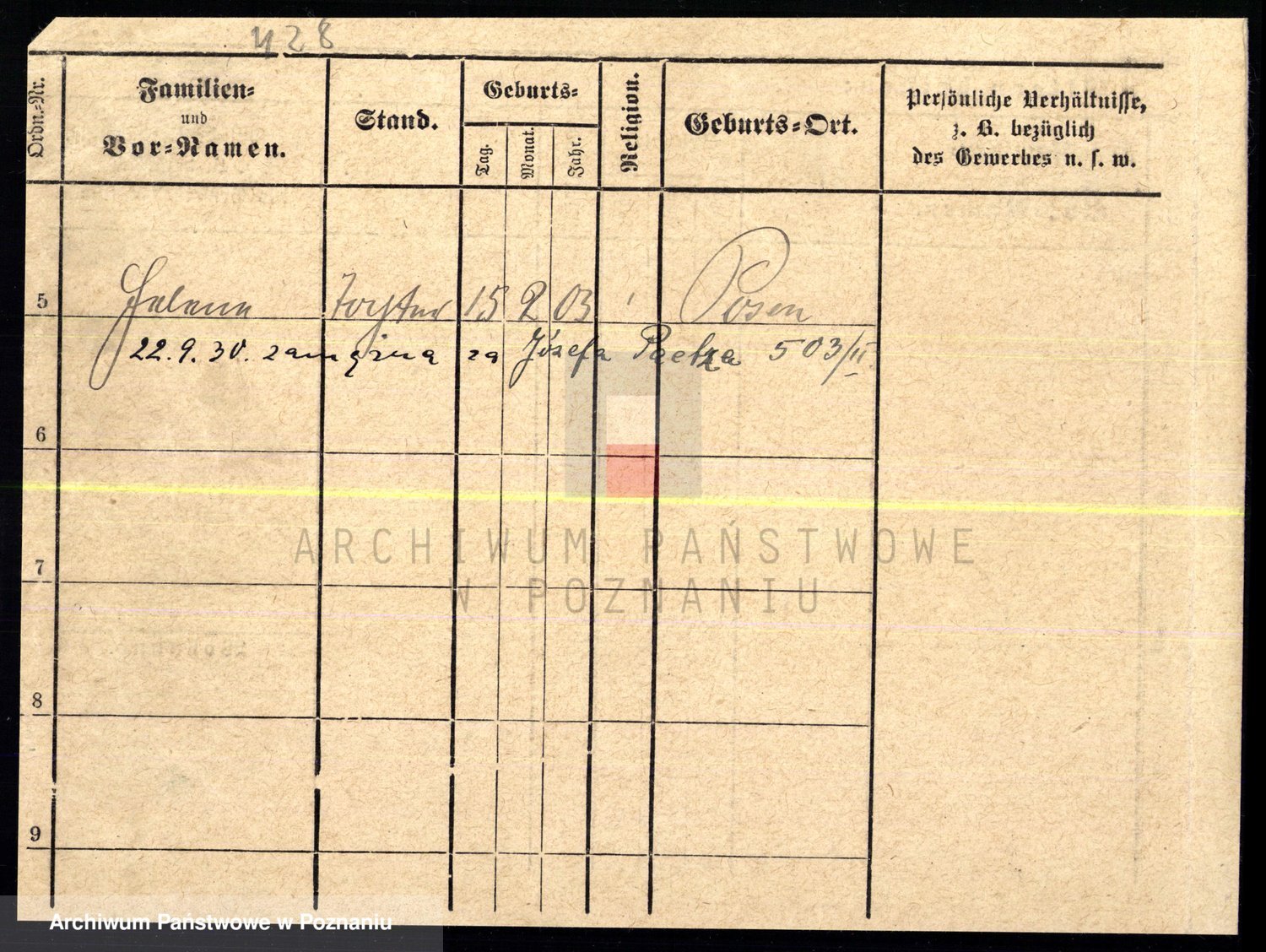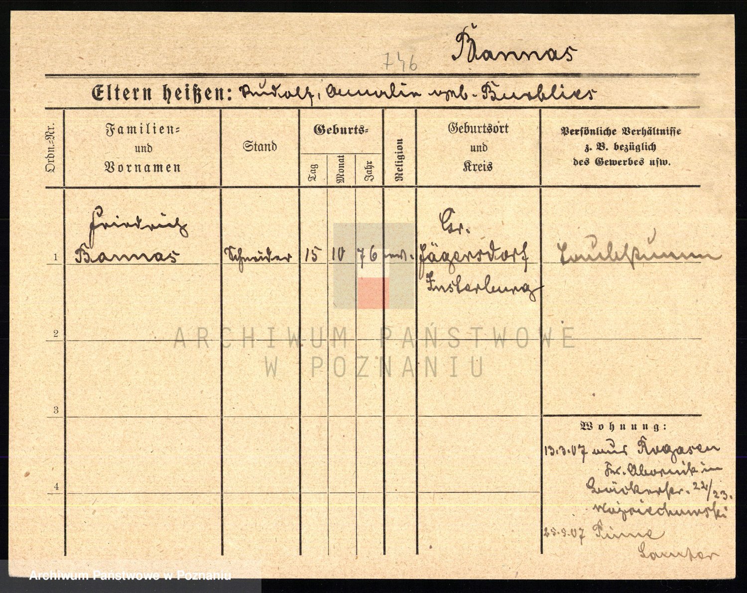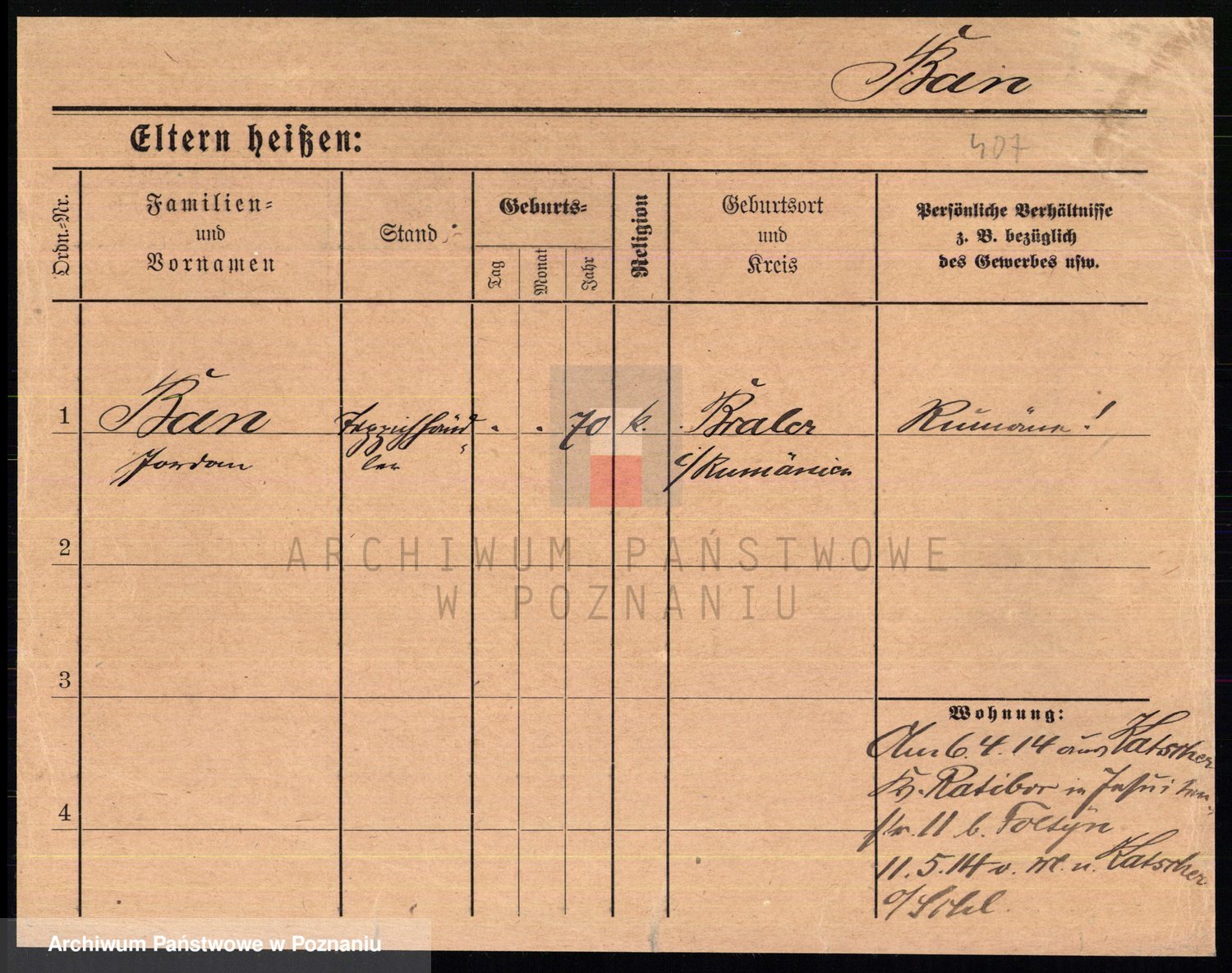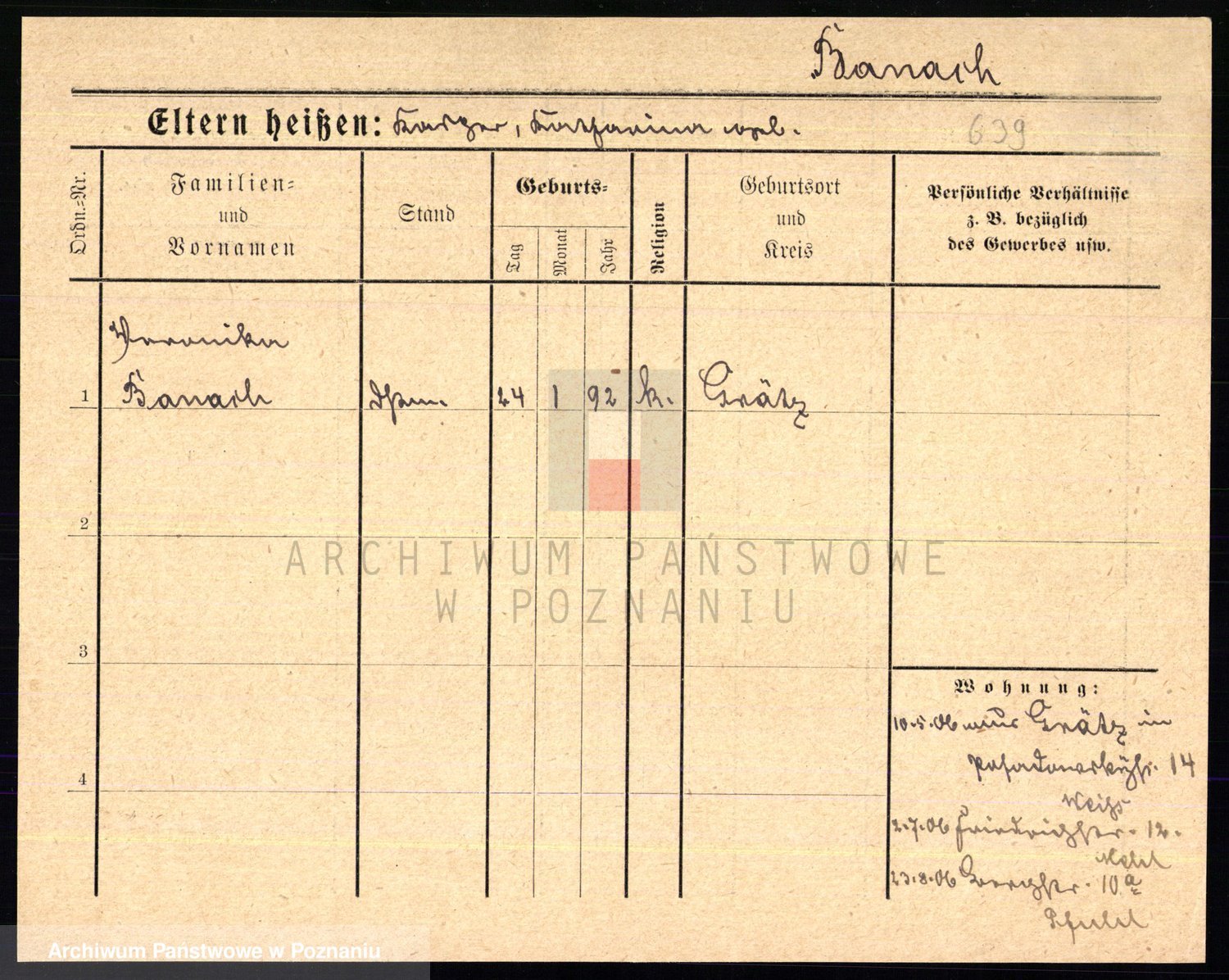 Podgląd karty osobowej dostępny jest po kliknięciu na nazwisko lub ikonkę karty. Można dokonywać powiększenia (ikony na górze) lub przechodzić między kolejnymi skanami (strzałki po bokach).