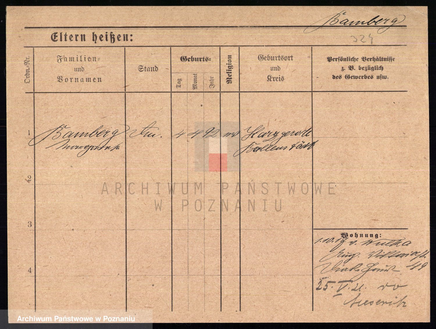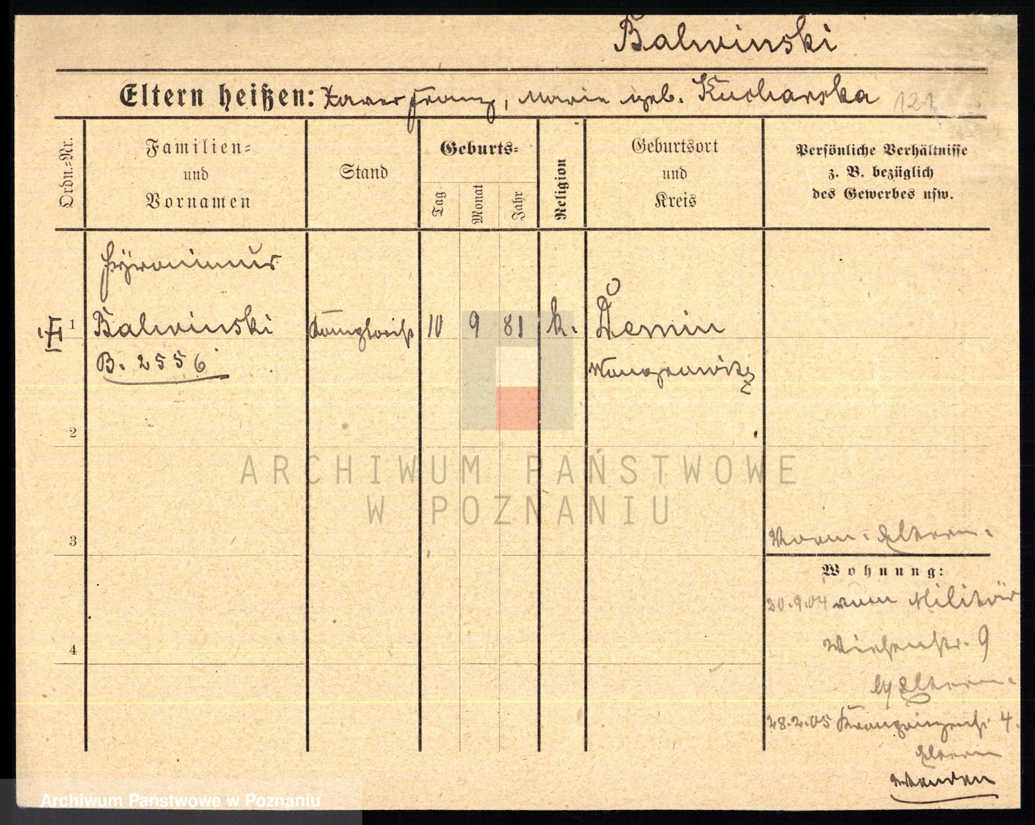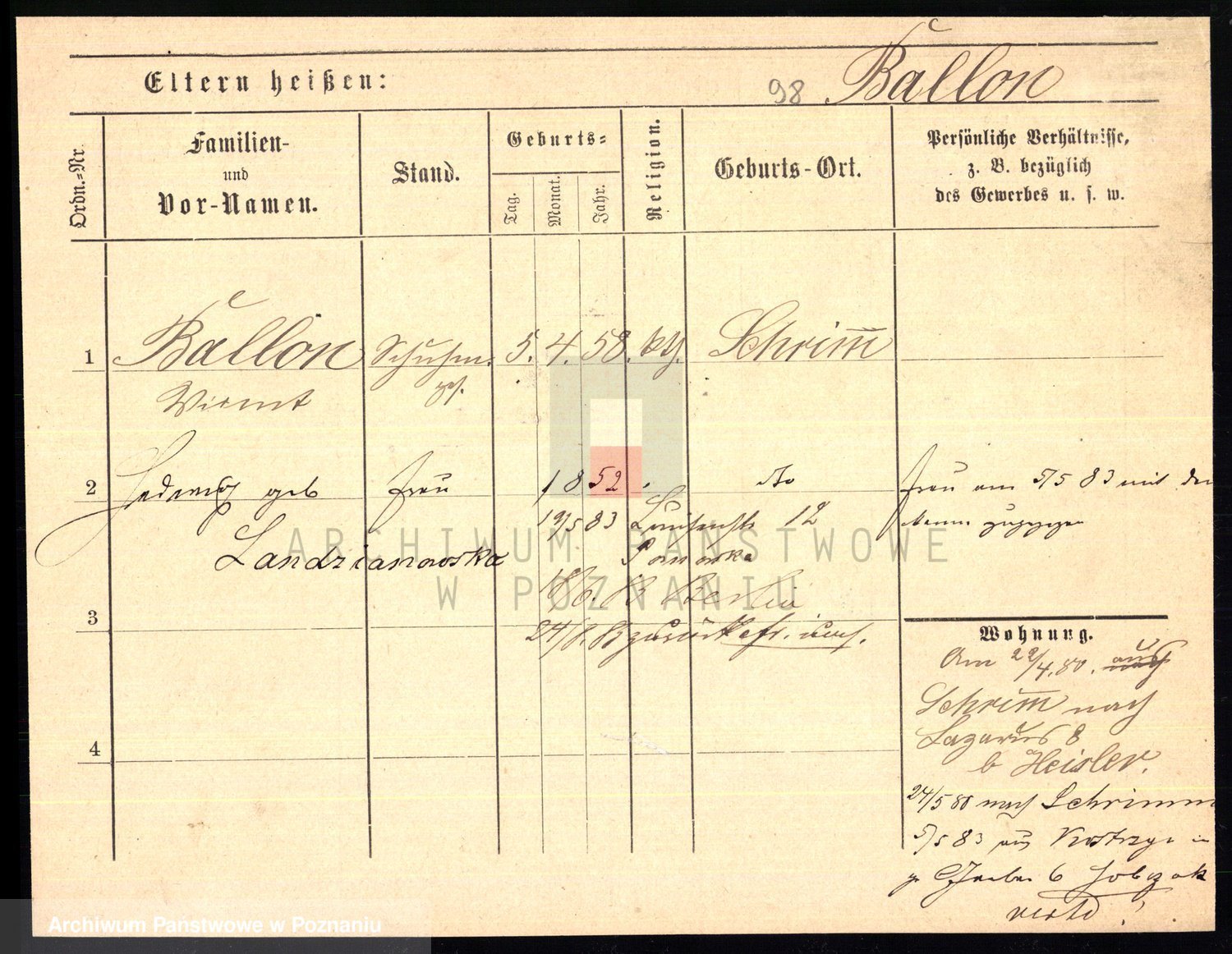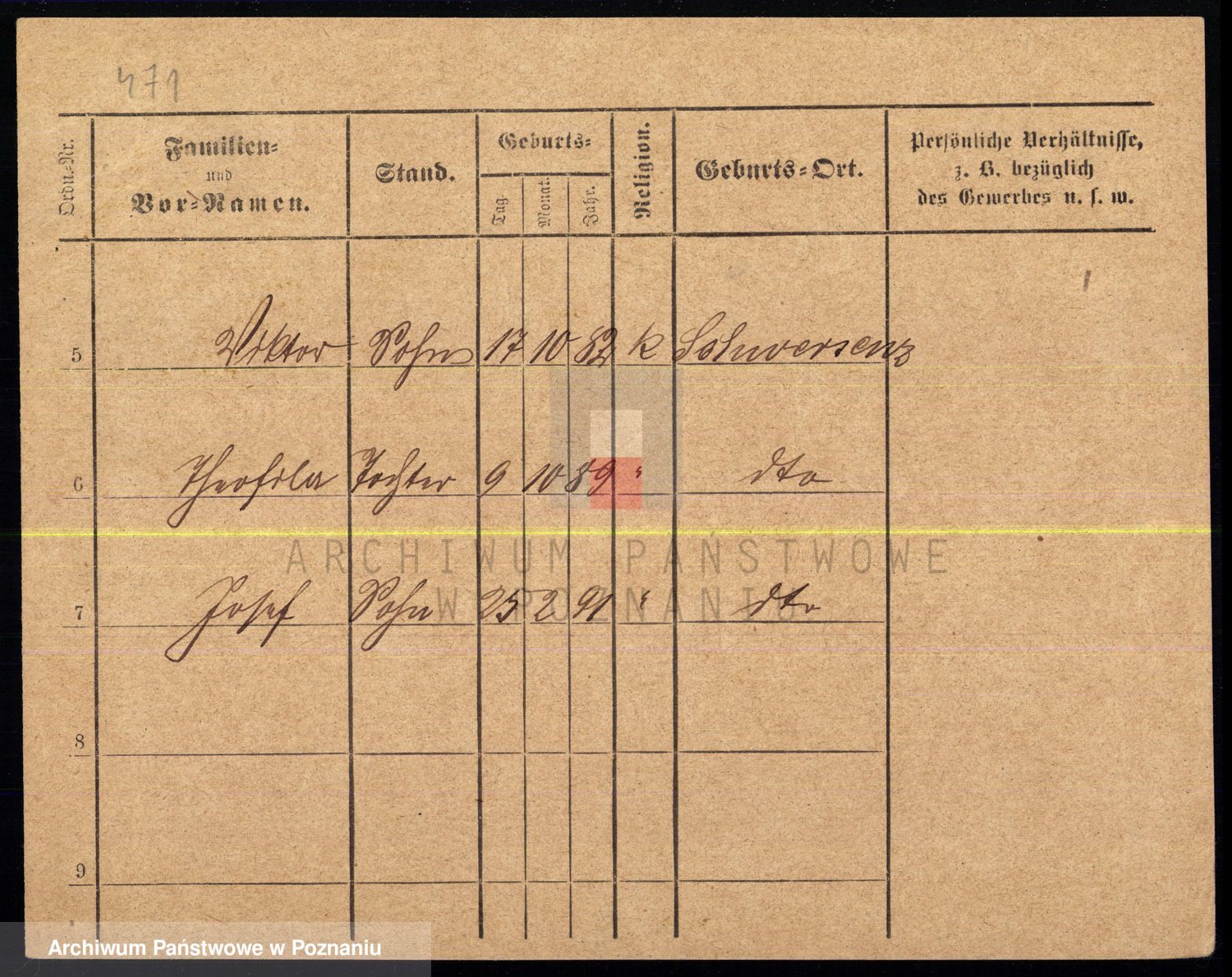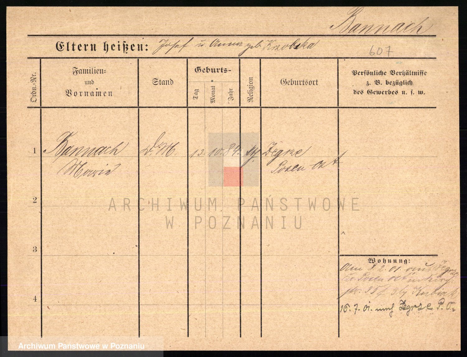 Podgląd karty osobowej dostępny jest po kliknięciu na nazwisko lub ikonkę karty. Można dokonywać powiększenia (ikony na górze) lub przechodzić między kolejnymi skanami (strzałki po bokach).