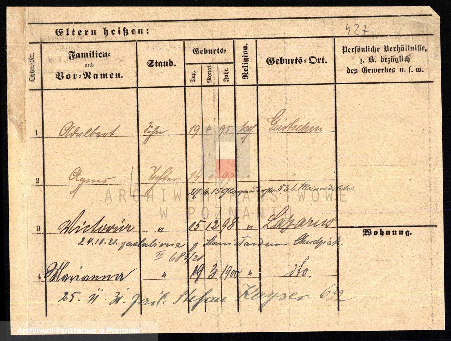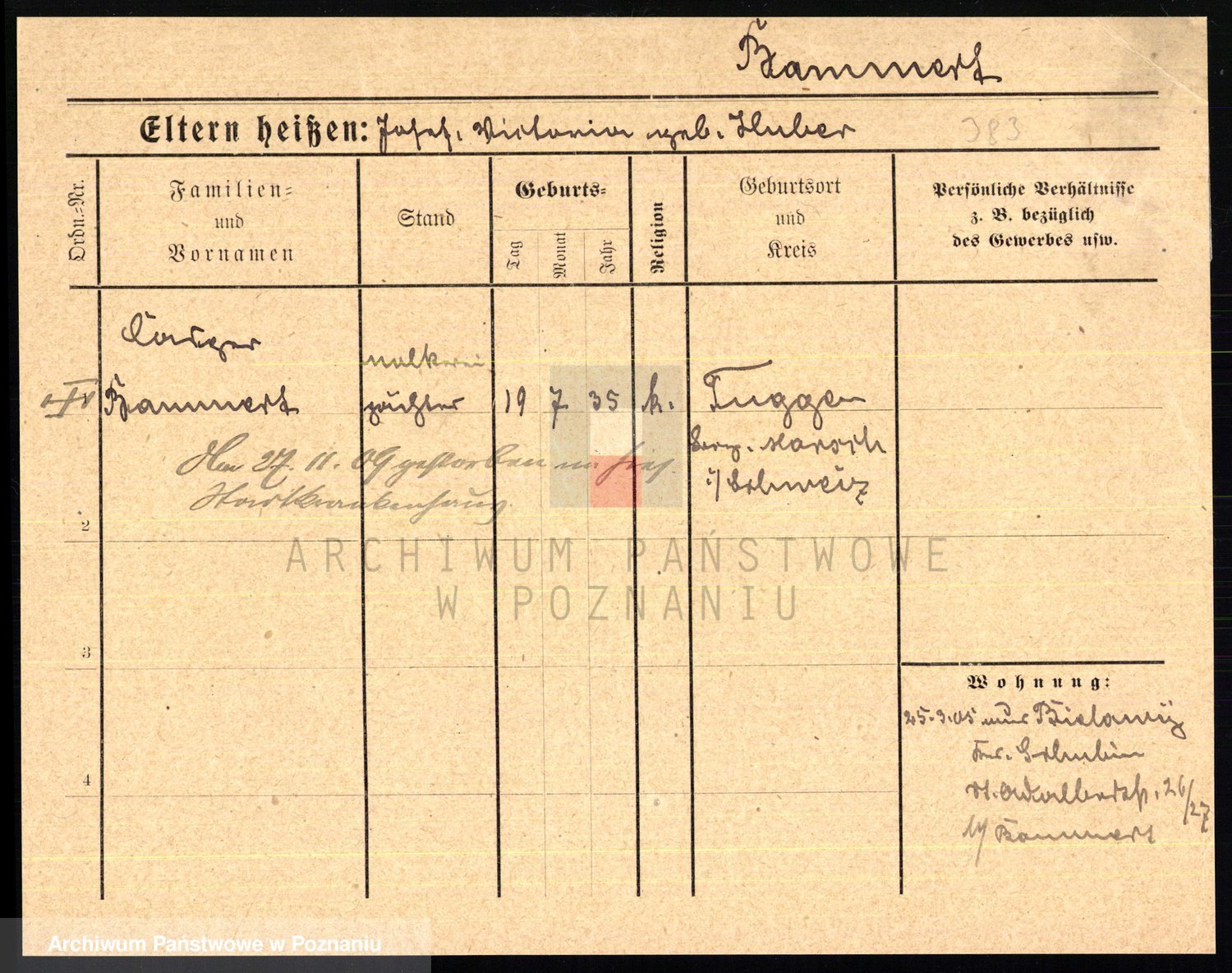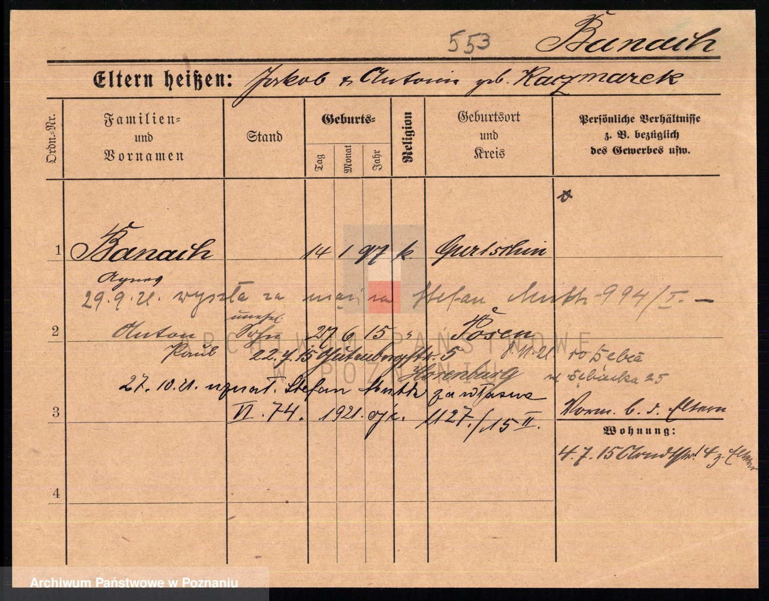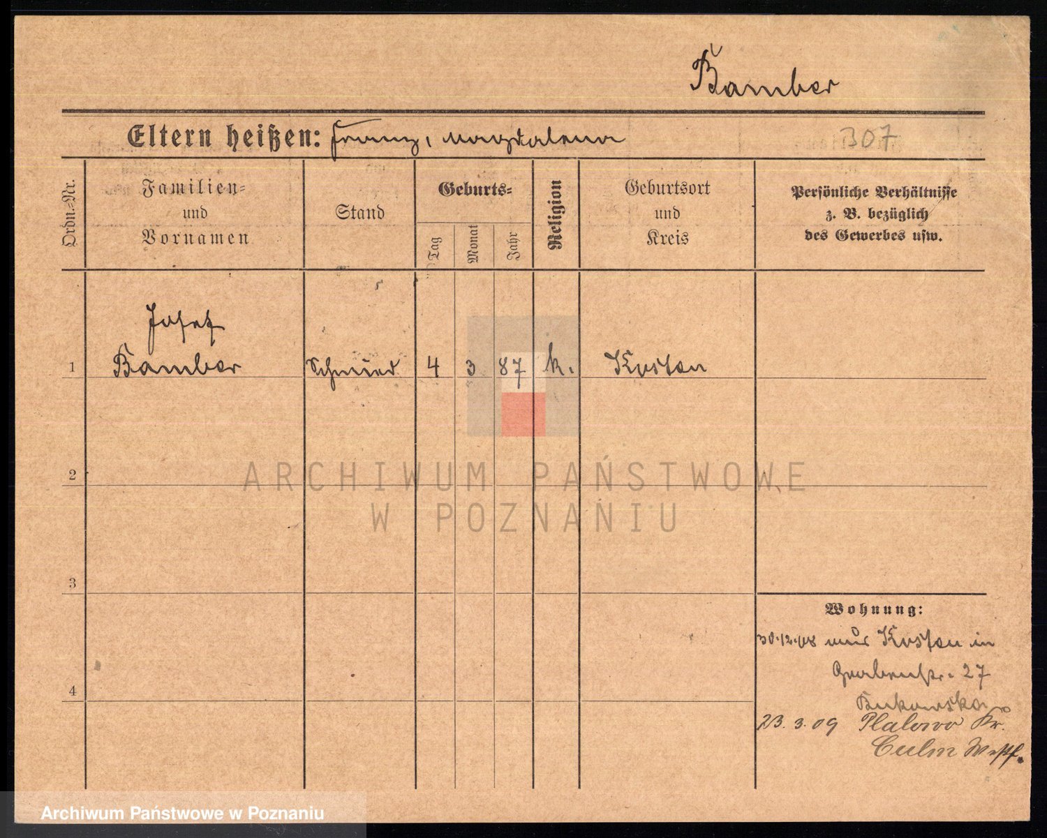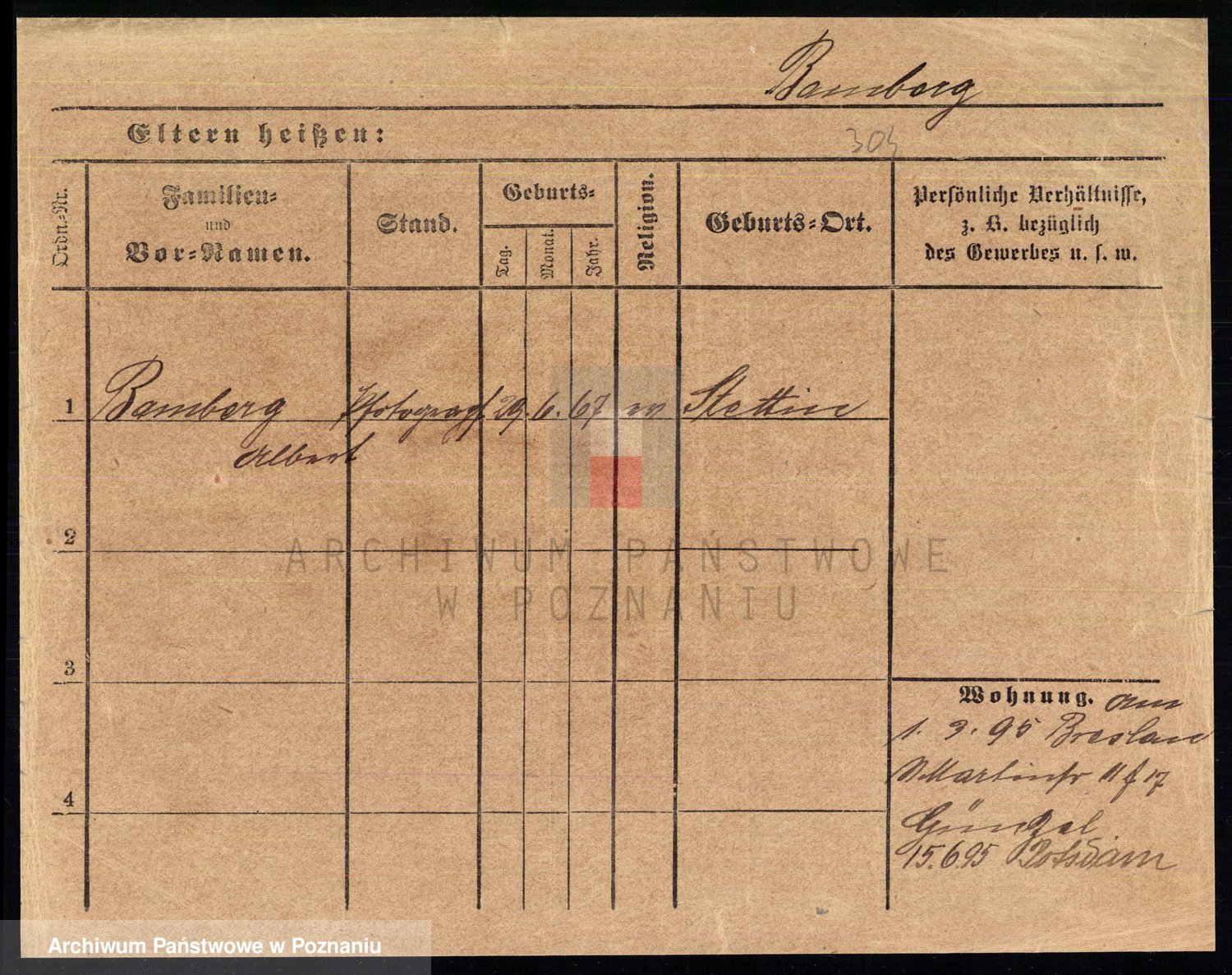 Podgląd karty osobowej dostępny jest po kliknięciu na nazwisko lub ikonkę karty. Można dokonywać powiększenia (ikony na górze) lub przechodzić między kolejnymi skanami (strzałki po bokach).