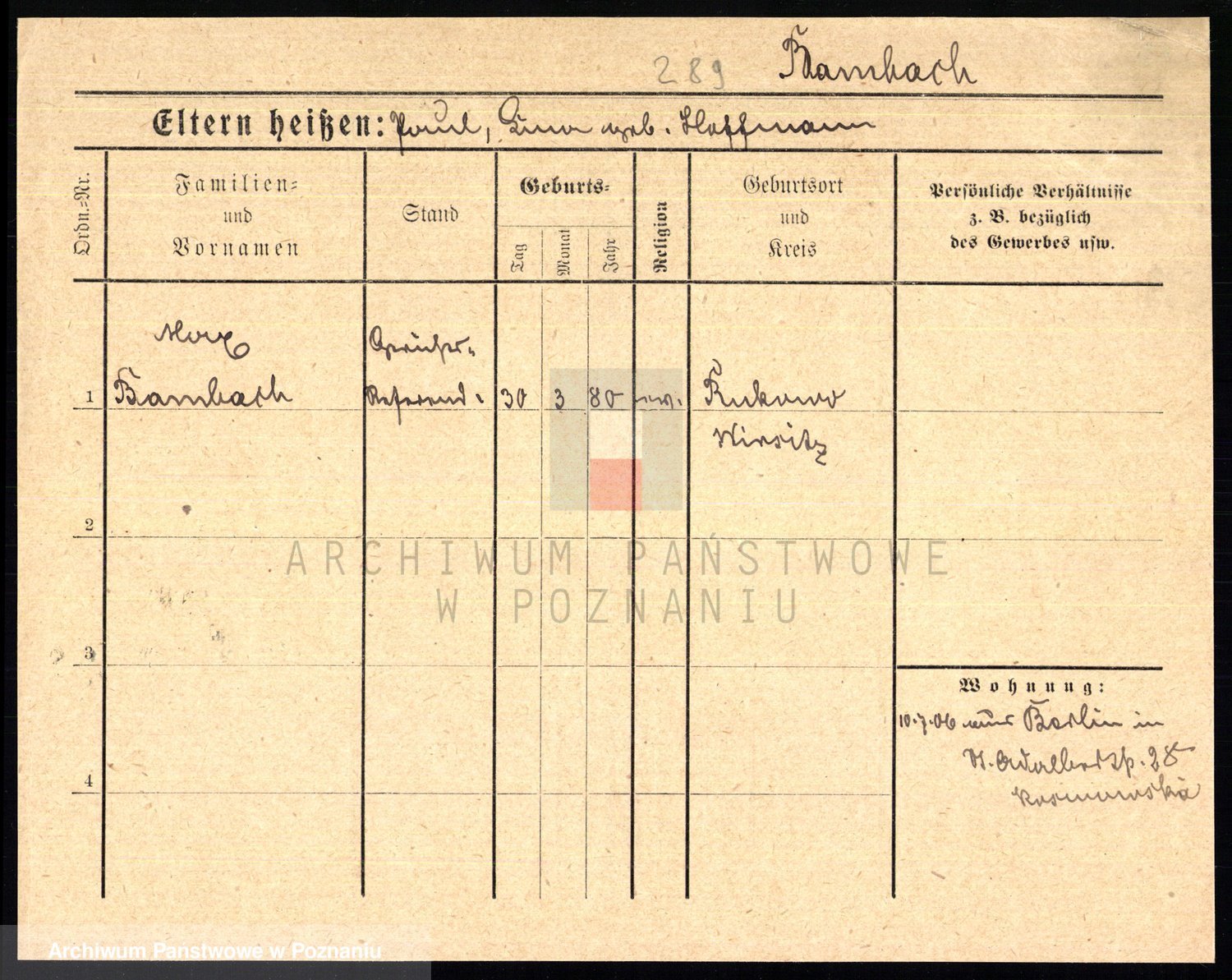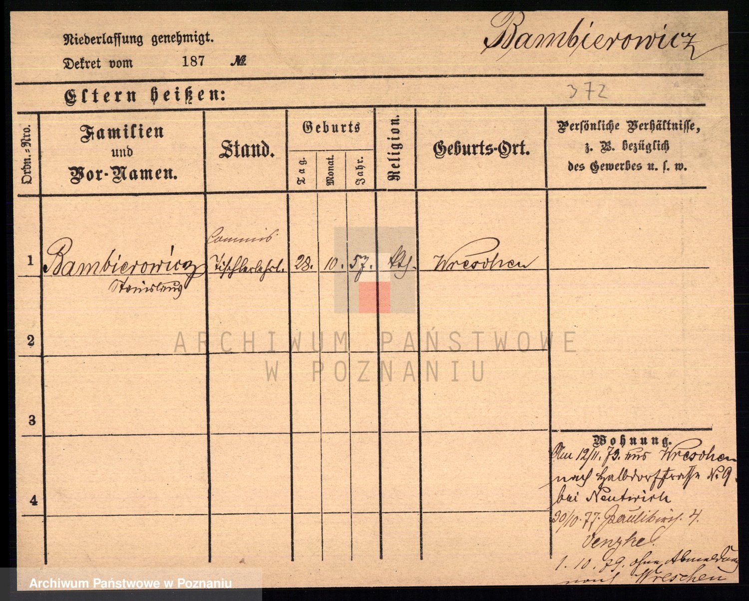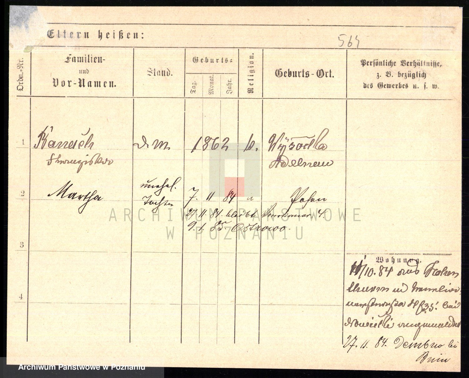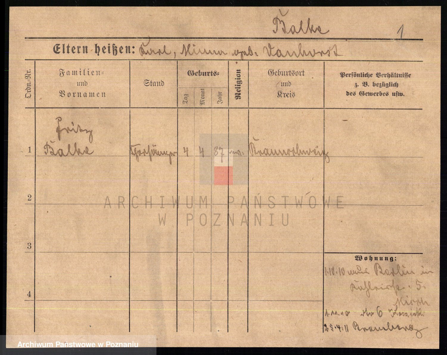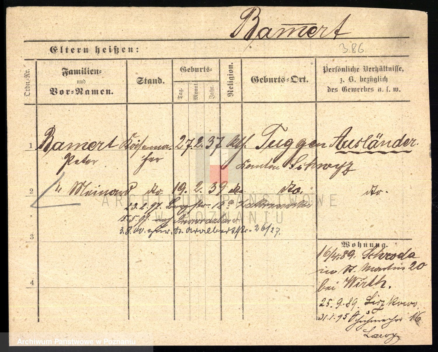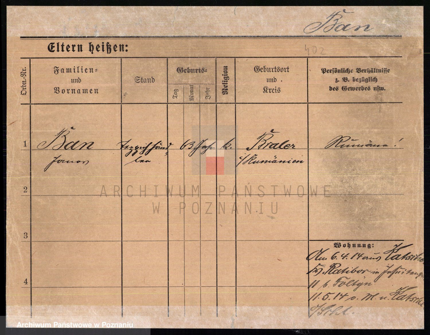 Podgląd karty osobowej dostępny jest po kliknięciu na nazwisko lub ikonkę karty. Można dokonywać powiększenia (ikony na górze) lub przechodzić między kolejnymi skanami (strzałki po bokach).