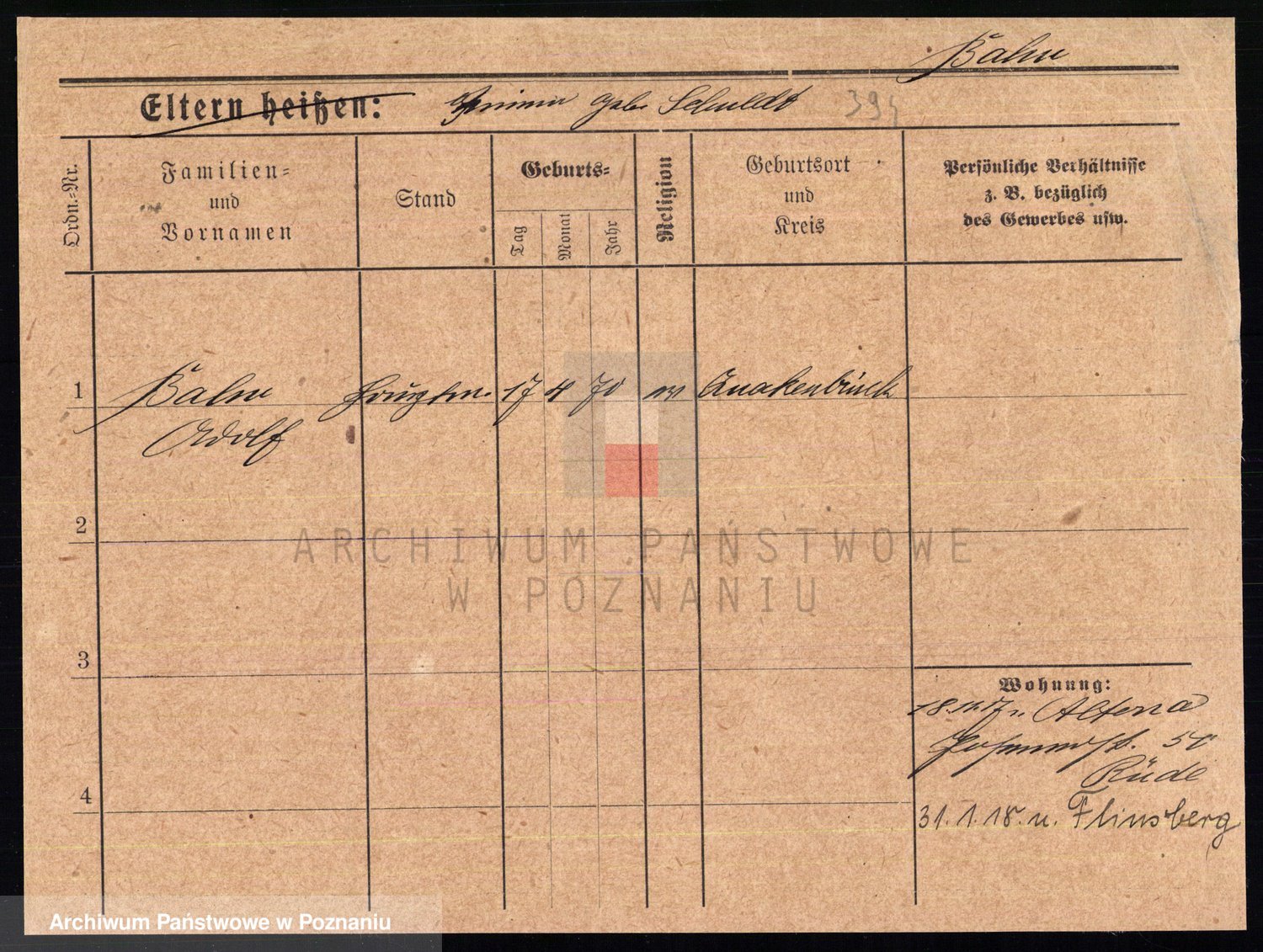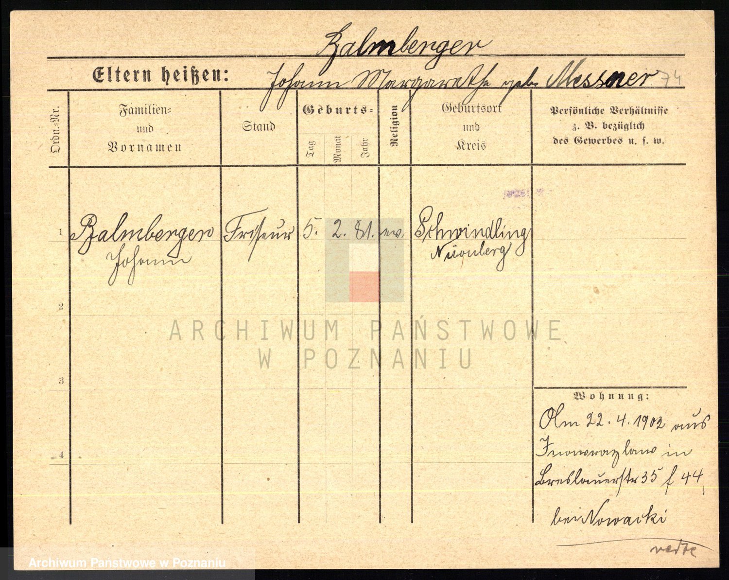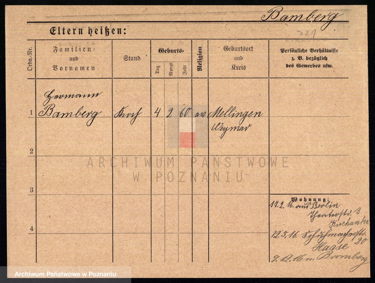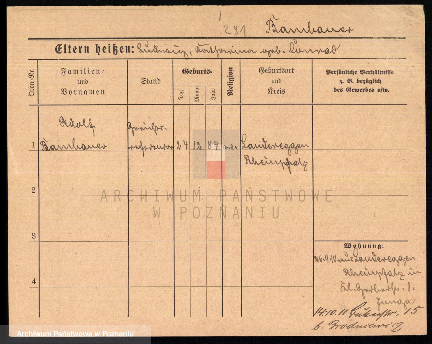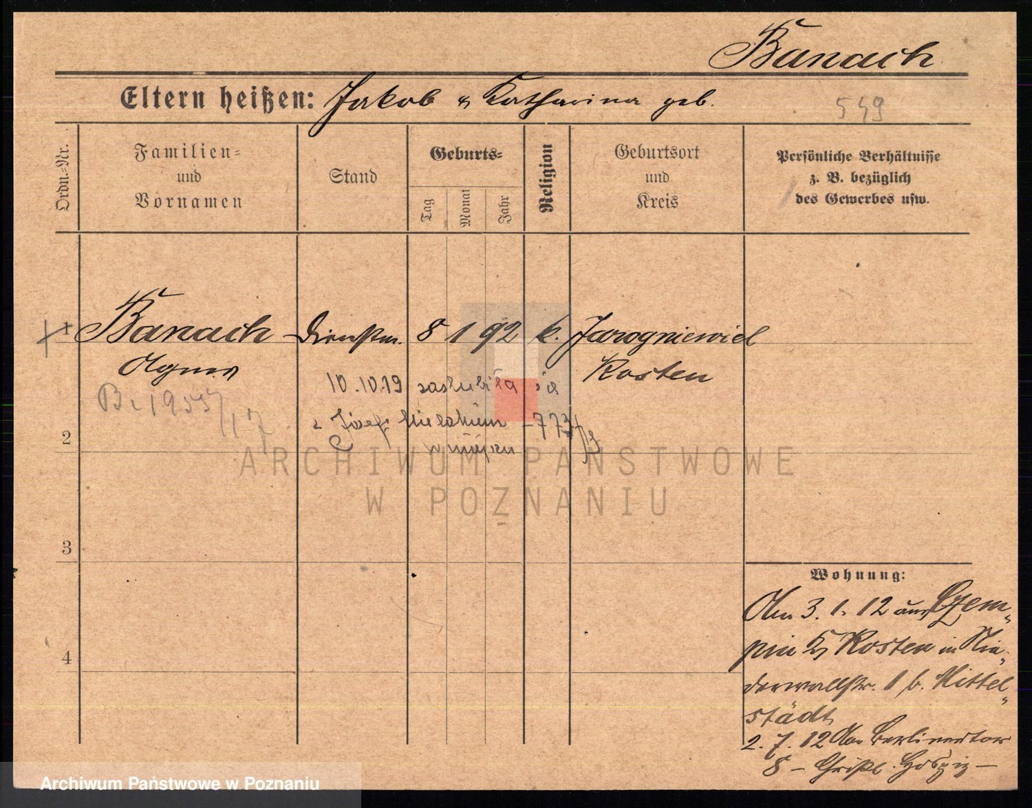 Podgląd karty osobowej dostępny jest po kliknięciu na nazwisko lub ikonkę karty. Można dokonywać powiększenia (ikony na górze) lub przechodzić między kolejnymi skanami (strzałki po bokach).