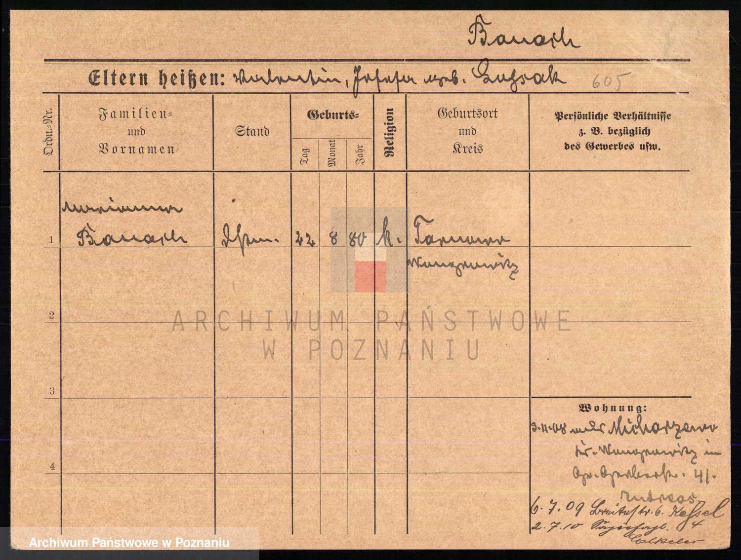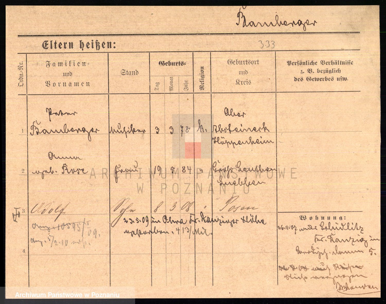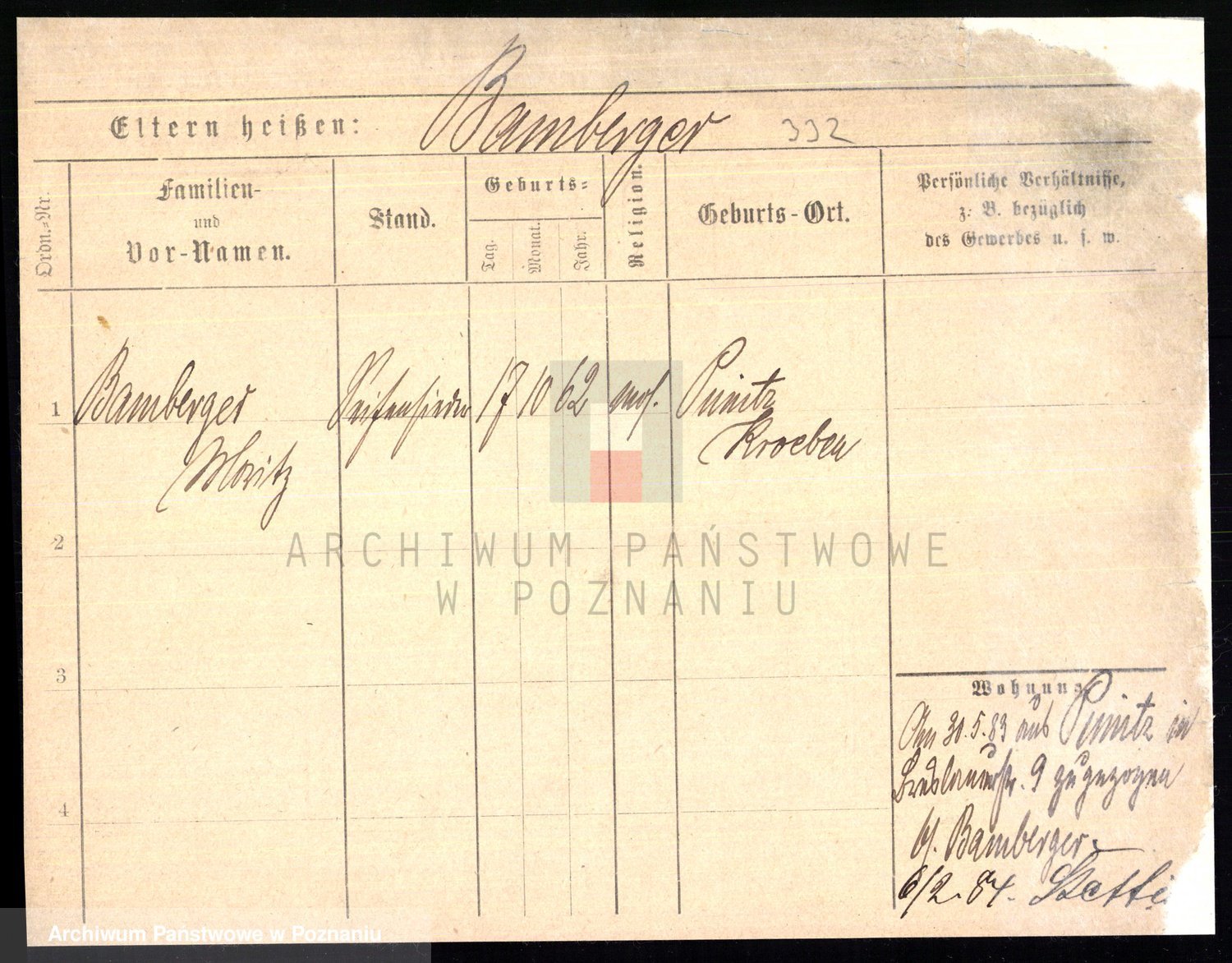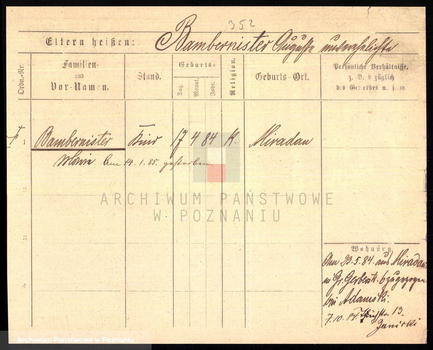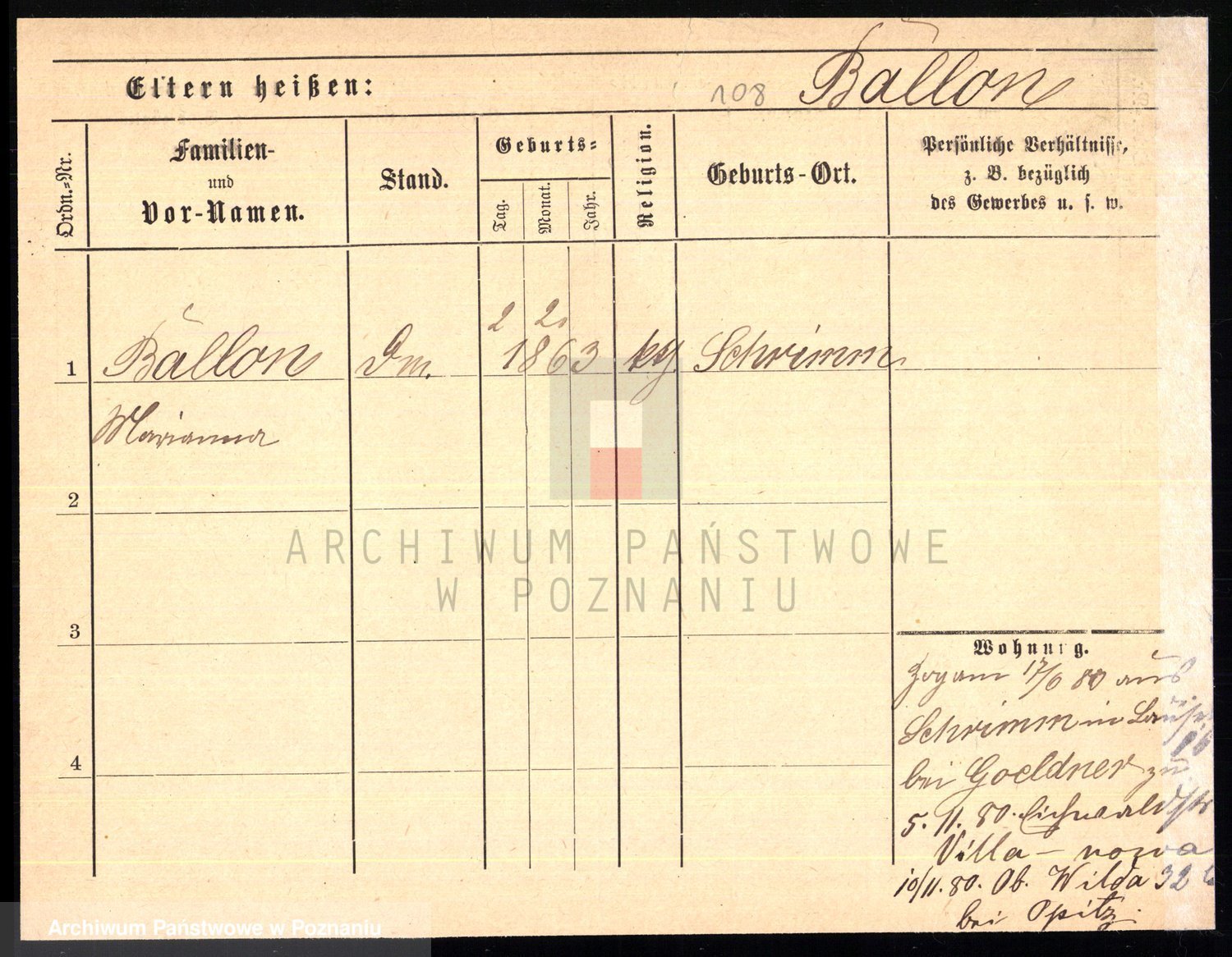 Podgląd karty osobowej dostępny jest po kliknięciu na nazwisko lub ikonkę karty. Można dokonywać powiększenia (ikony na górze) lub przechodzić między kolejnymi skanami (strzałki po bokach).