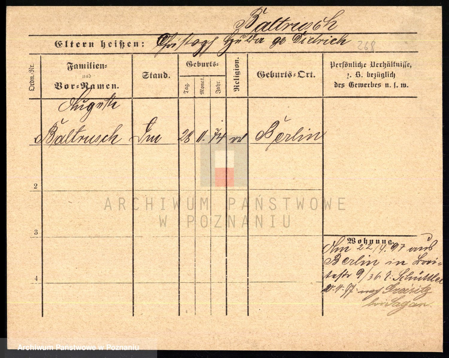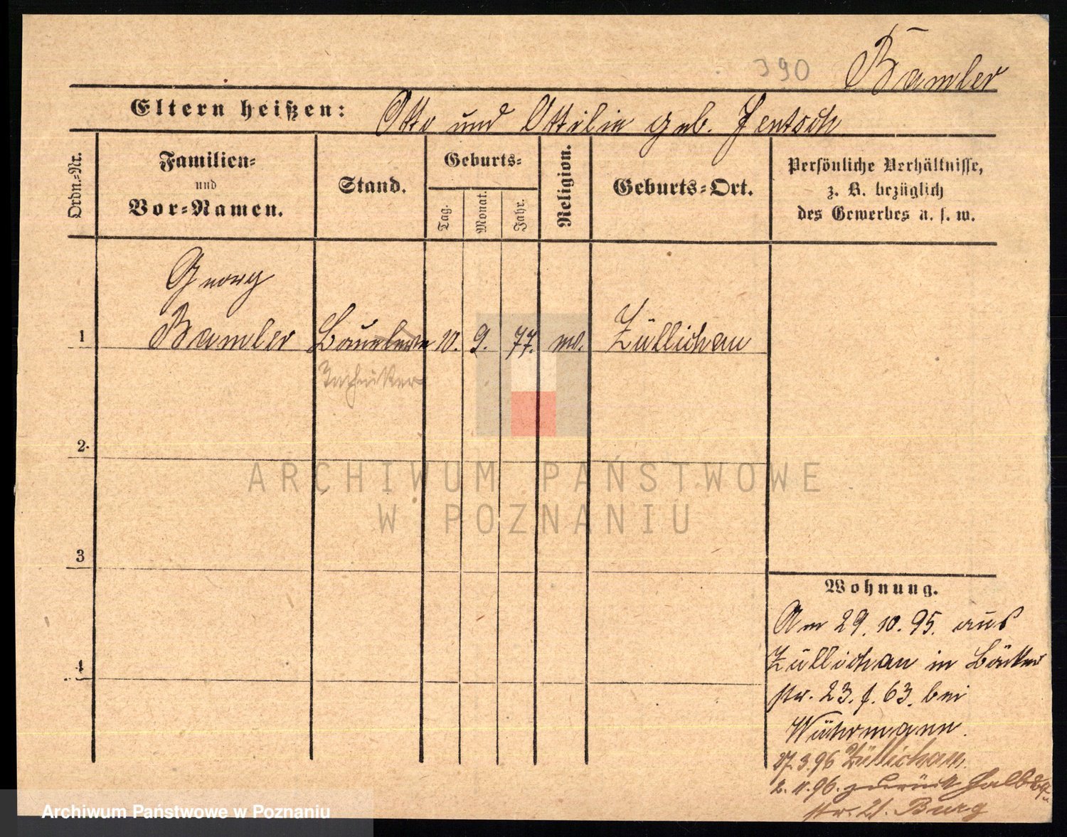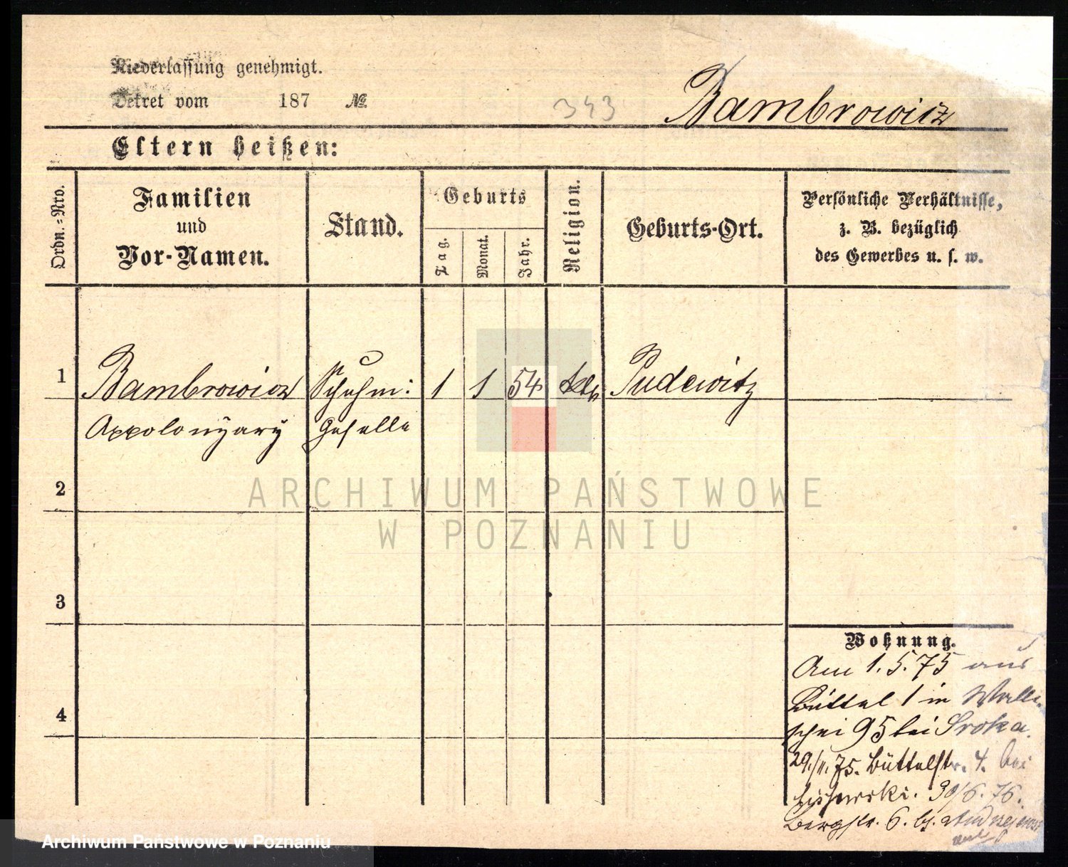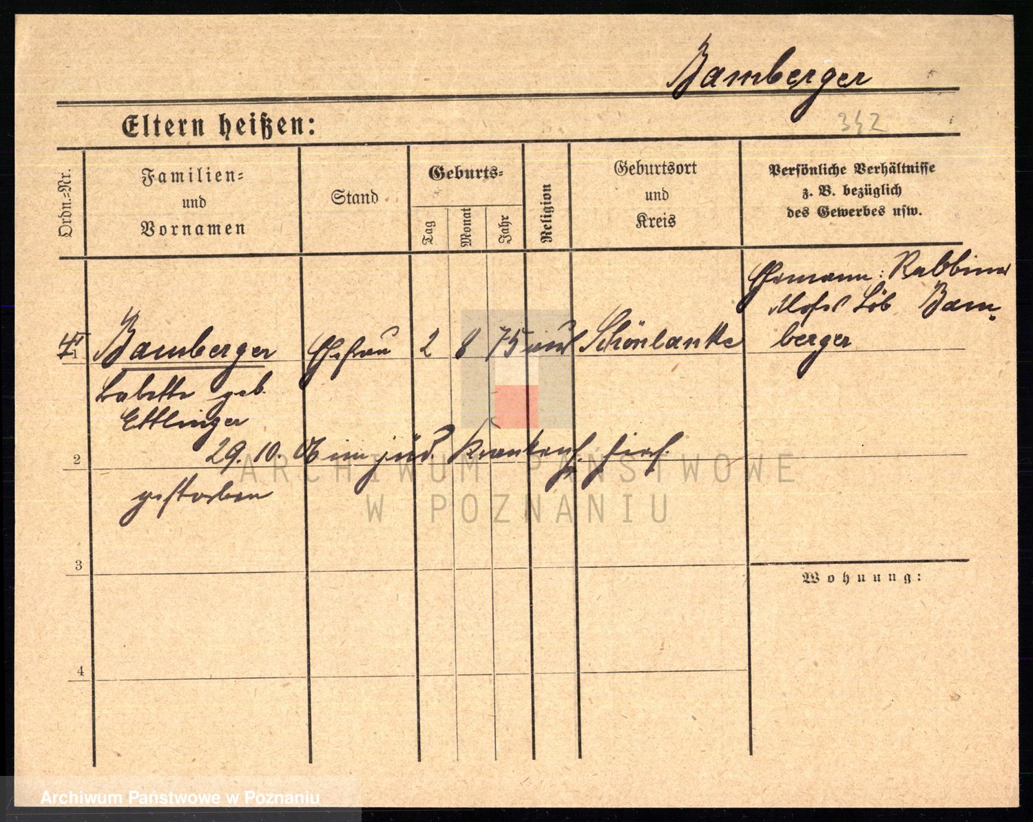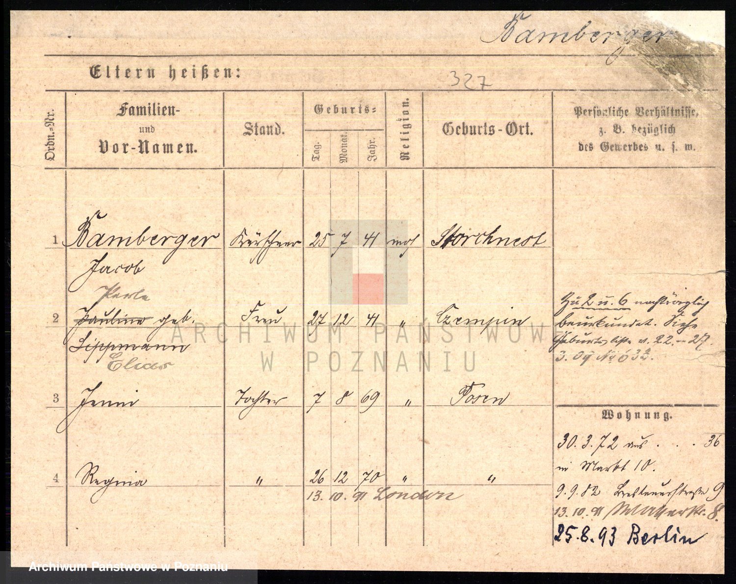 Podgląd karty osobowej dostępny jest po kliknięciu na nazwisko lub ikonkę karty. Można dokonywać powiększenia (ikony na górze) lub przechodzić między kolejnymi skanami (strzałki po bokach).