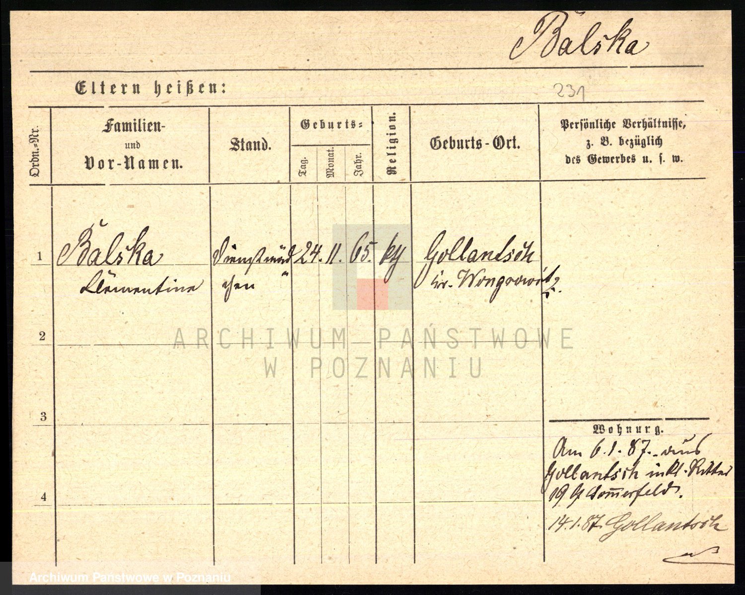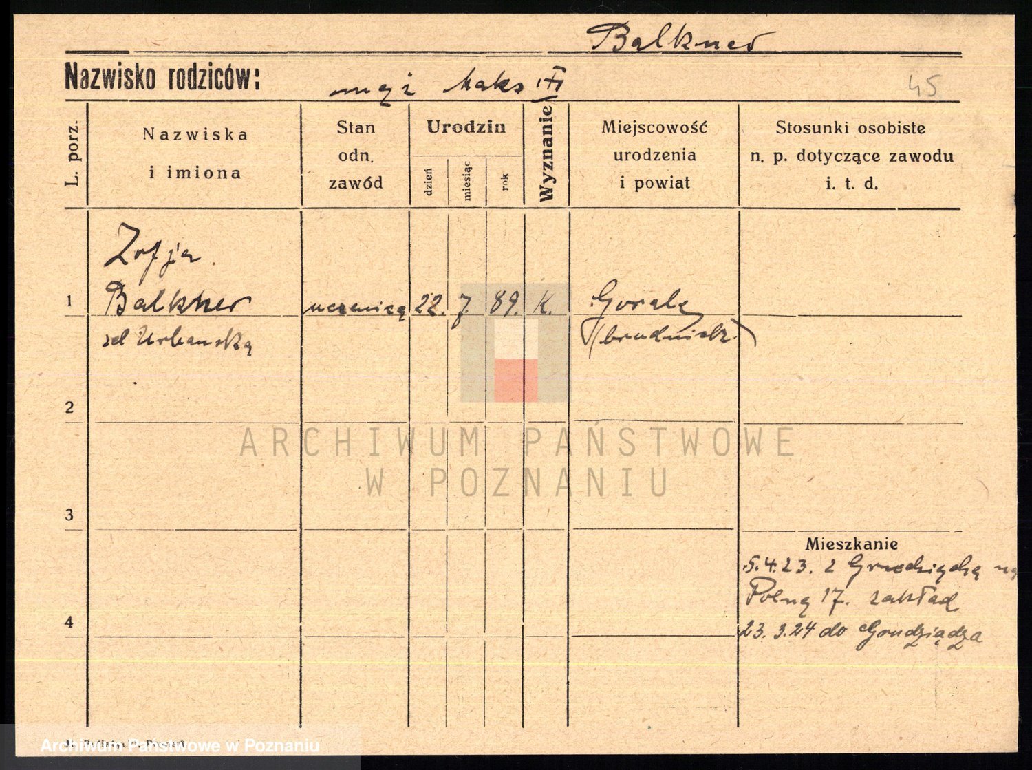 Balkner z.d. Urbanska, Zofja