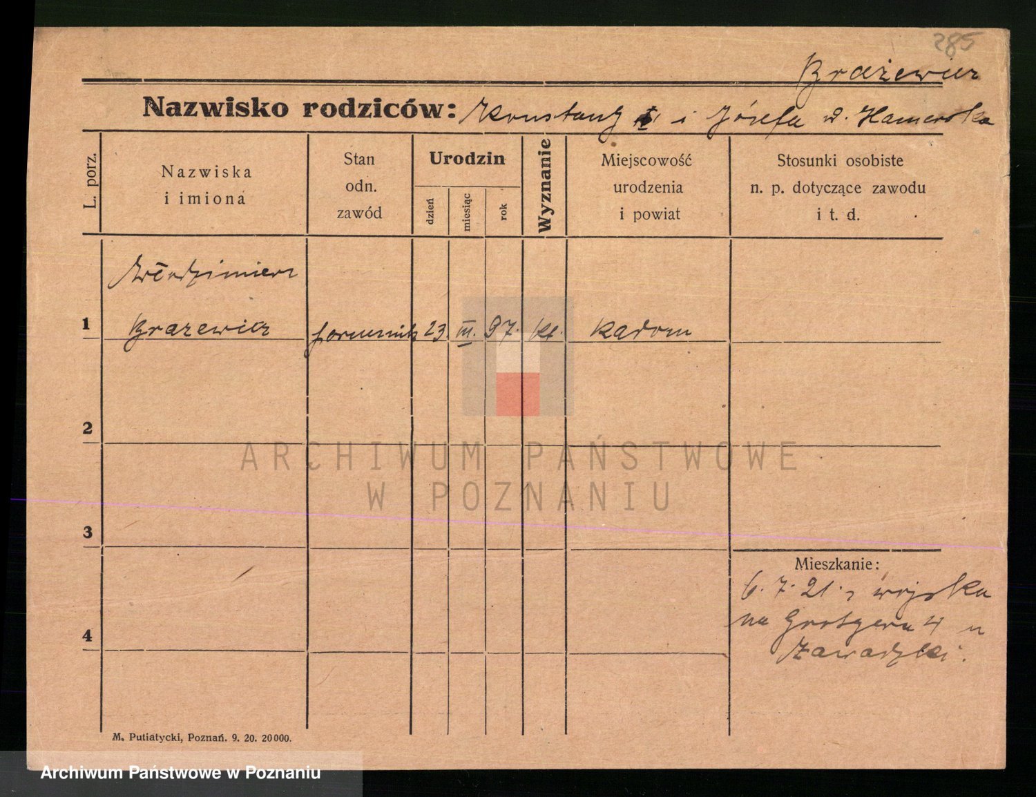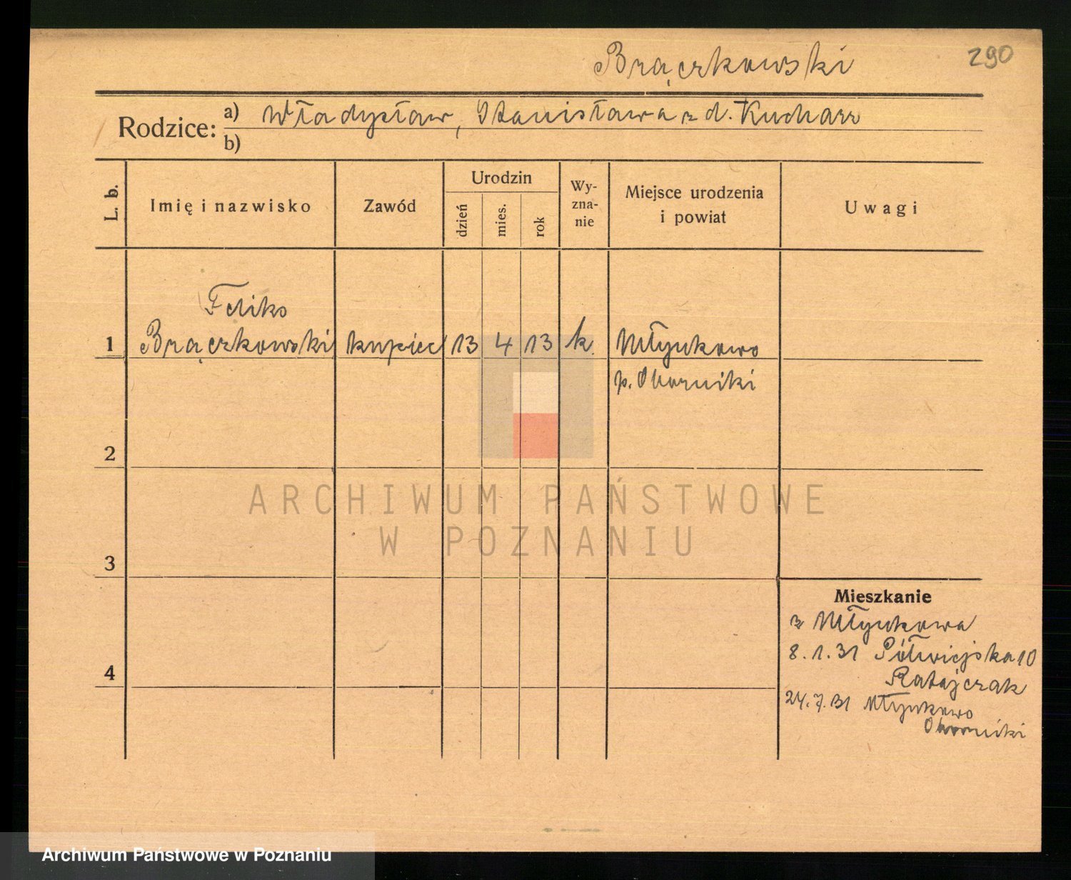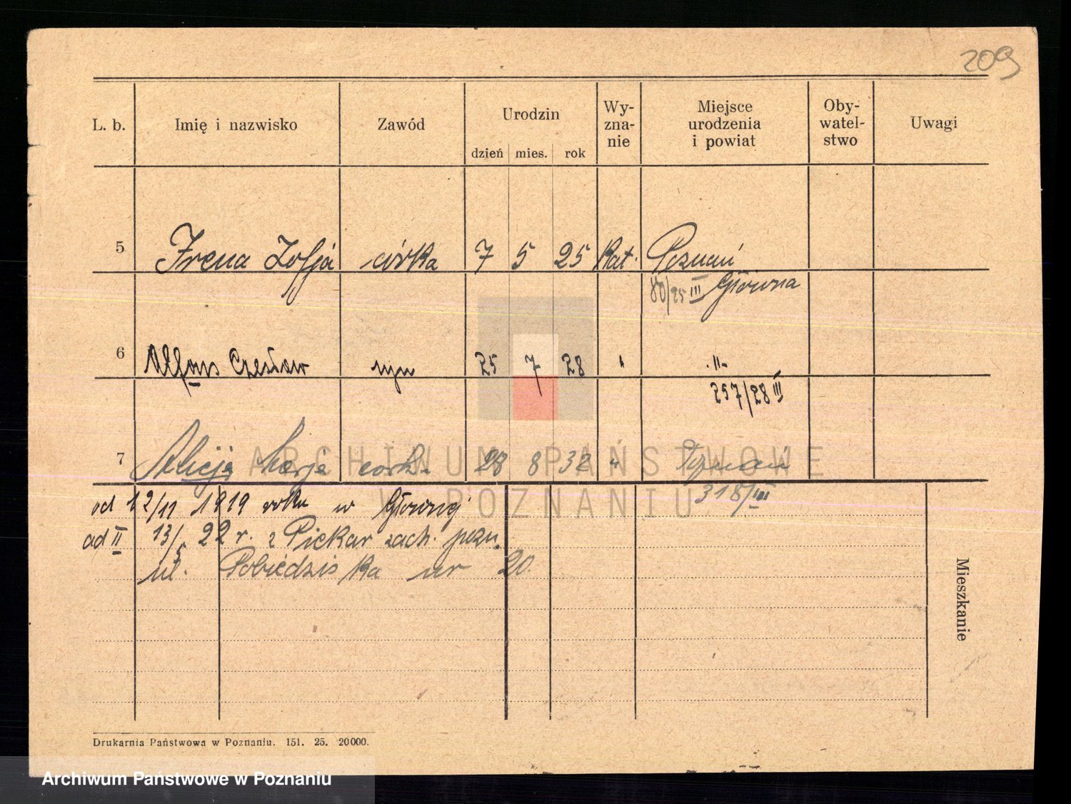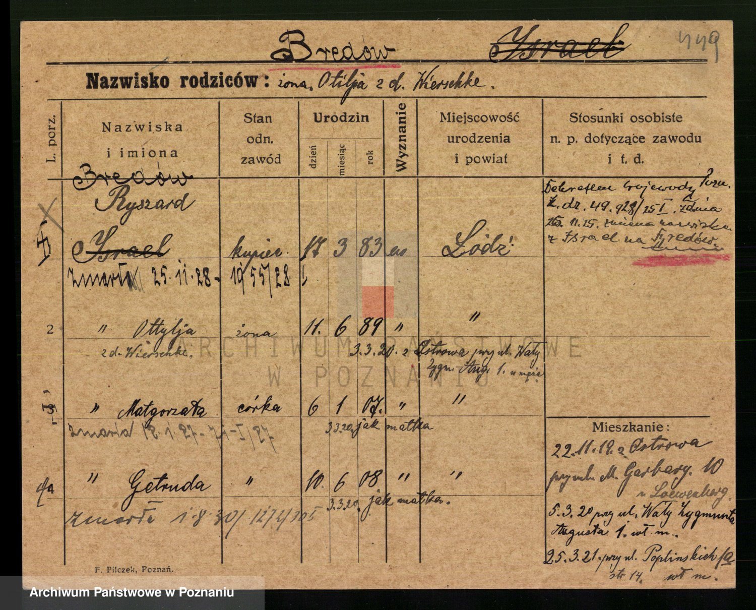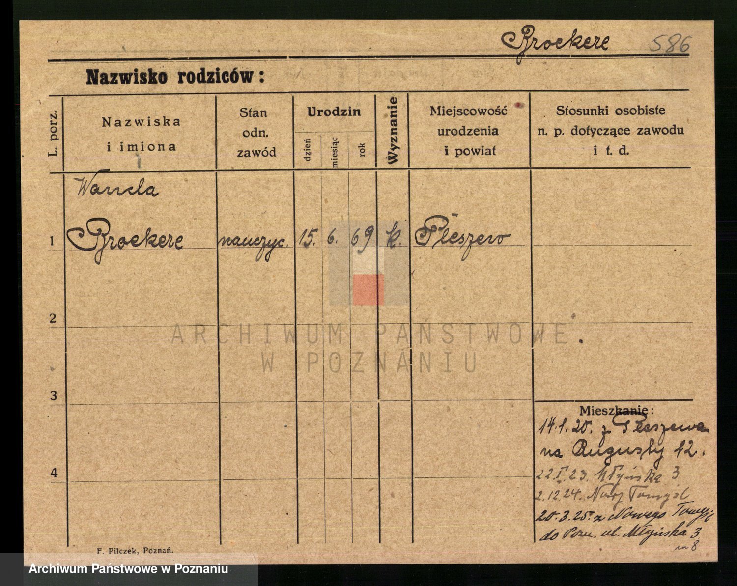 Podgląd karty osobowej dostępny jest po kliknięciu na nazwisko lub ikonkę karty. Można dokonywać powiększenia (ikony na górze) lub przechodzić między kolejnymi skanami (strzałki po bokach).