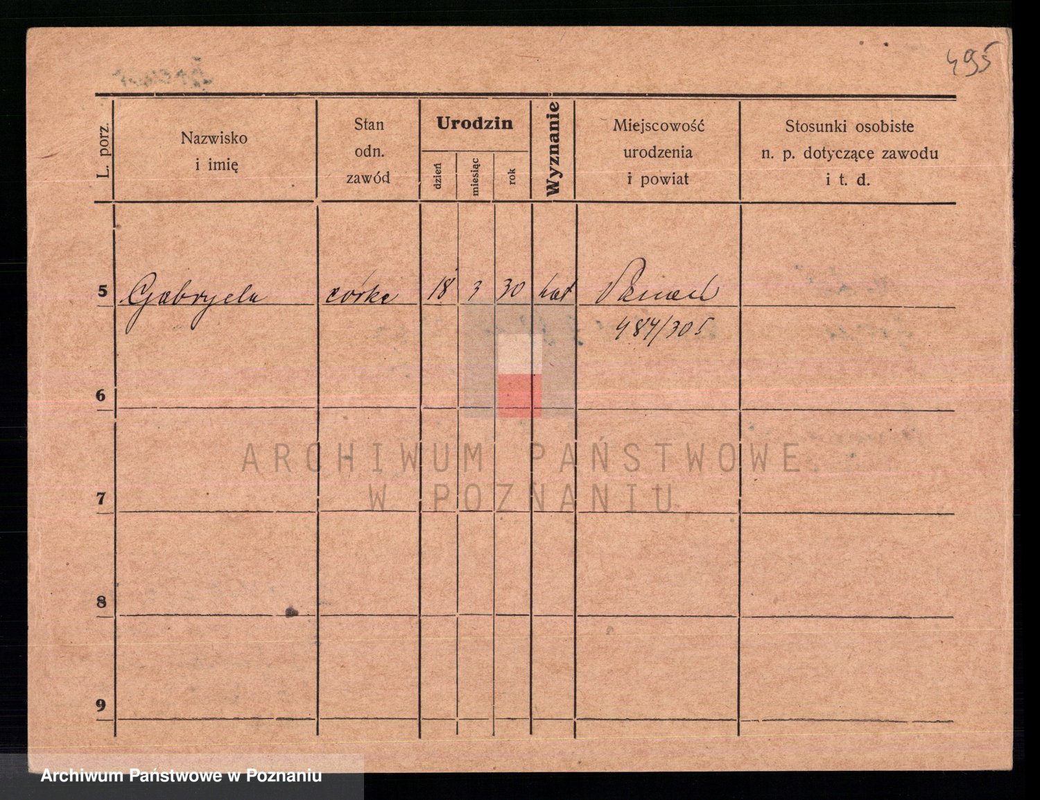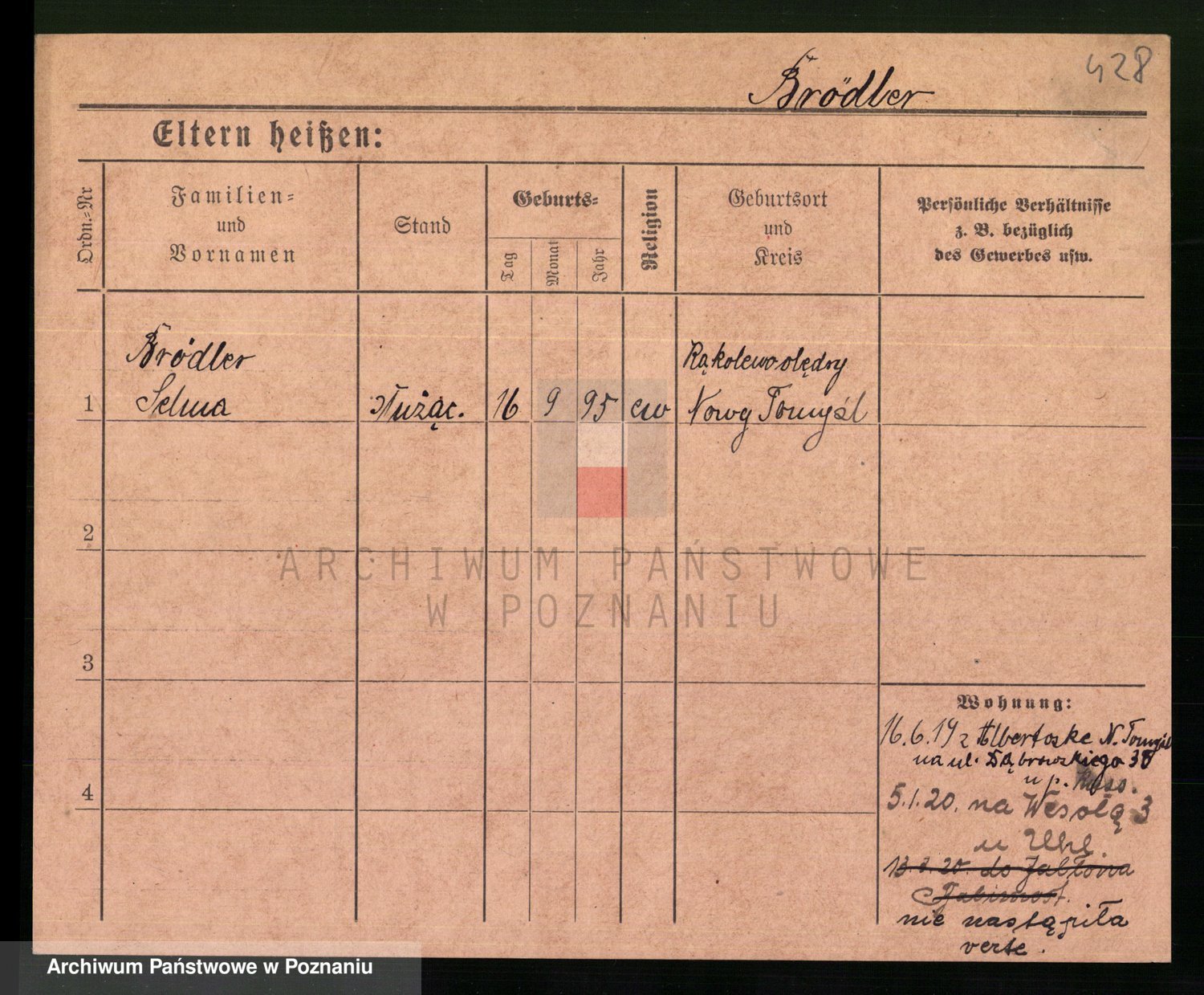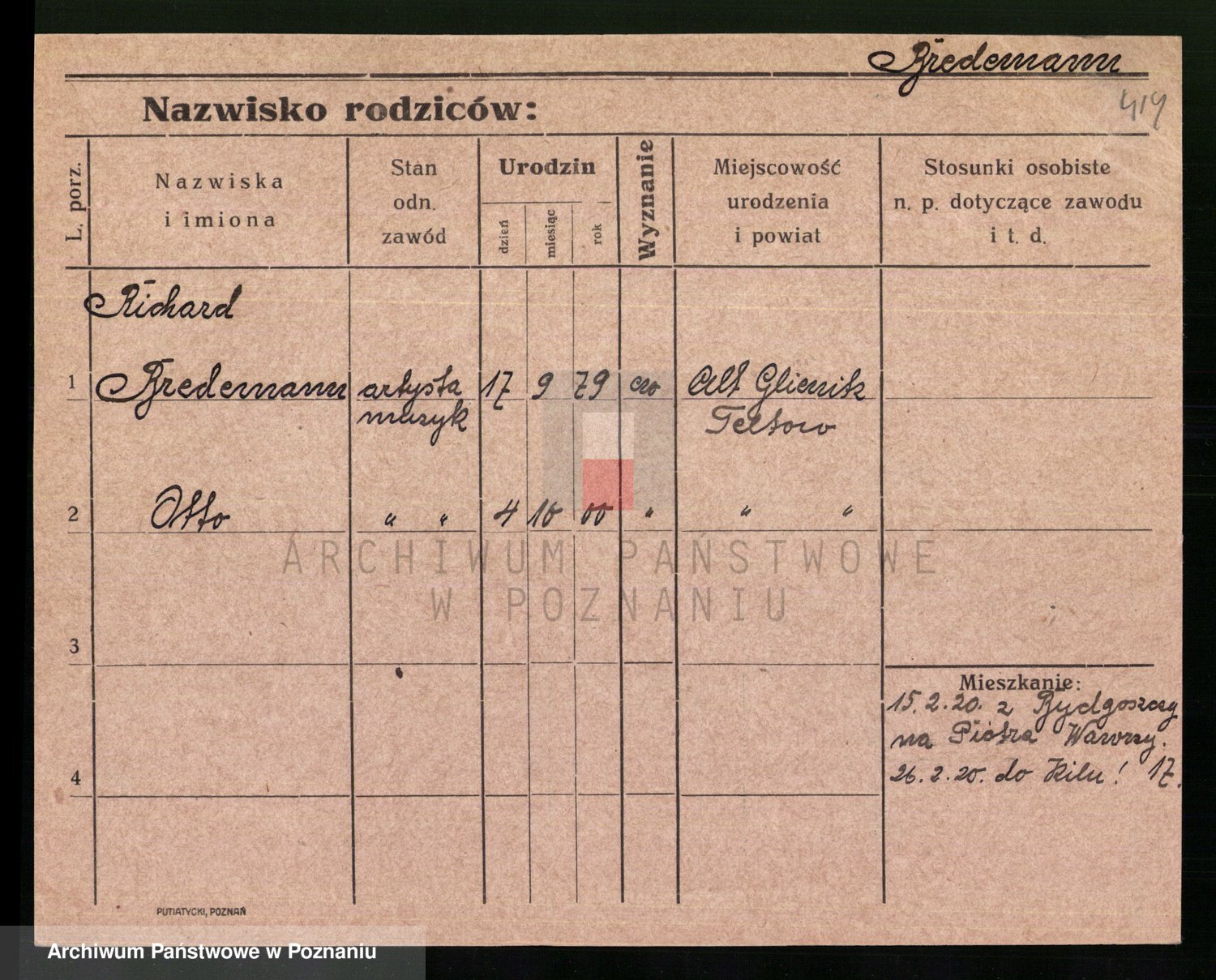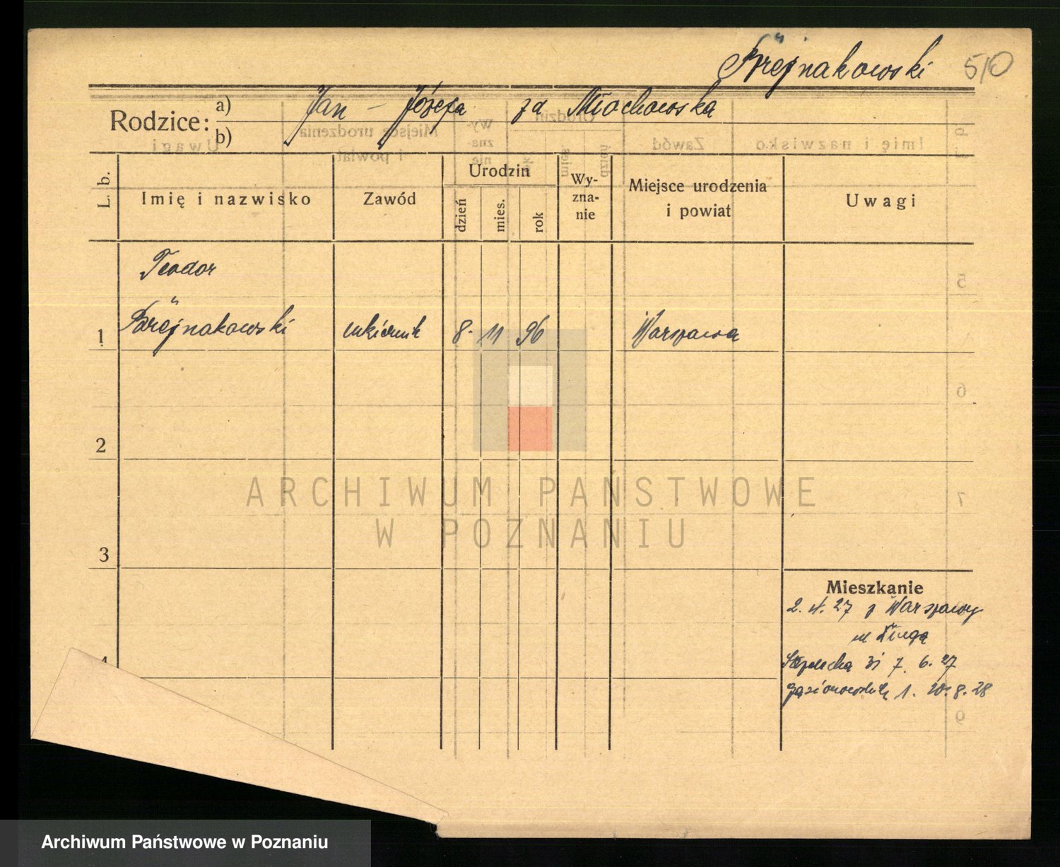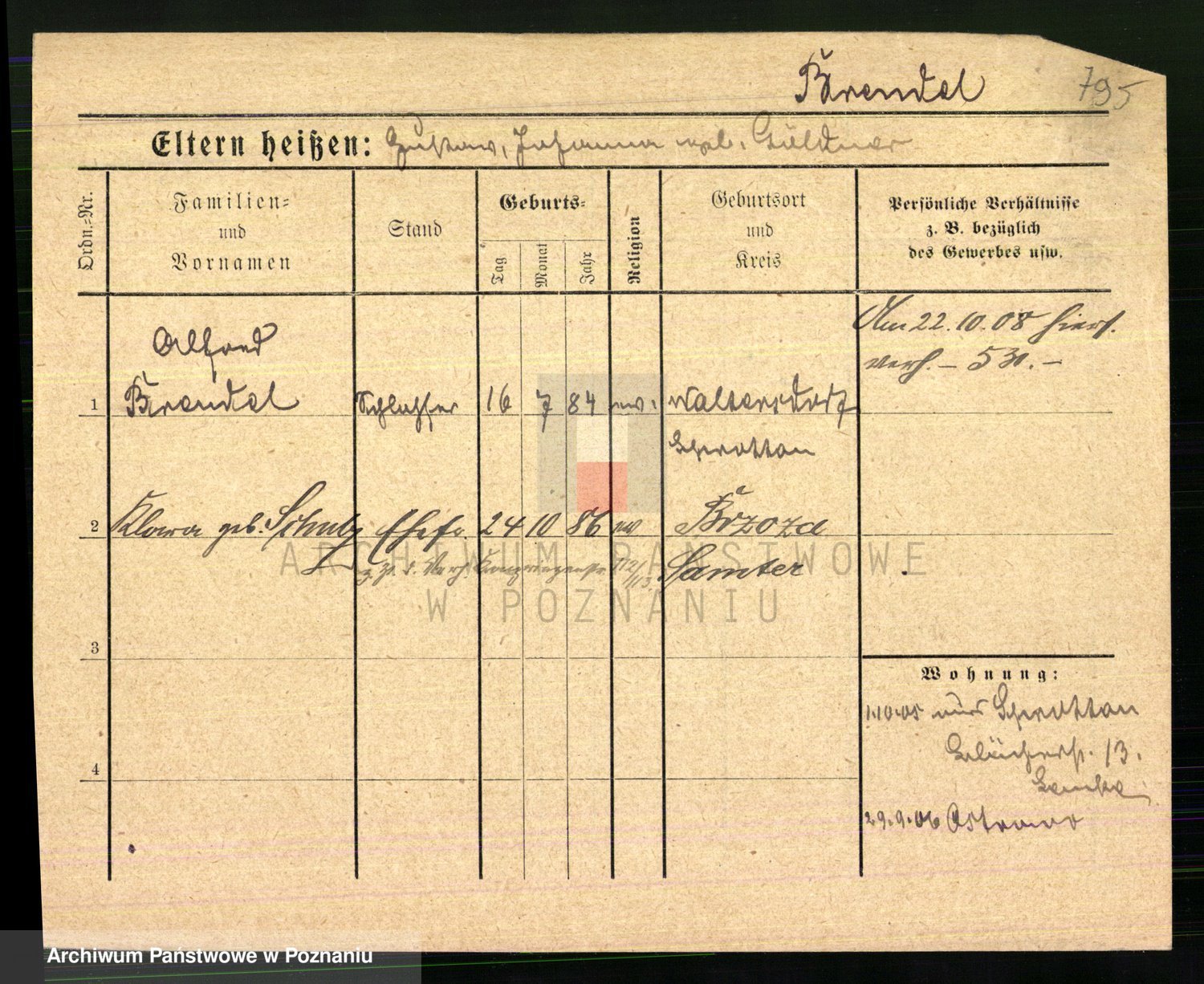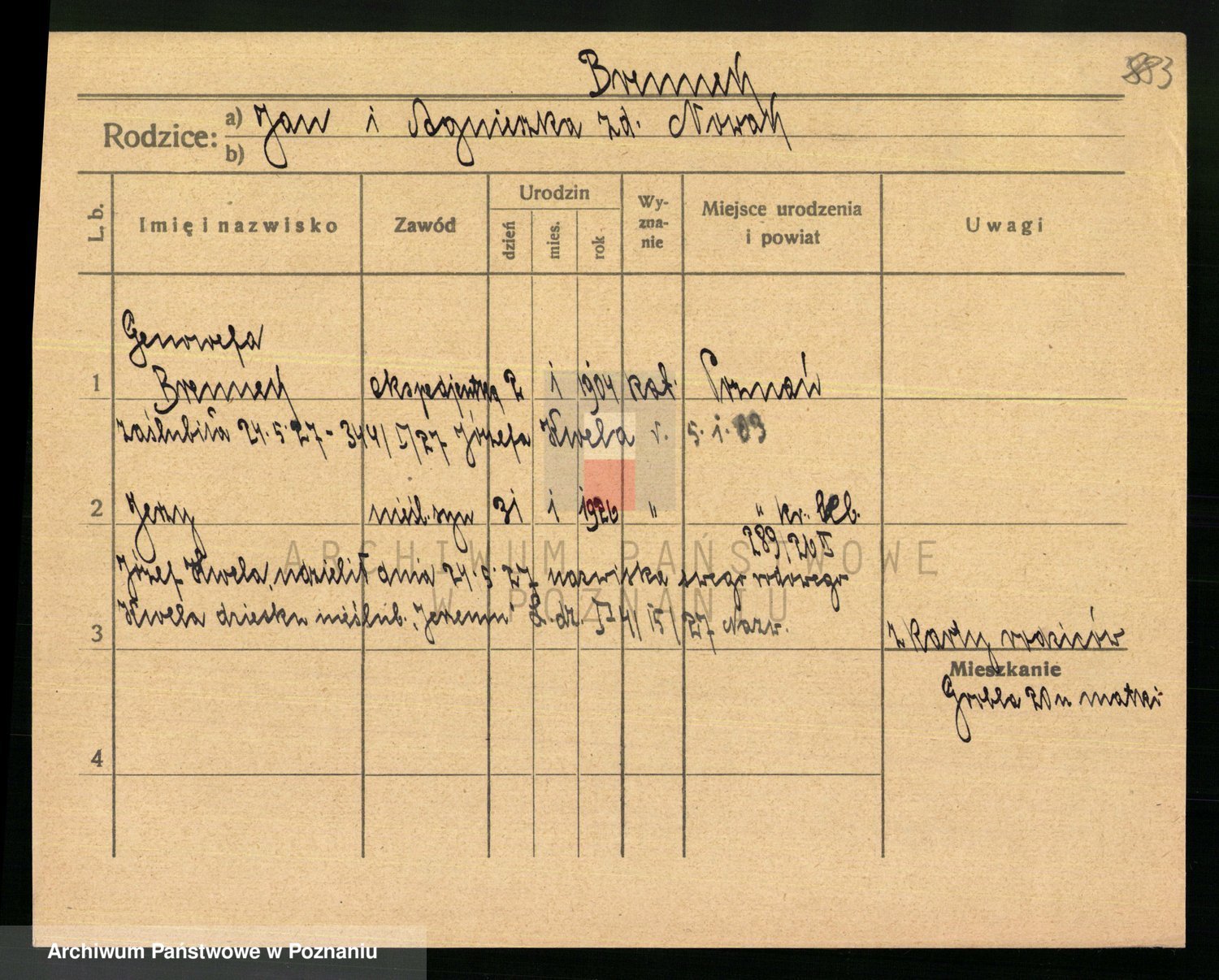 Podgląd karty osobowej dostępny jest po kliknięciu na nazwisko lub ikonkę karty. Można dokonywać powiększenia (ikony na górze) lub przechodzić między kolejnymi skanami (strzałki po bokach).